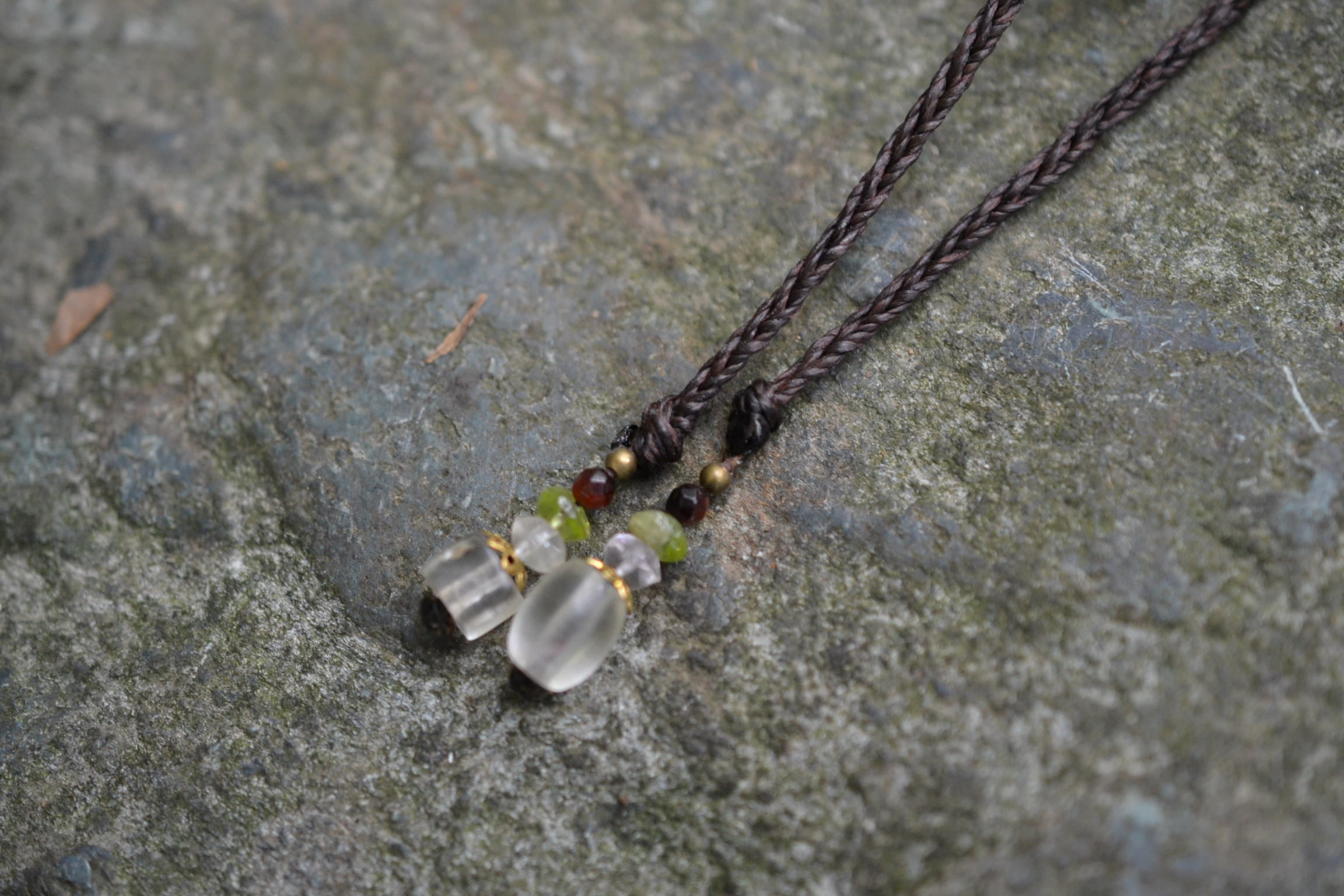 この石に合わせて、背守りとなる紐の先にもいろいろなビーズストーンをミックスしました。