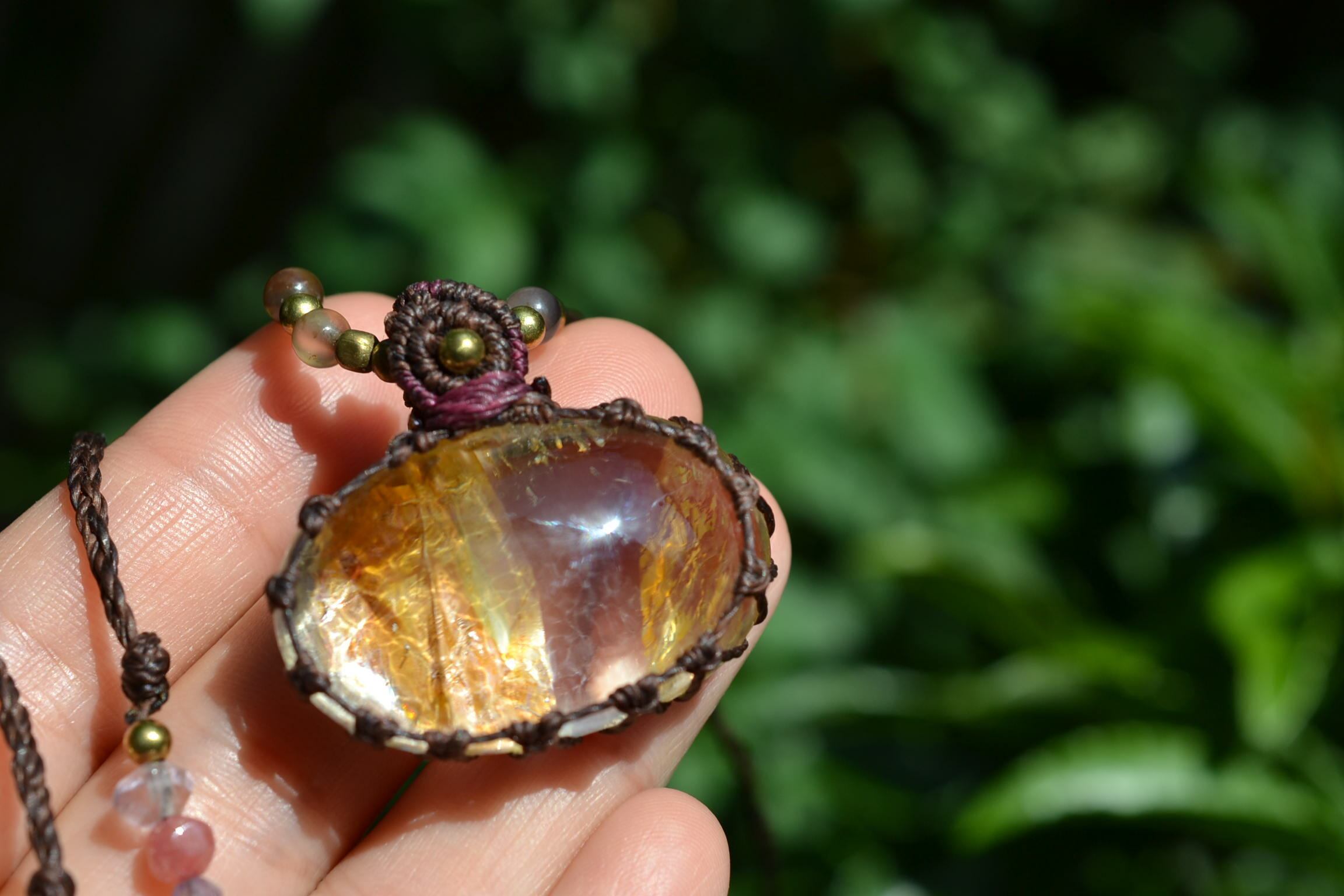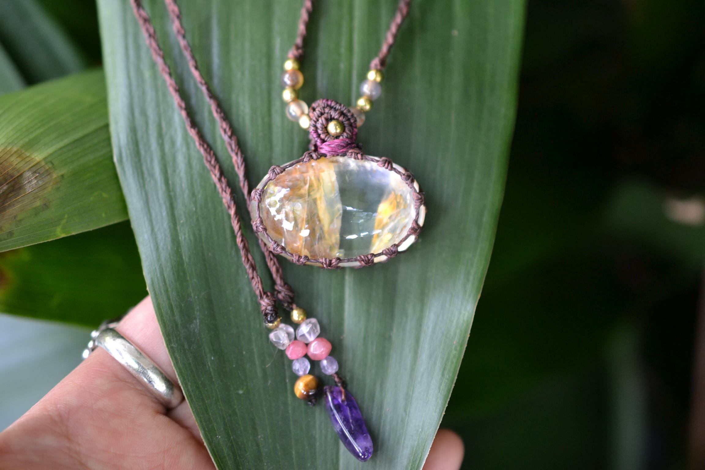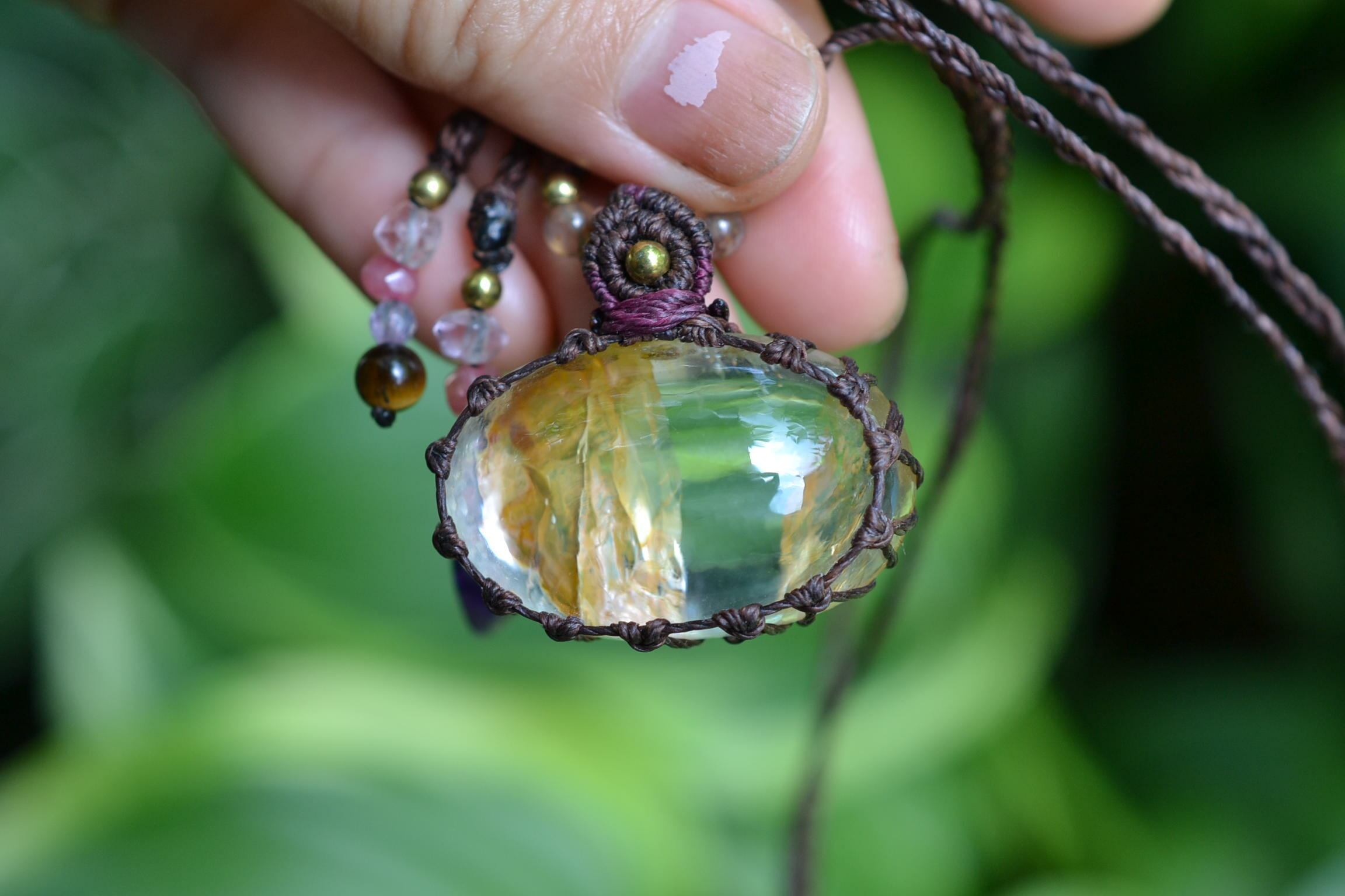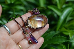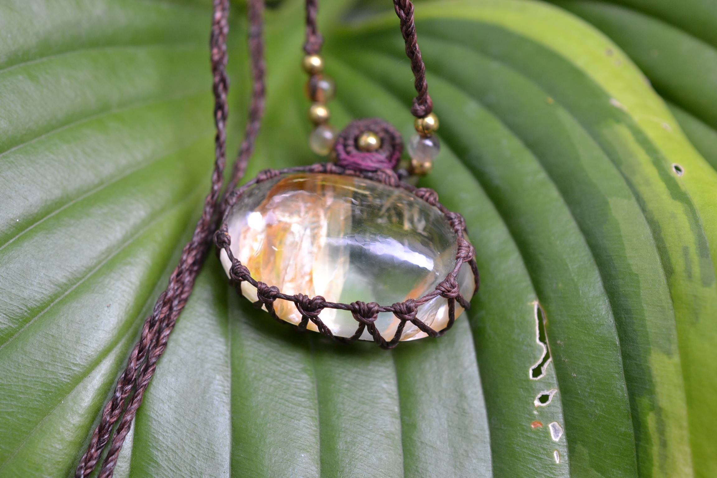 虹入り模様★ガーデンクォーツ マクラメペンダント