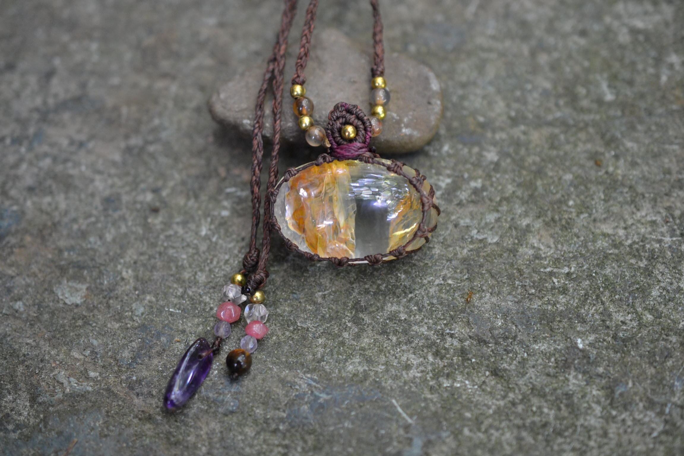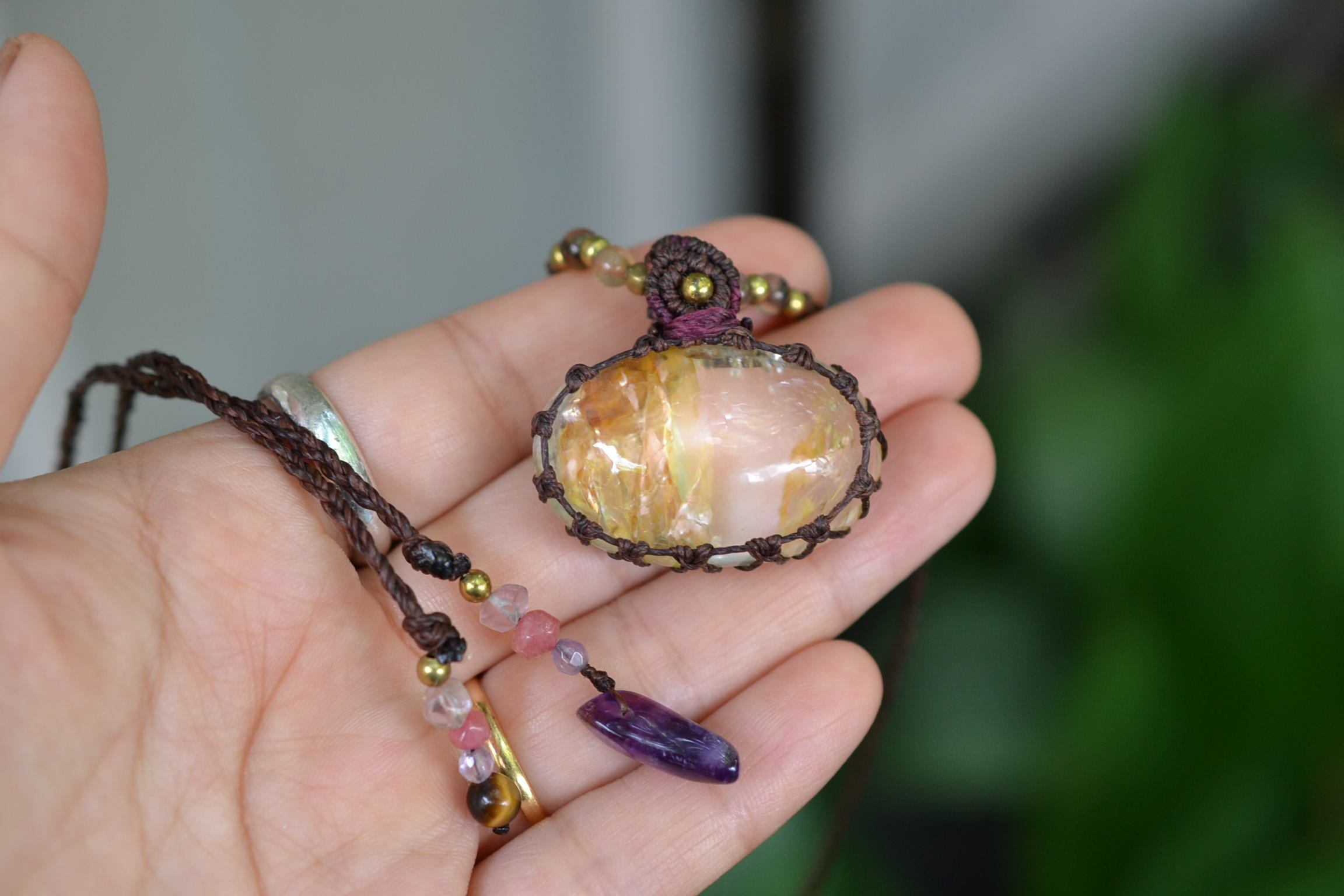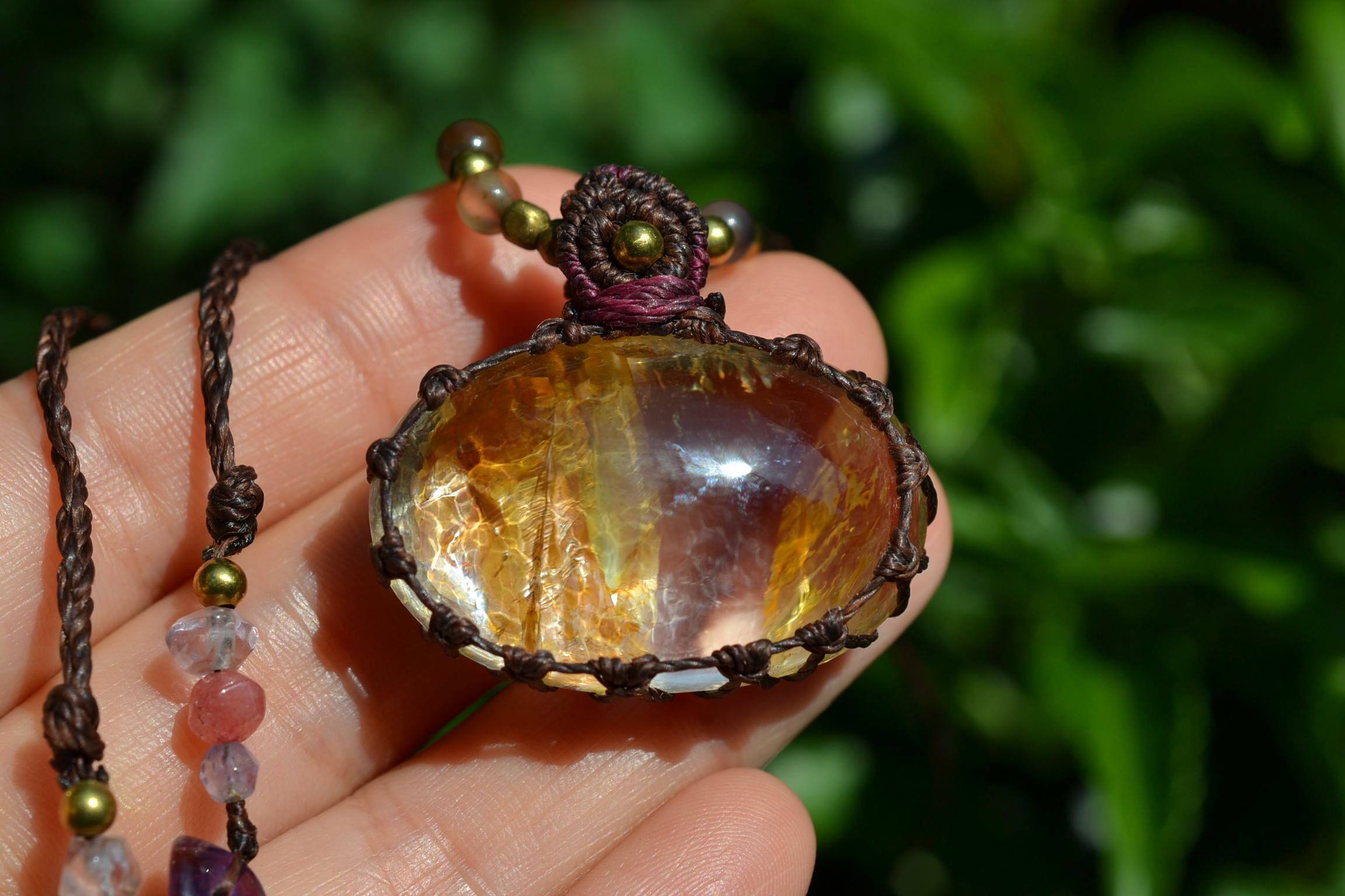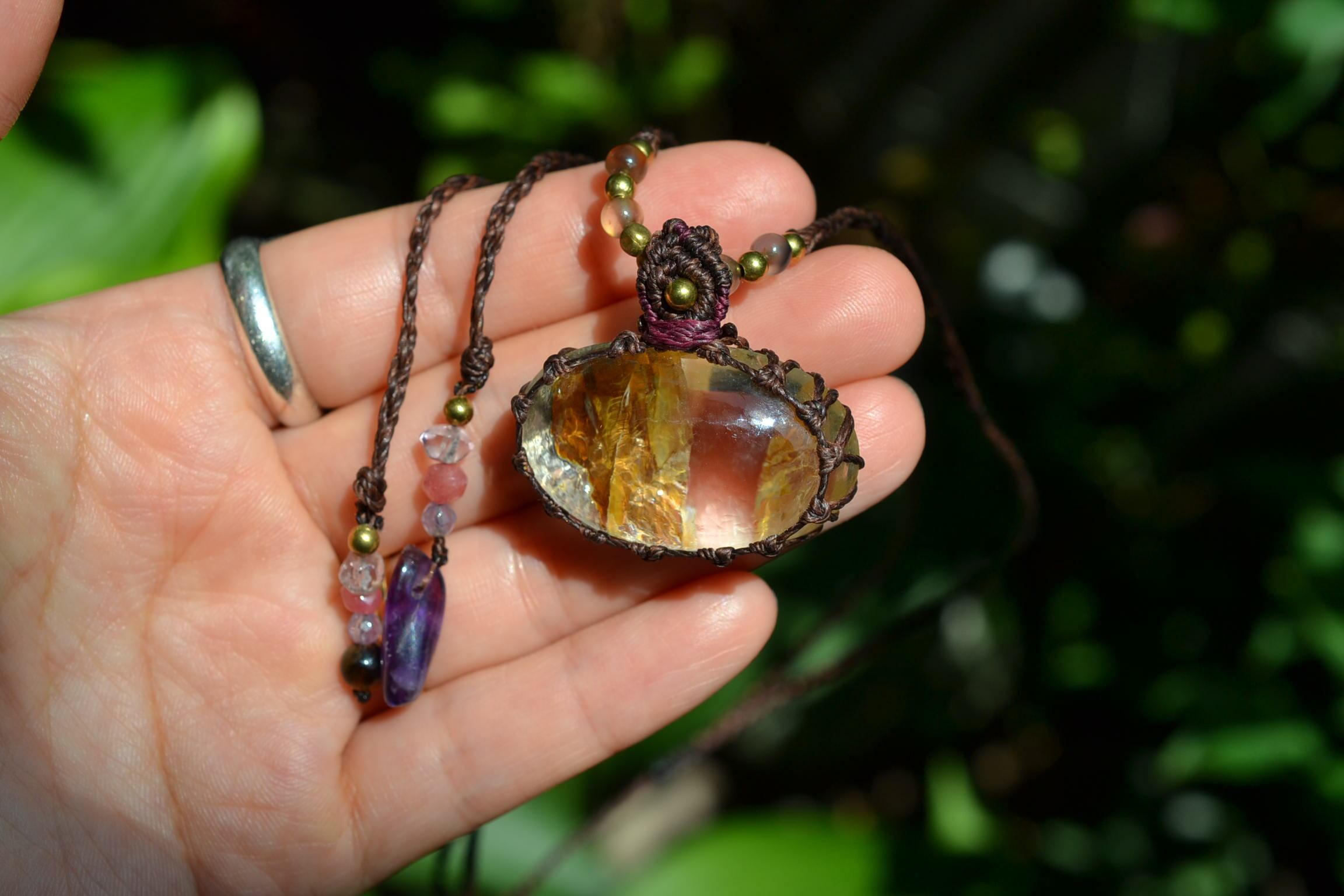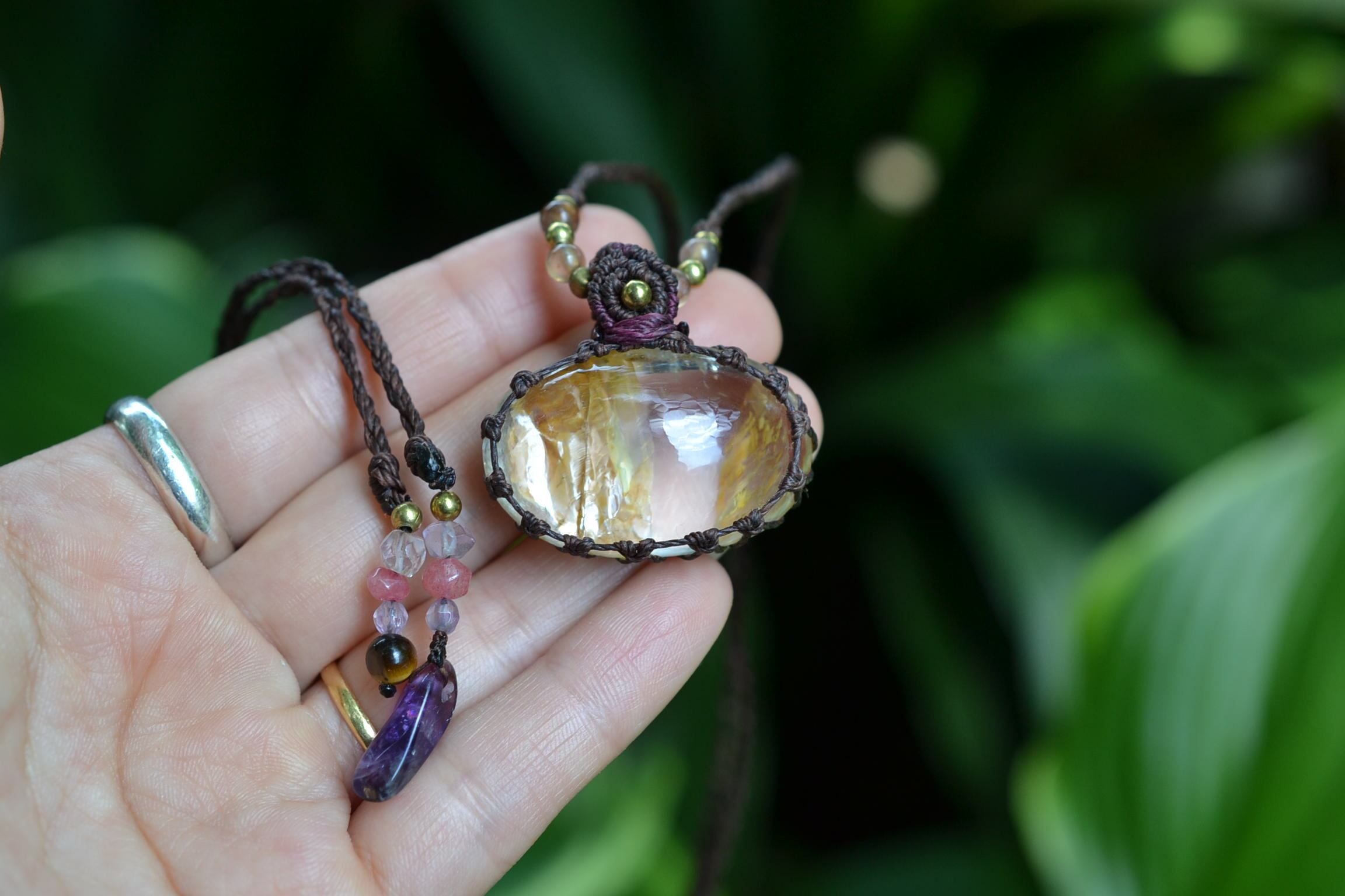 虹入り模様★ガーデンクォーツ マクラメペンダント