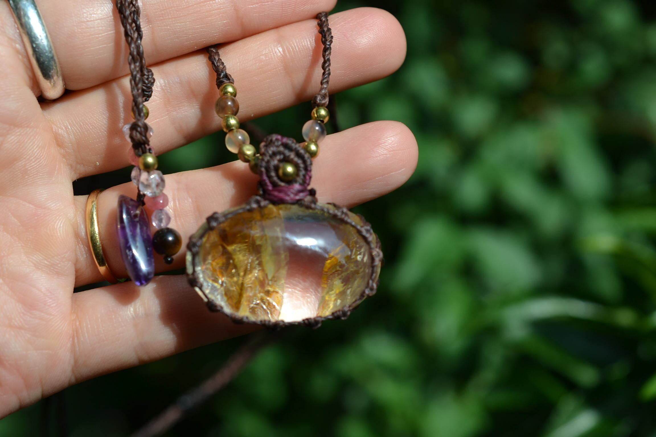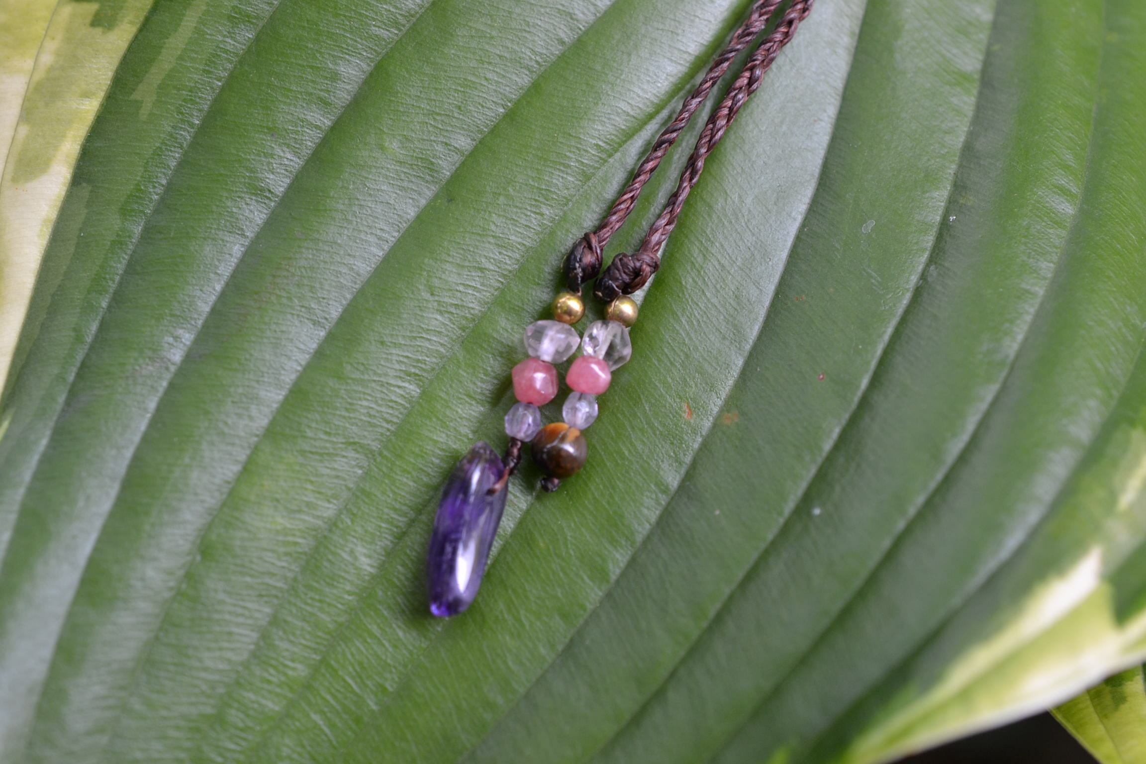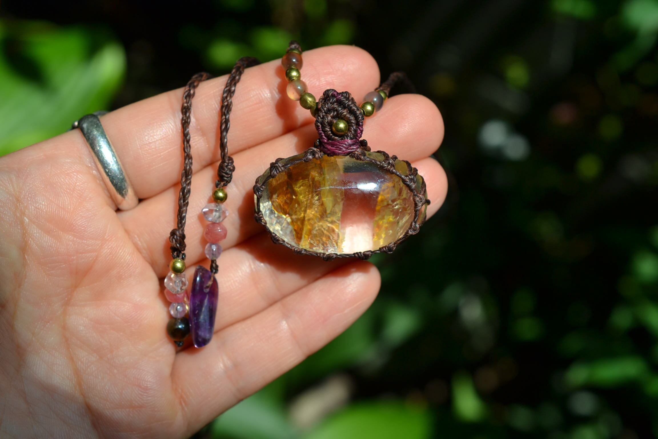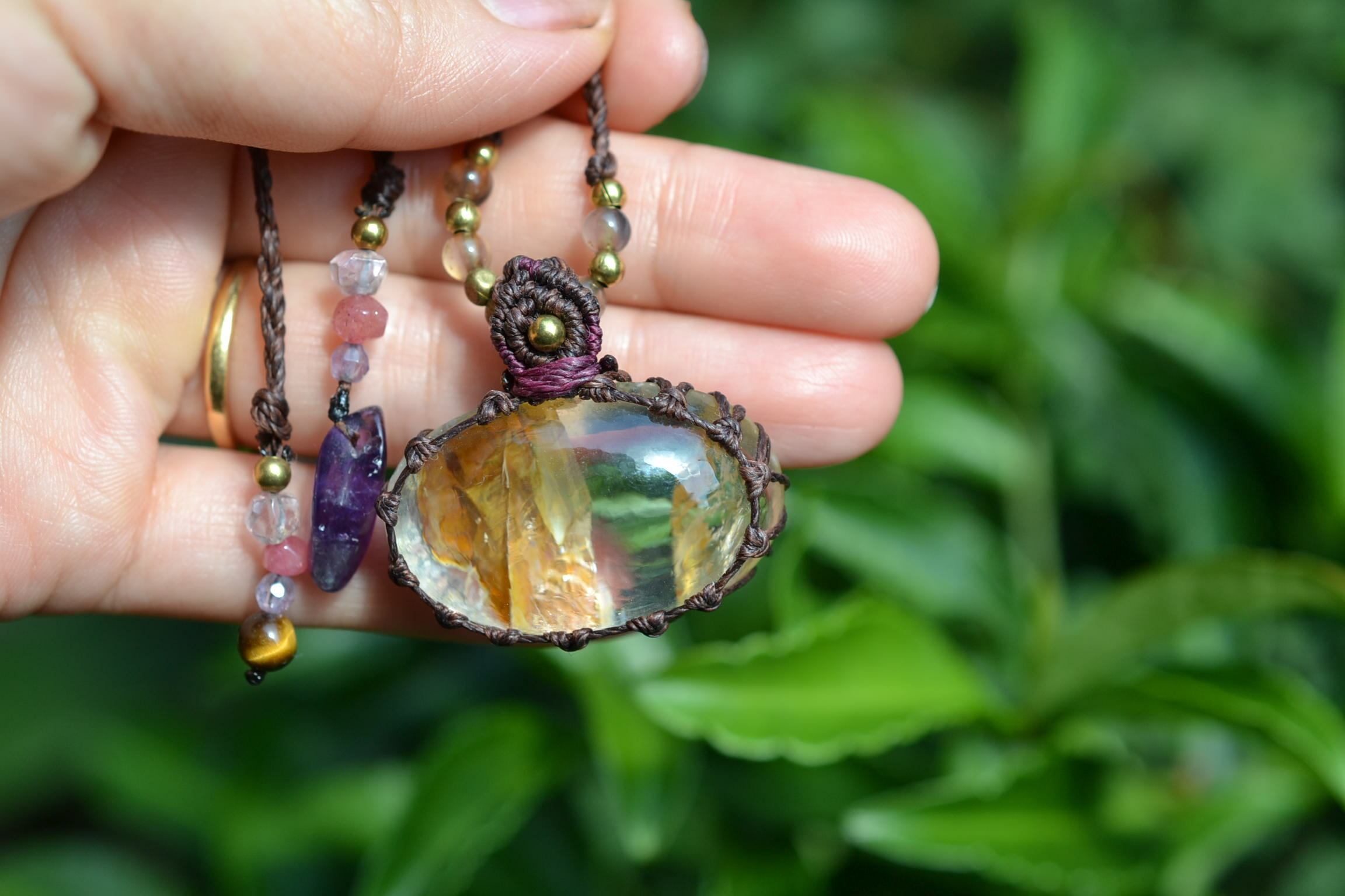 虹入り模様★ガーデンクォーツ マクラメペンダント