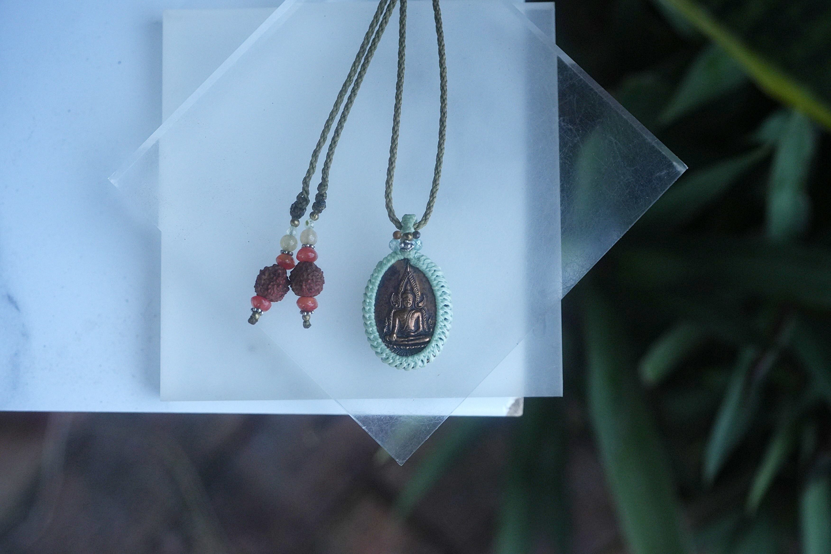 お守りチャトカーム神様★真鍮カービング マクラメネックレス1546
