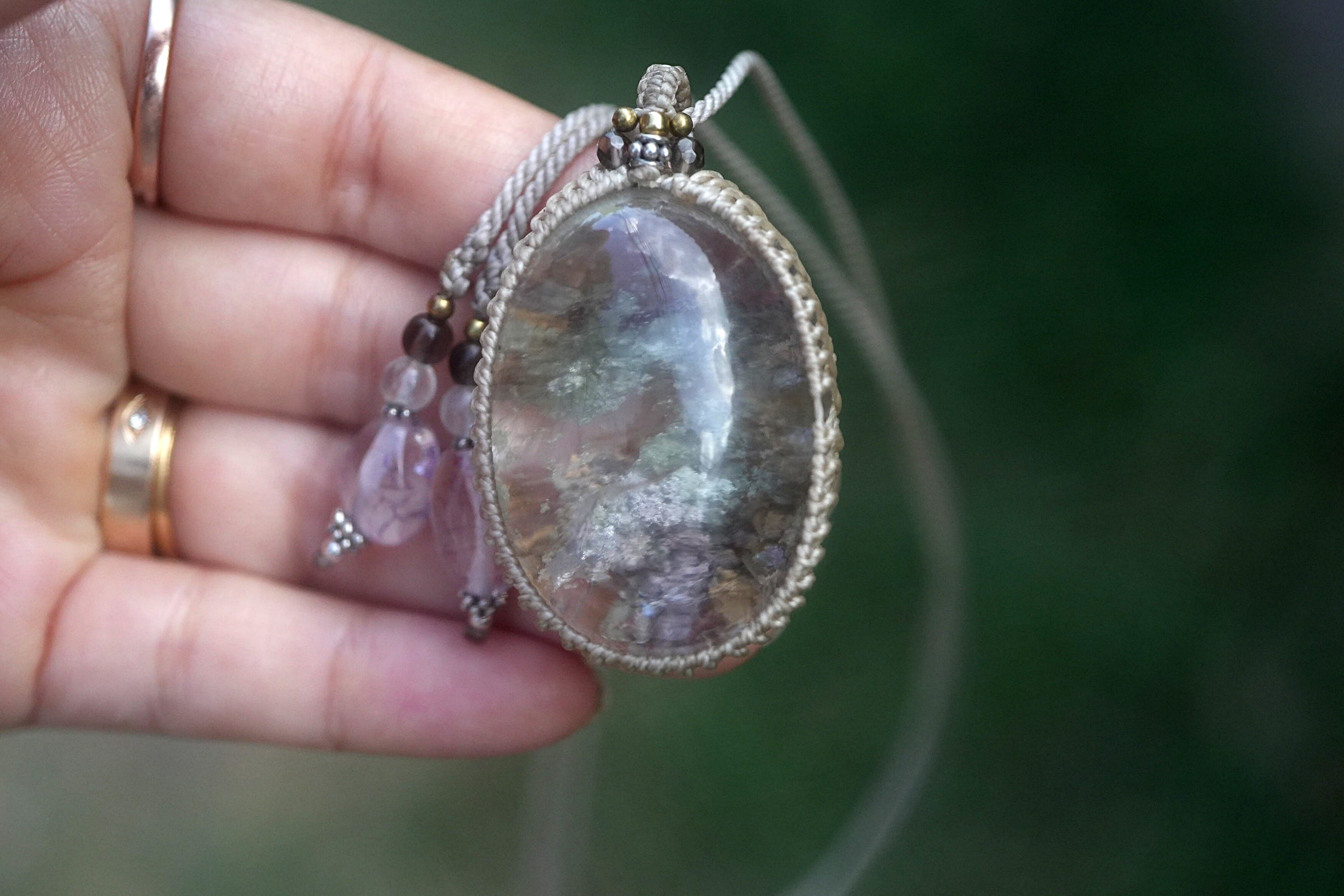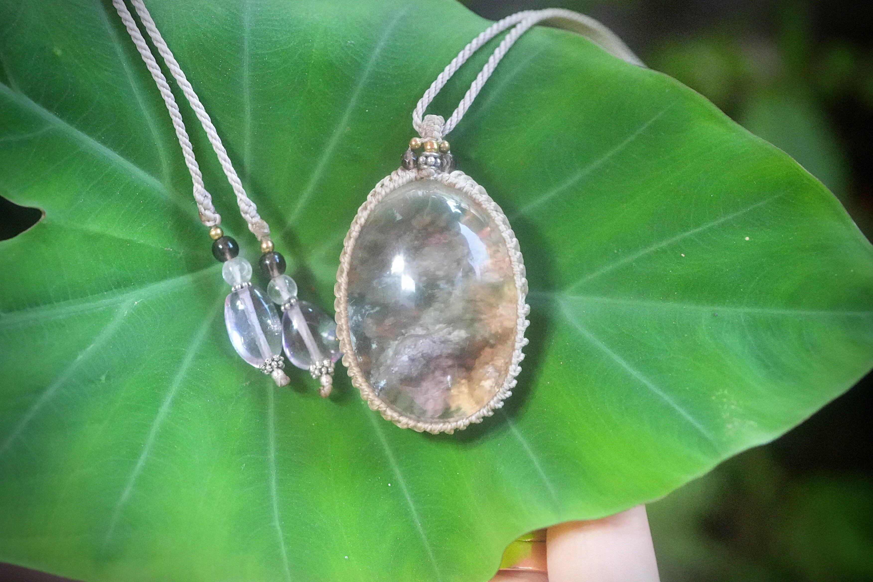 ピンクと緑★大粒★ガーデンクォーツ マクラメネックレス1549
