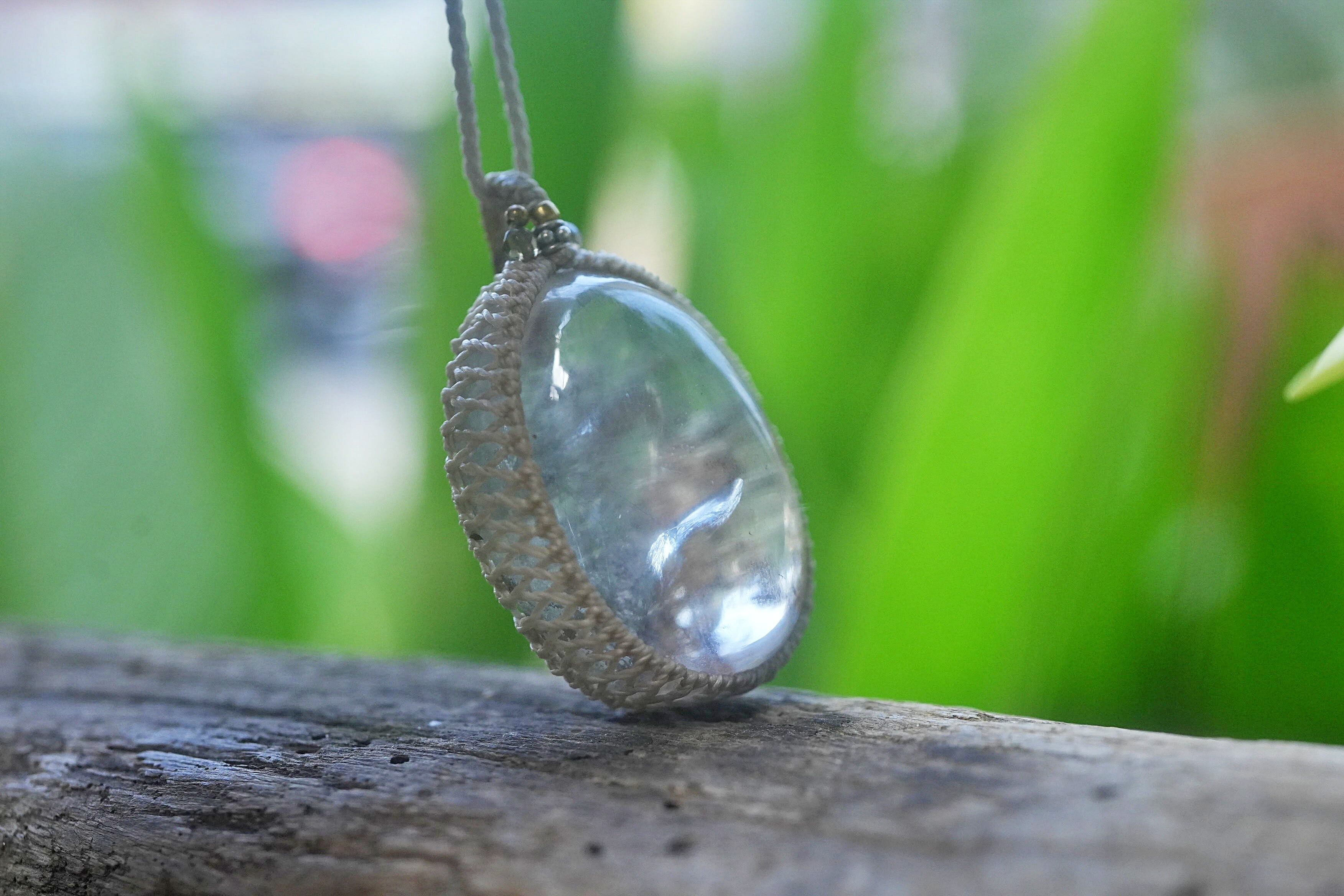 ◆このたびはナチュラルホワイト色の蝋引き糸を使用しマクラメ編み装飾を施しました。