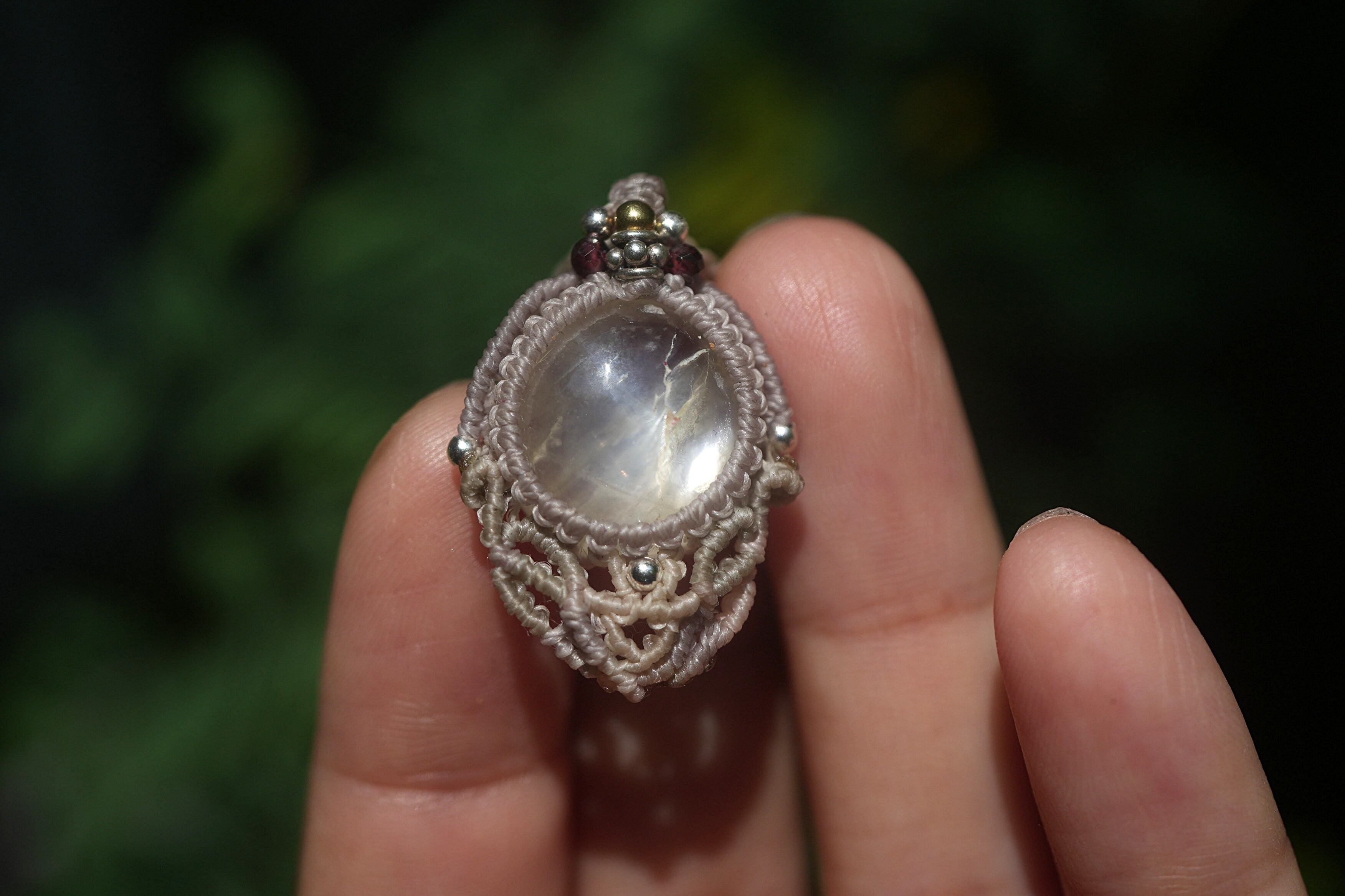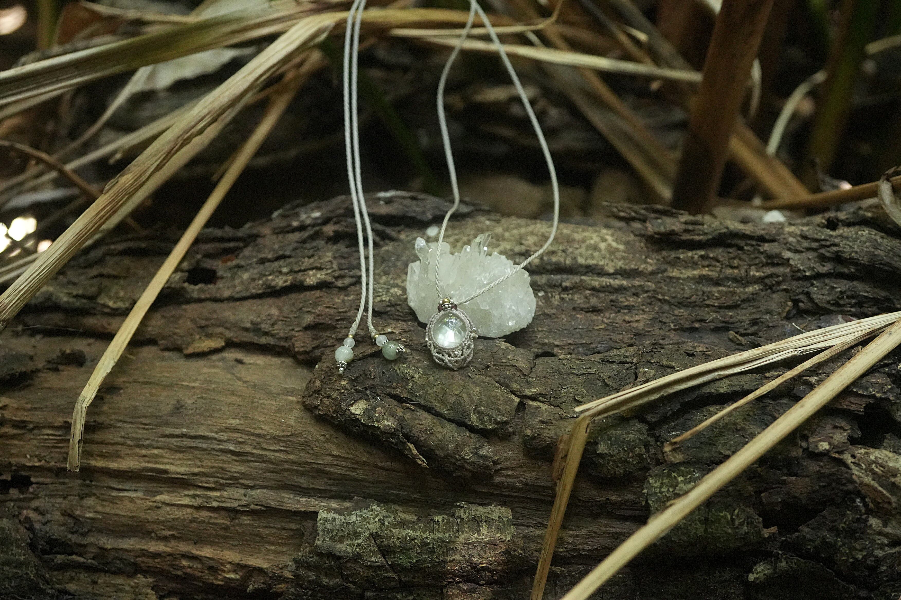 まんまるシルク★ミャンマー産★ムーンストーン マクラメネックレス1563