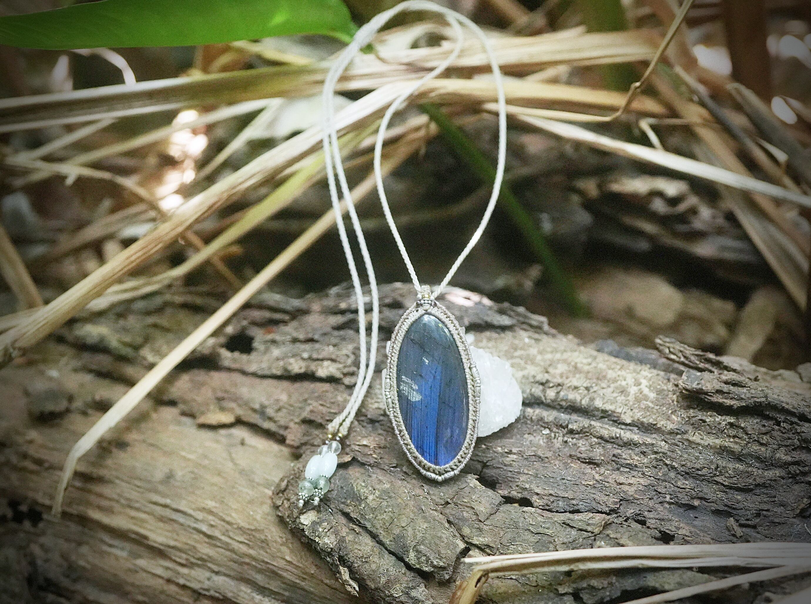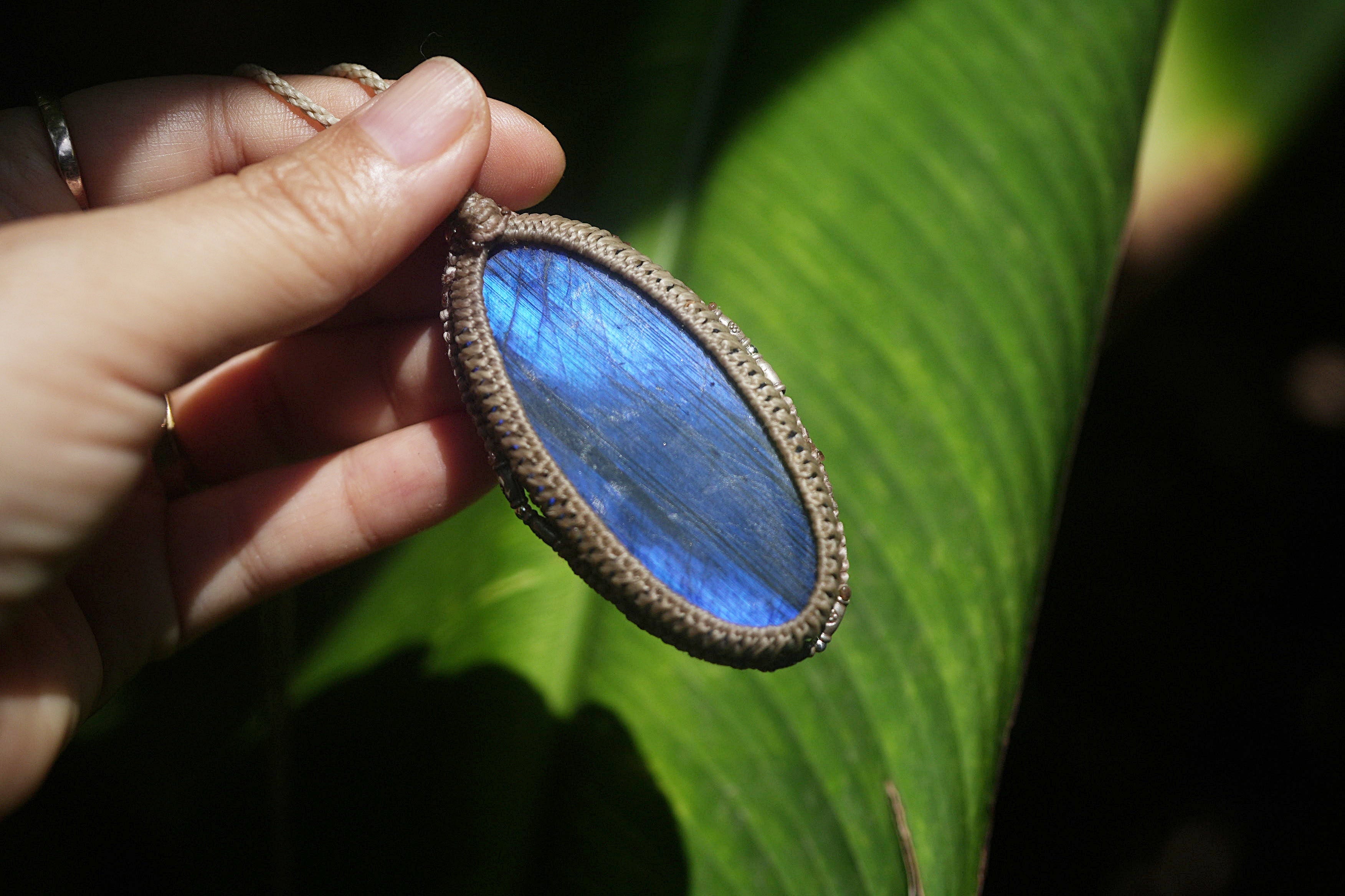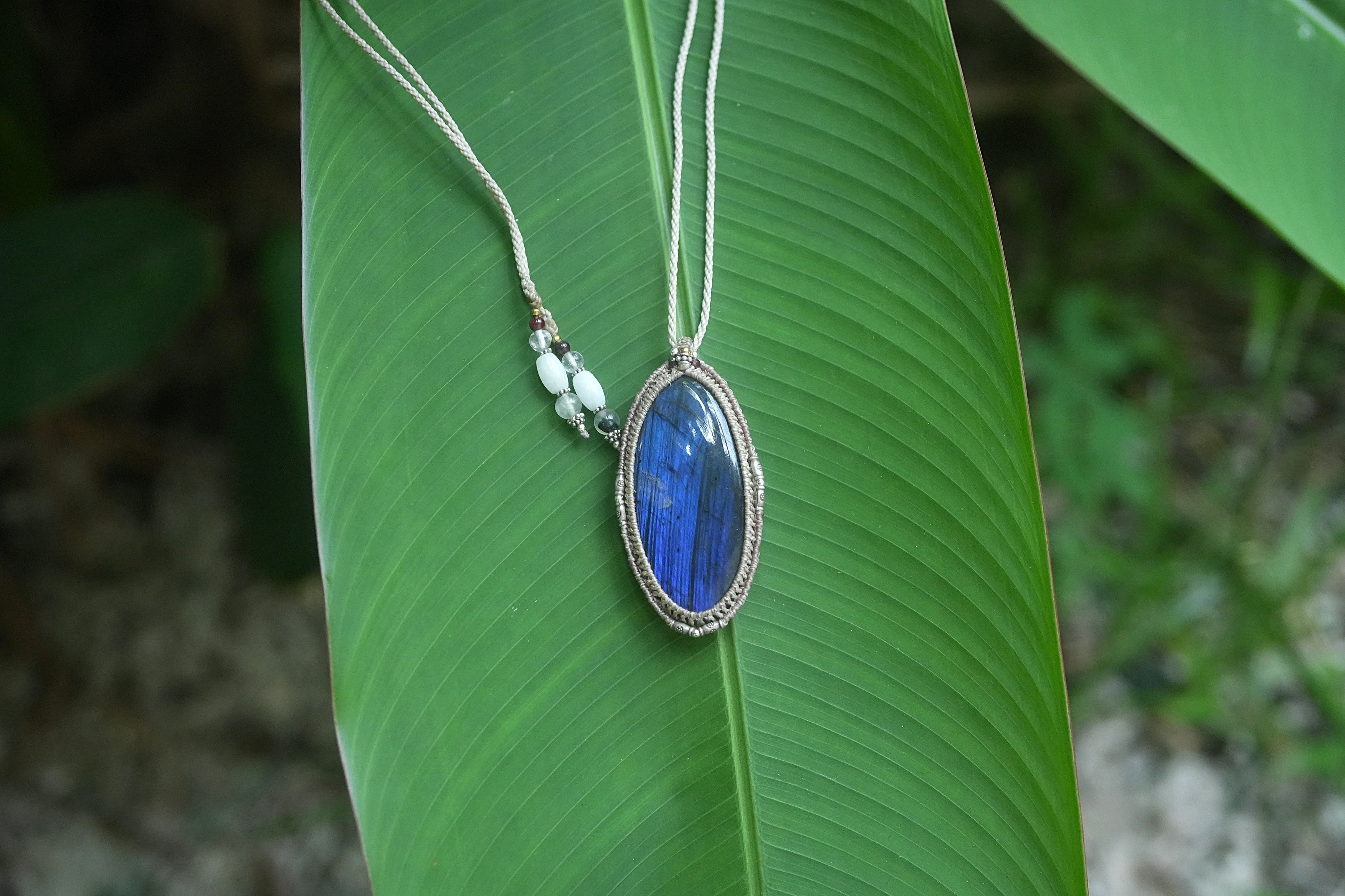 大粒★蒼い飛行石★ラブラドライト マクラメネックレス1566
