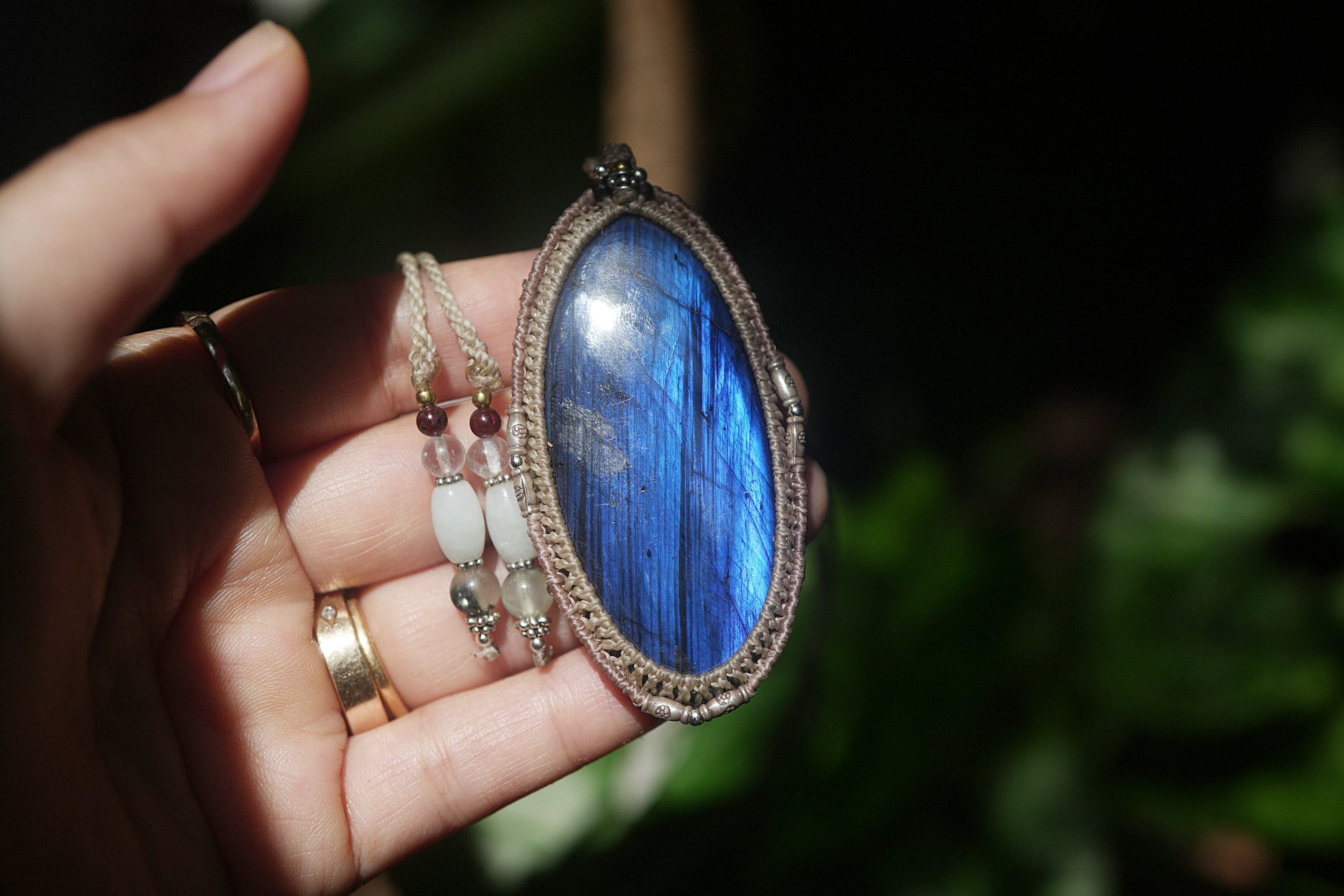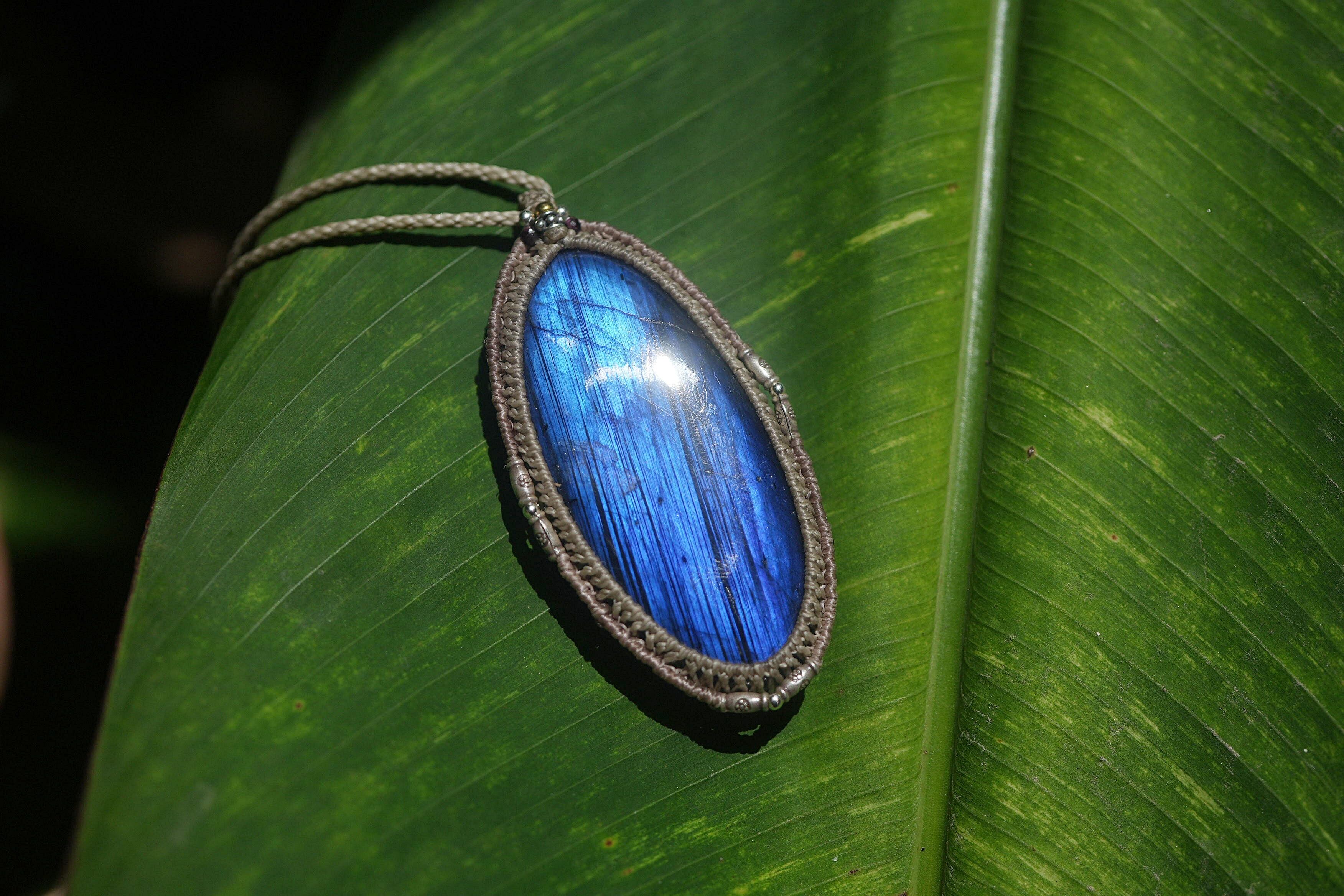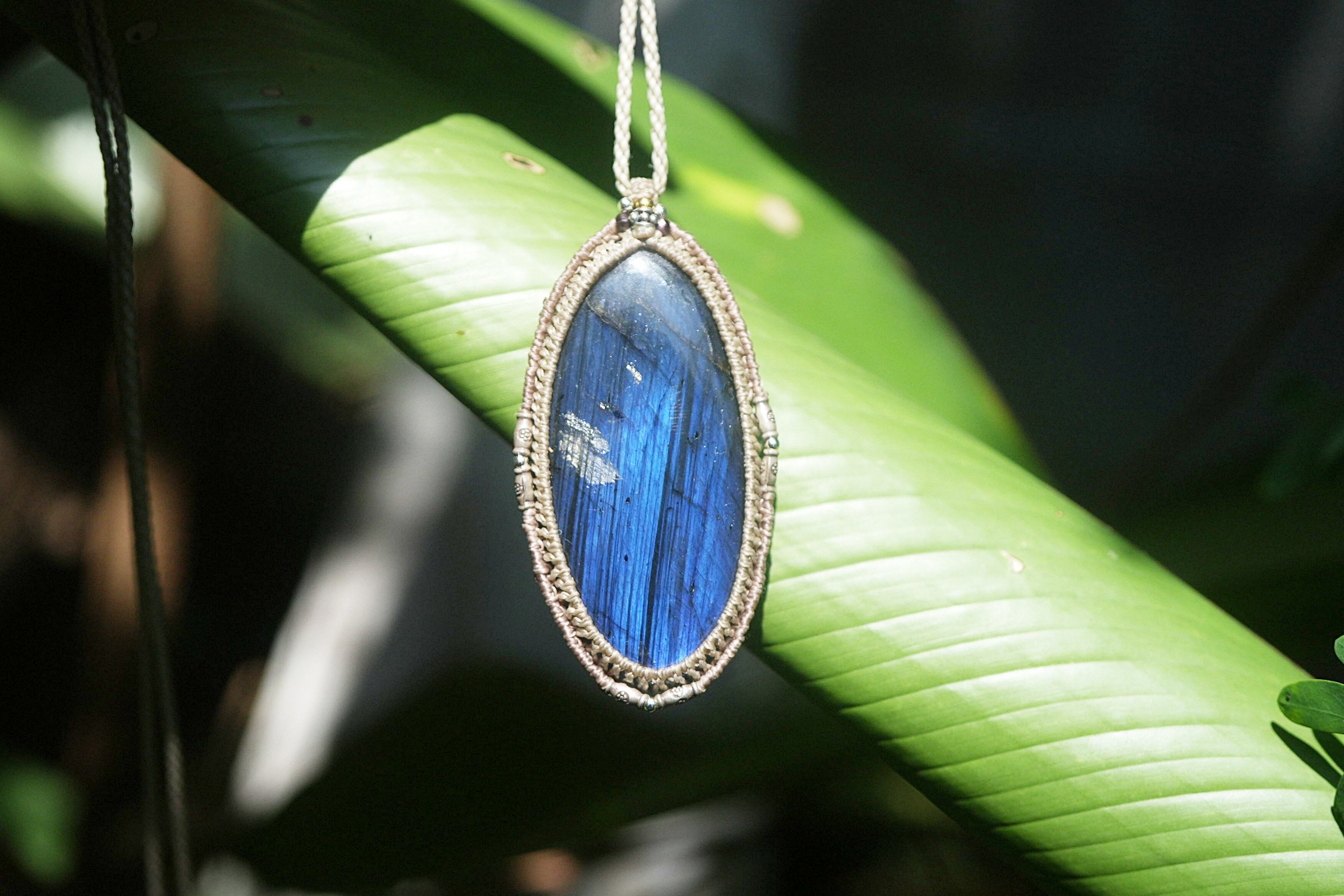大粒★蒼い飛行石★ラブラドライト マクラメネックレス1566