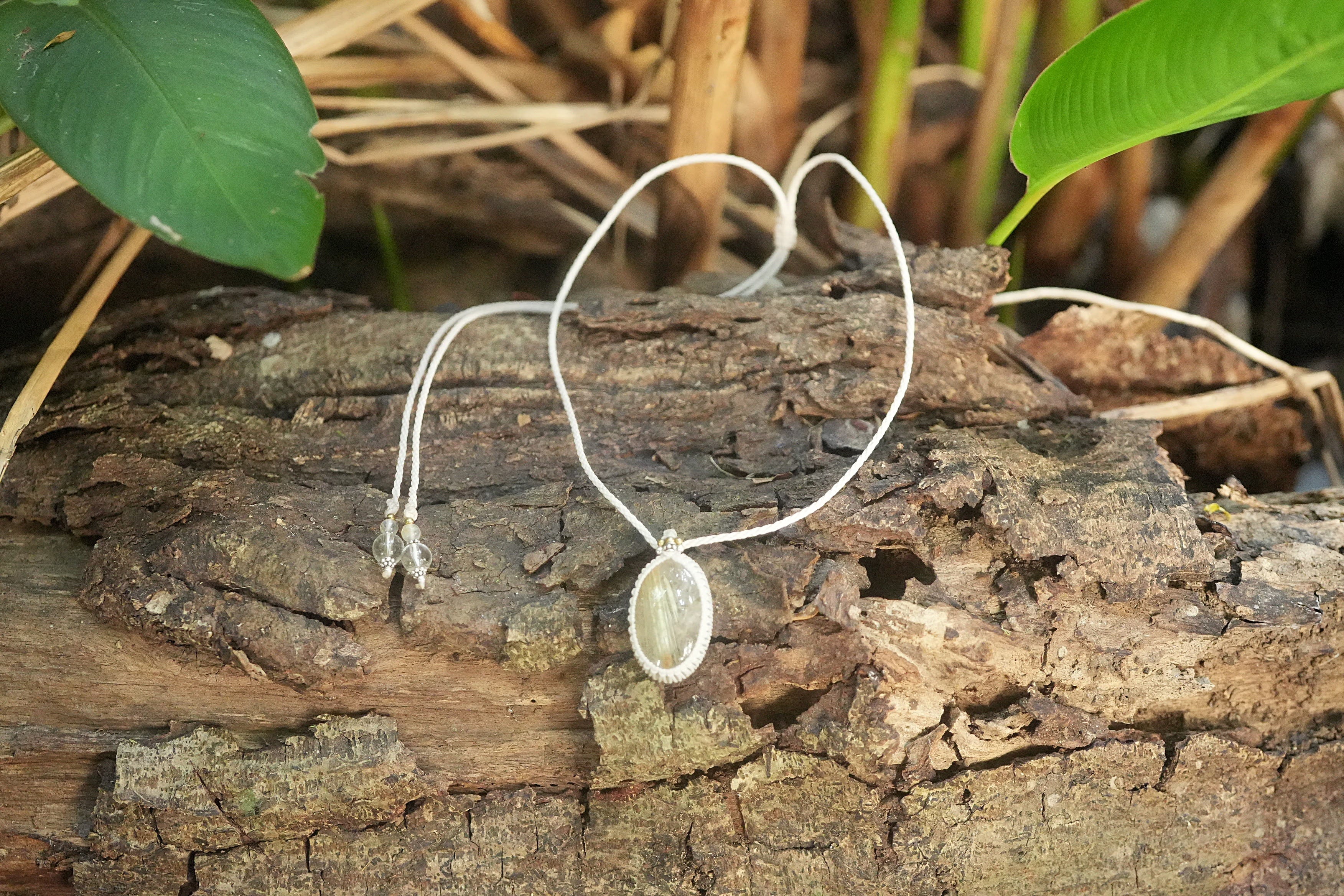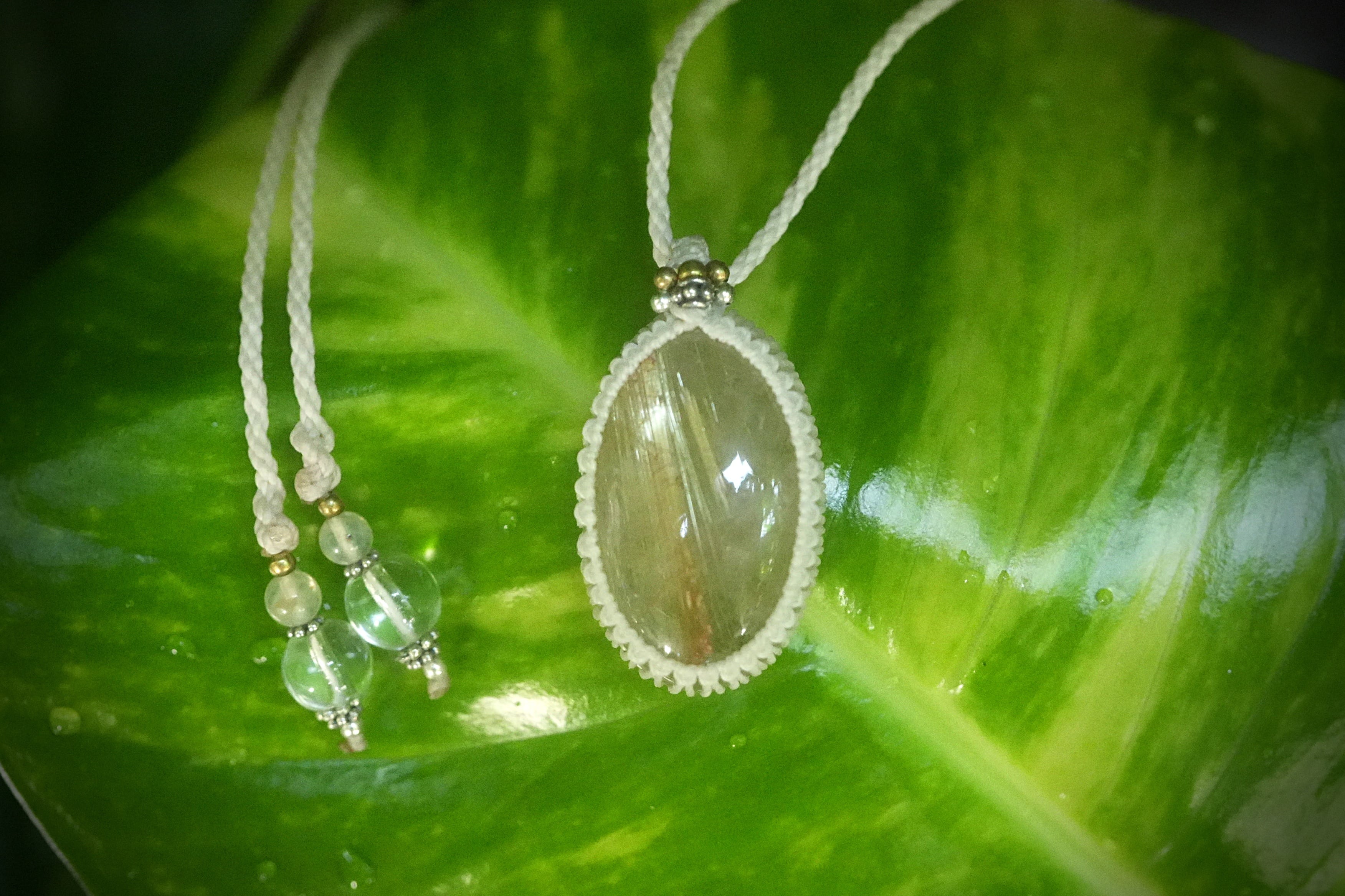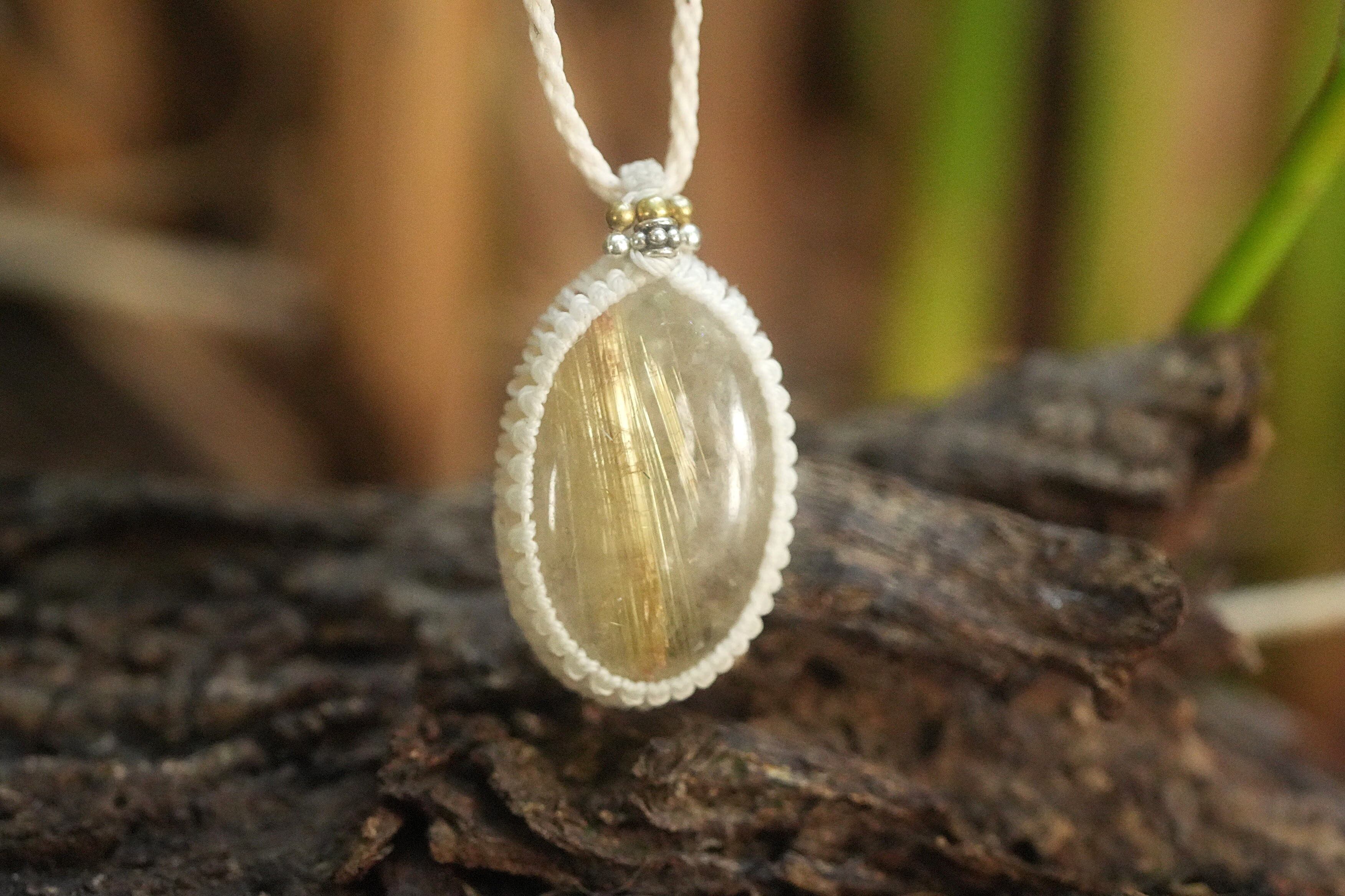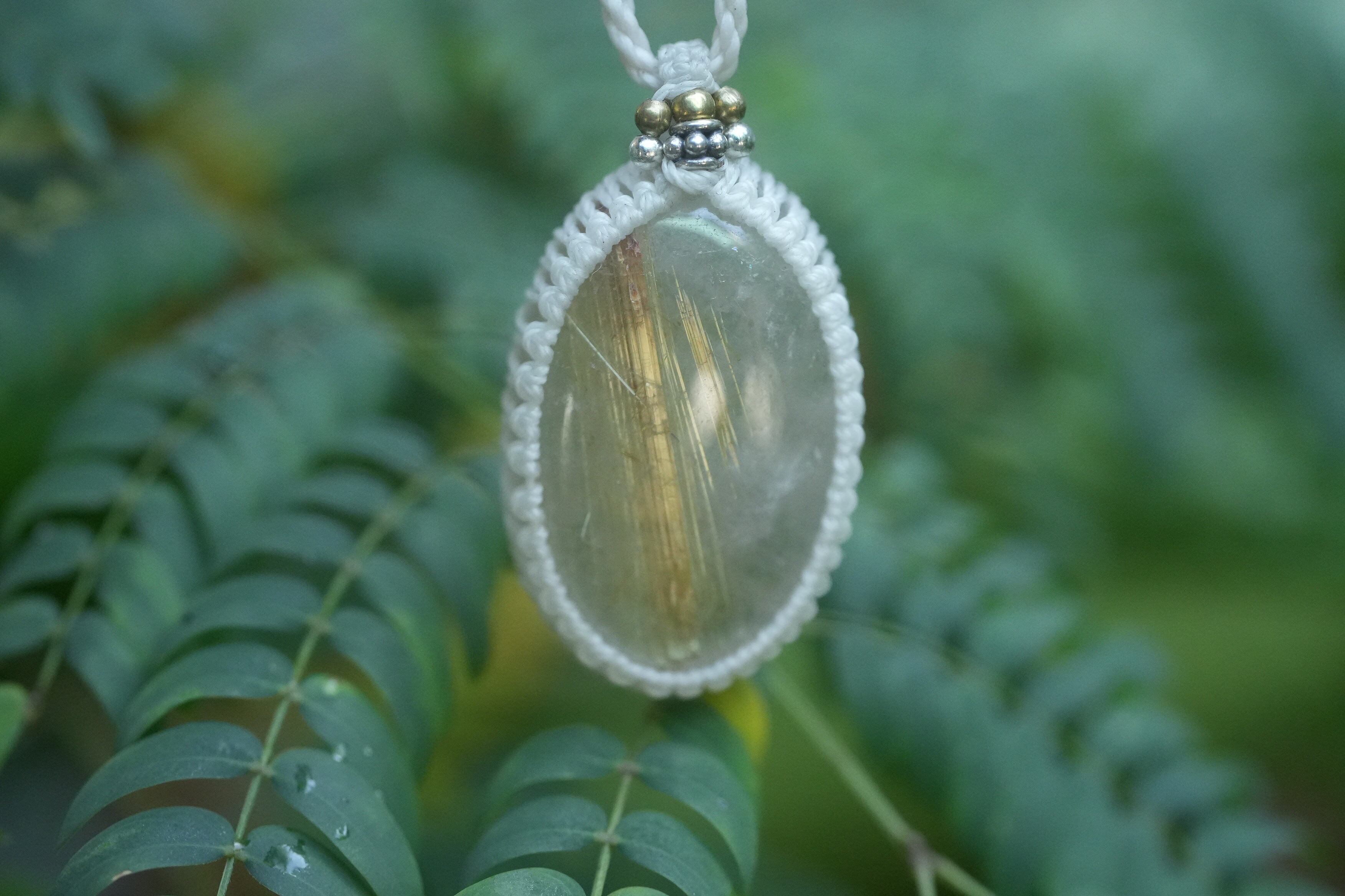 鋭い金箔★ゴールドルチルインクォーツ マクラメネックレス1573