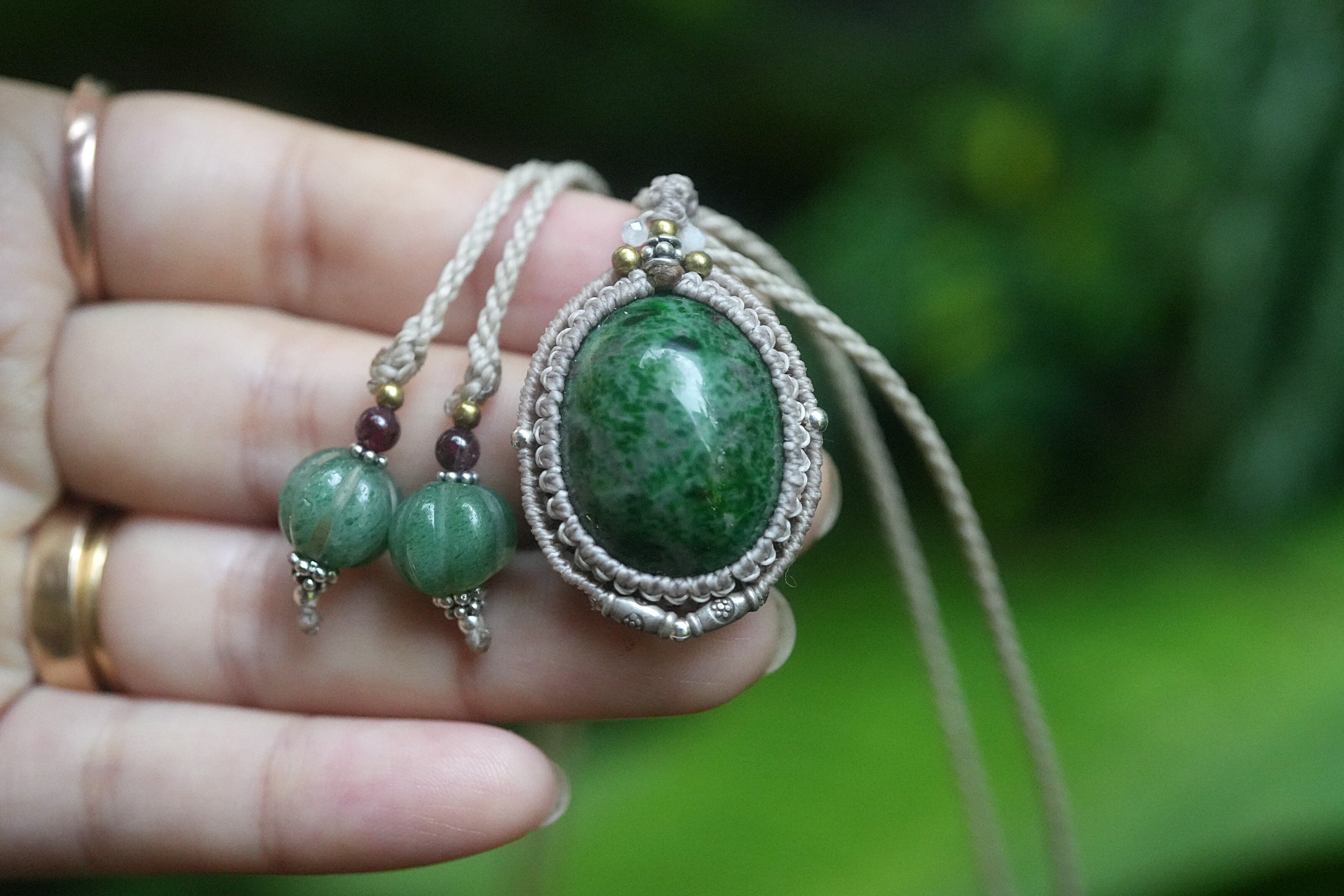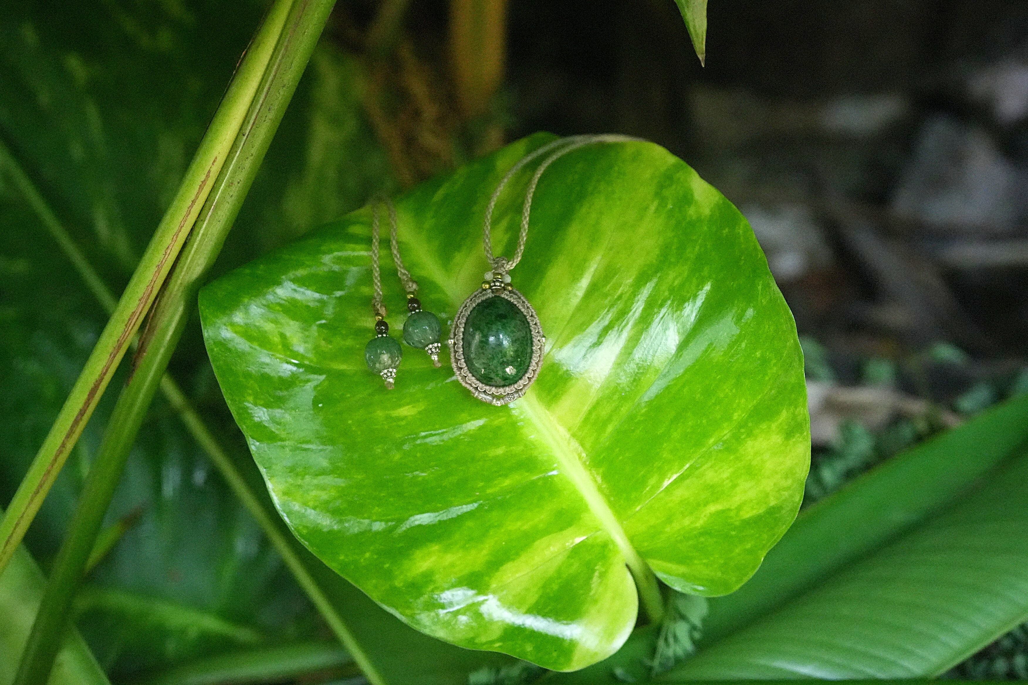 色味が鮮やかで大きなタイプをマクラメネックレスに仕上げました。