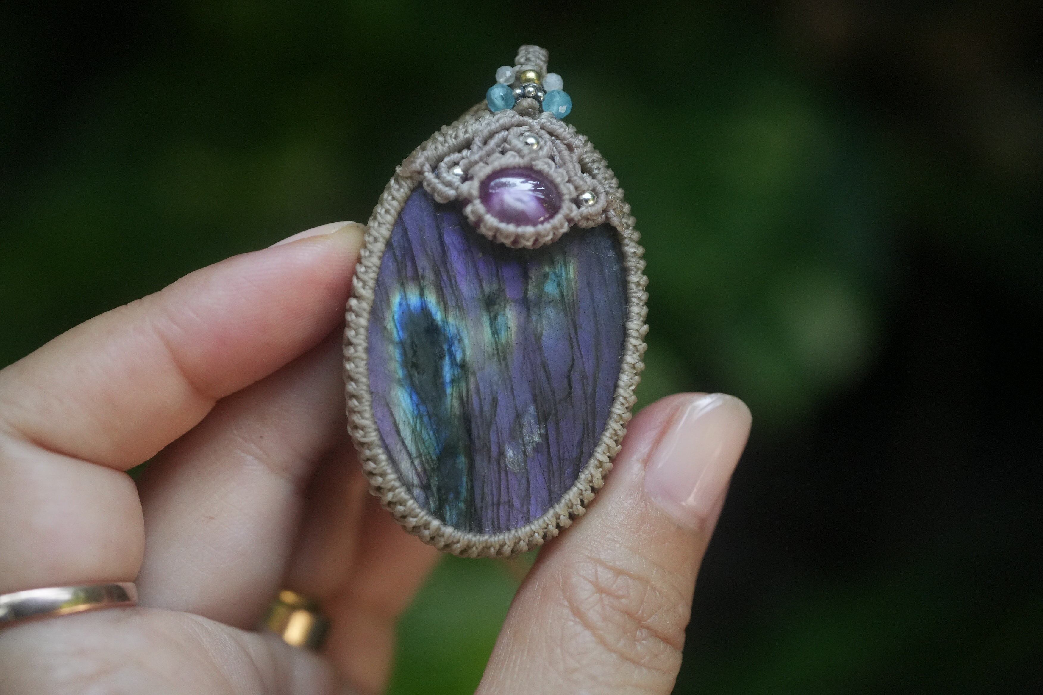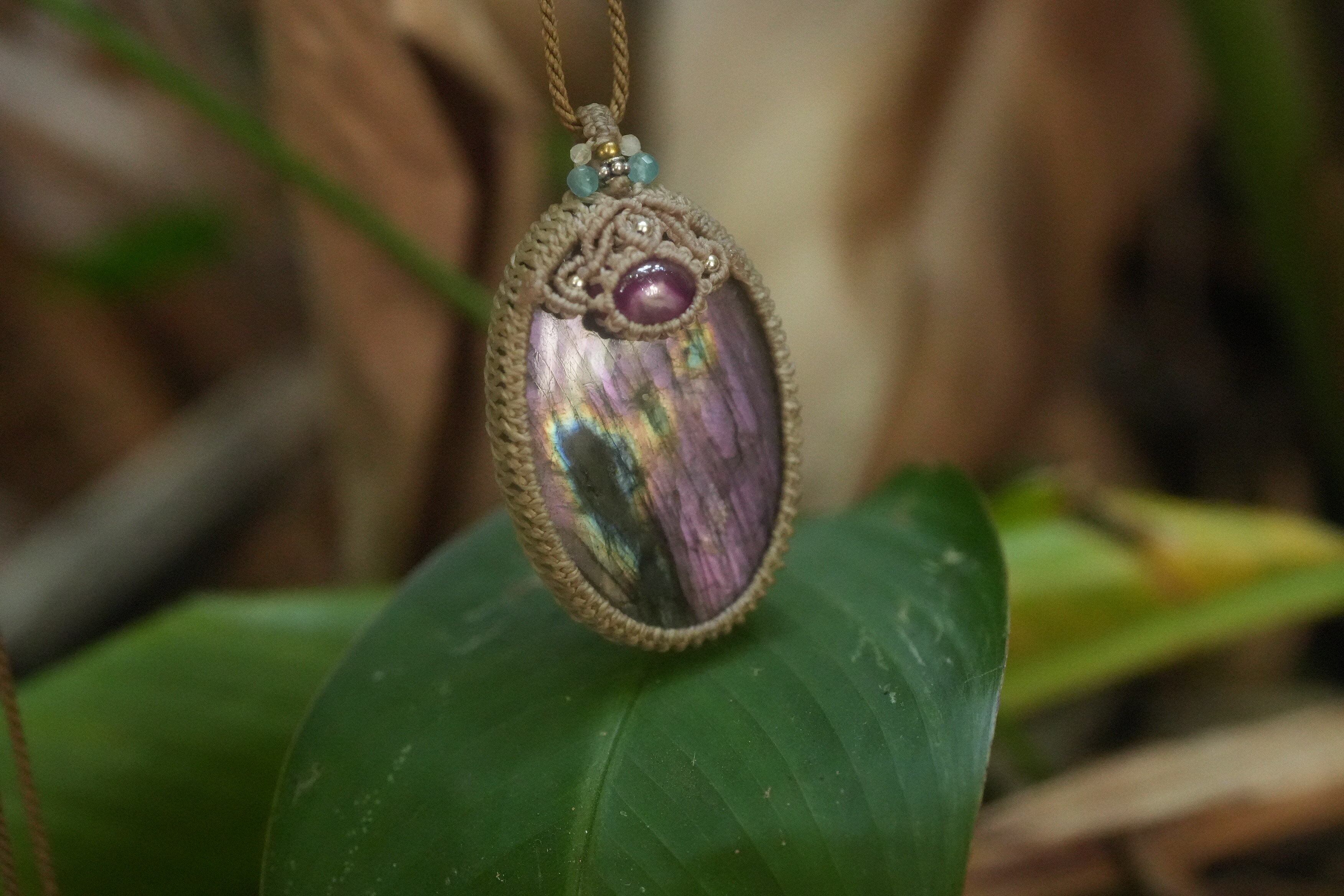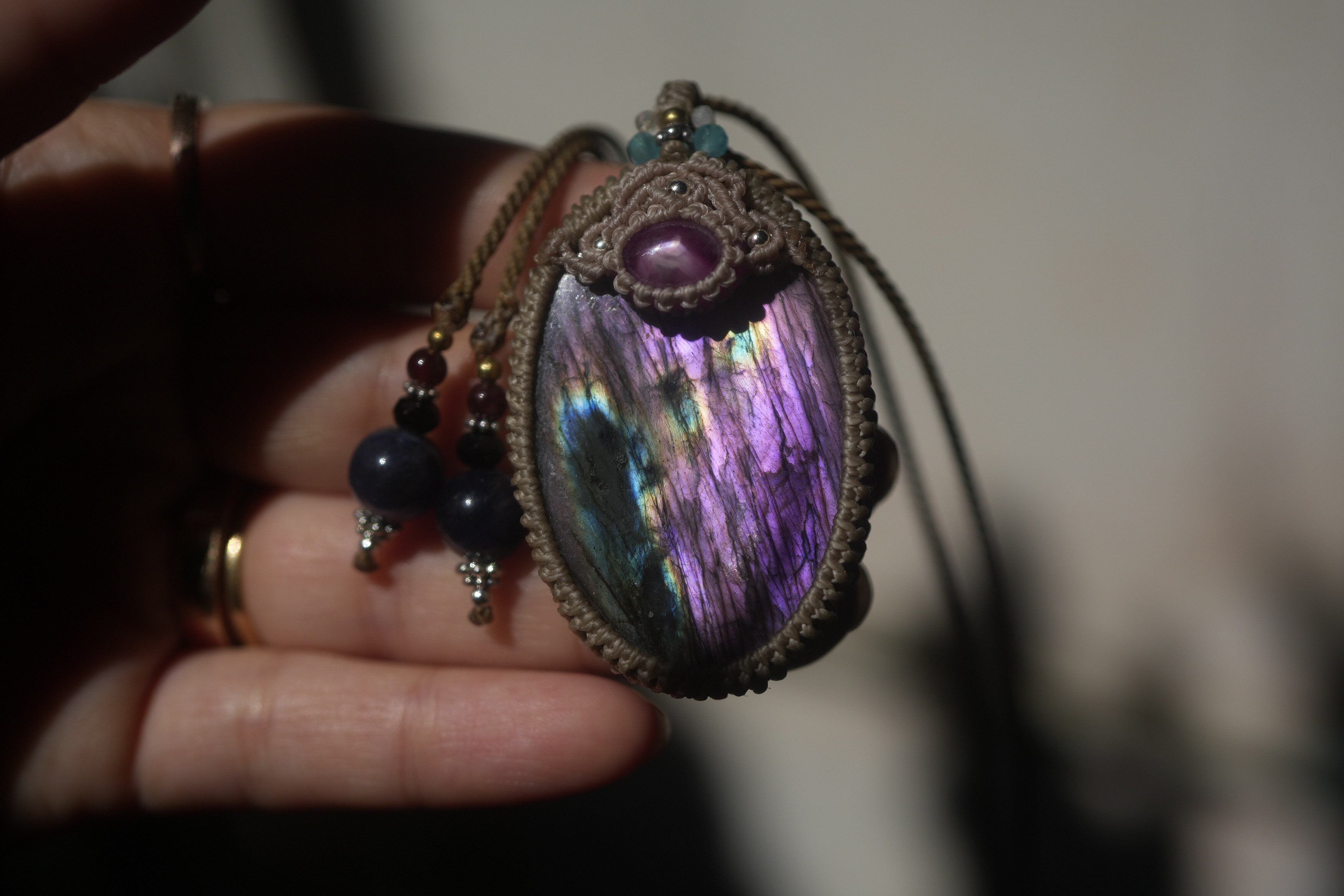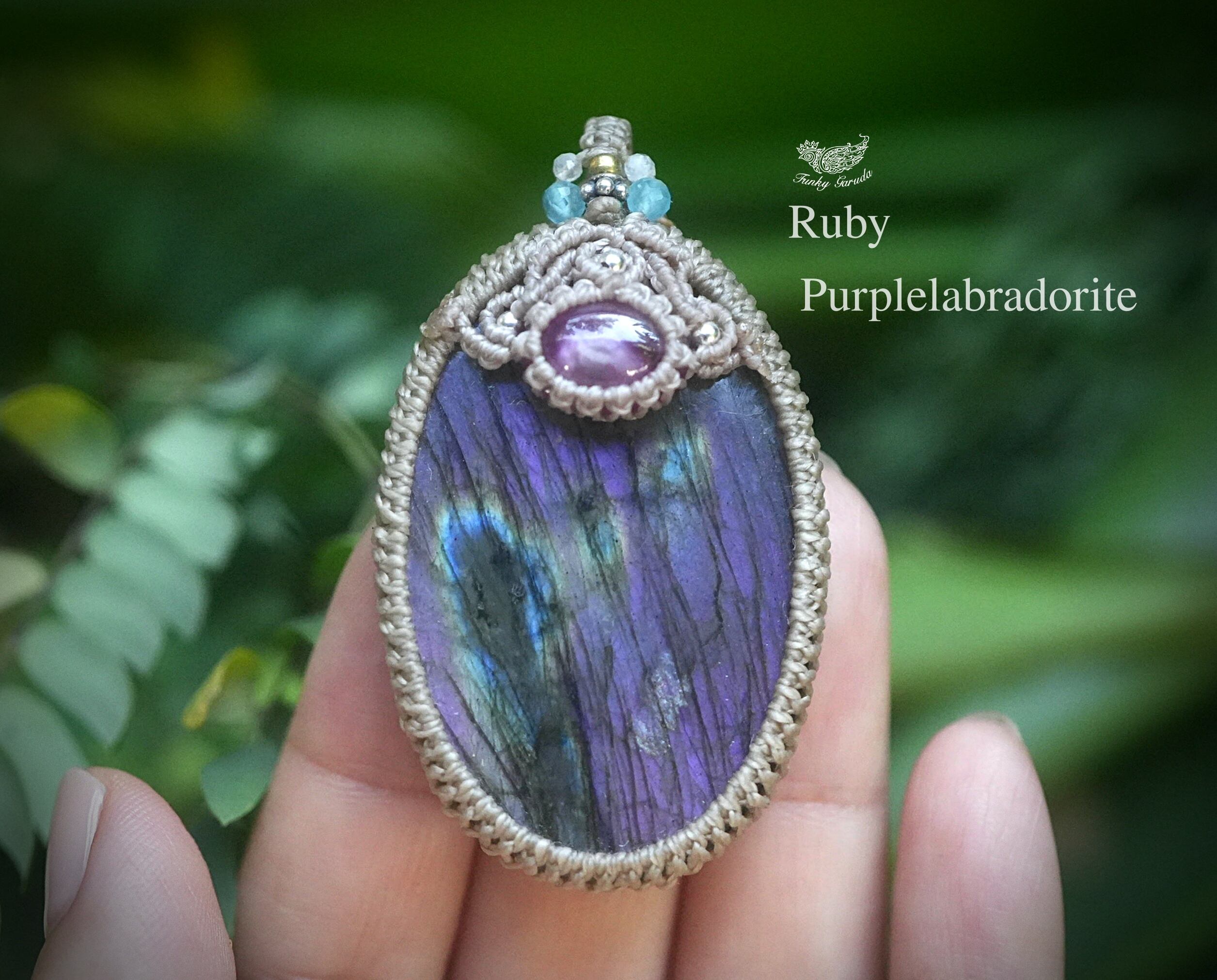 星の光に祈りを★スタールビー パープルラブラドライト マクラメネックレス1576