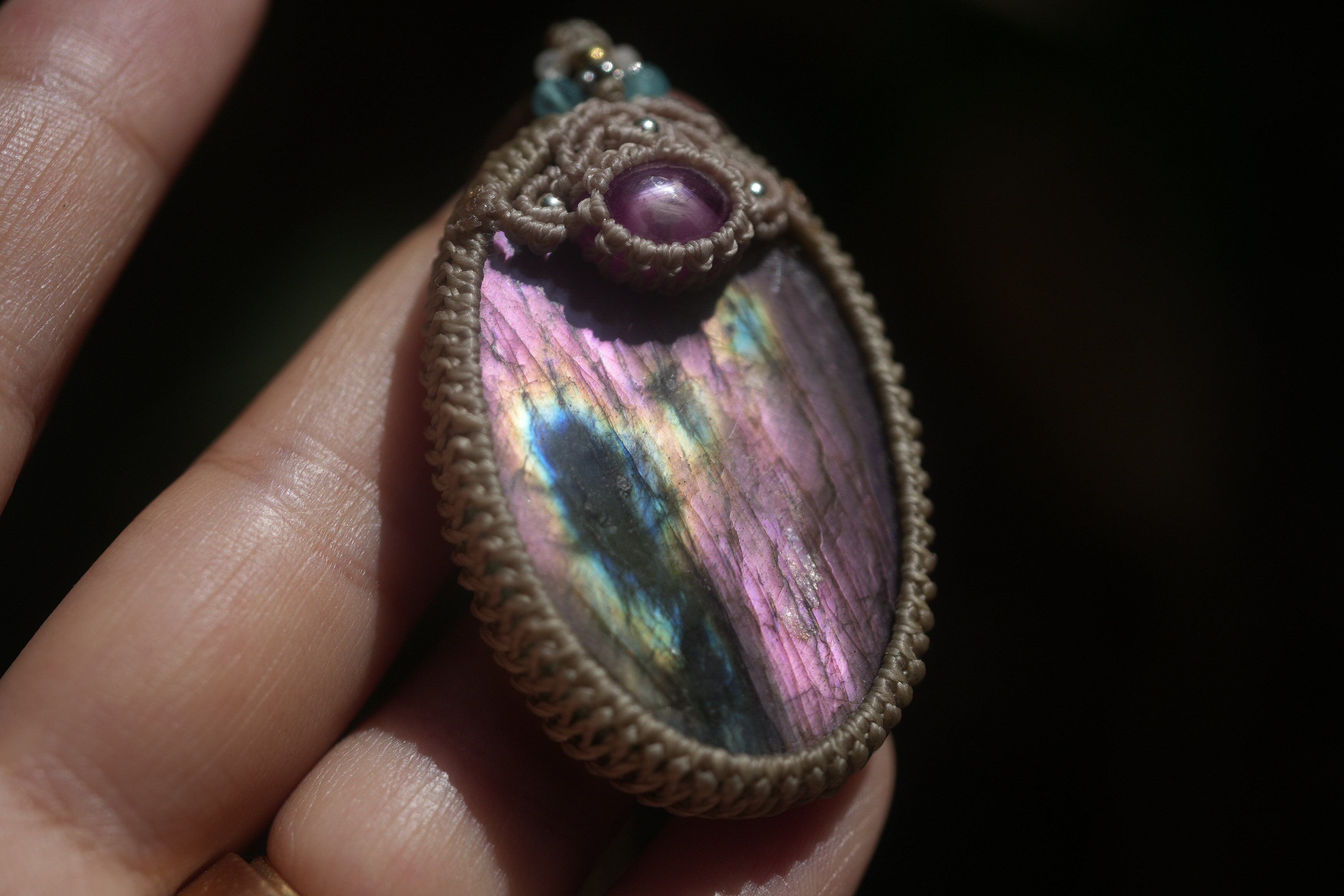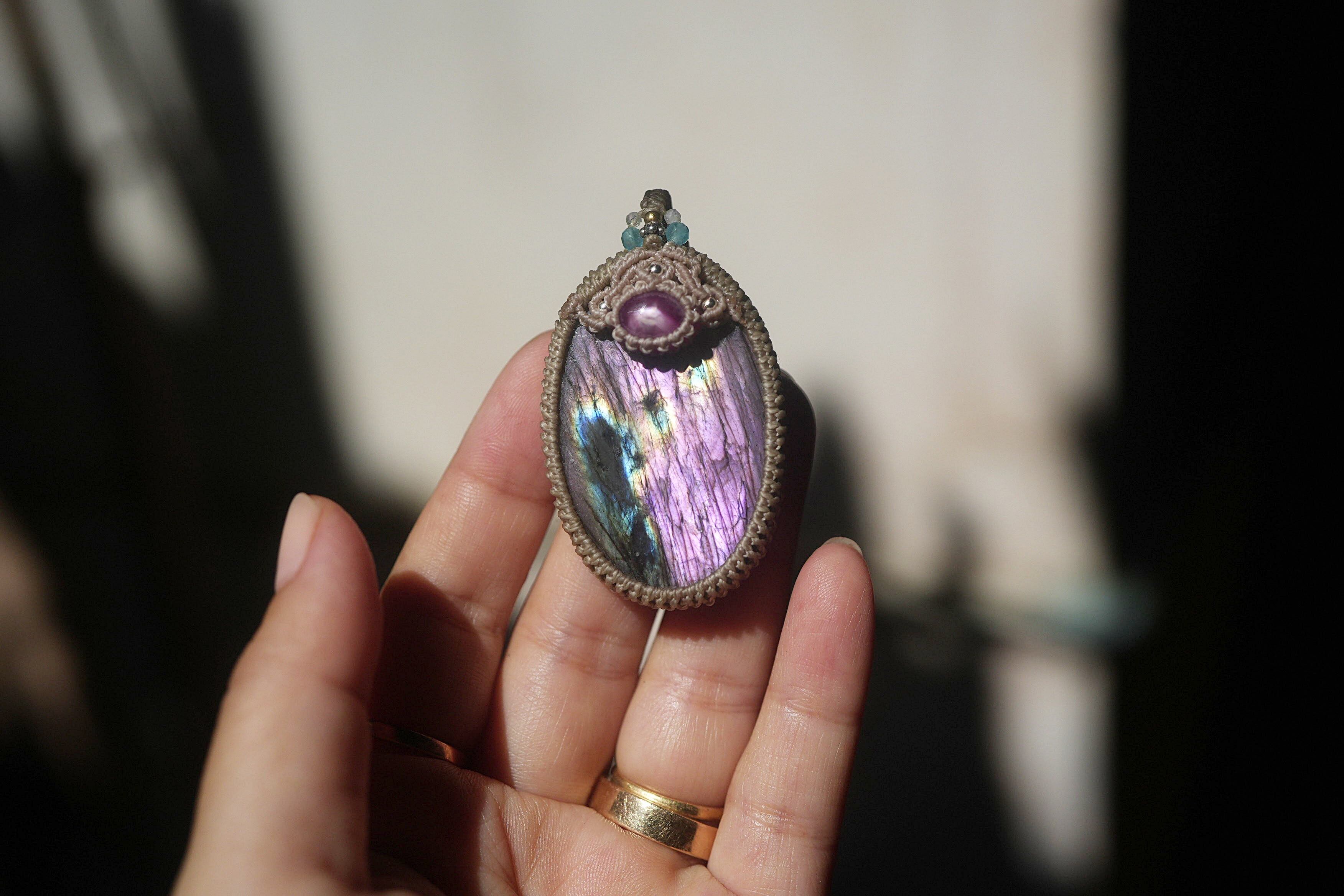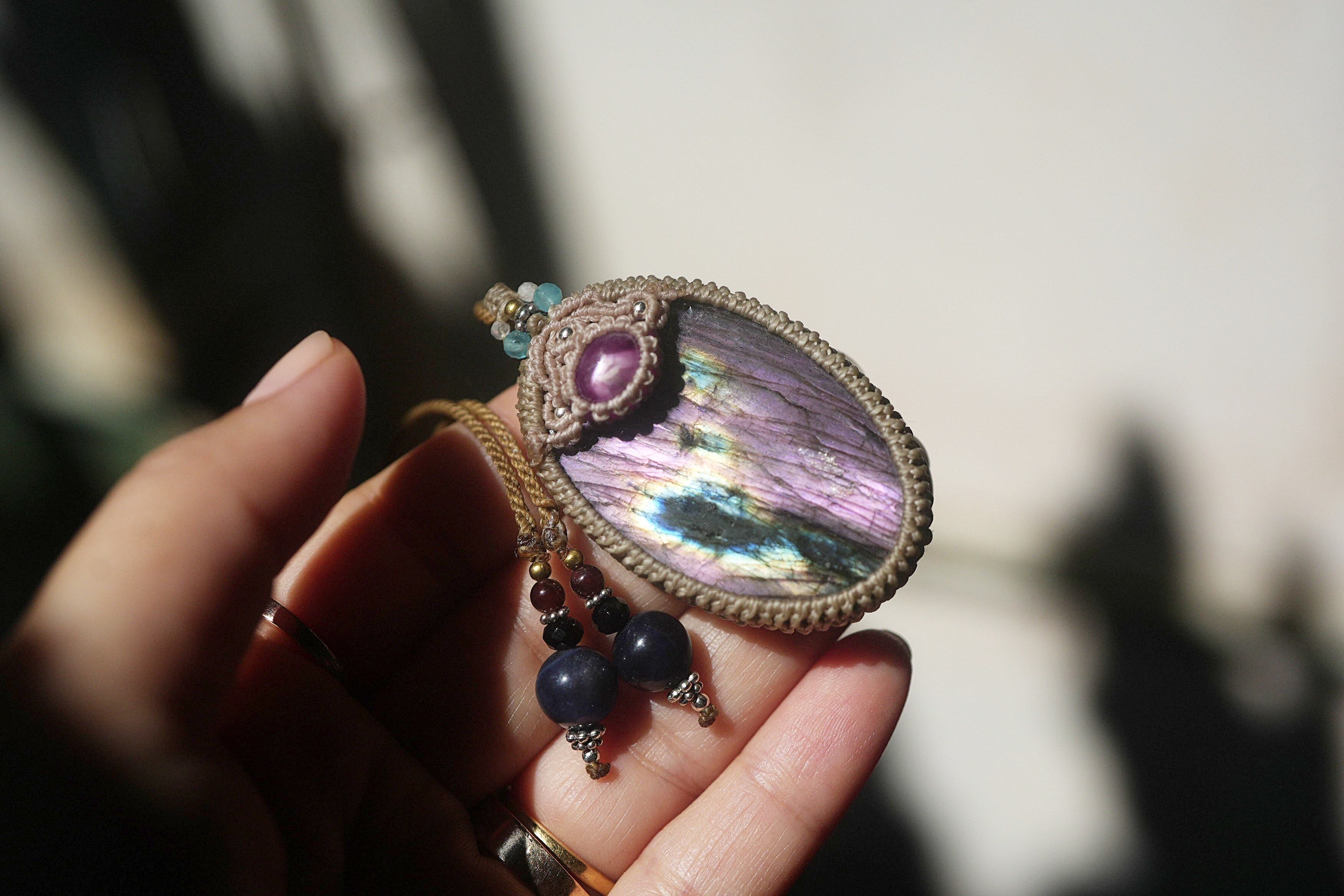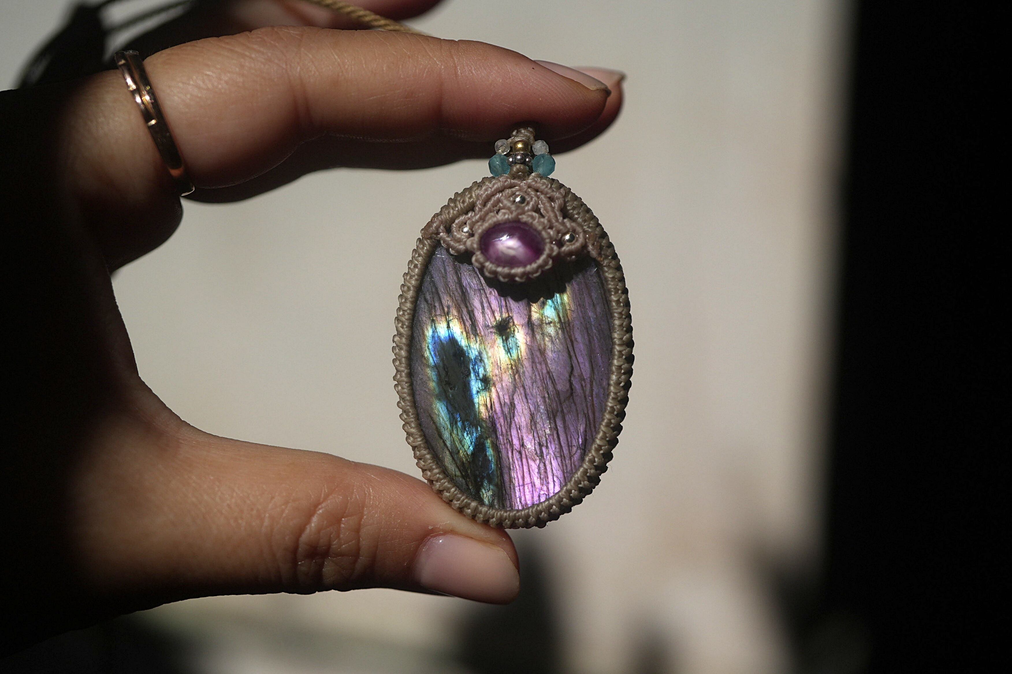 星の光に祈りを★スタールビー パープルラブラドライト マクラメネックレス1576