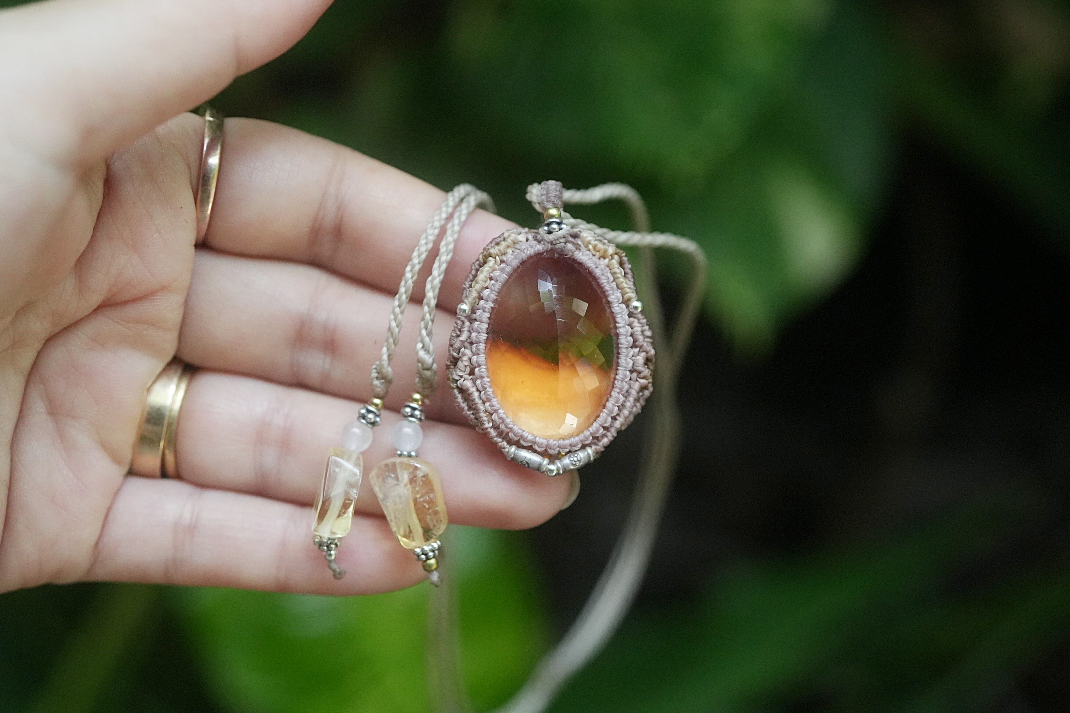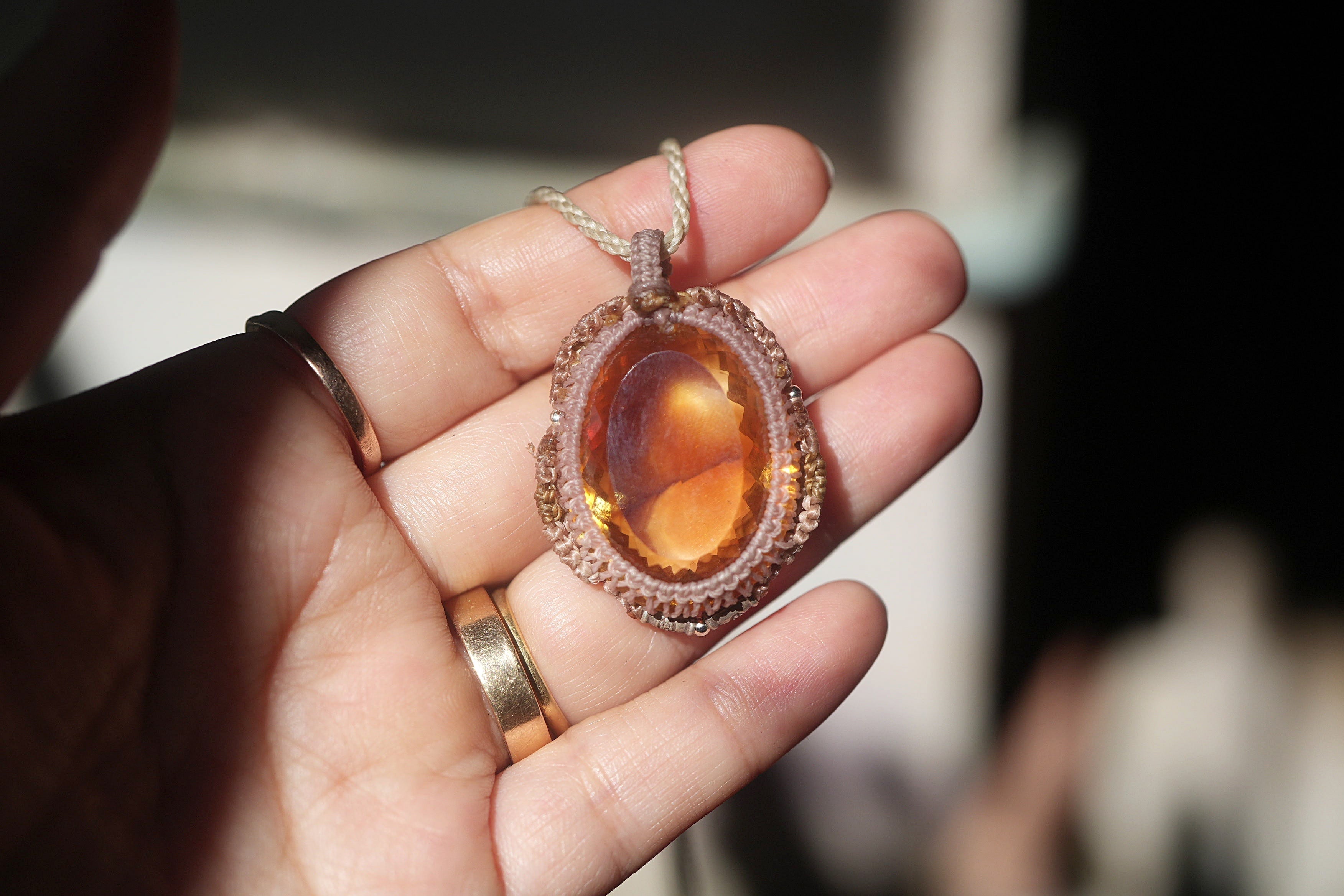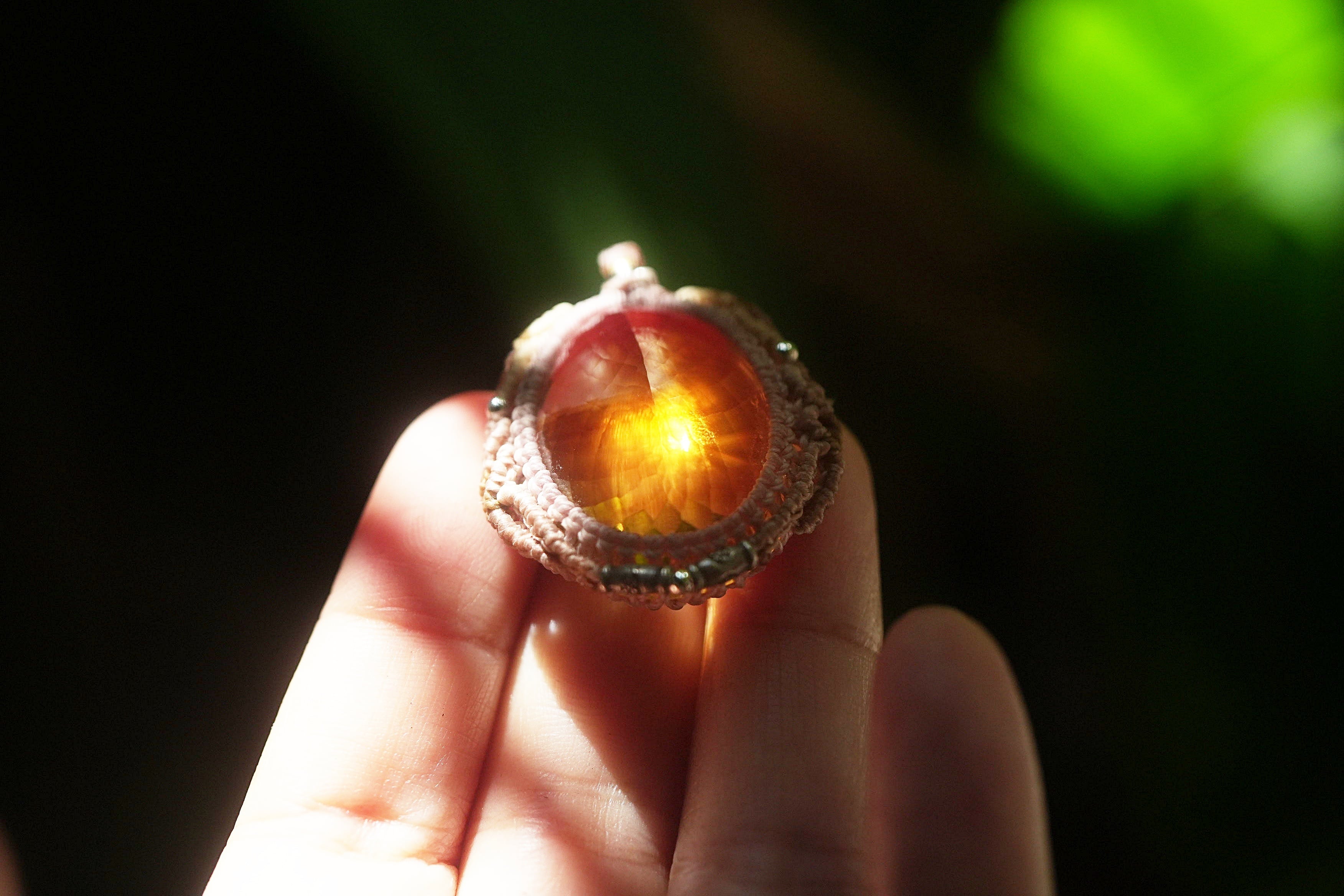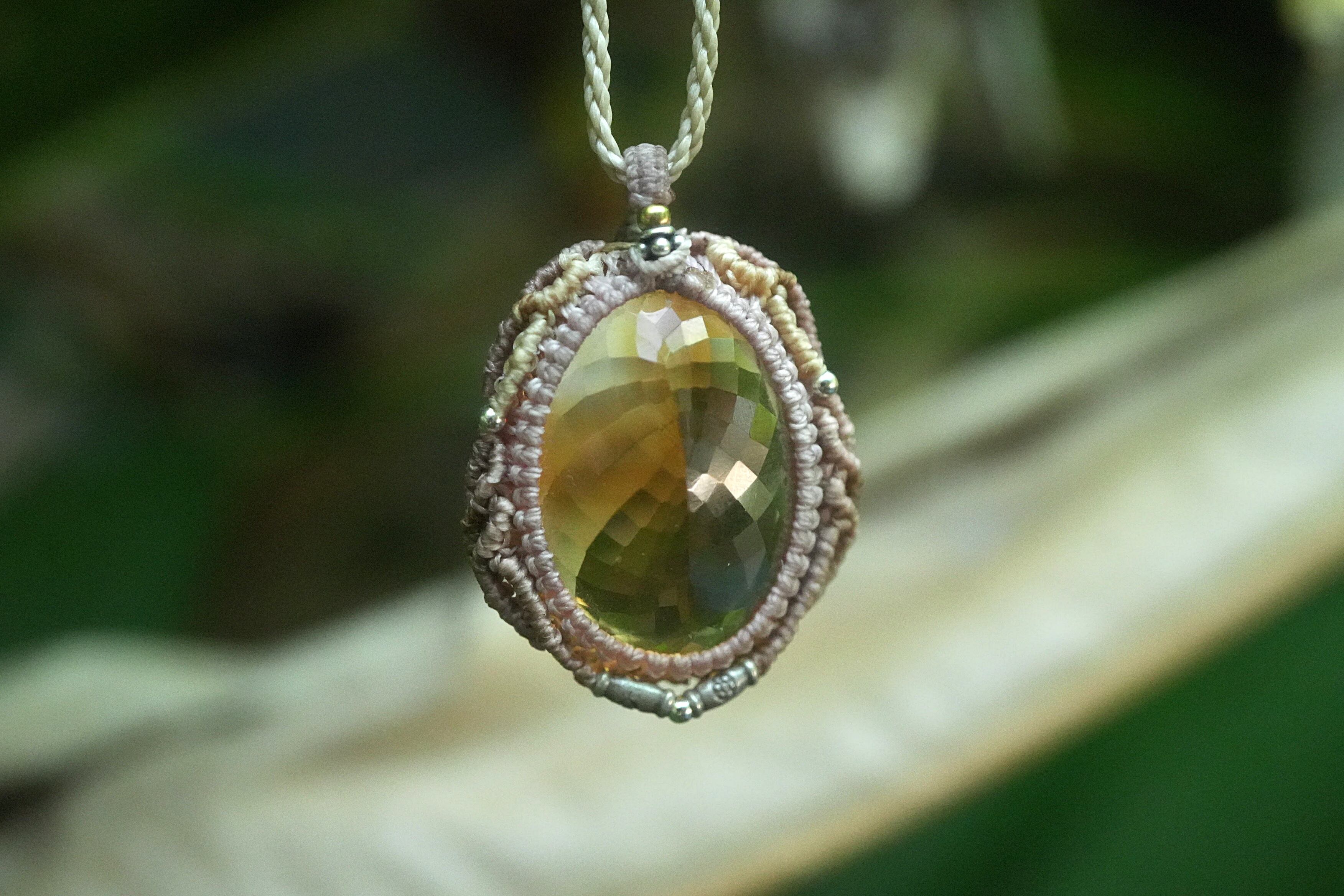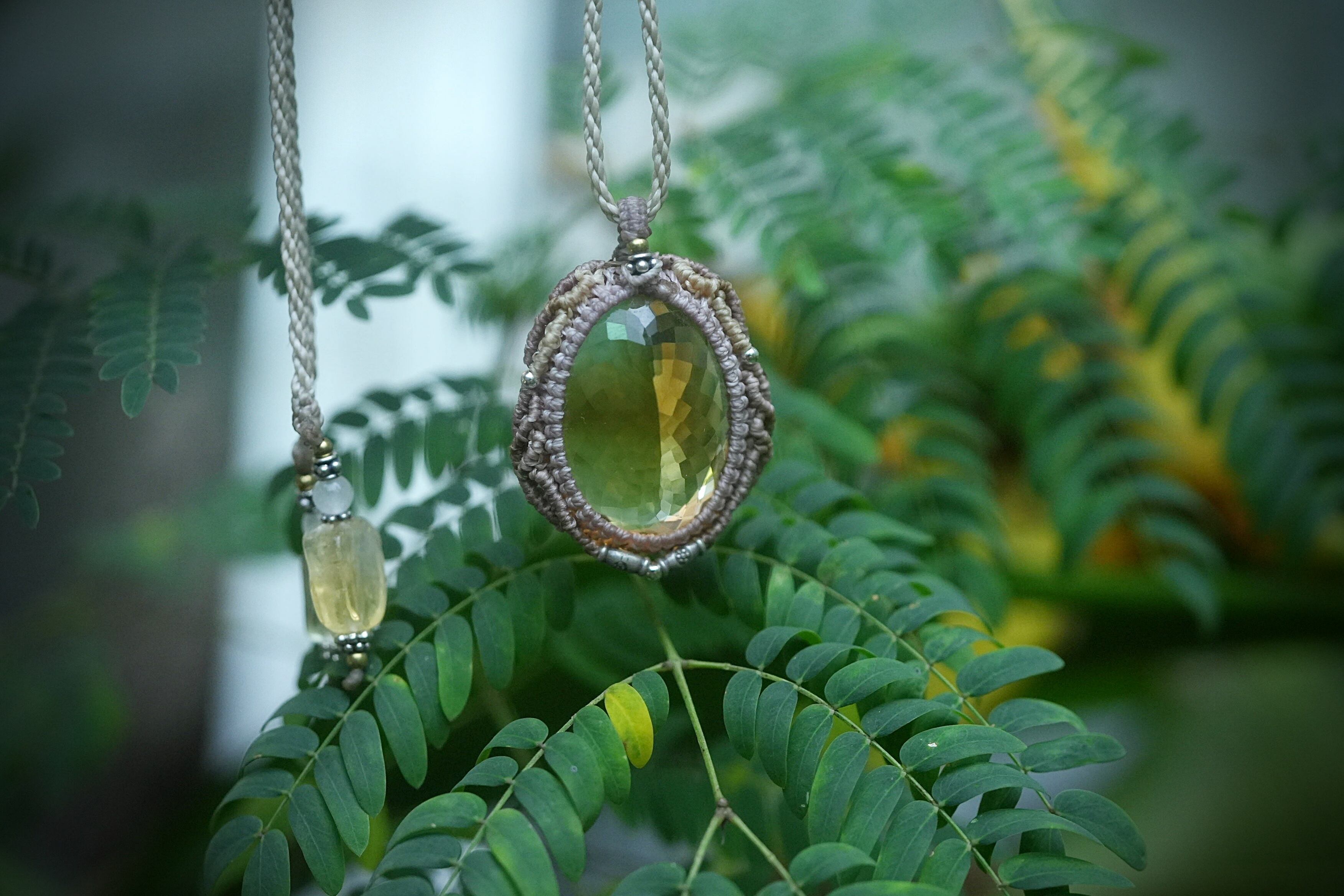 大粒金貨★ファセットカット★シトリン マクラメネックレス1578