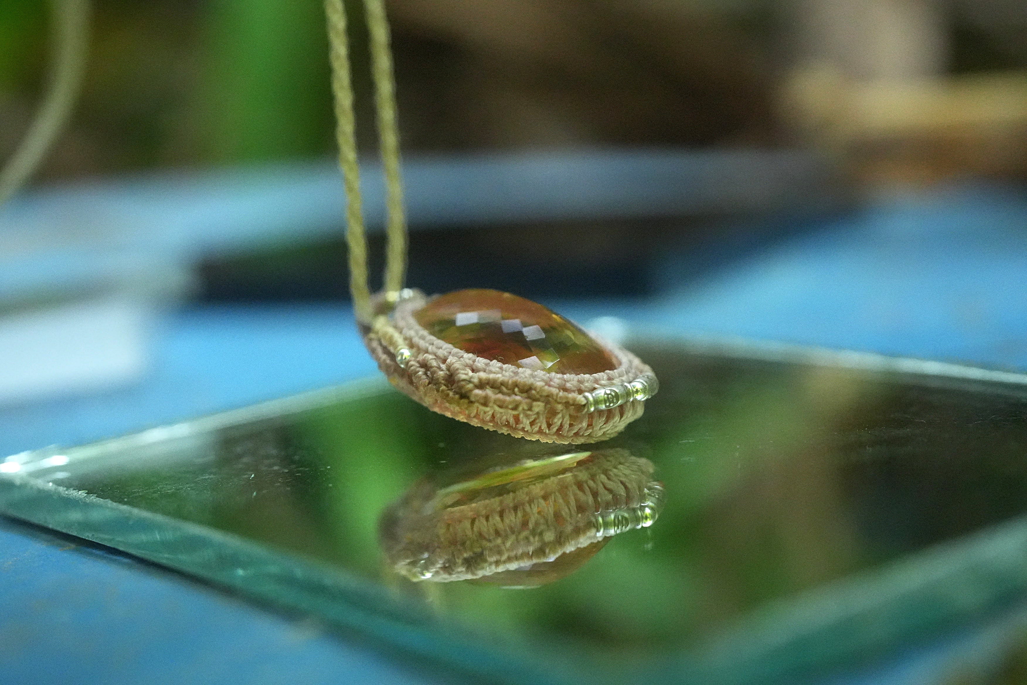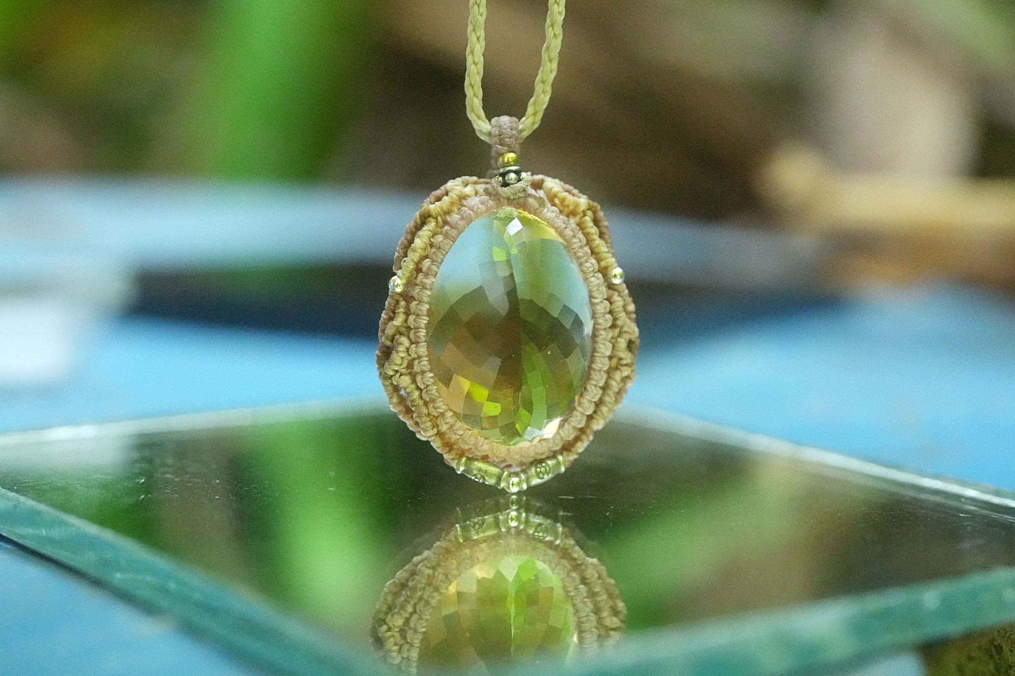 石の輝きに負けない、かつ、マクラメの編み目を大切に
