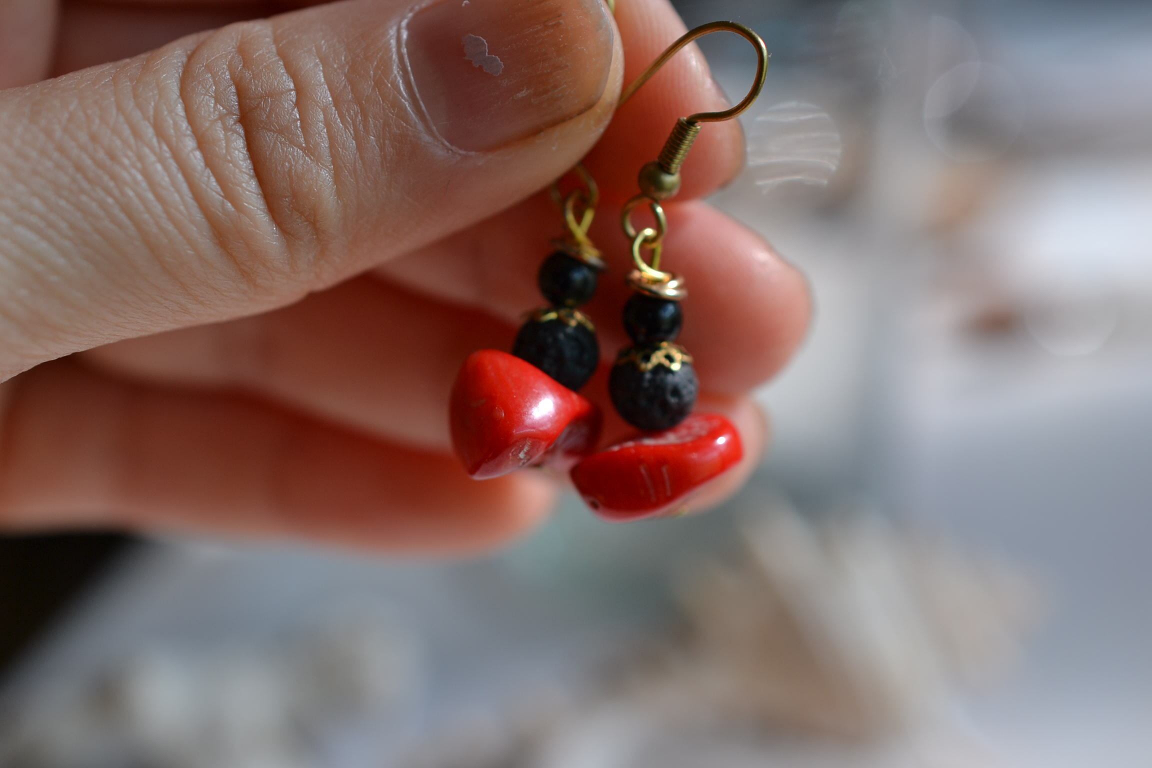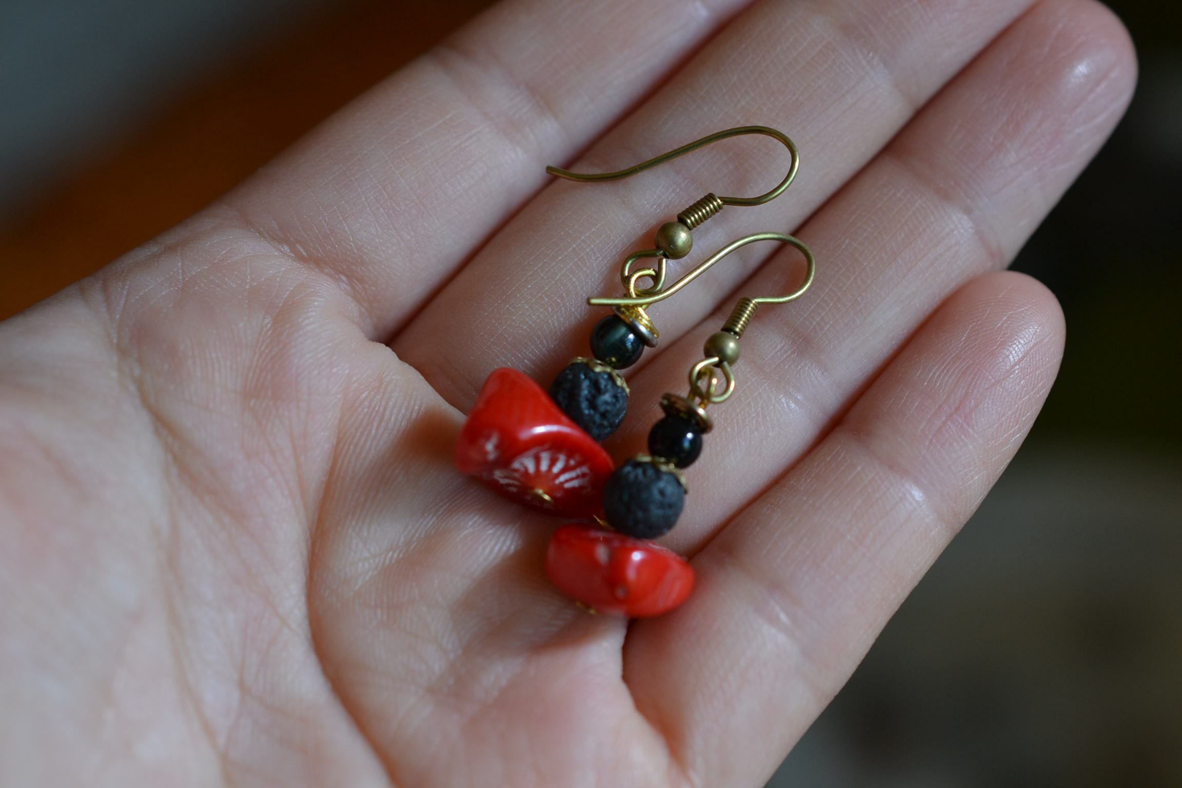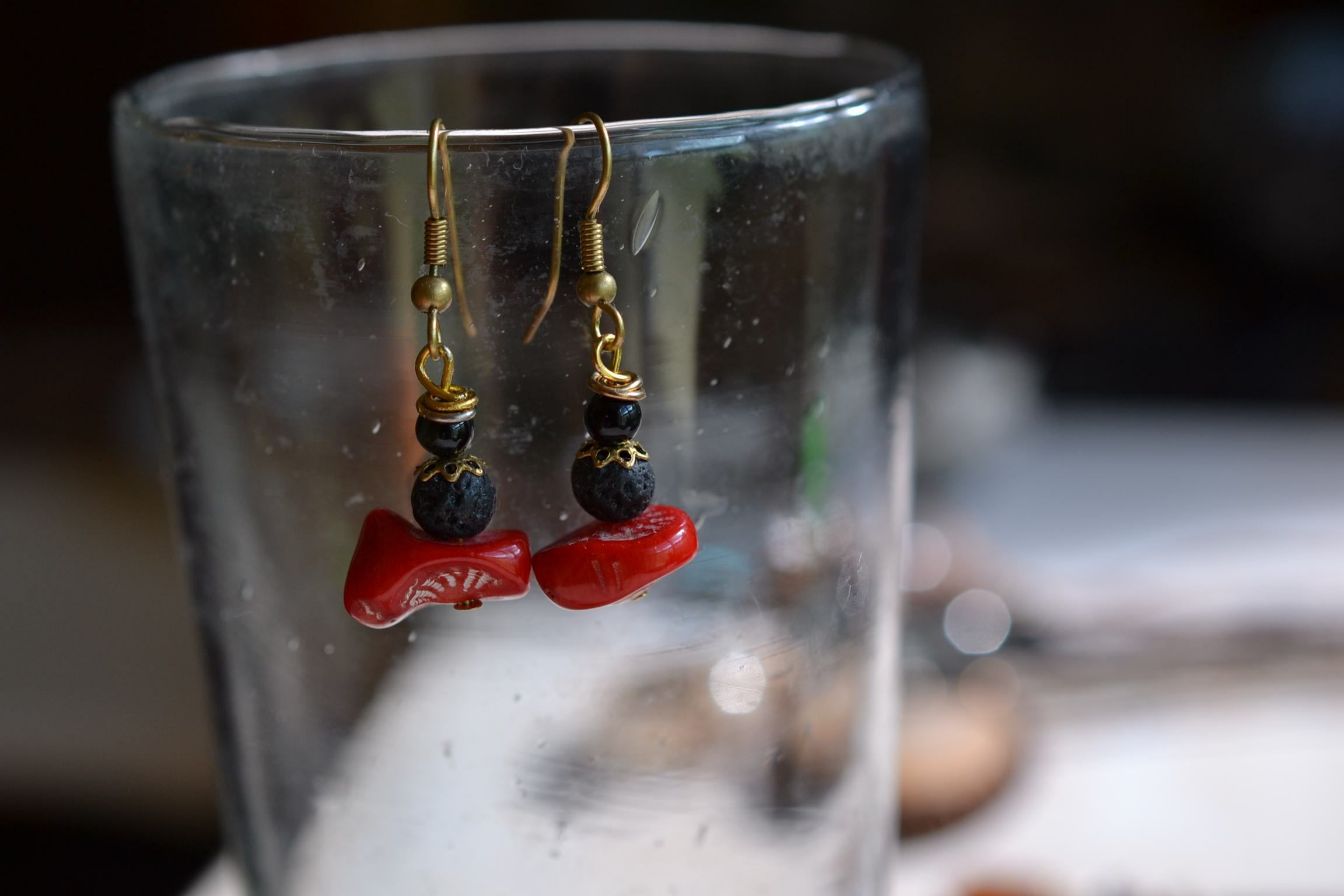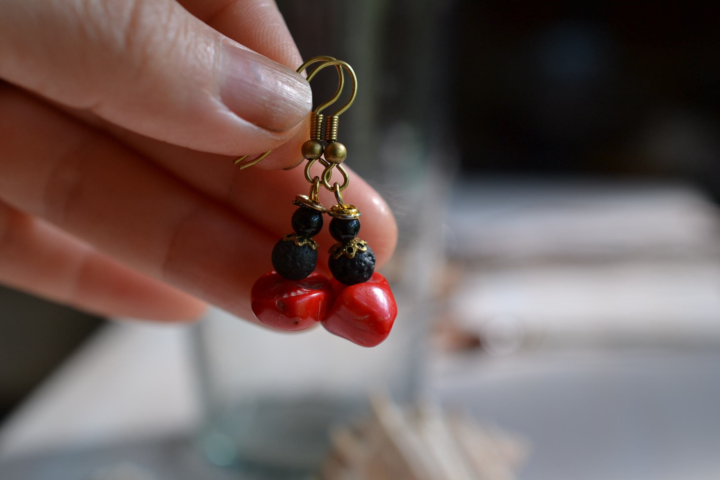 ブラックアゲートビーズを組み合わせてピアスを制作しました。