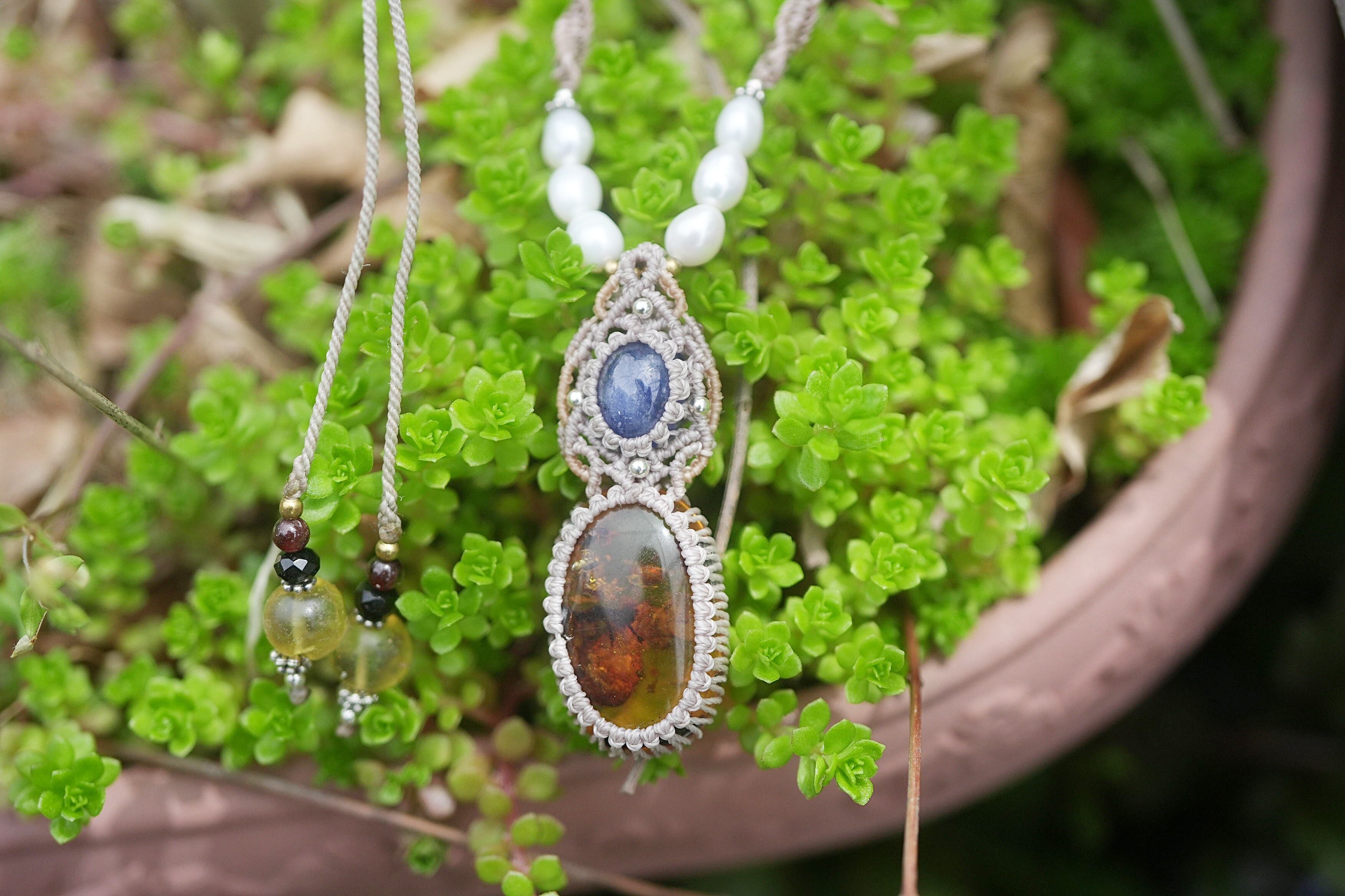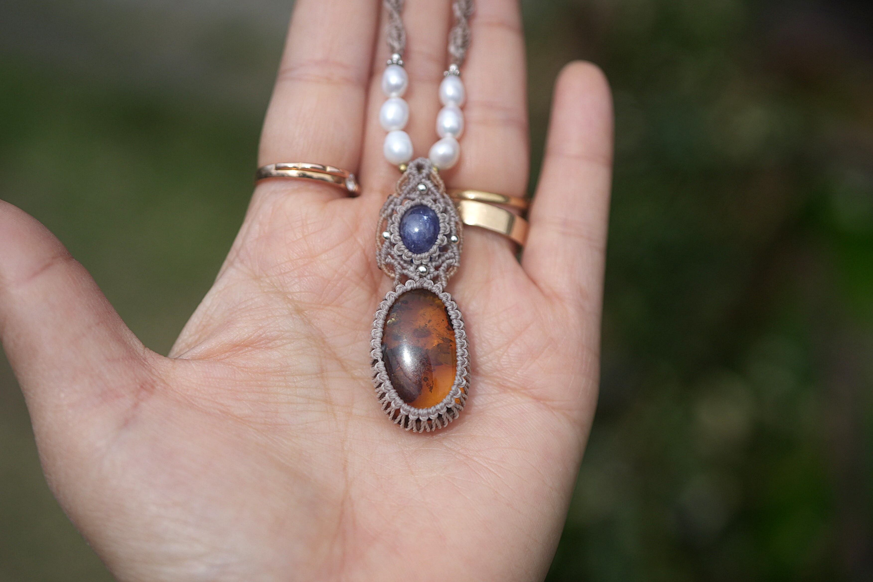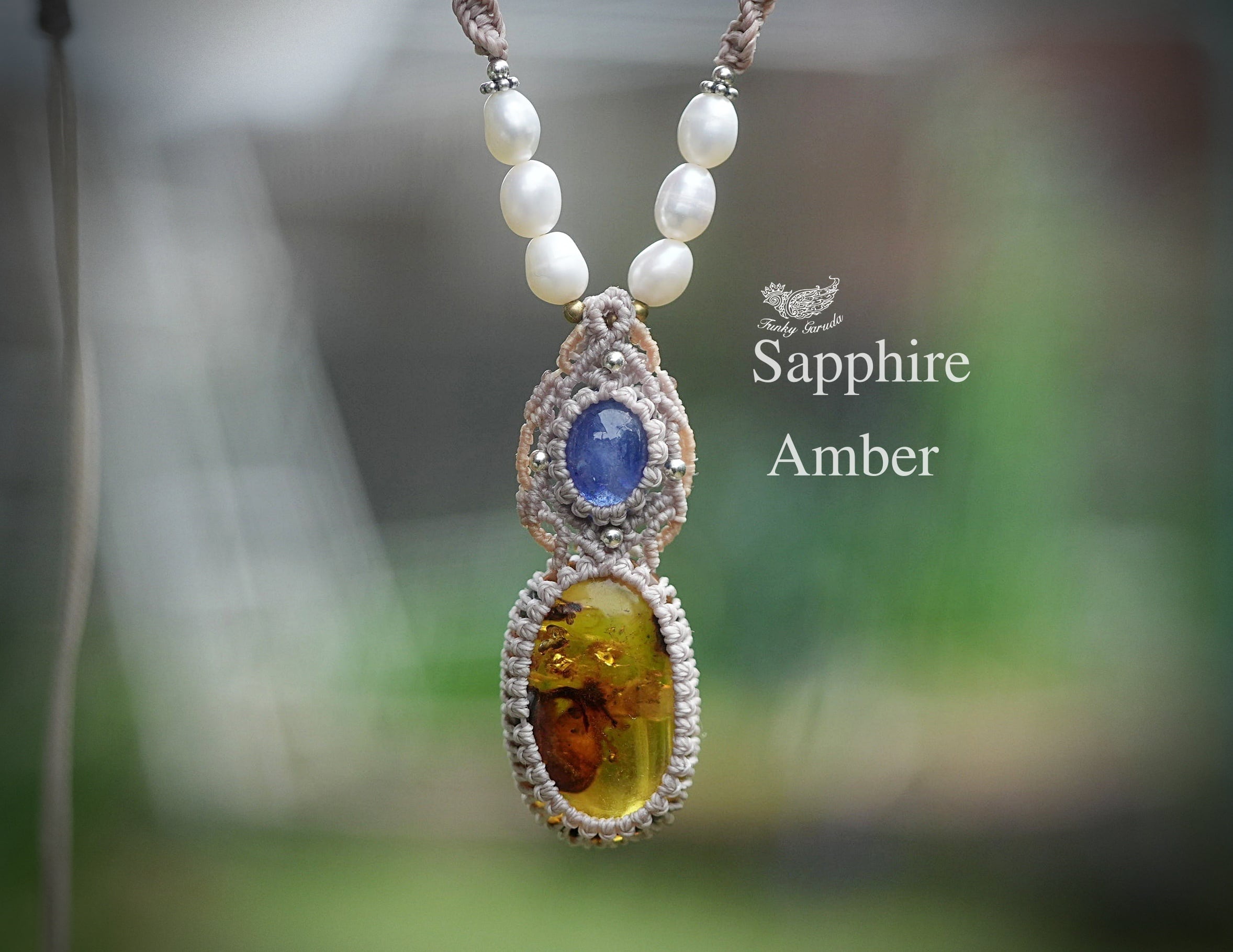 古代の奇跡とサファイア★アンバー マクラメネックレス1582