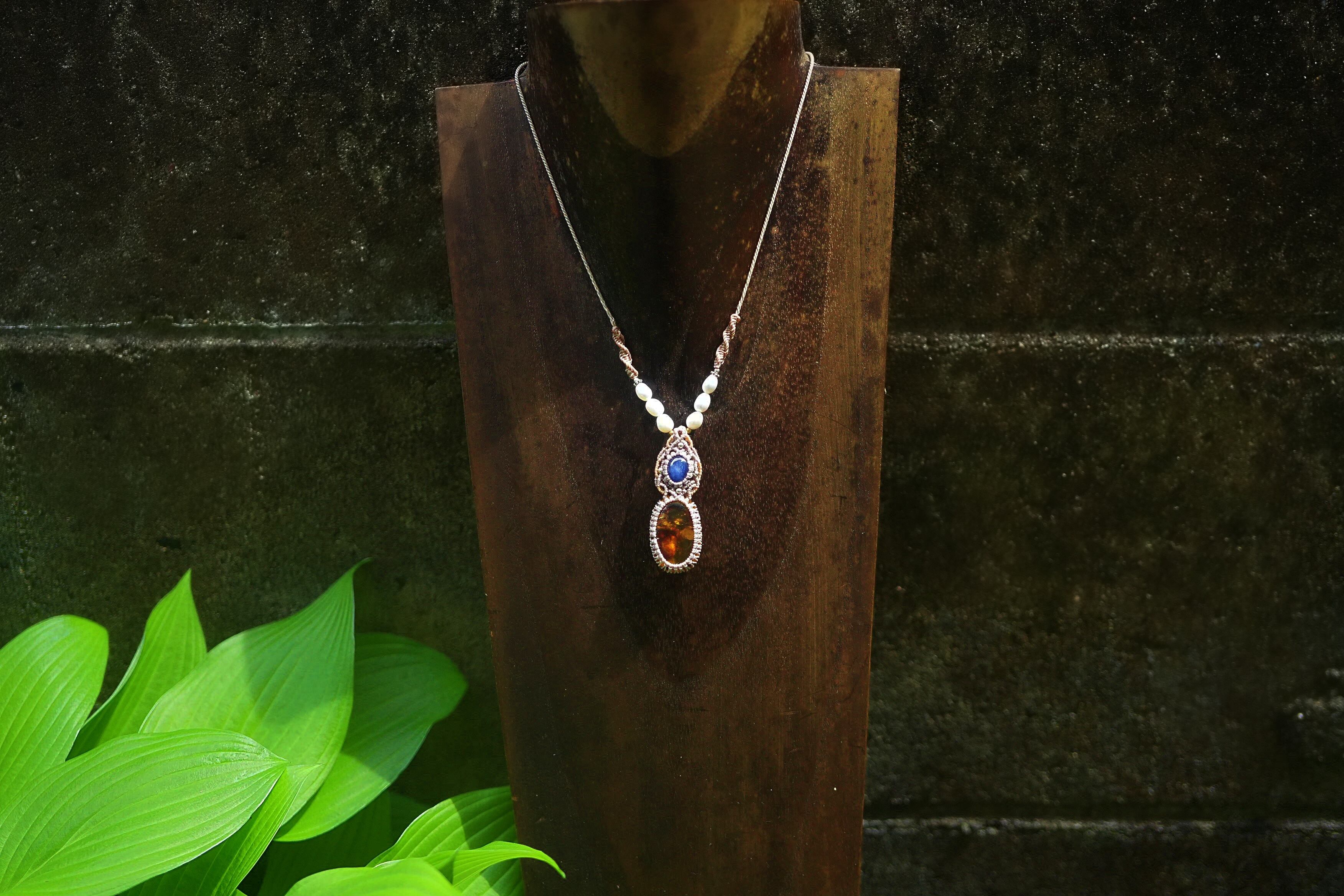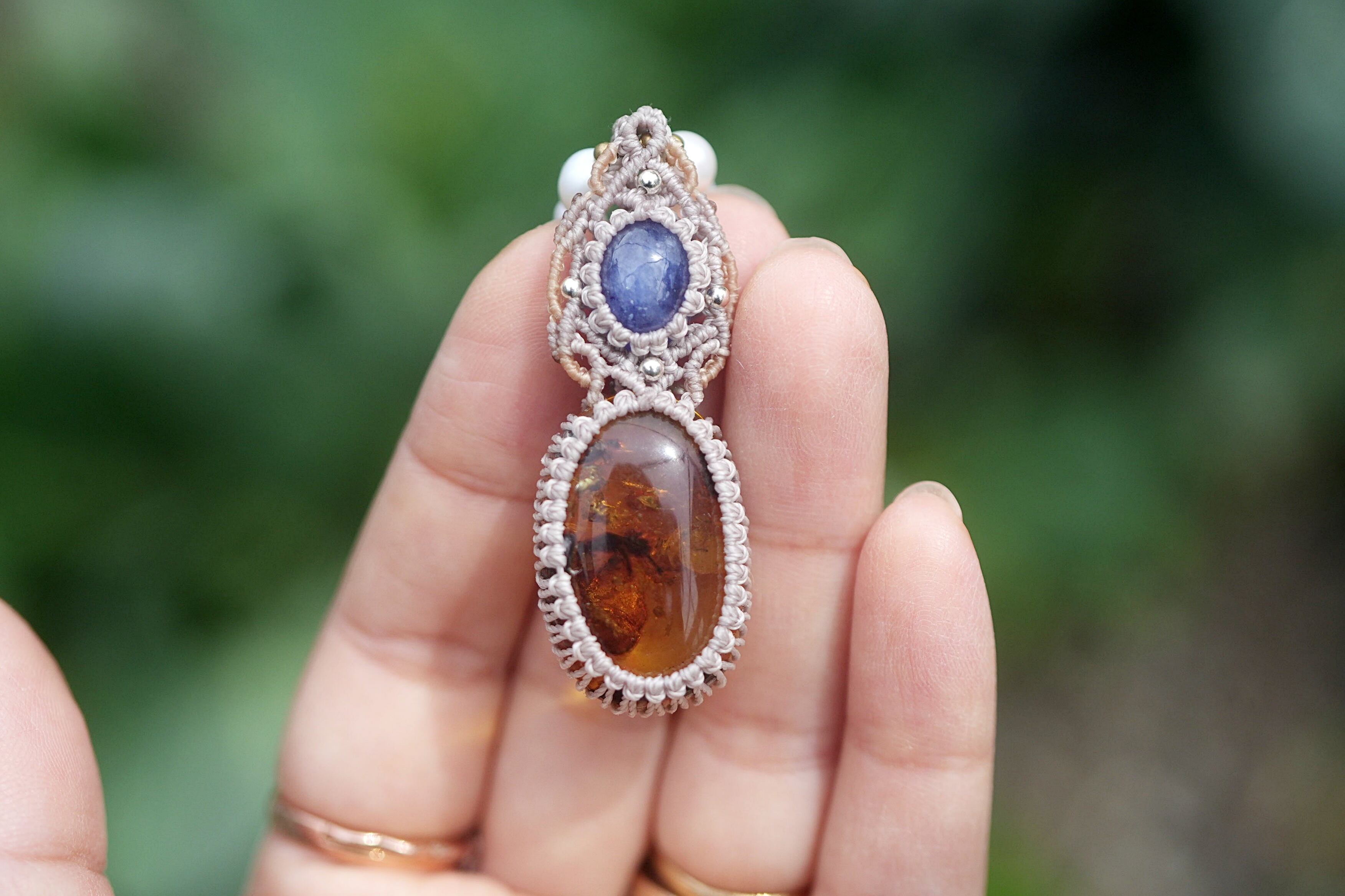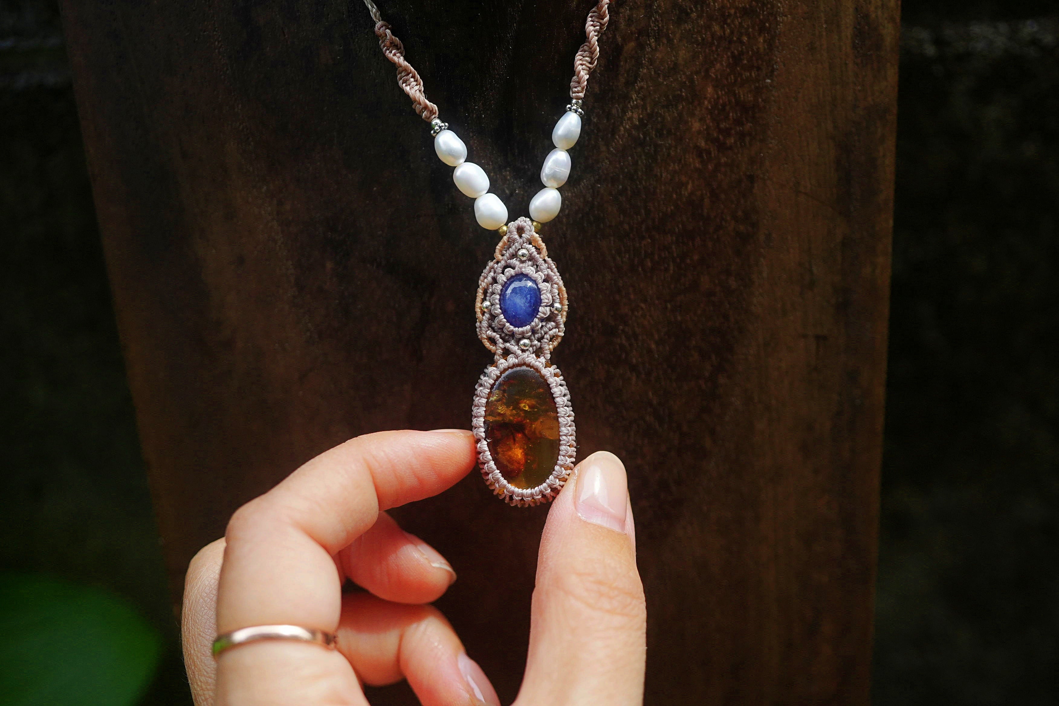 古代の奇跡とサファイア★アンバー マクラメネックレス1582
