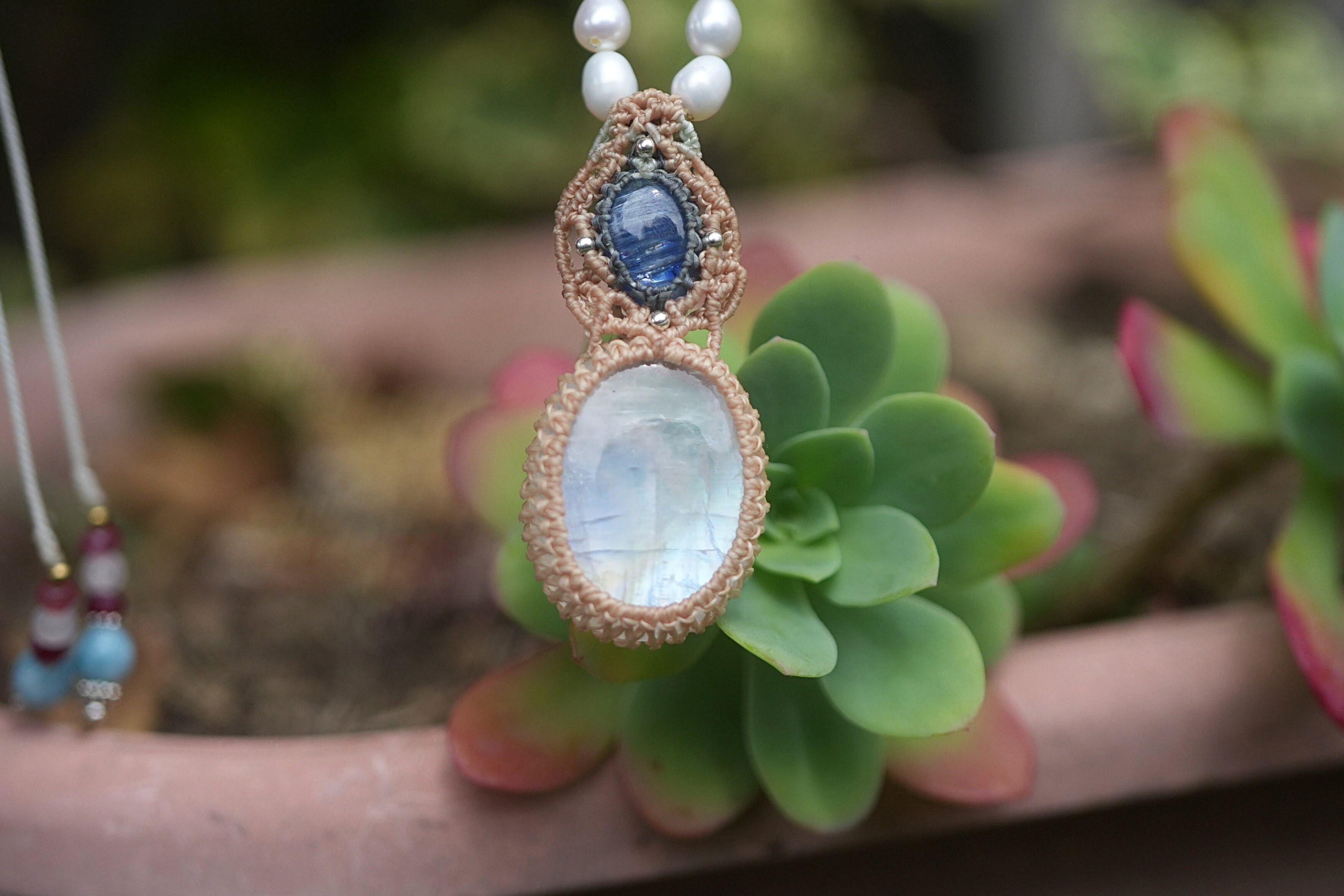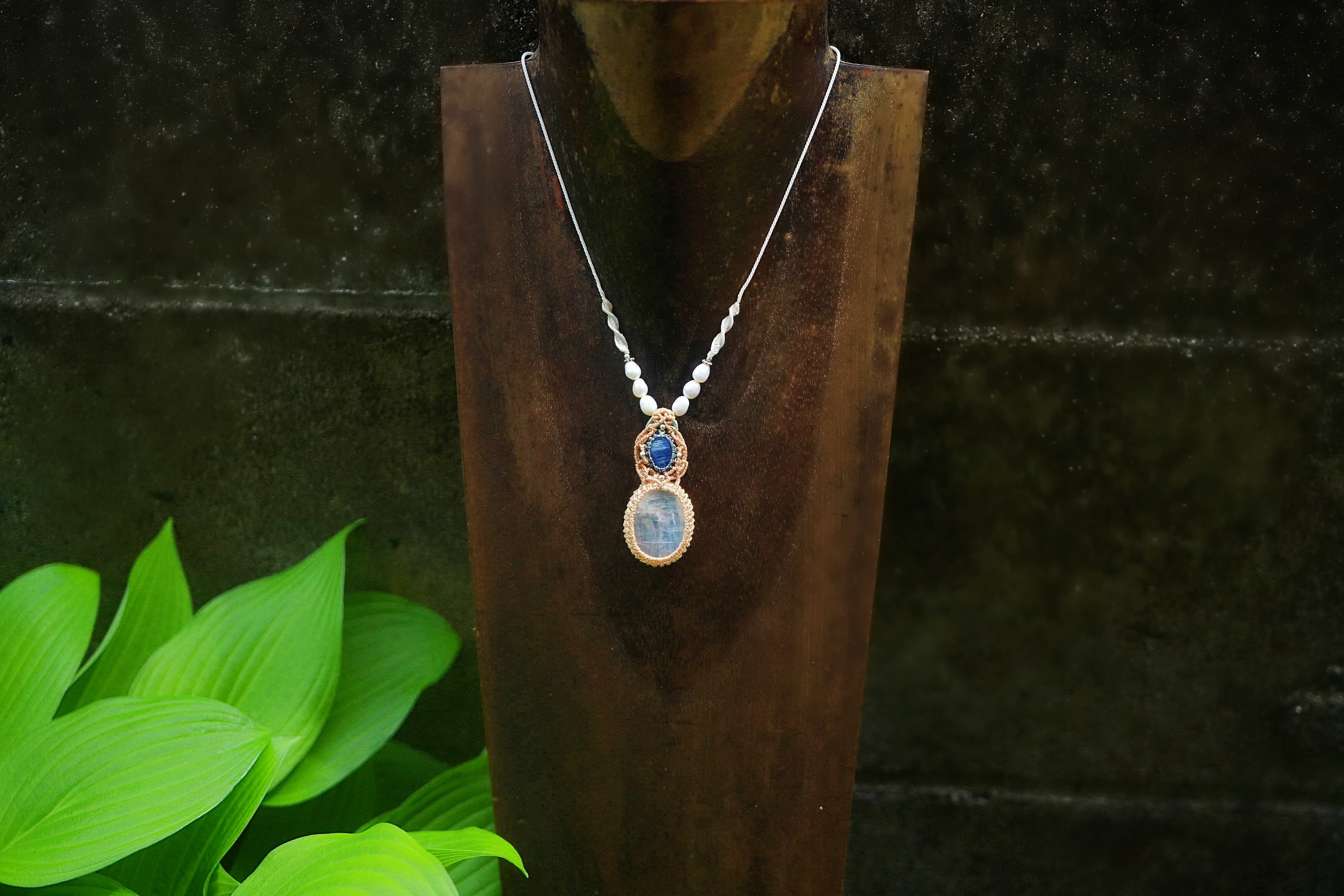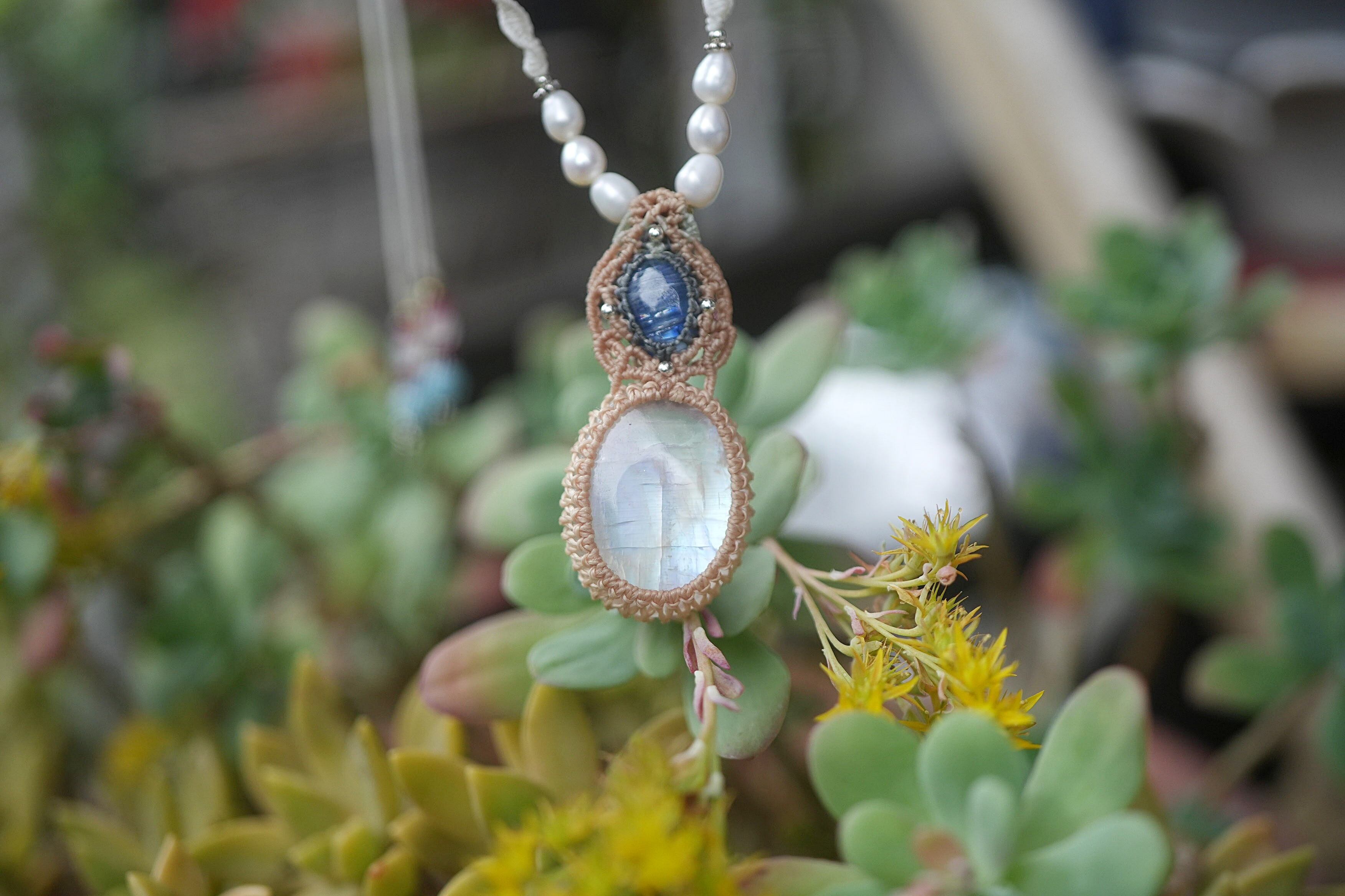 紫の妖精★kyanite レインボームーンストーン マクラメネックレス1584