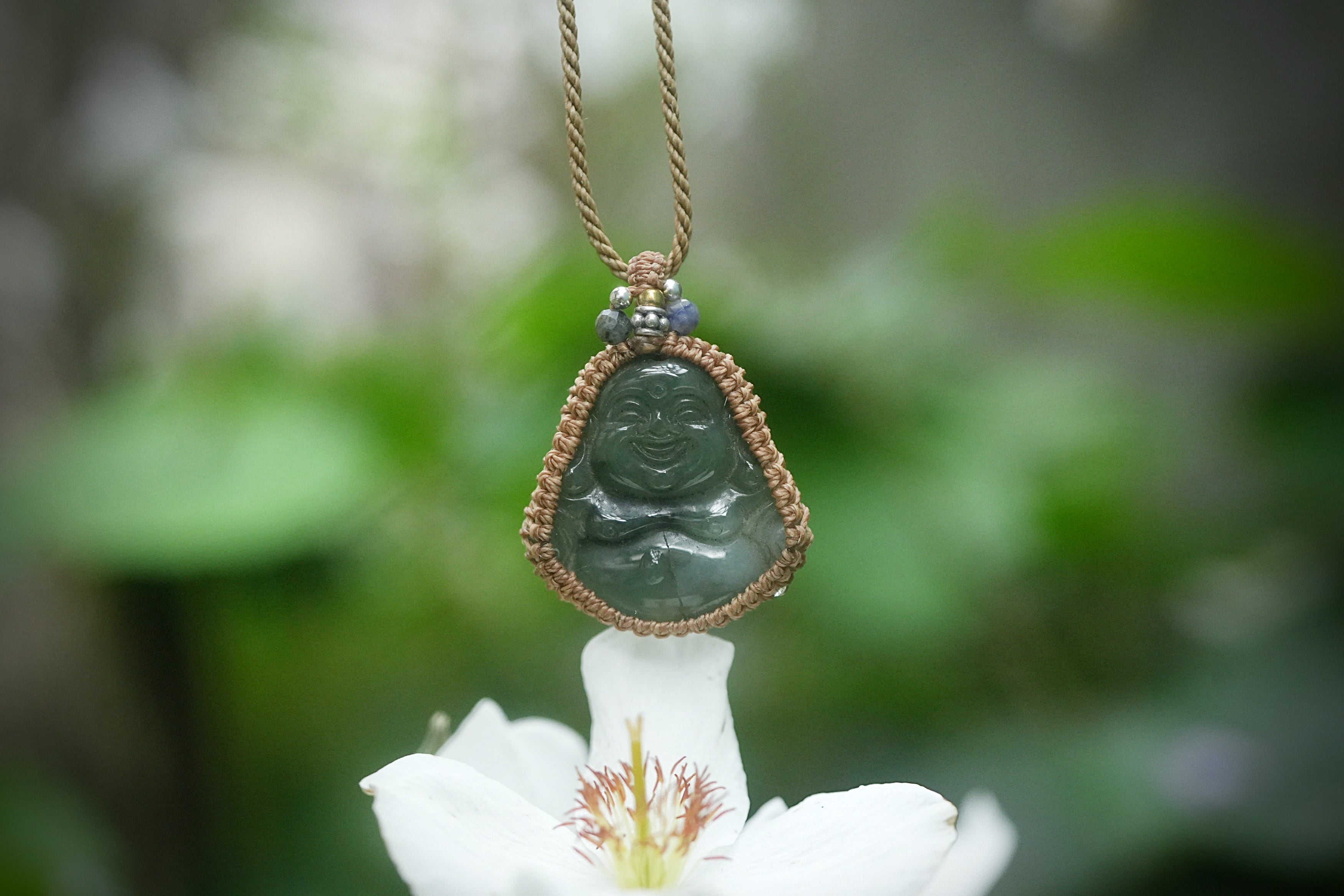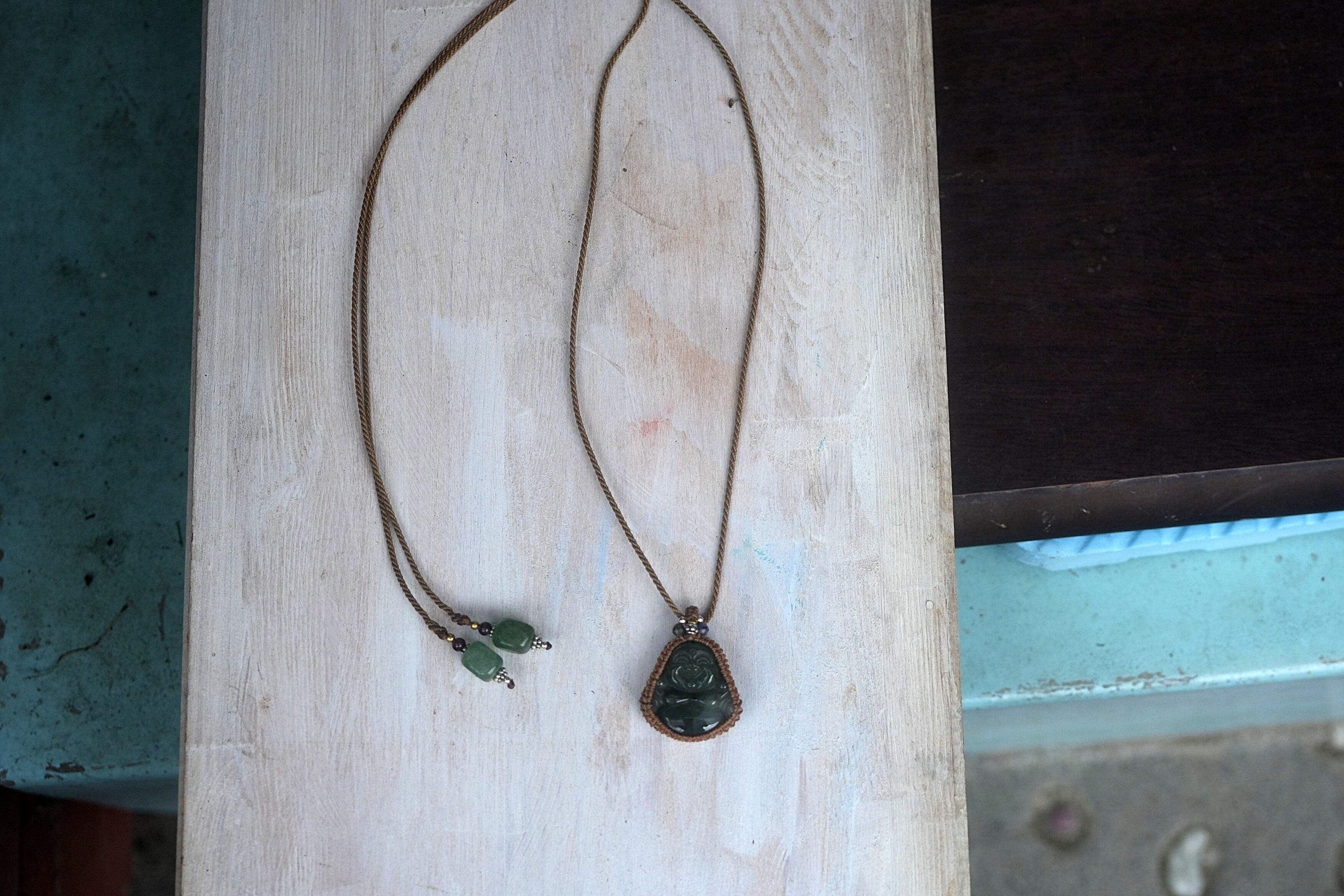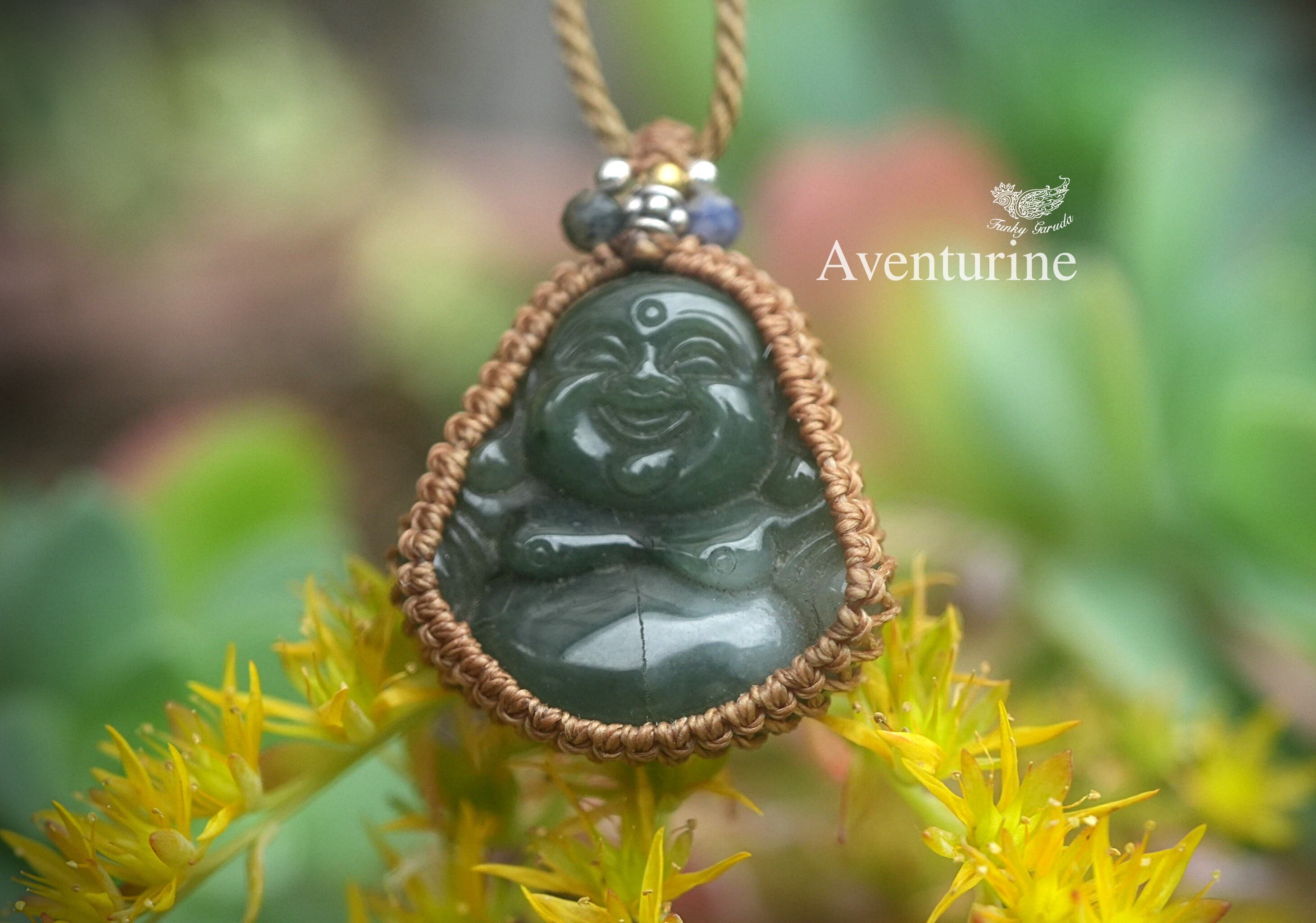 Happy 仏陀★グリーンアベンチュリン★マクラメネックレス1585