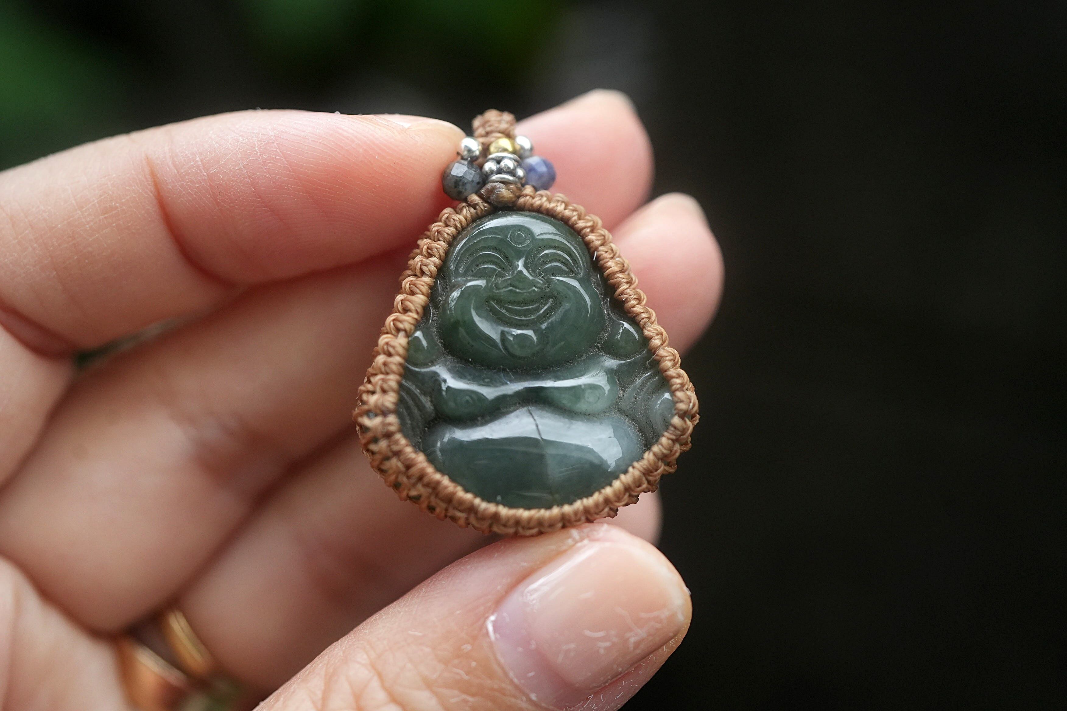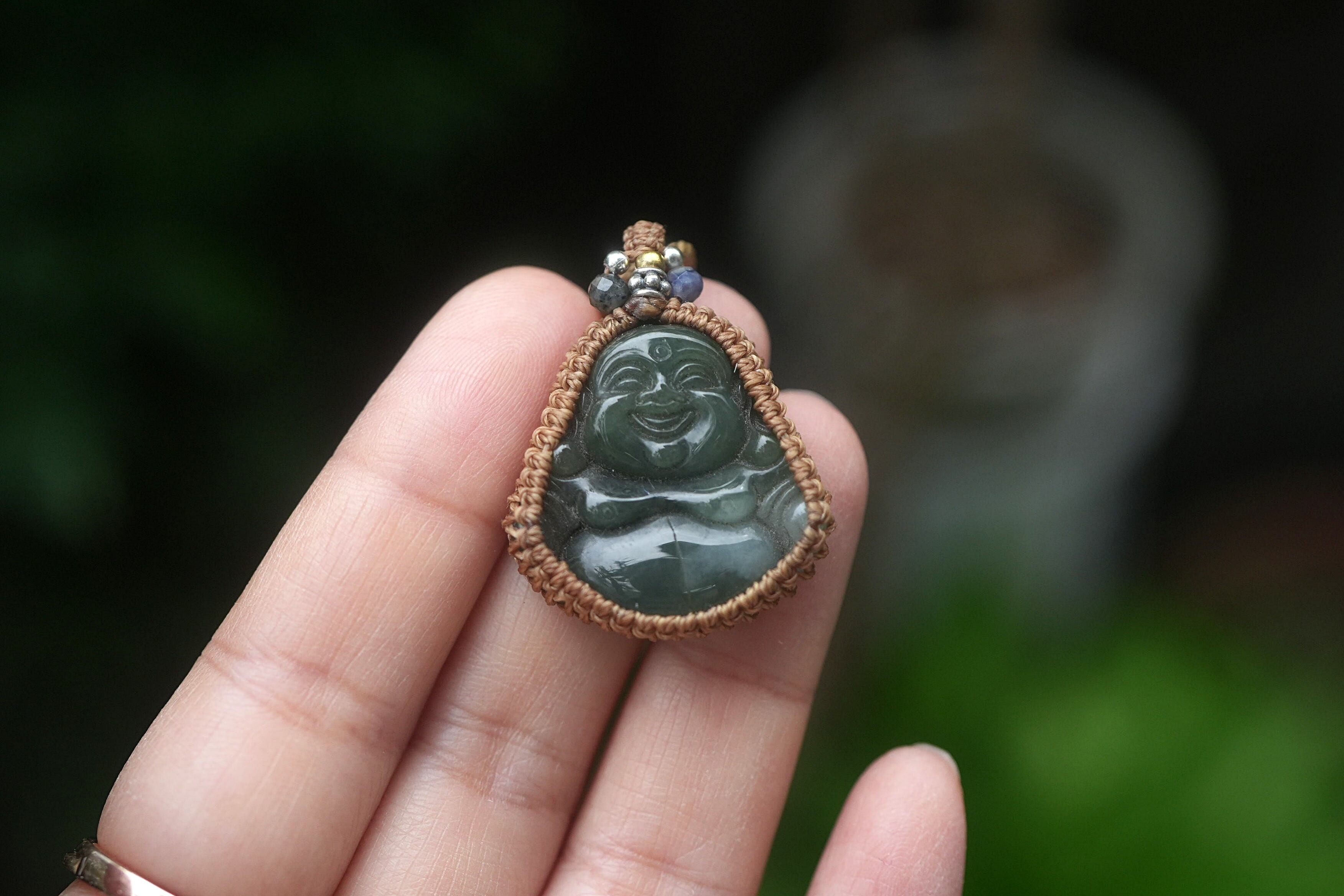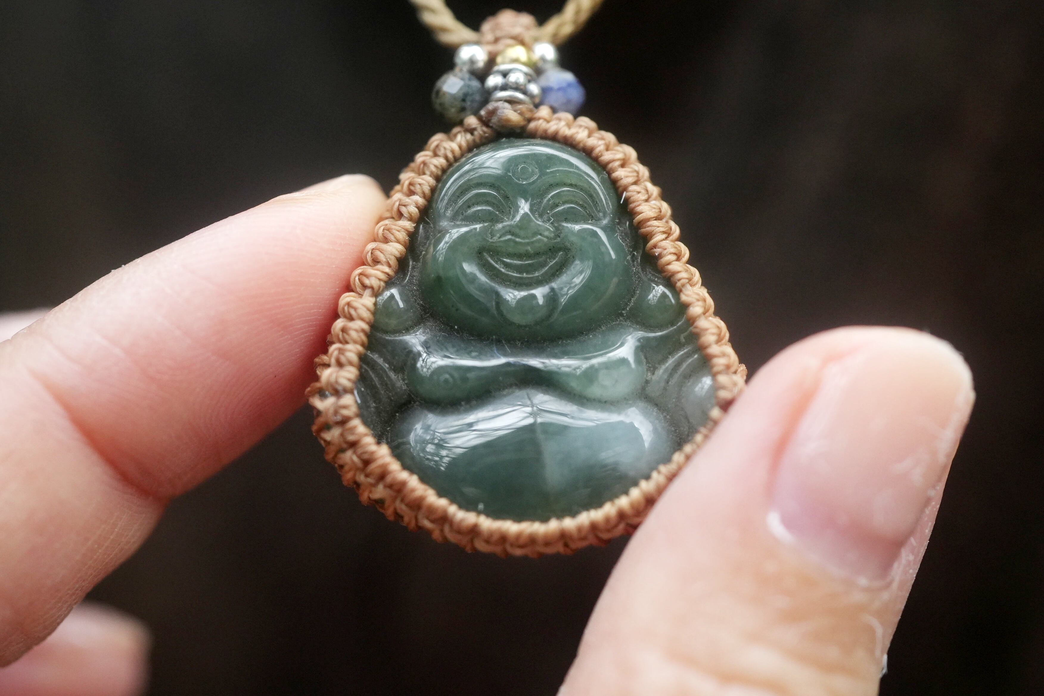 Happy 仏陀★グリーンアベンチュリン★マクラメネックレス1585