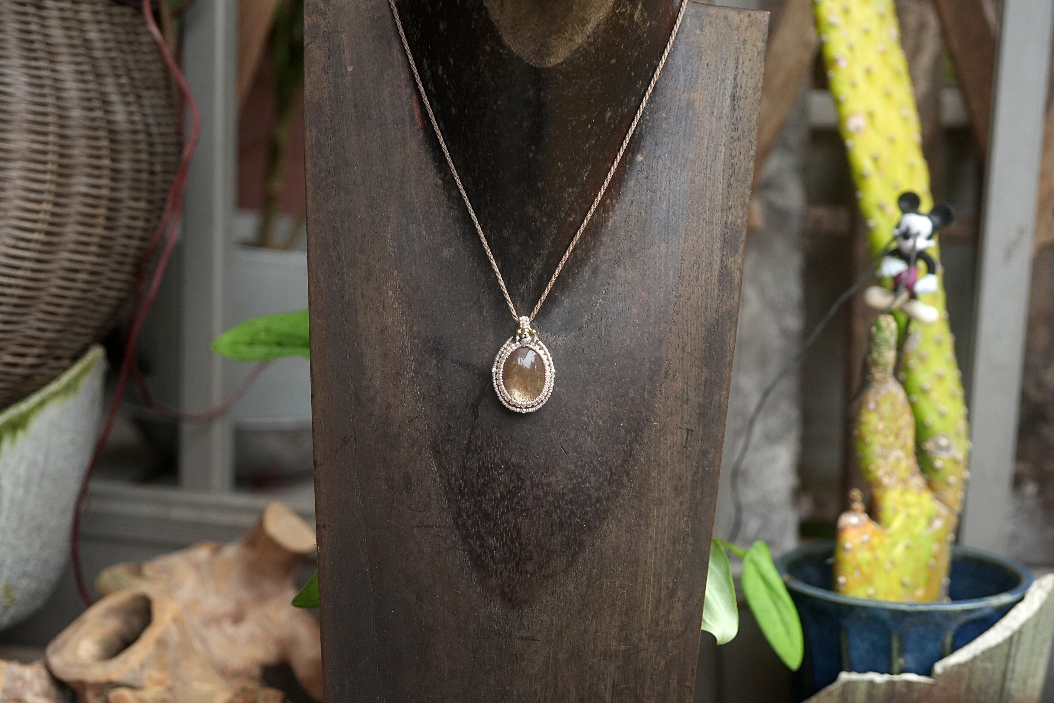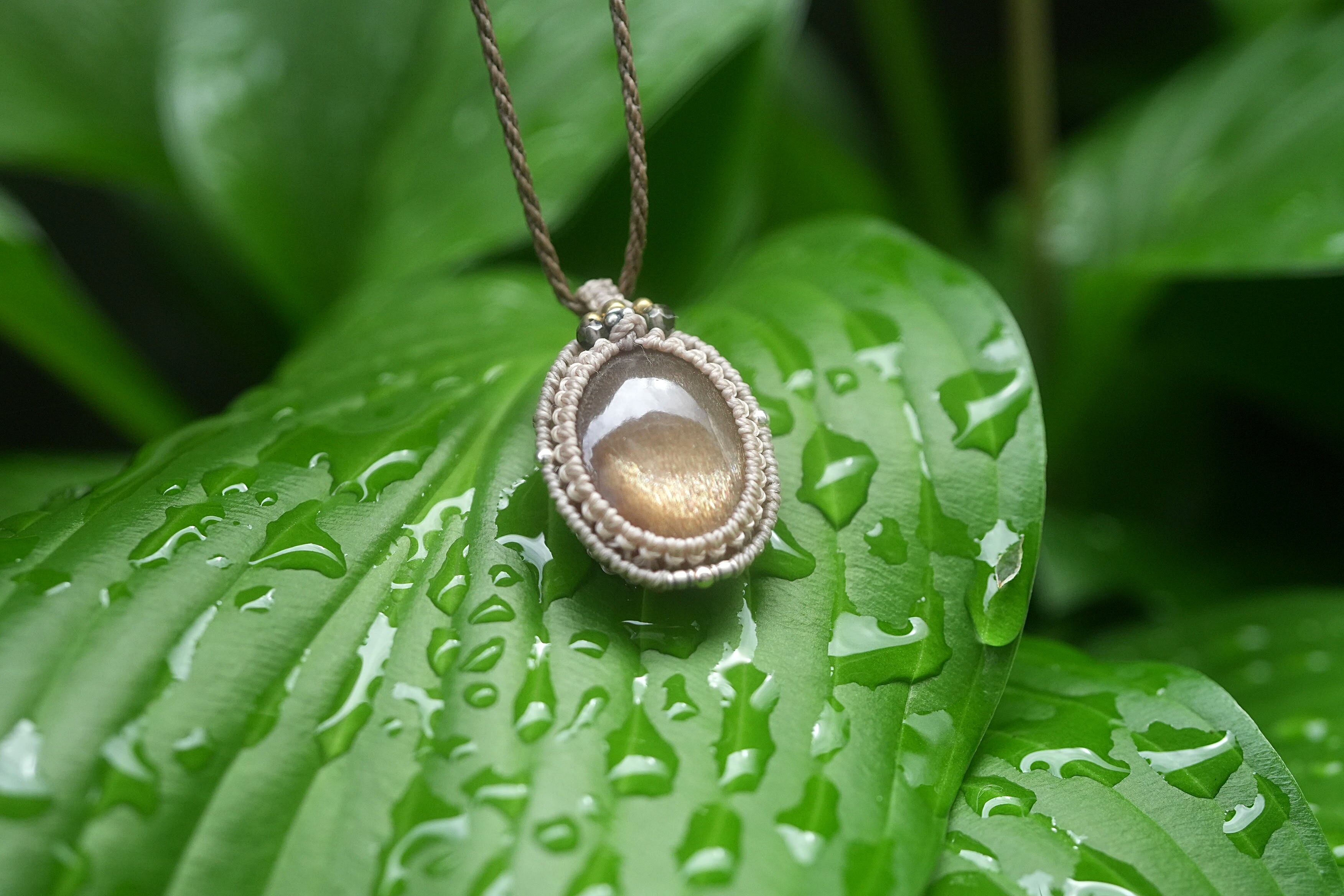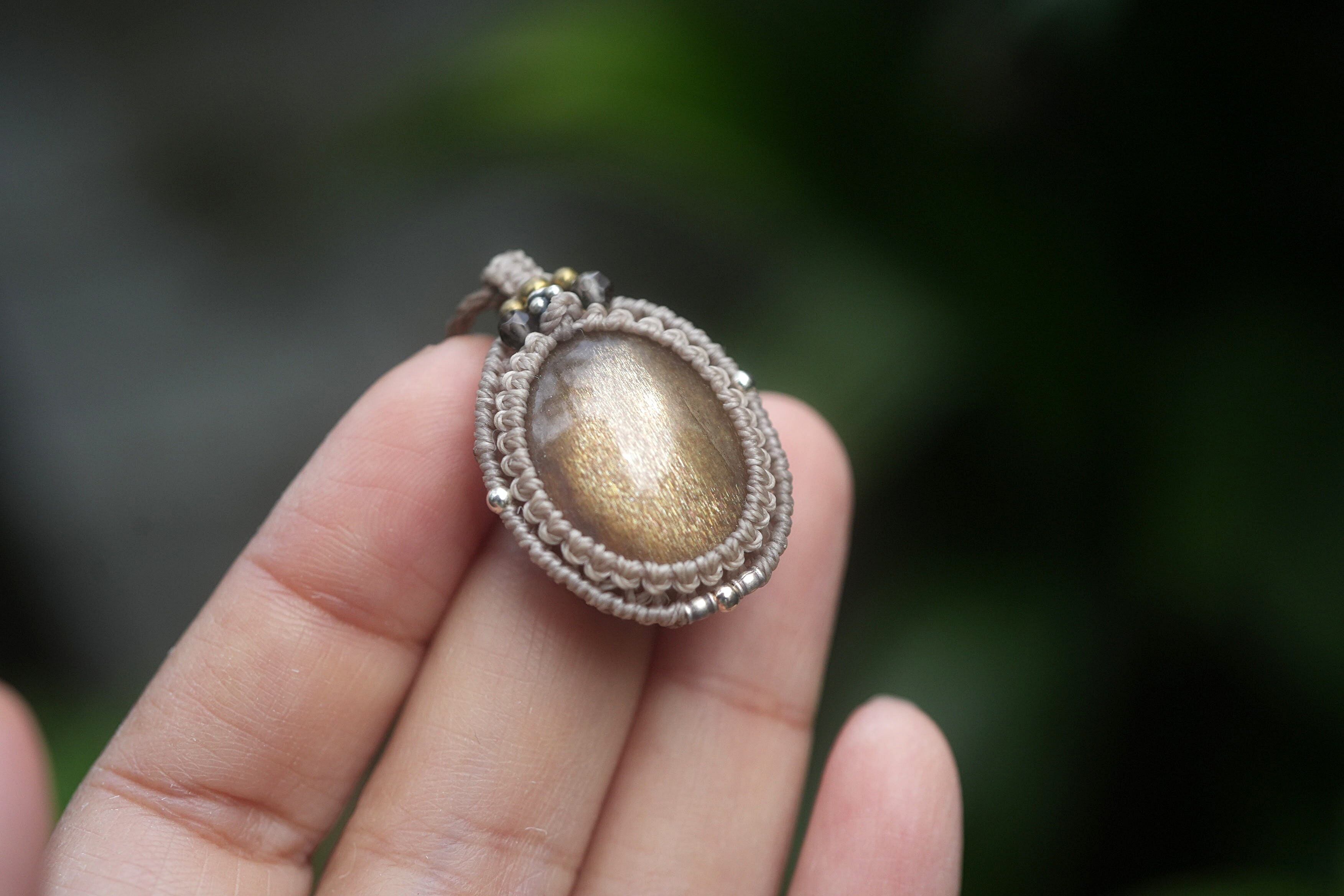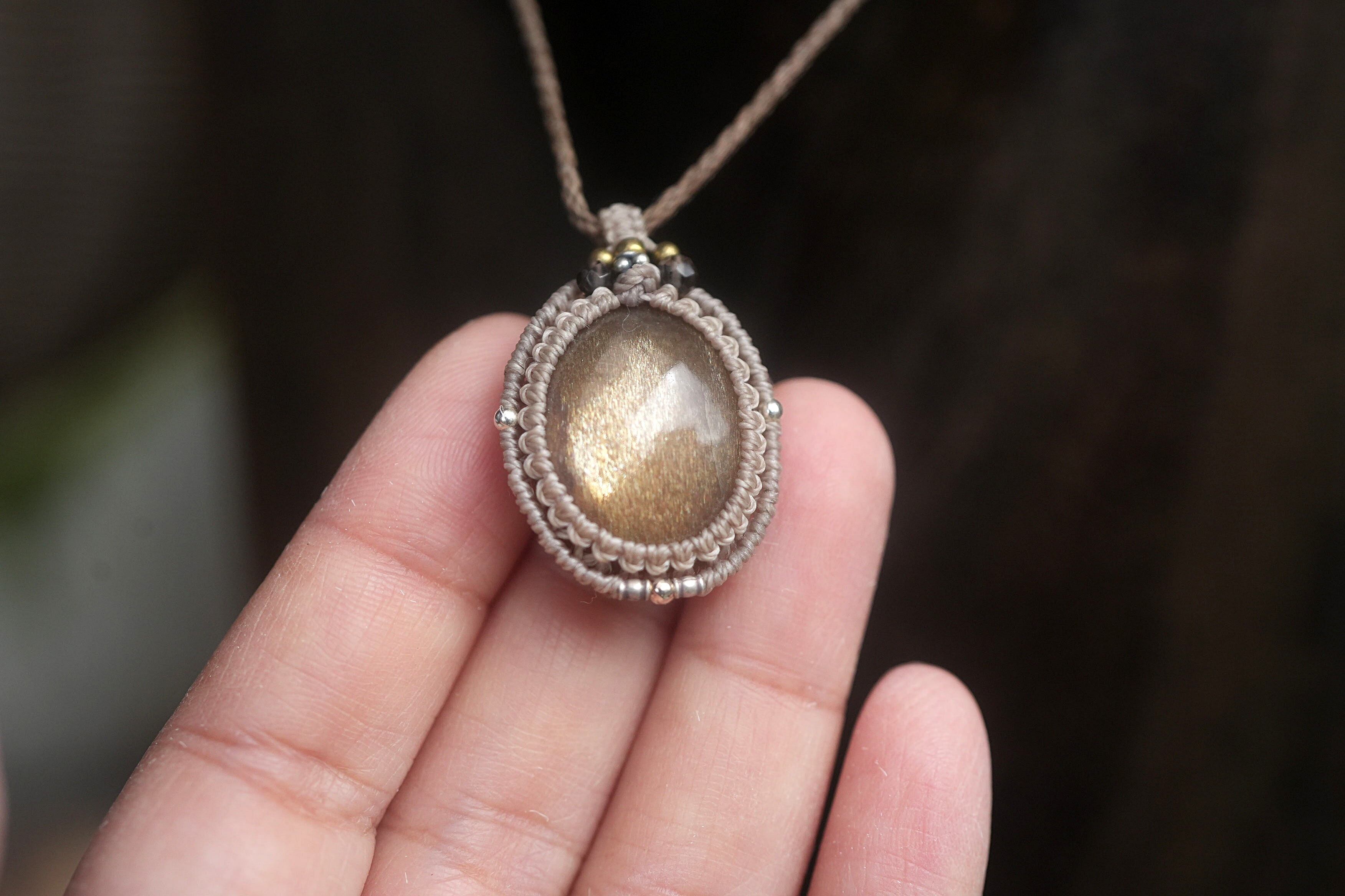 金色の輝き★ゴールドスターサンストーン マクラメネックレス1588