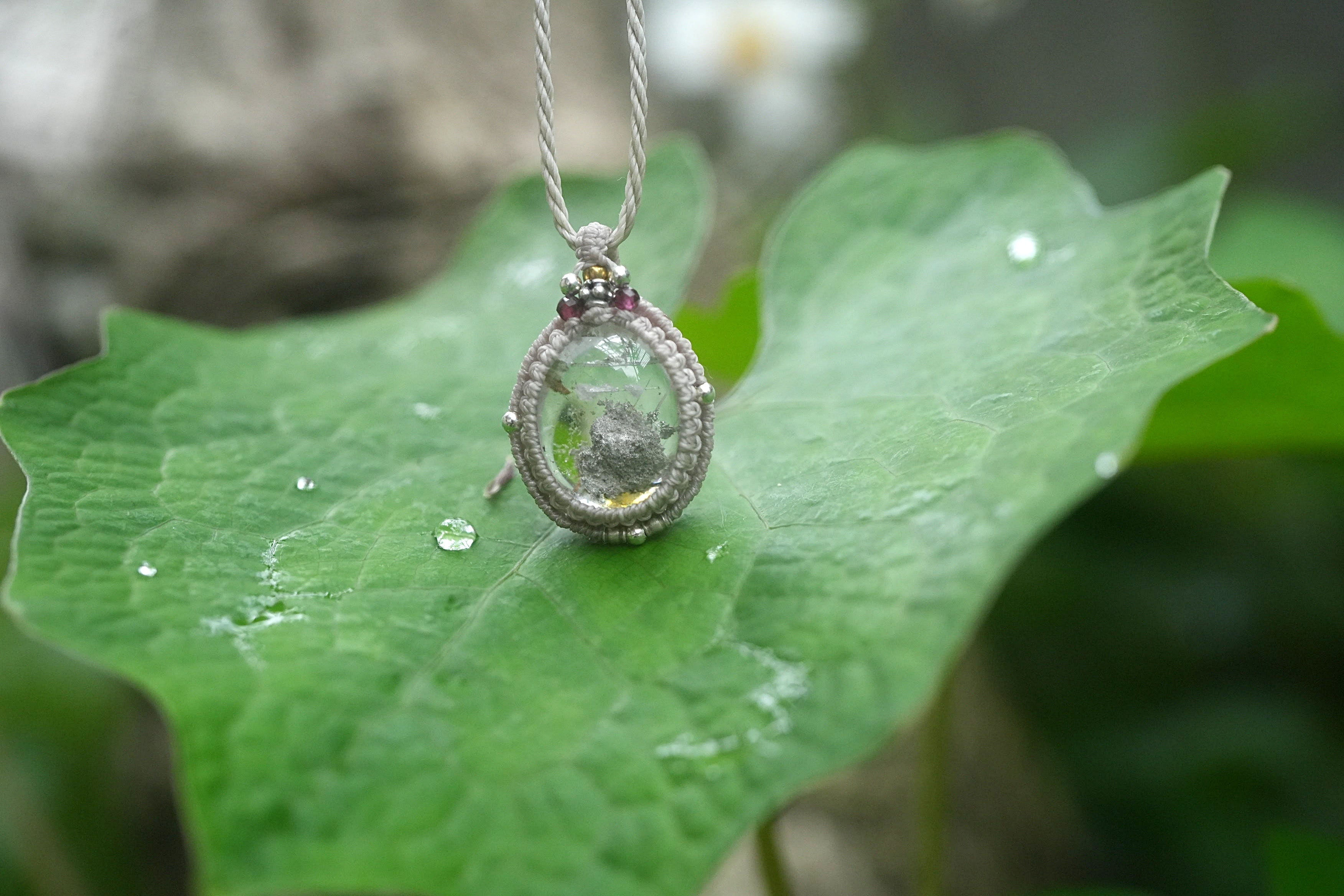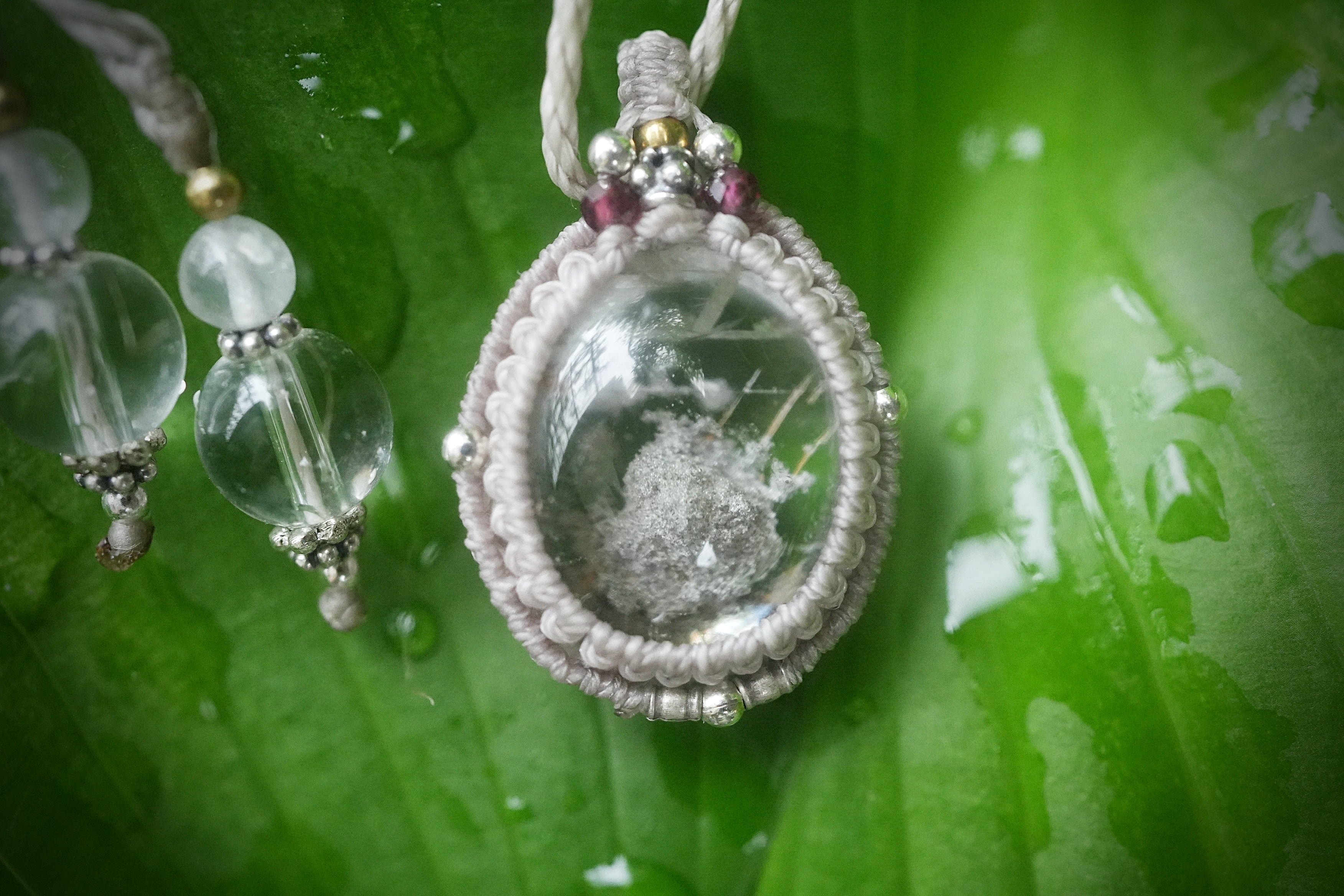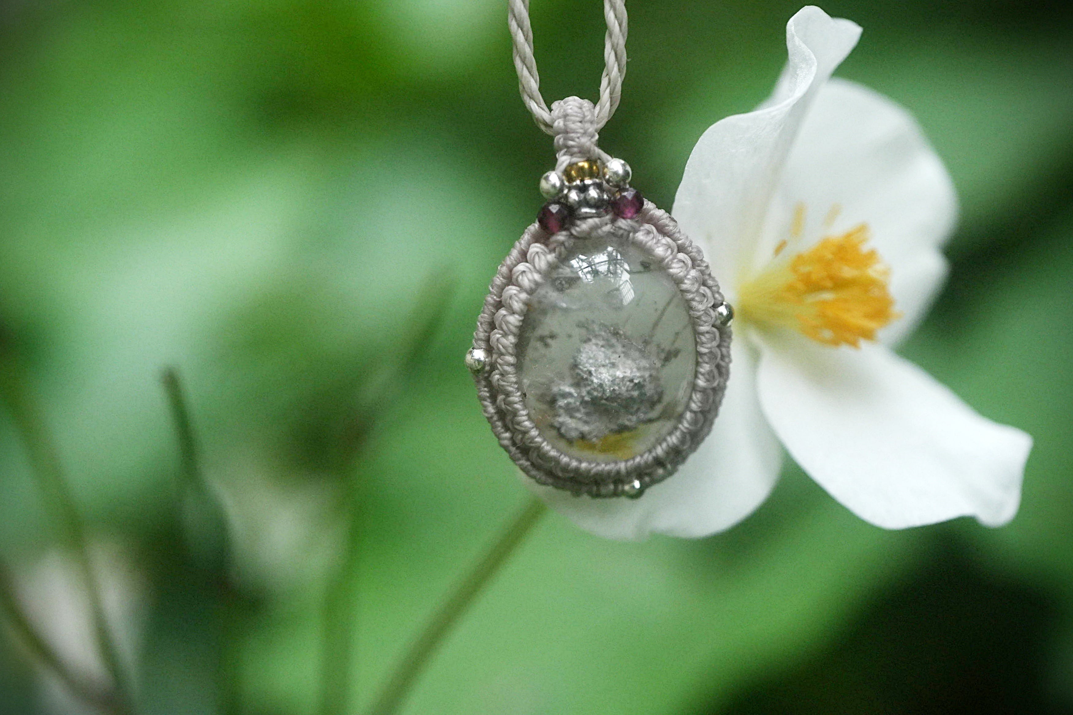 灰の山★ホワイトグレイ★ガーデンクォーツ マクラメネックレス1586