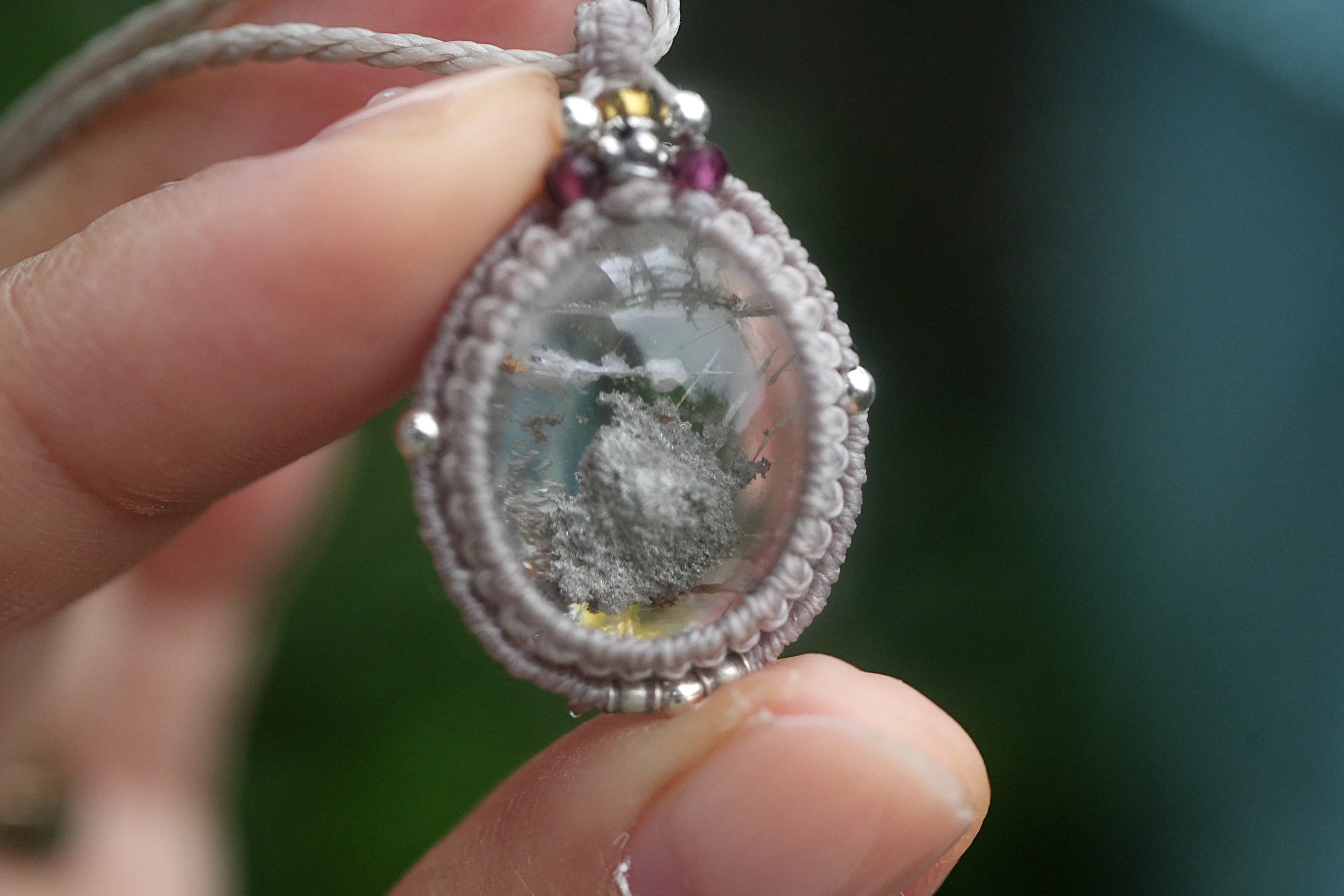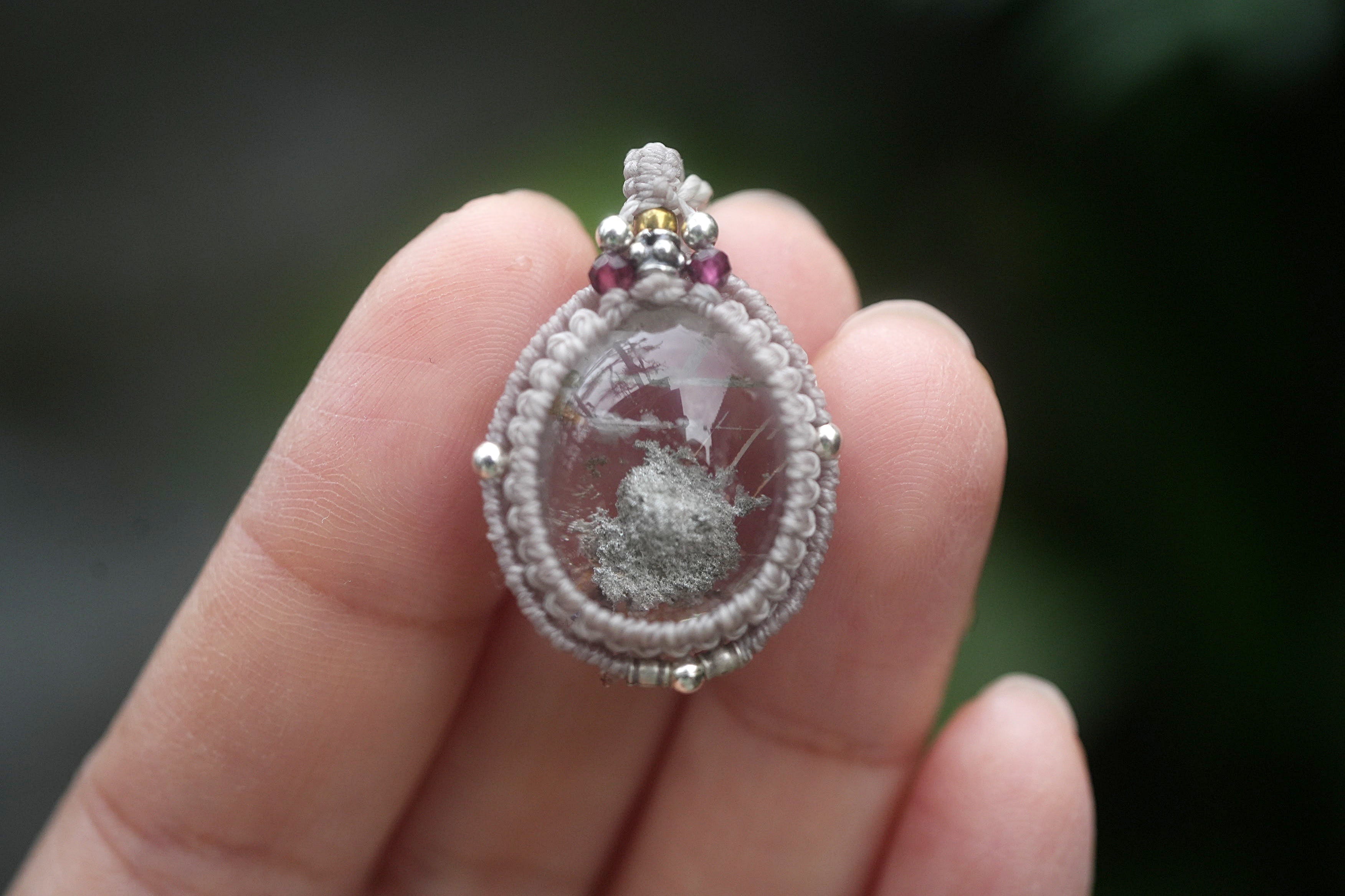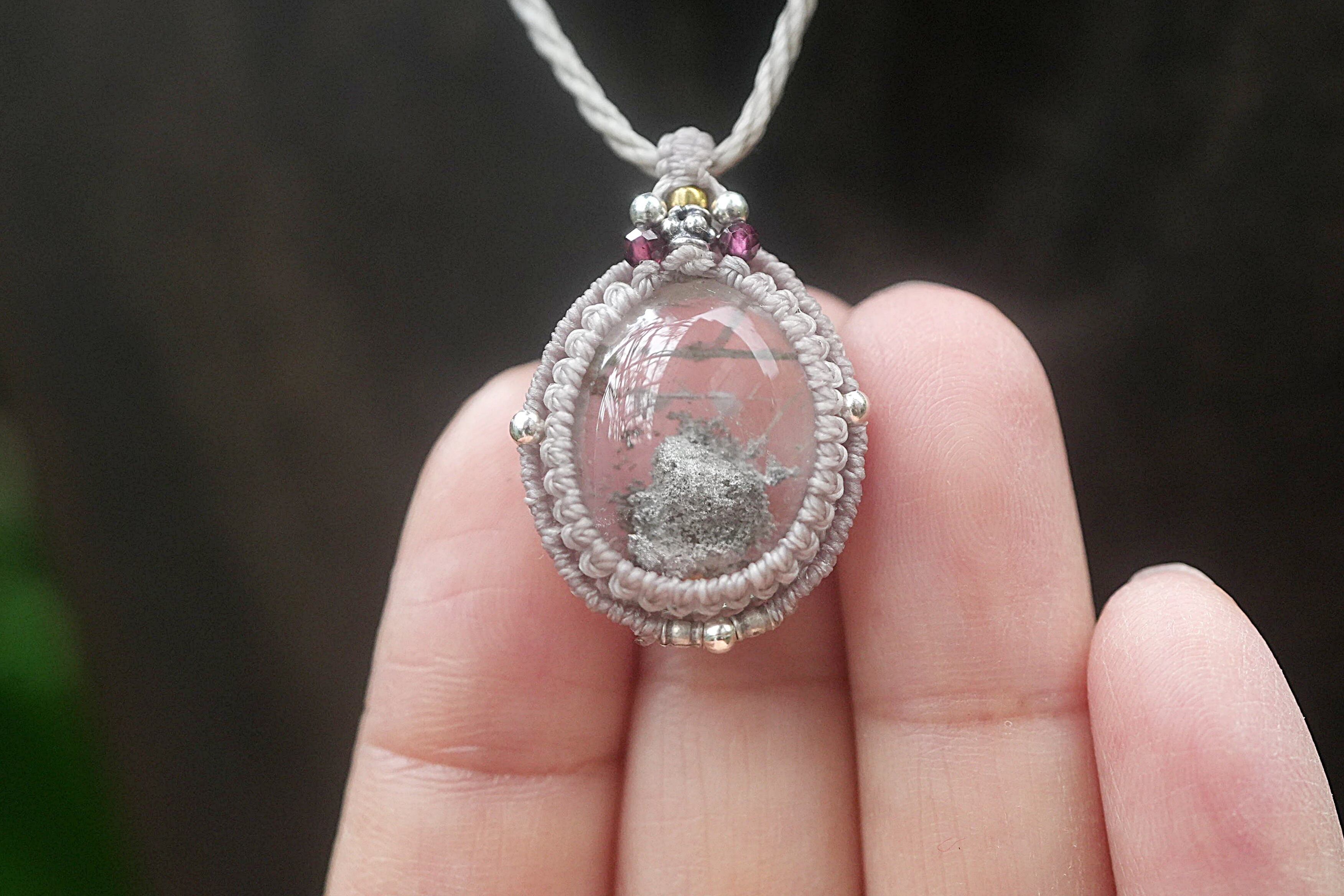 灰の山★ホワイトグレイ★ガーデンクォーツ マクラメネックレス1586