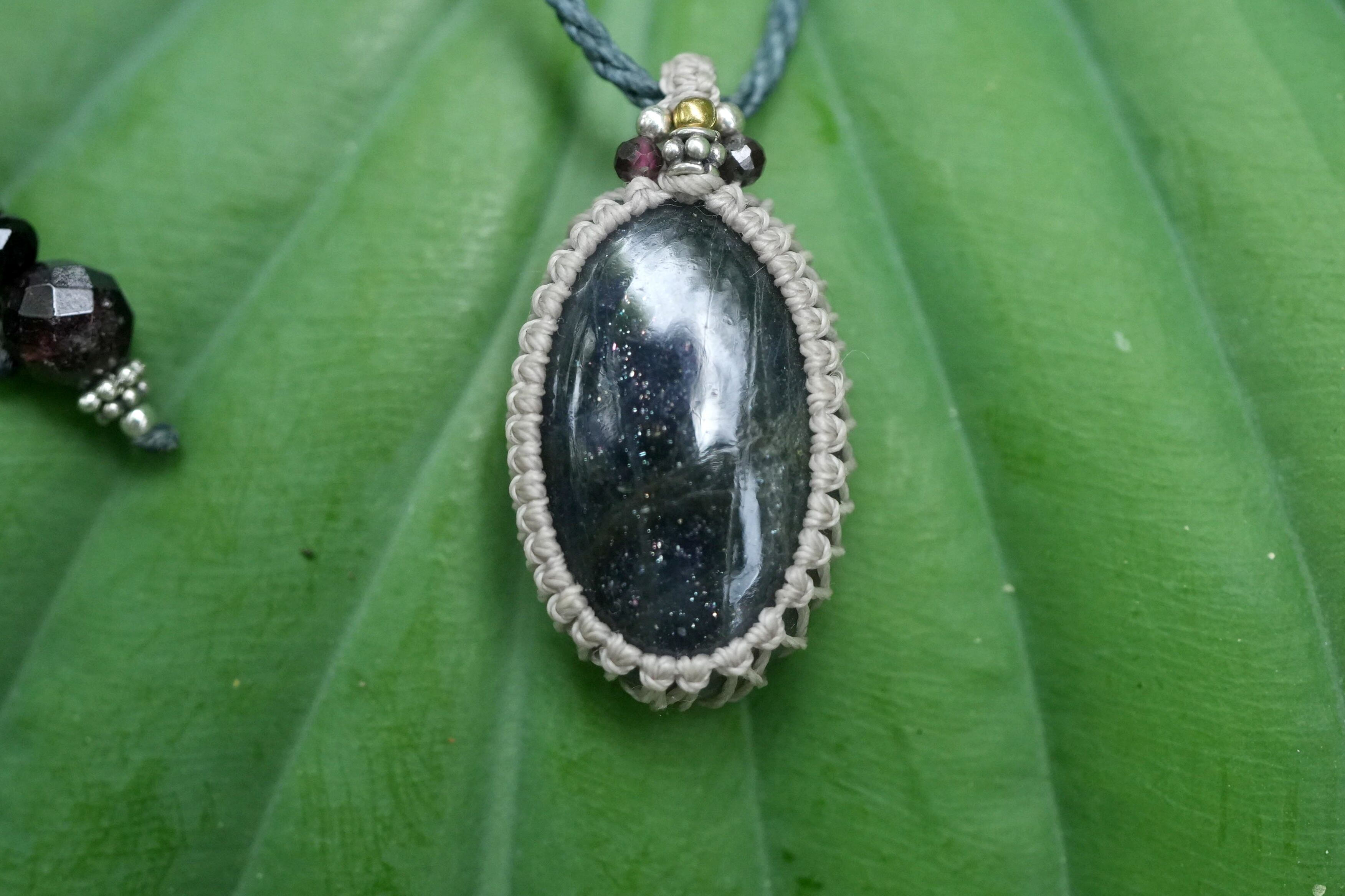 小さな星★アイオライトサンストーン マクラメネックレス1591