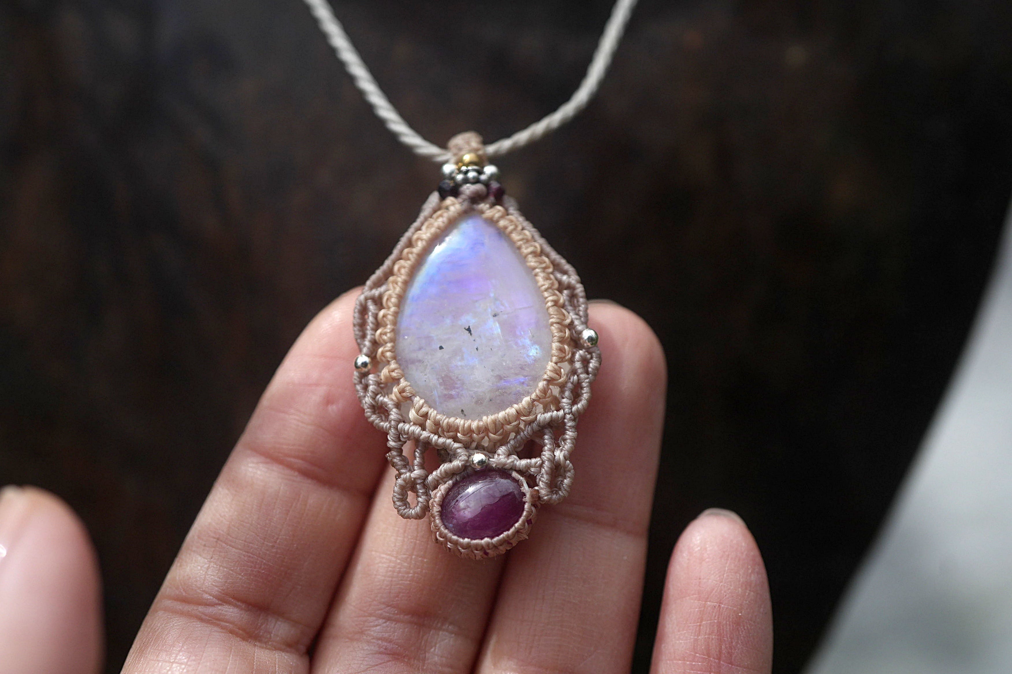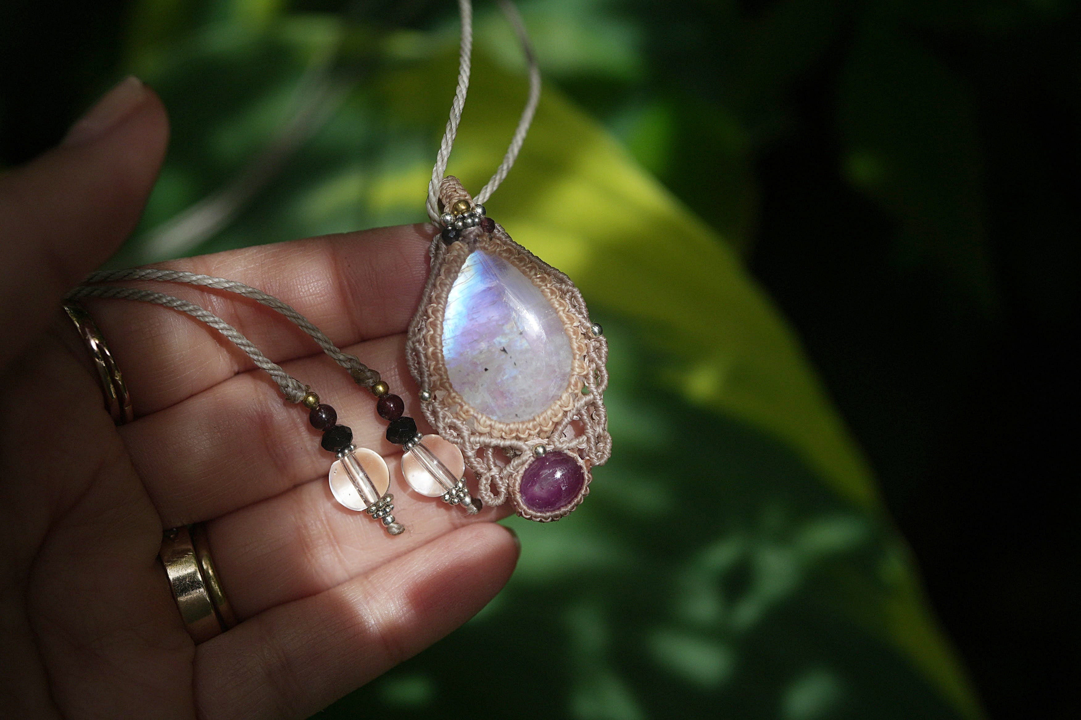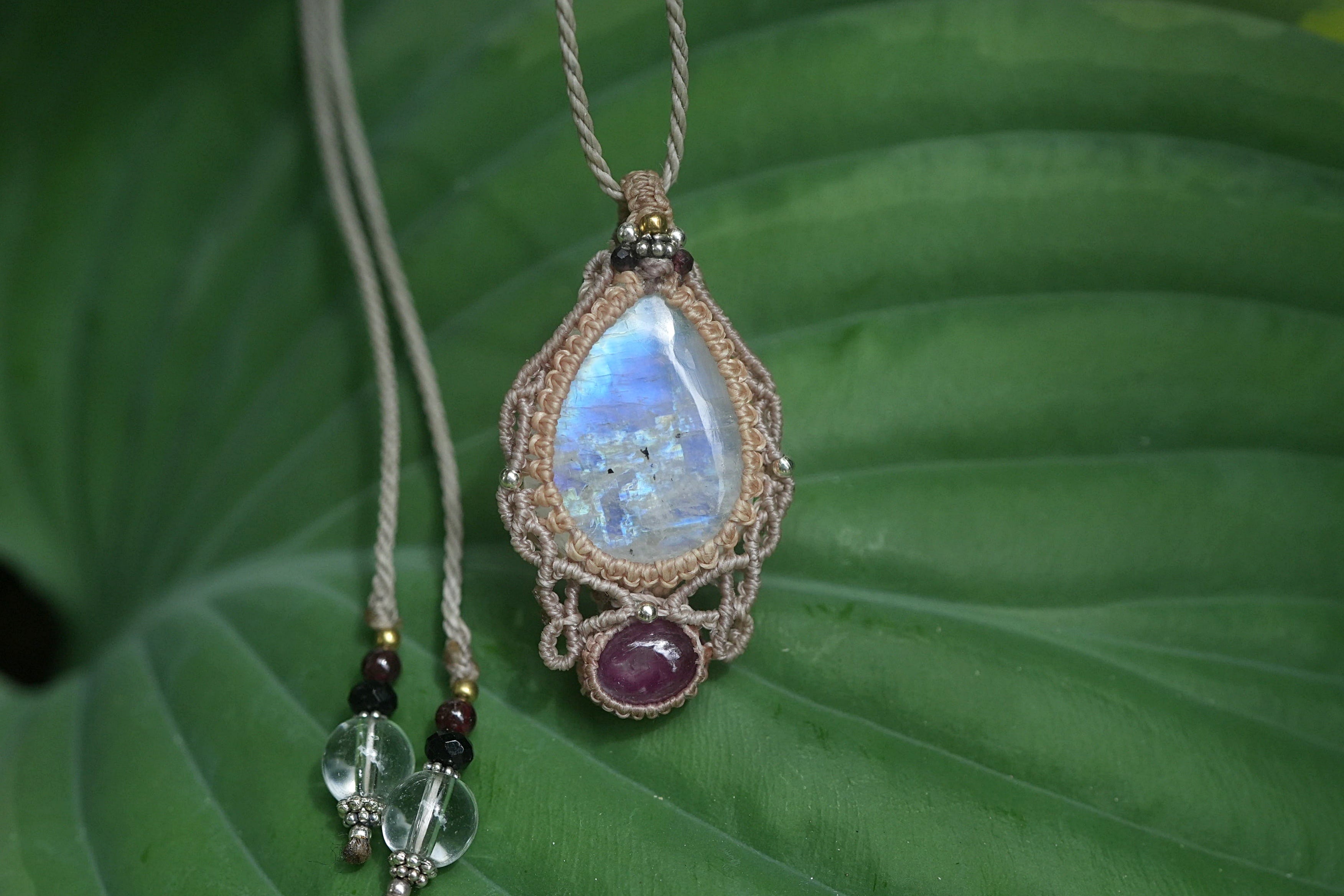 幻想の世界★ruby レインボームーンストーン マクラメネックレス1594