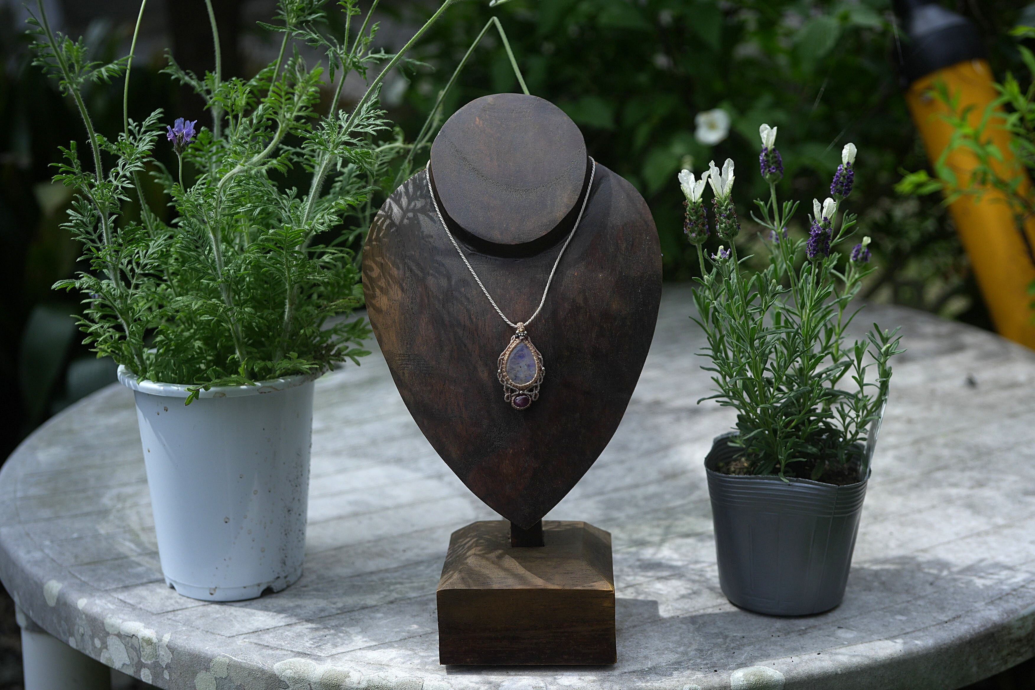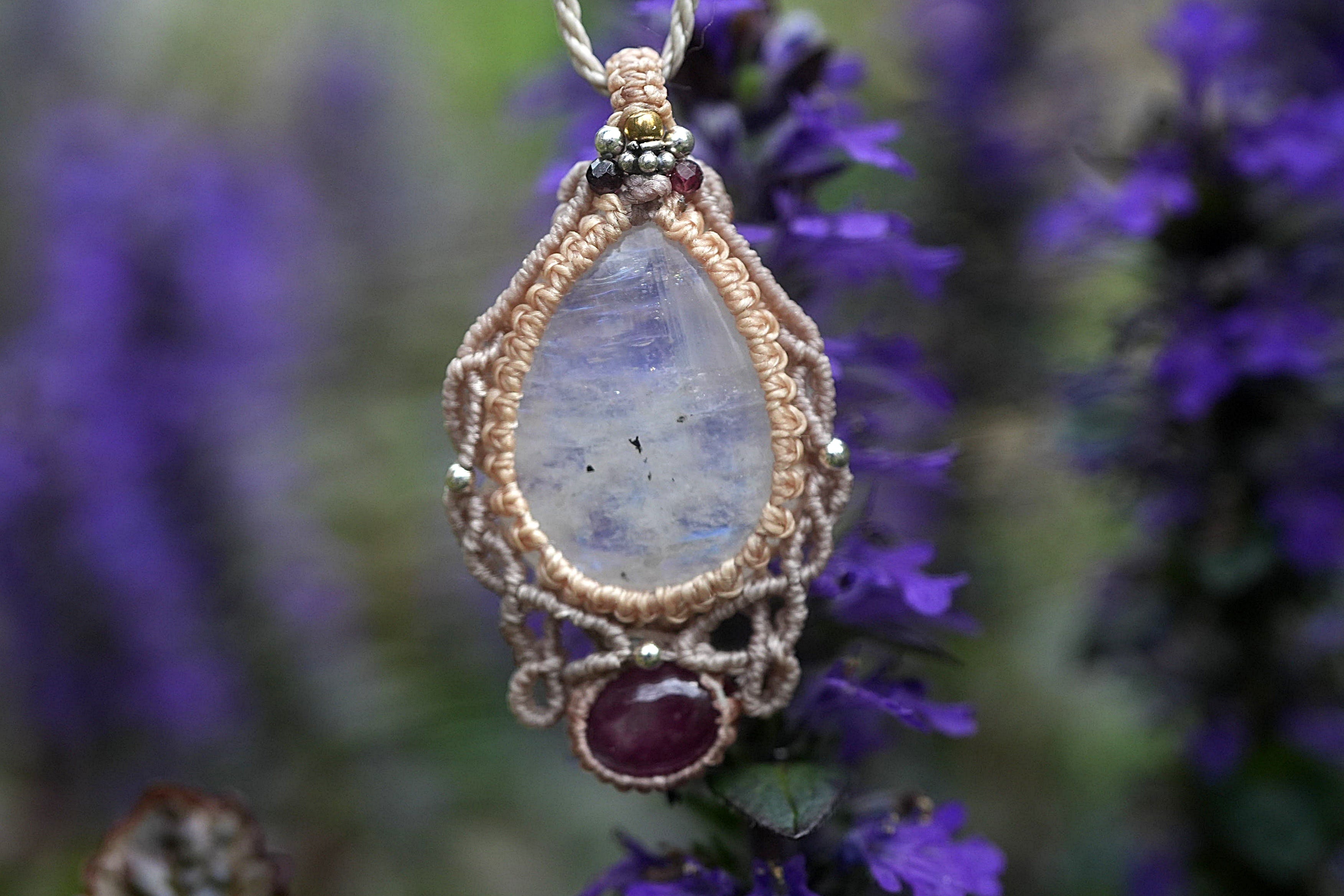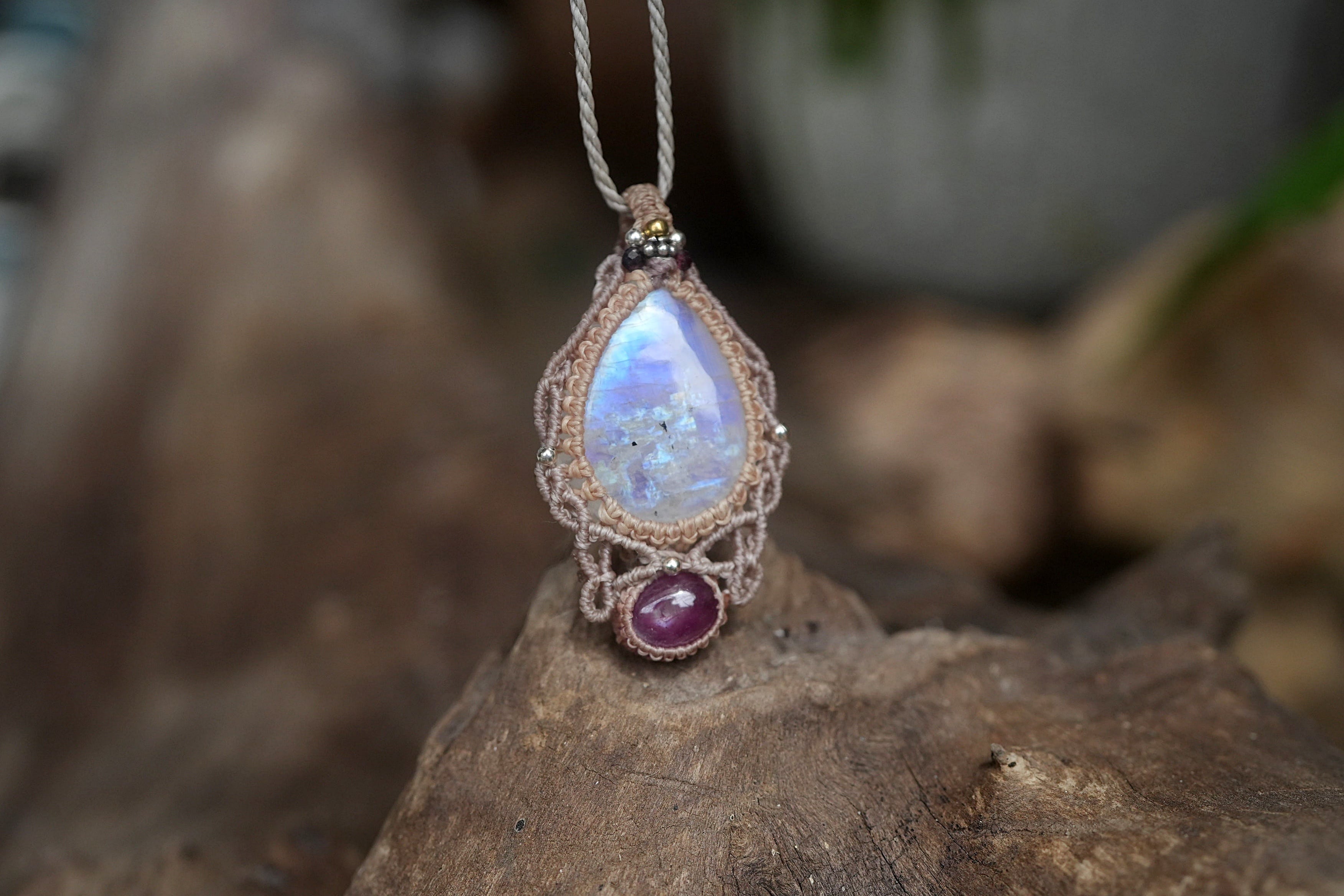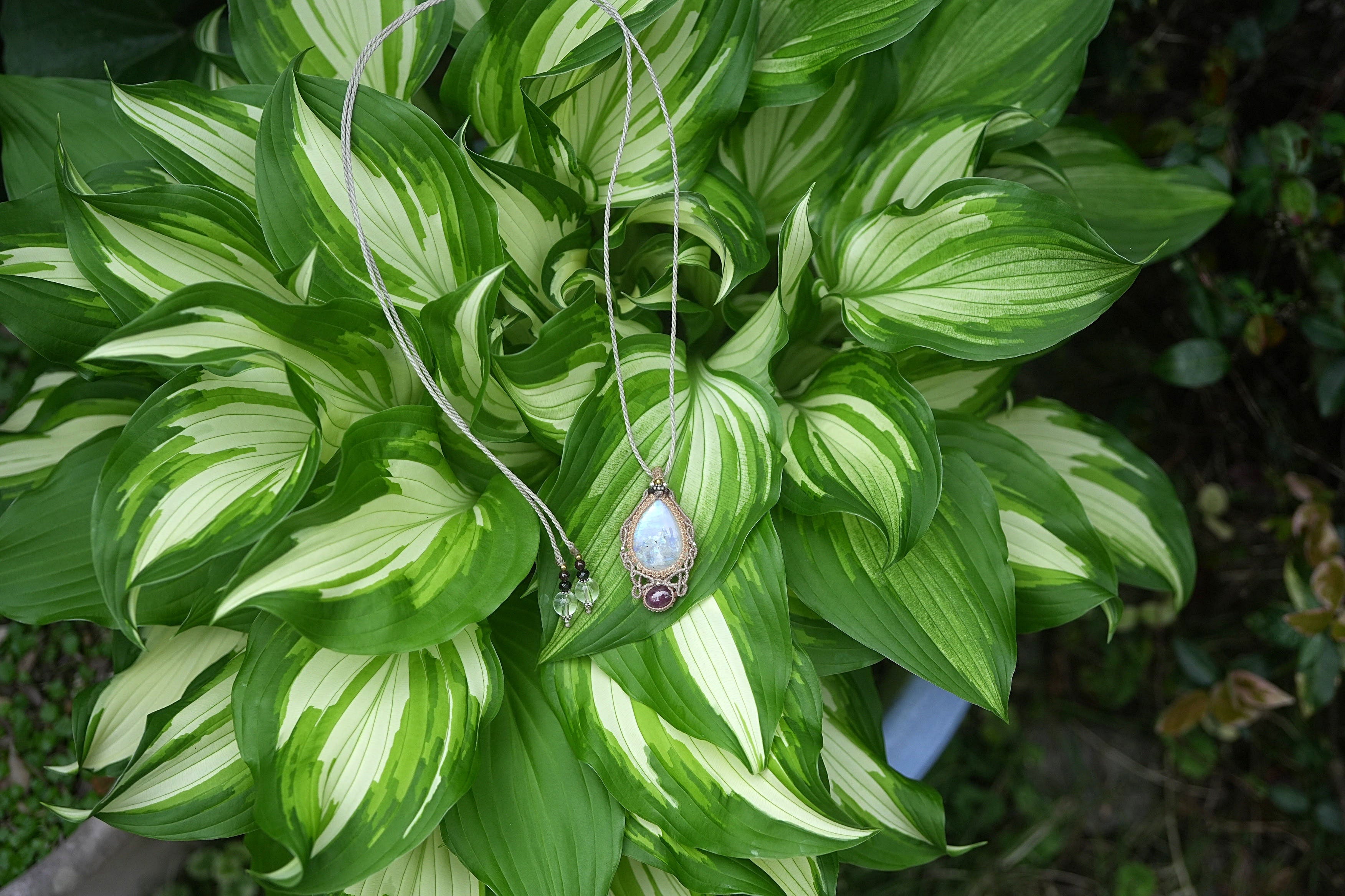 幻想の世界★ruby レインボームーンストーン マクラメネックレス1594