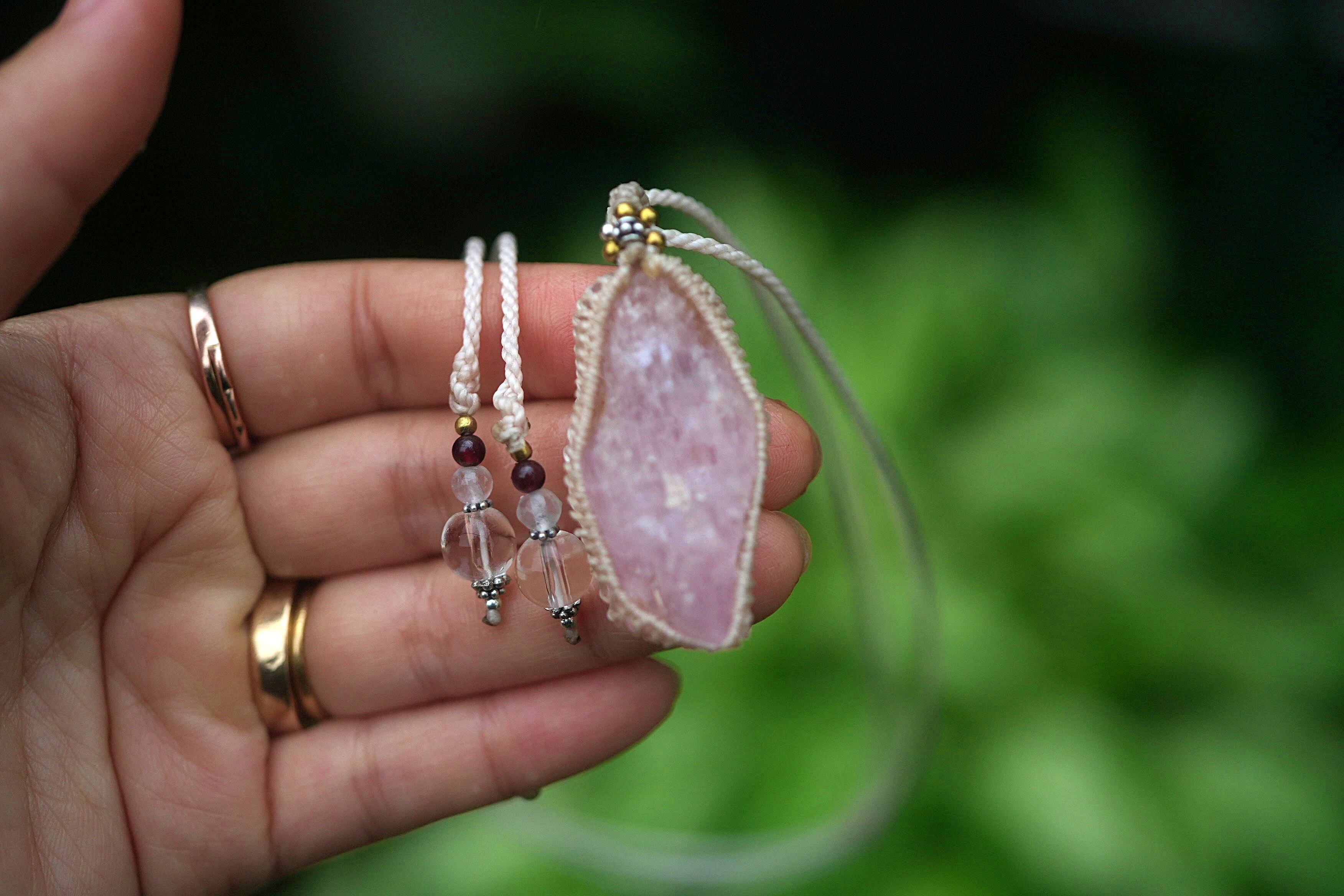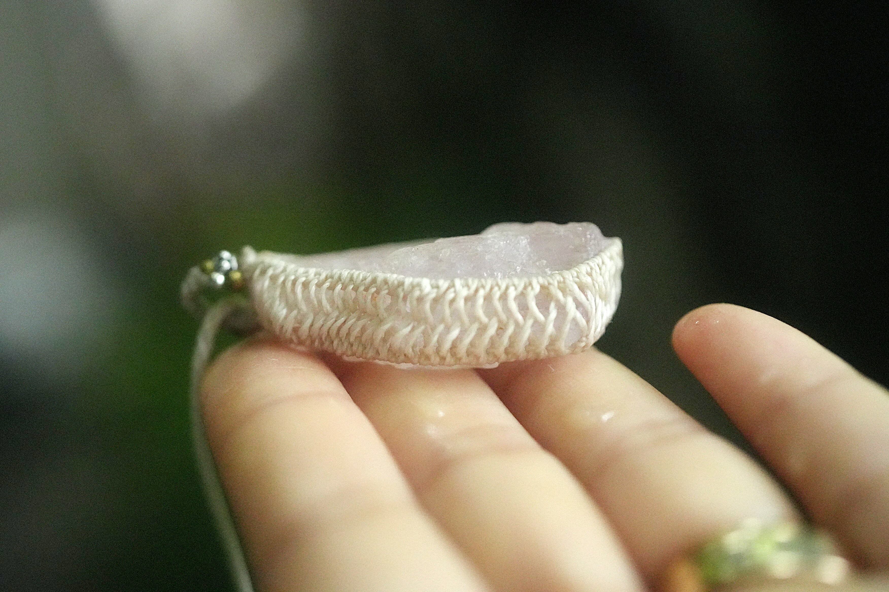 ペンダントサイズな原石を探し、マクラメペンダントに仕上げました。