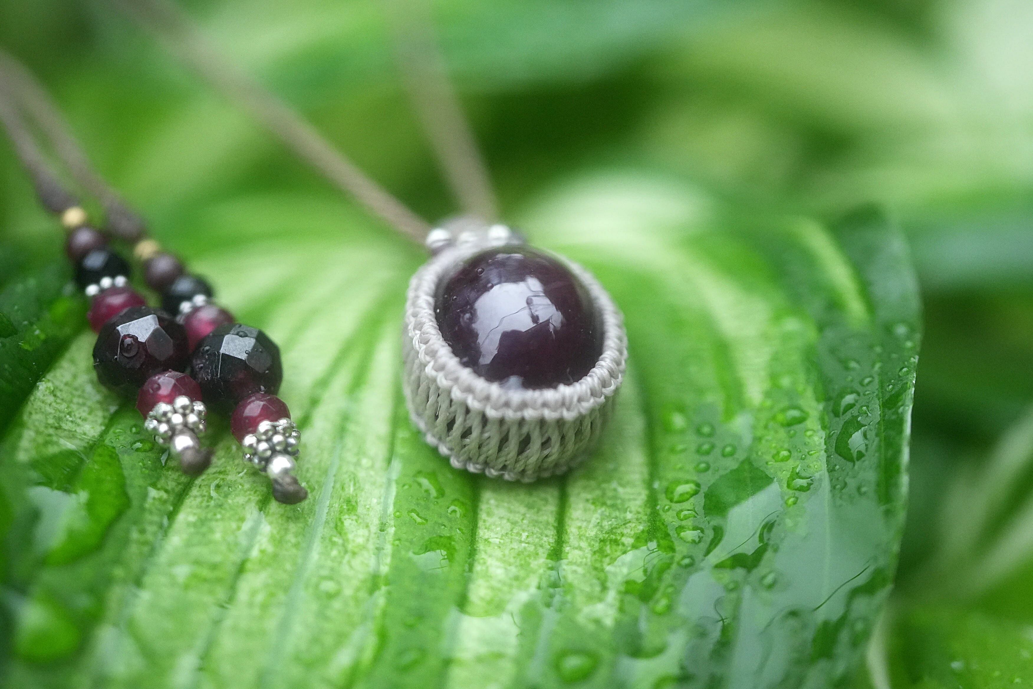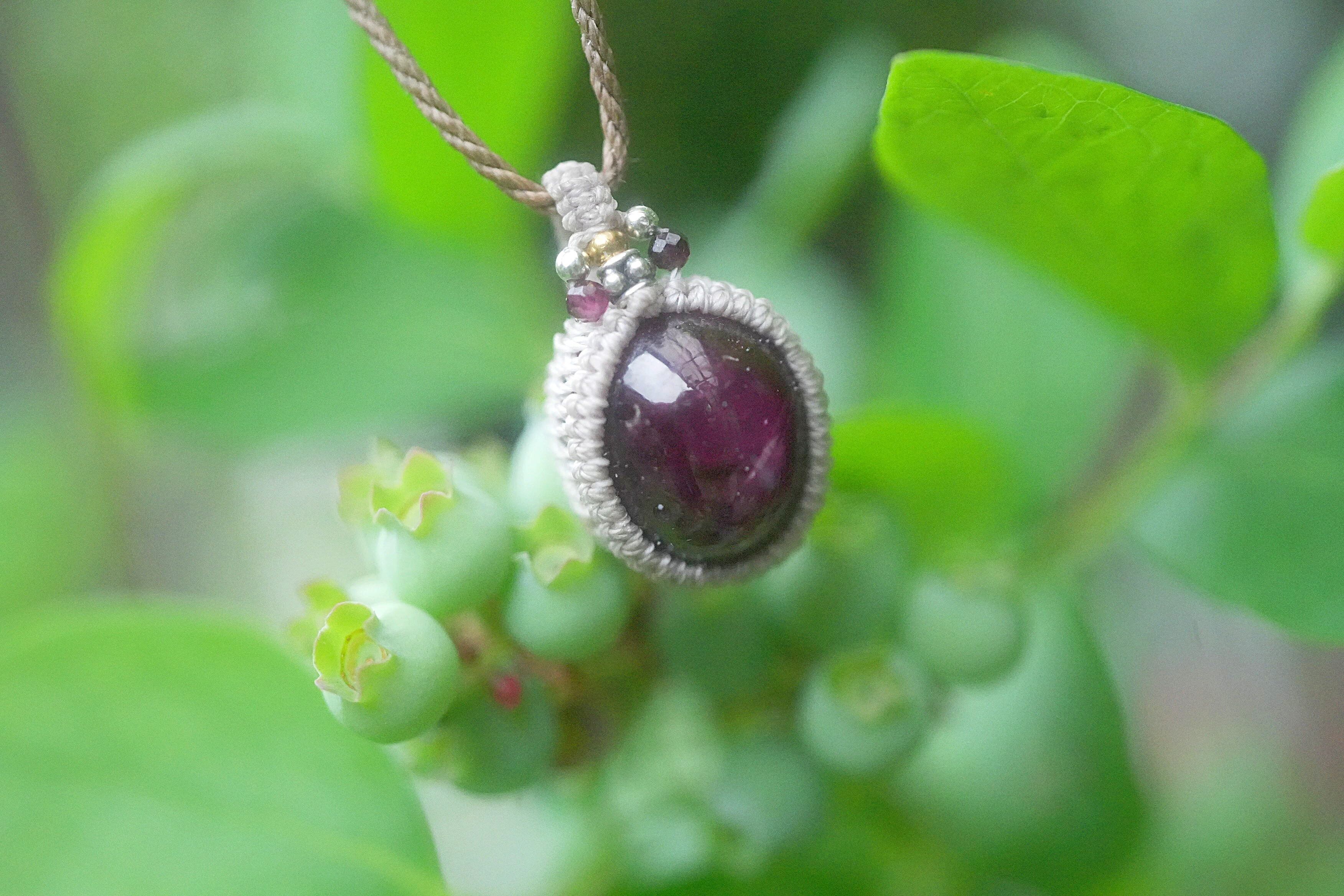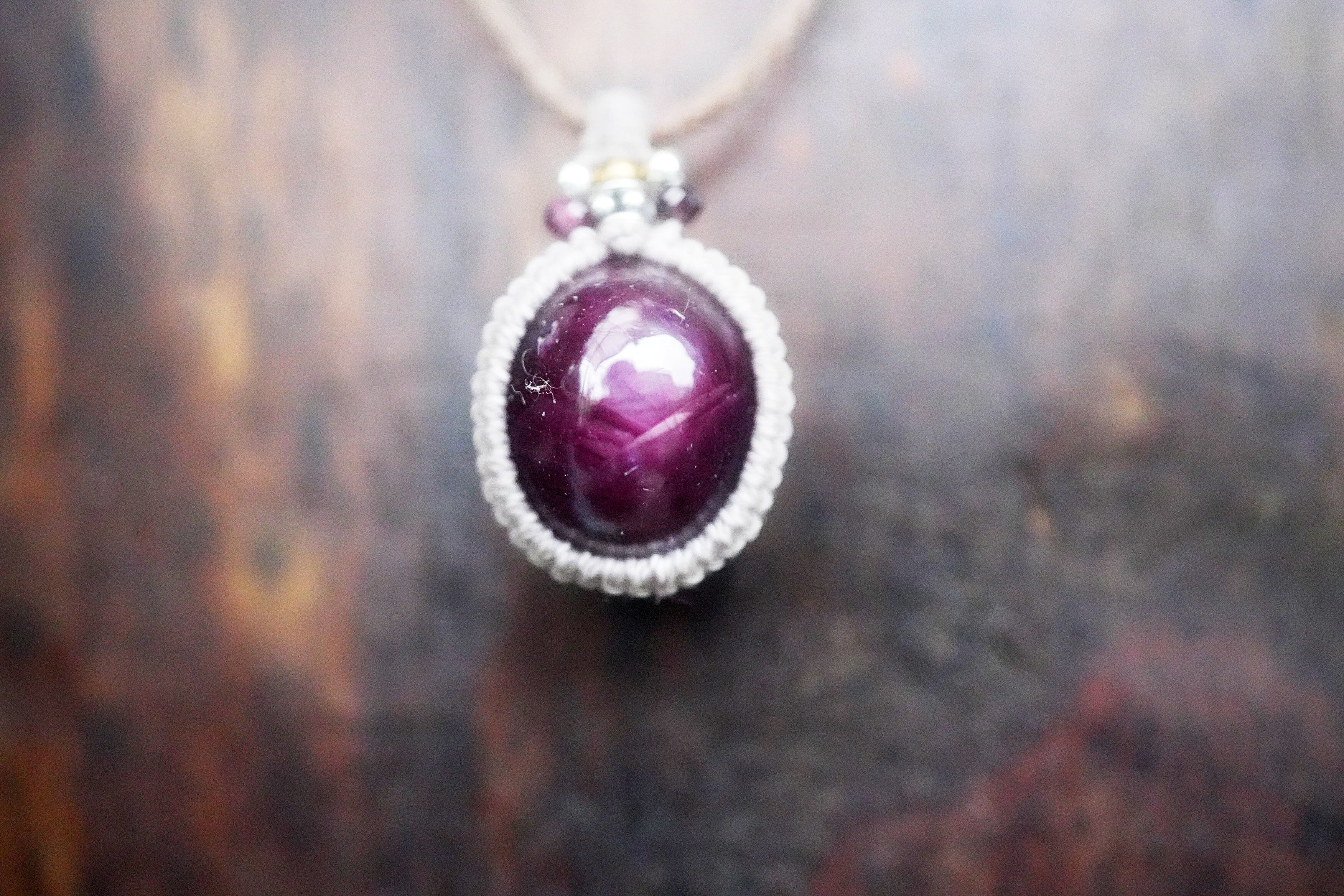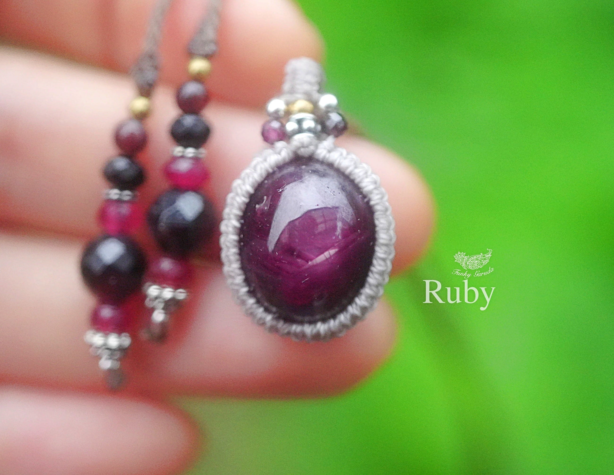 コランダム成長線★高品質★ルビー マクラメネックレス 1599