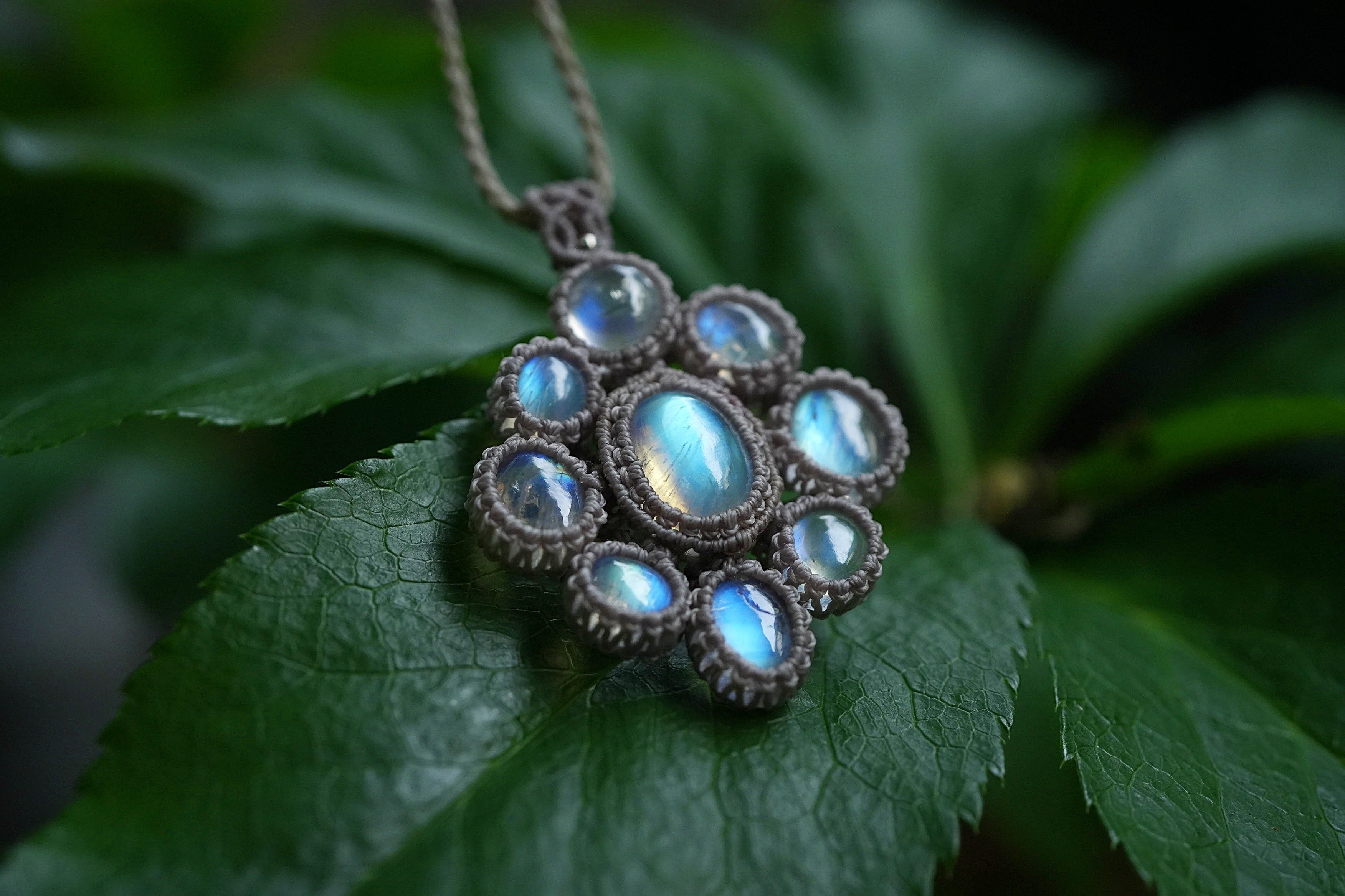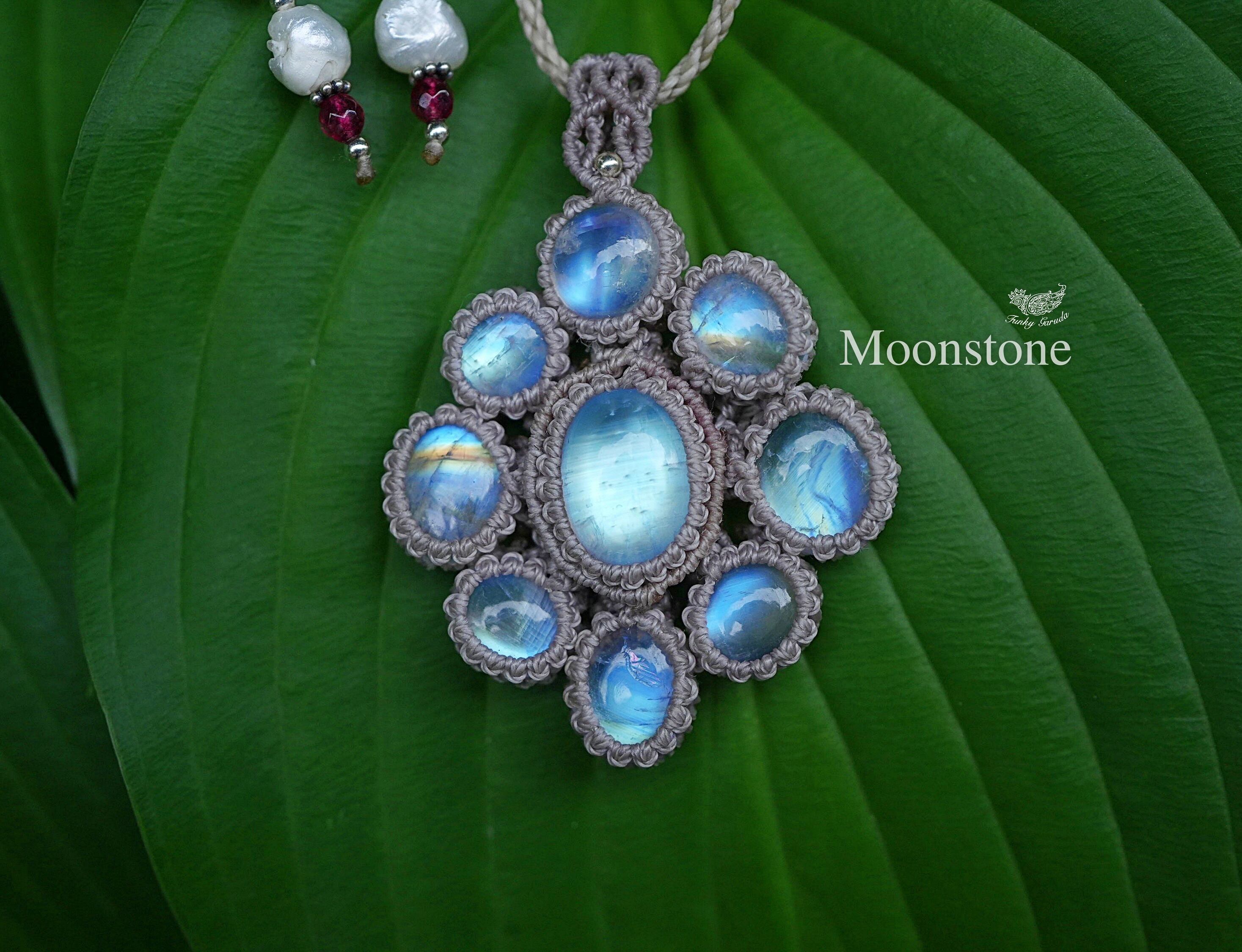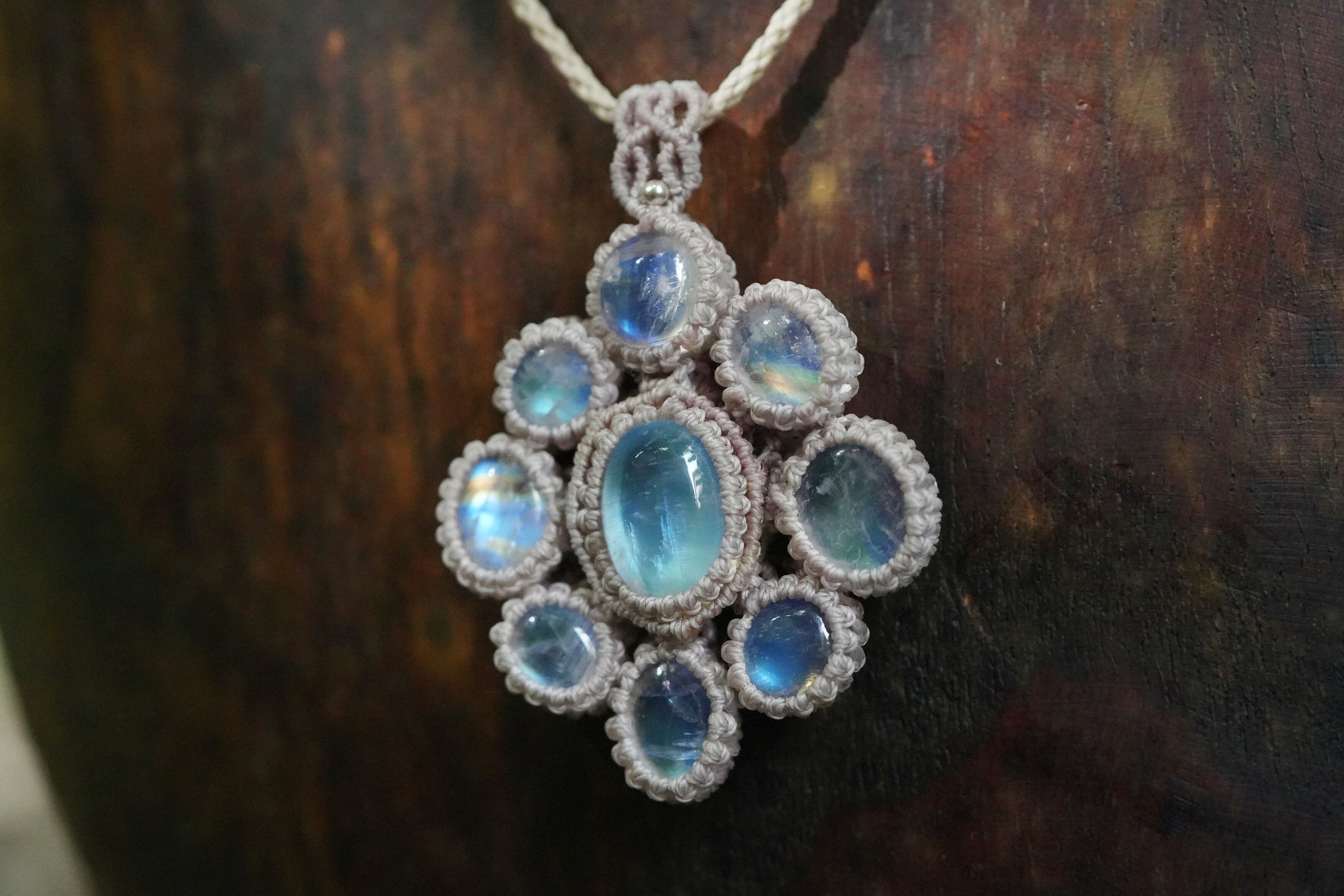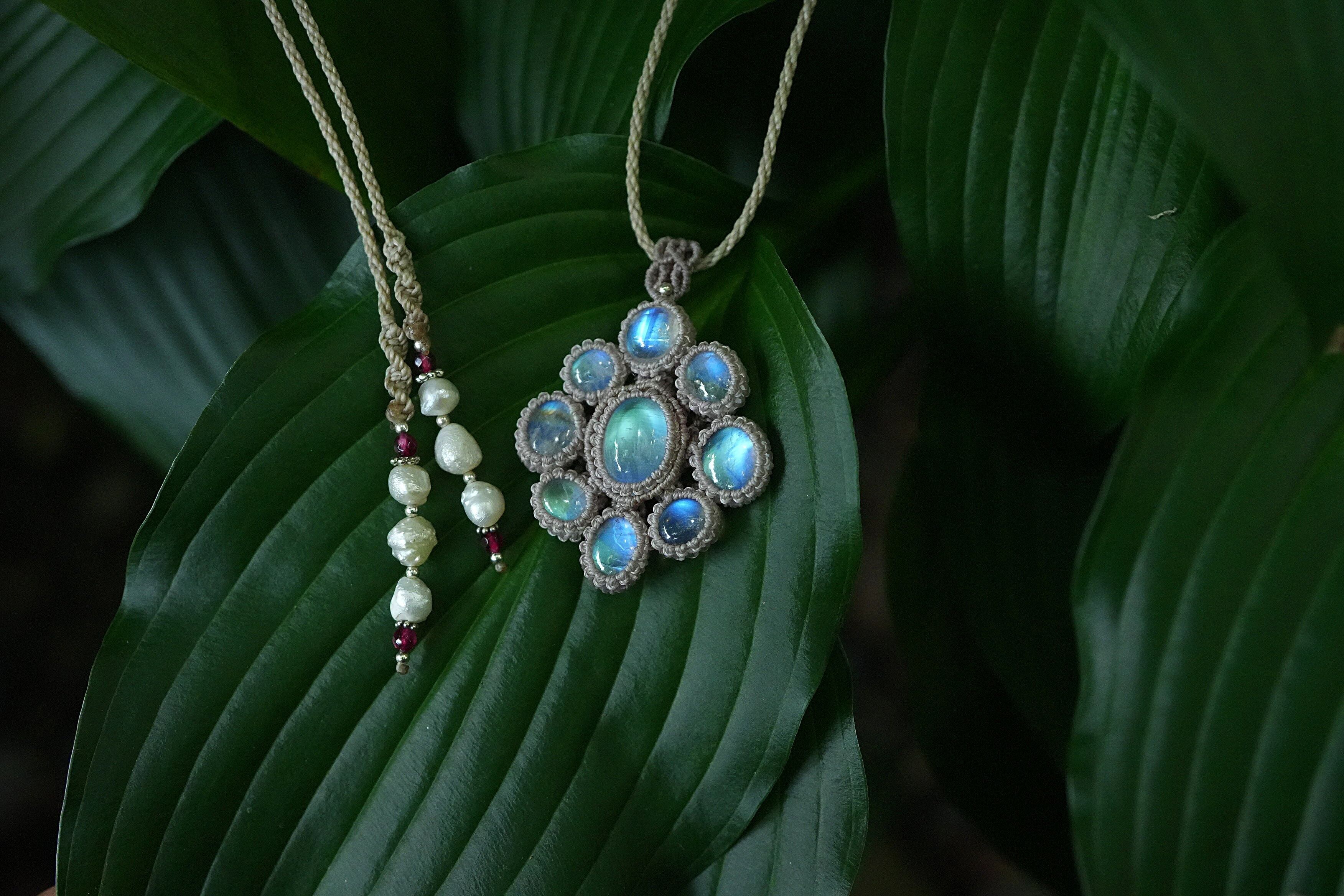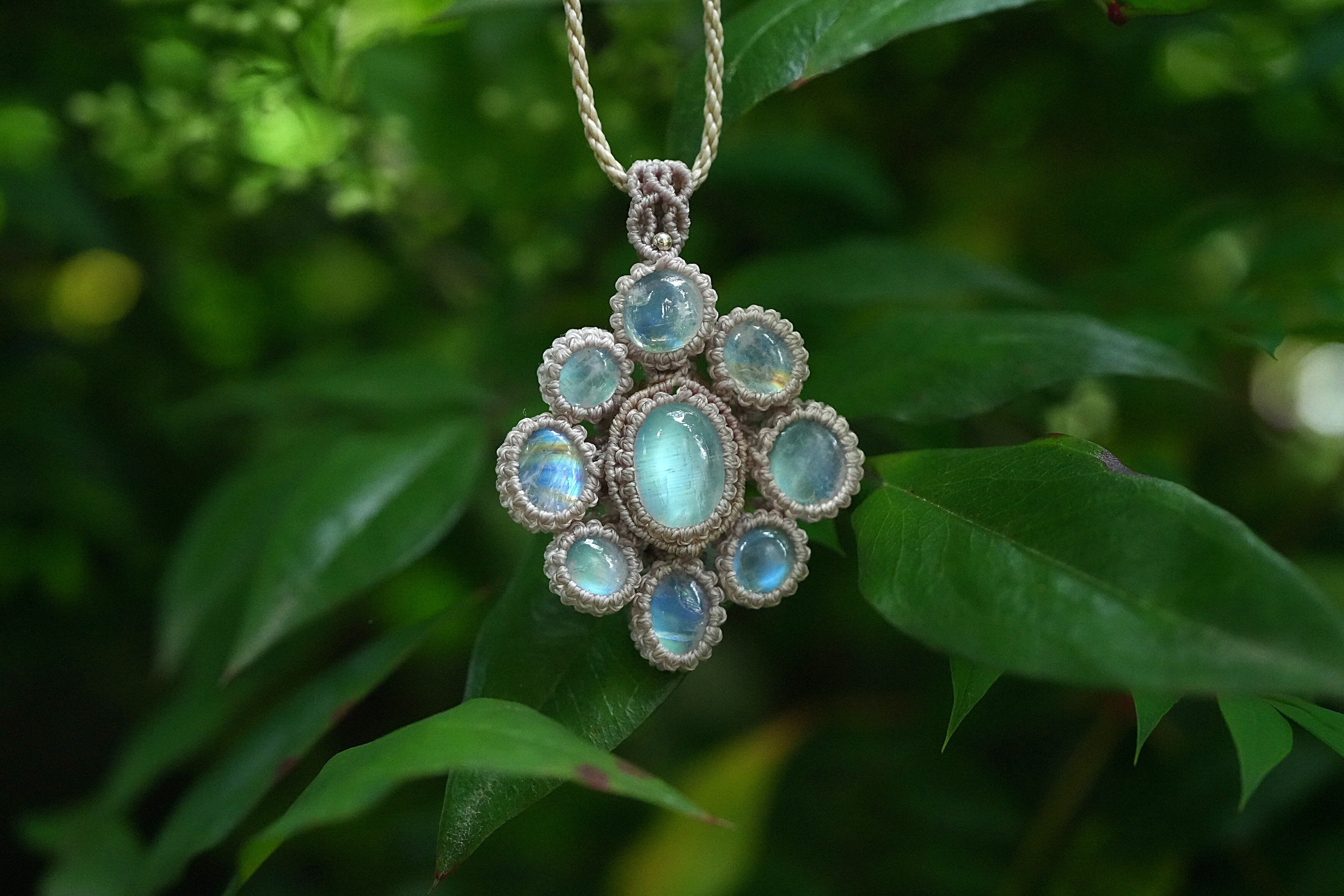 お花咲く★高品質★レインボームーンストーン マクラメネックレス1600