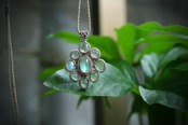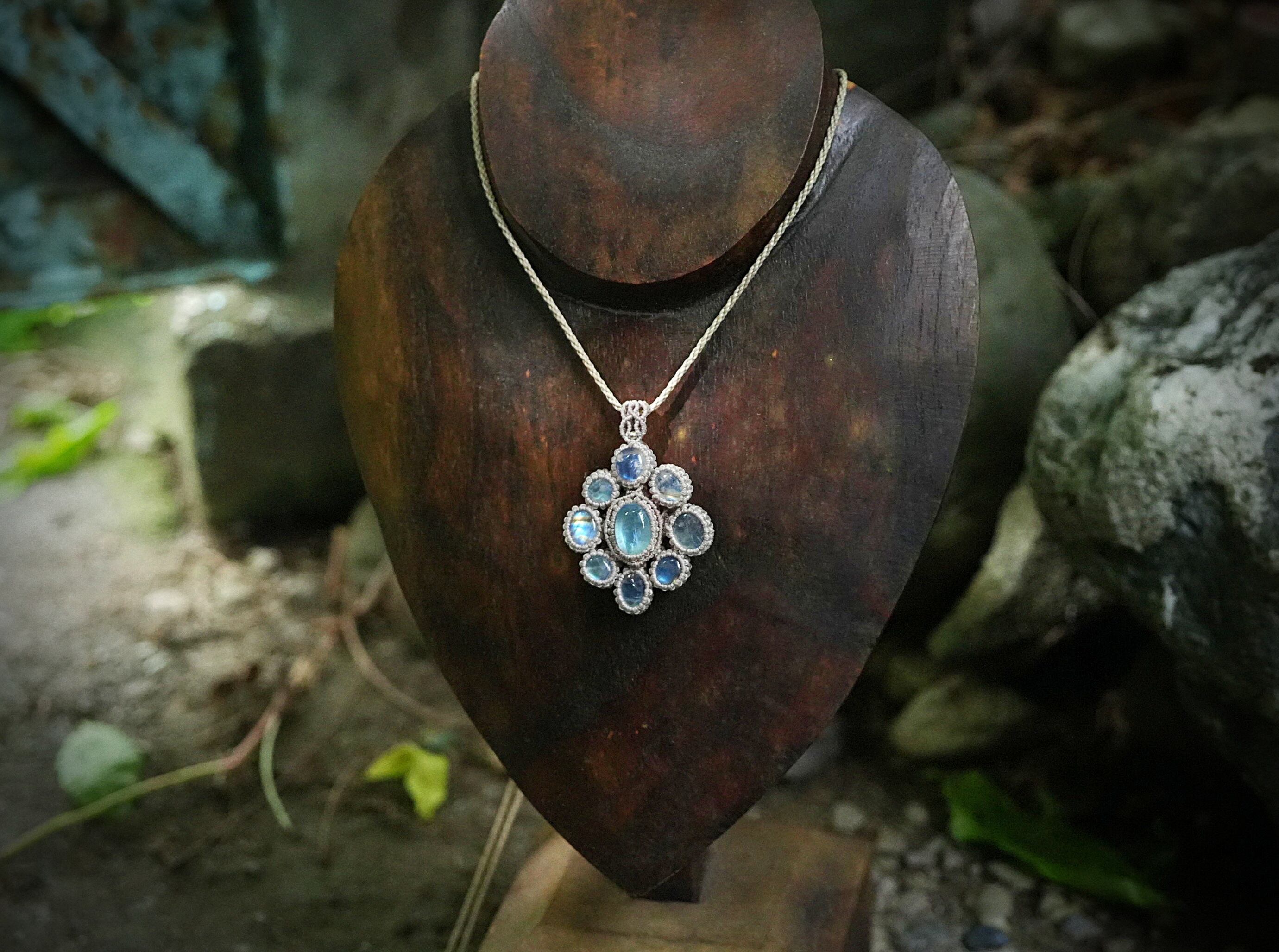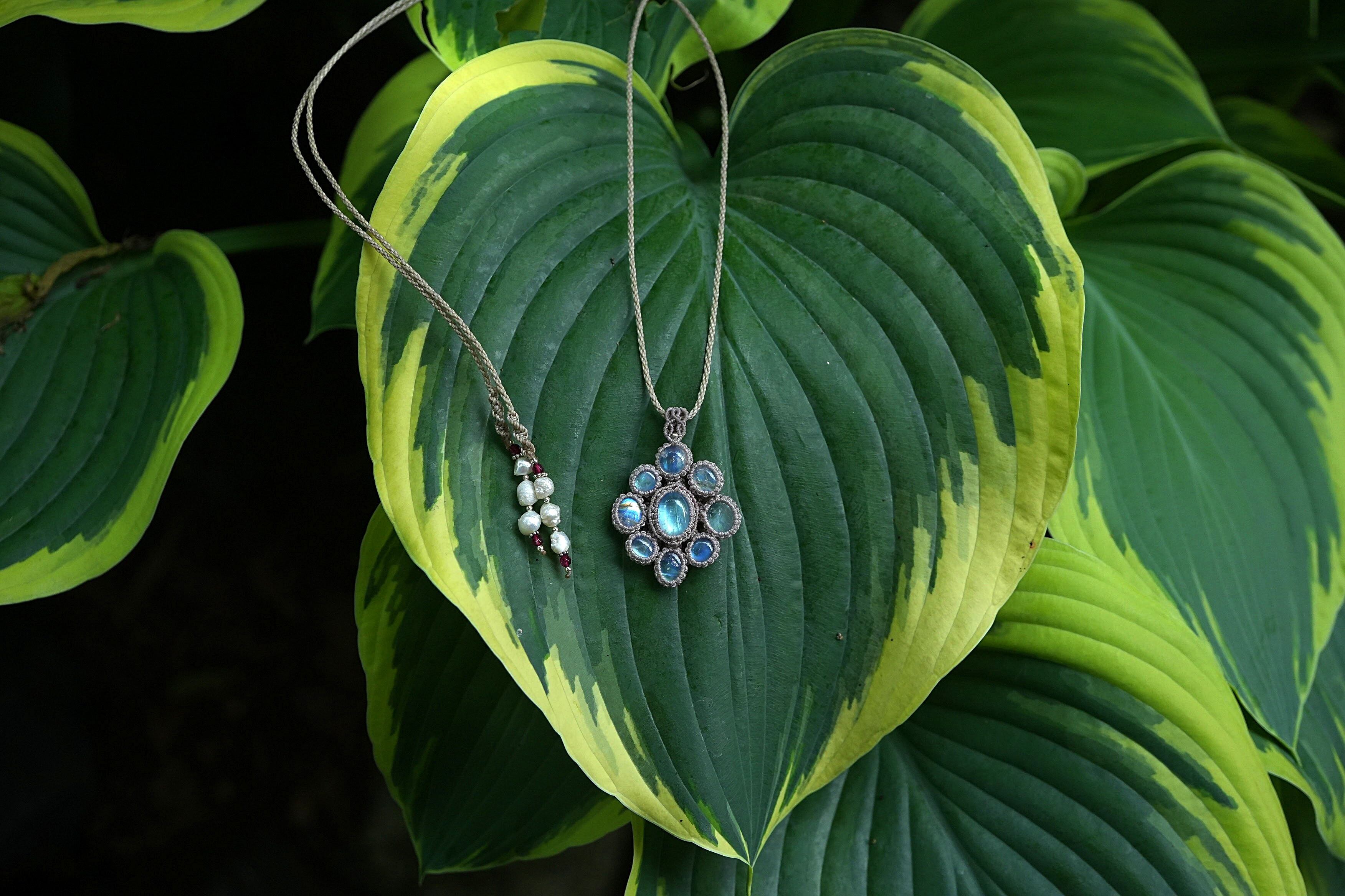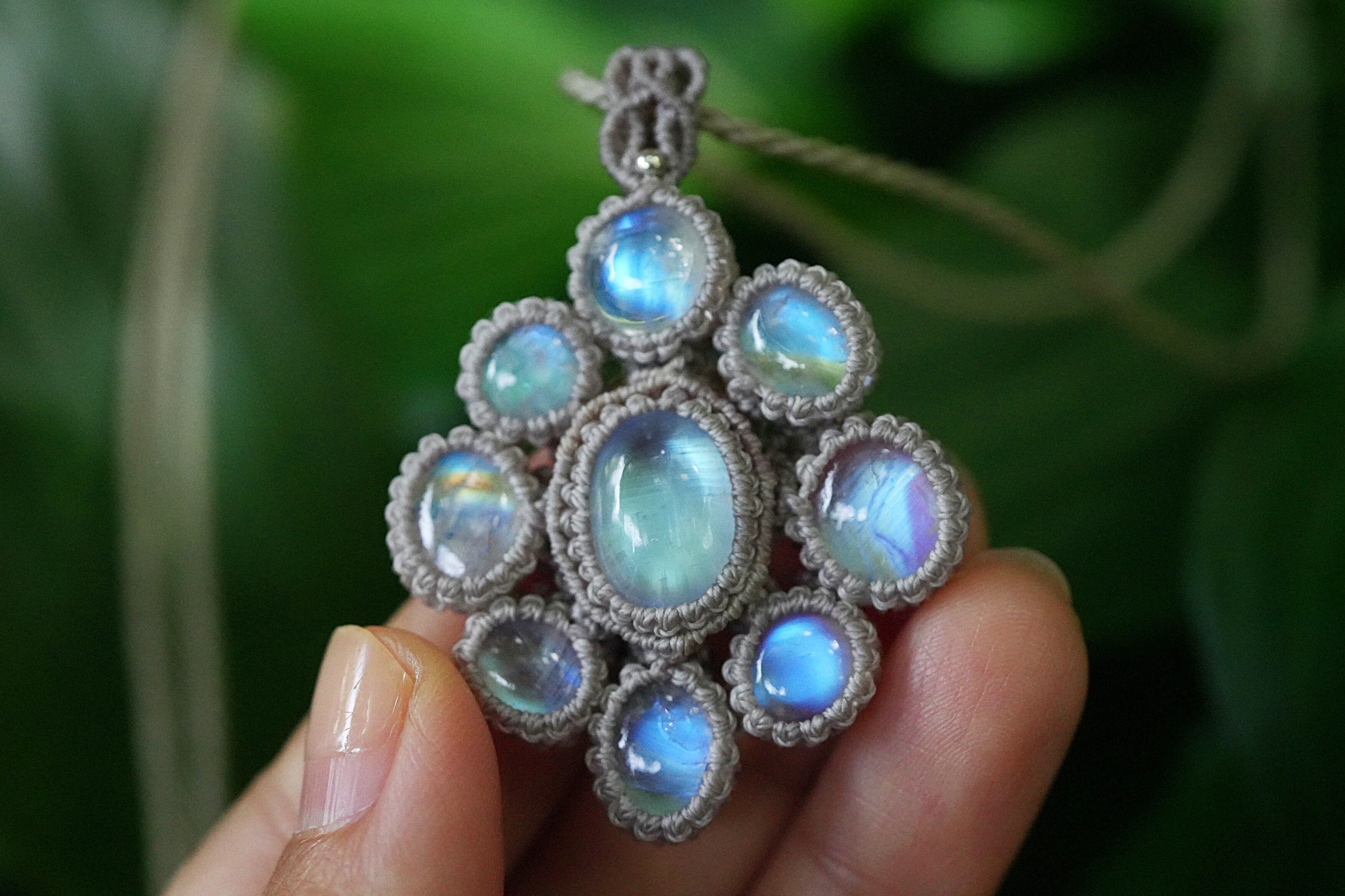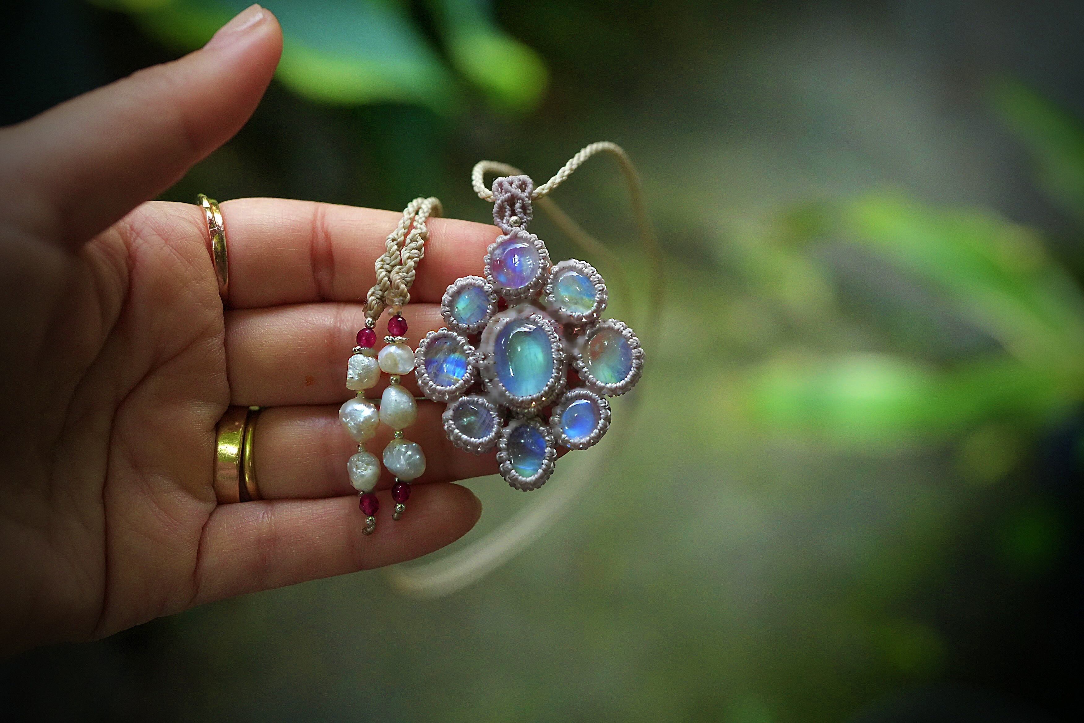 お花咲く★高品質★レインボームーンストーン マクラメネックレス1600