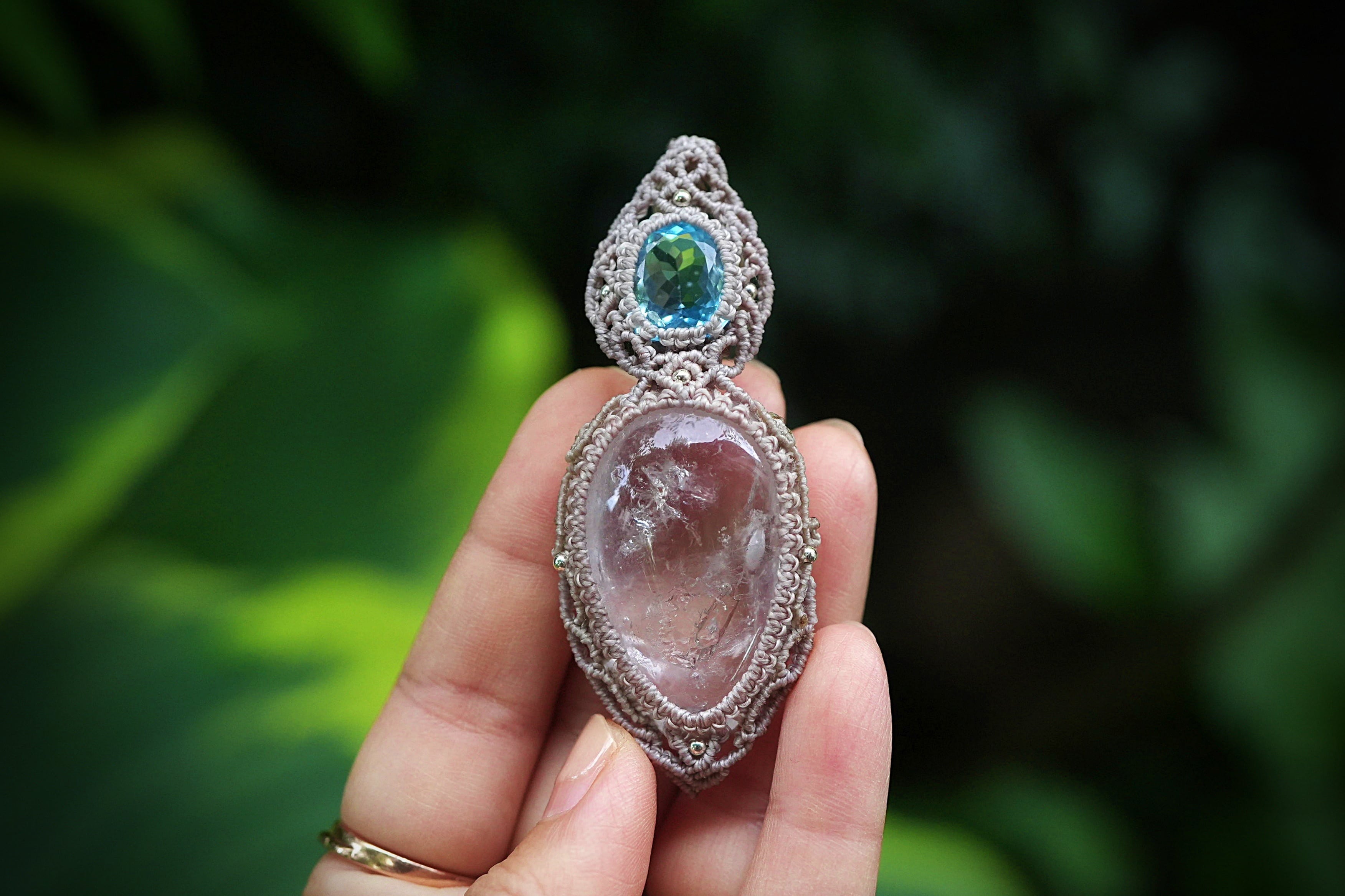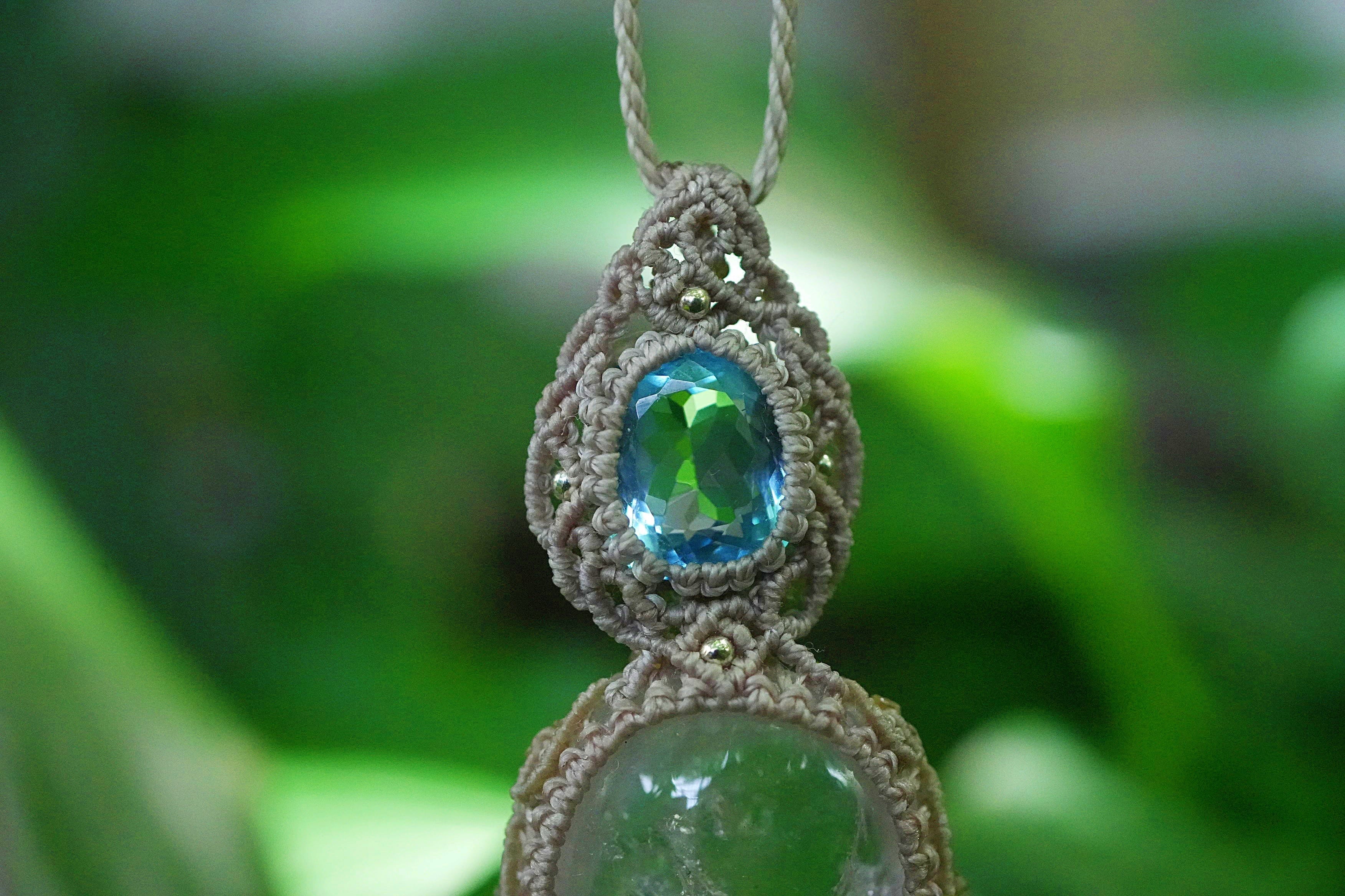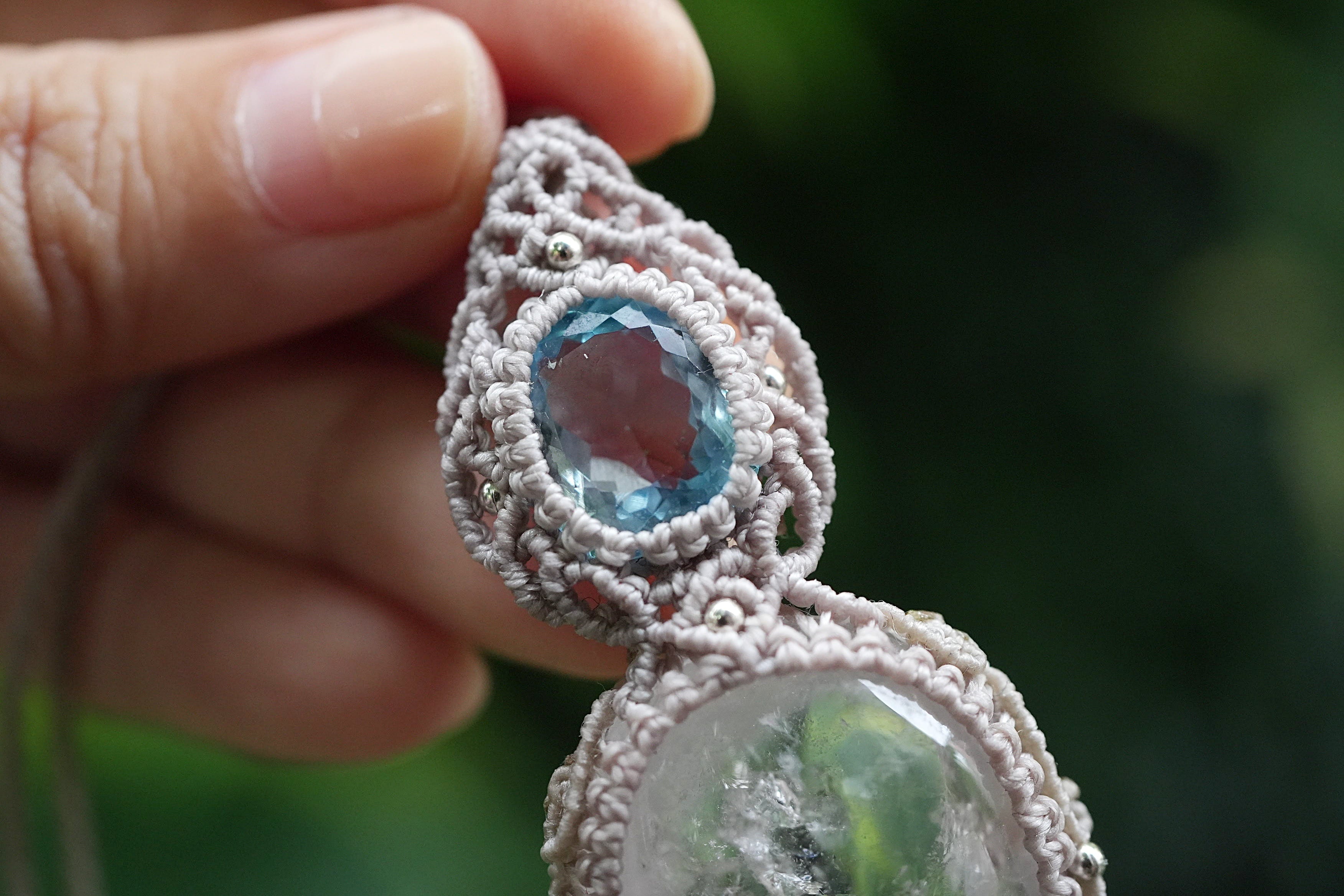 青い涙と古代の水入り水晶★ブルートパーズ マクラメネックレス1601