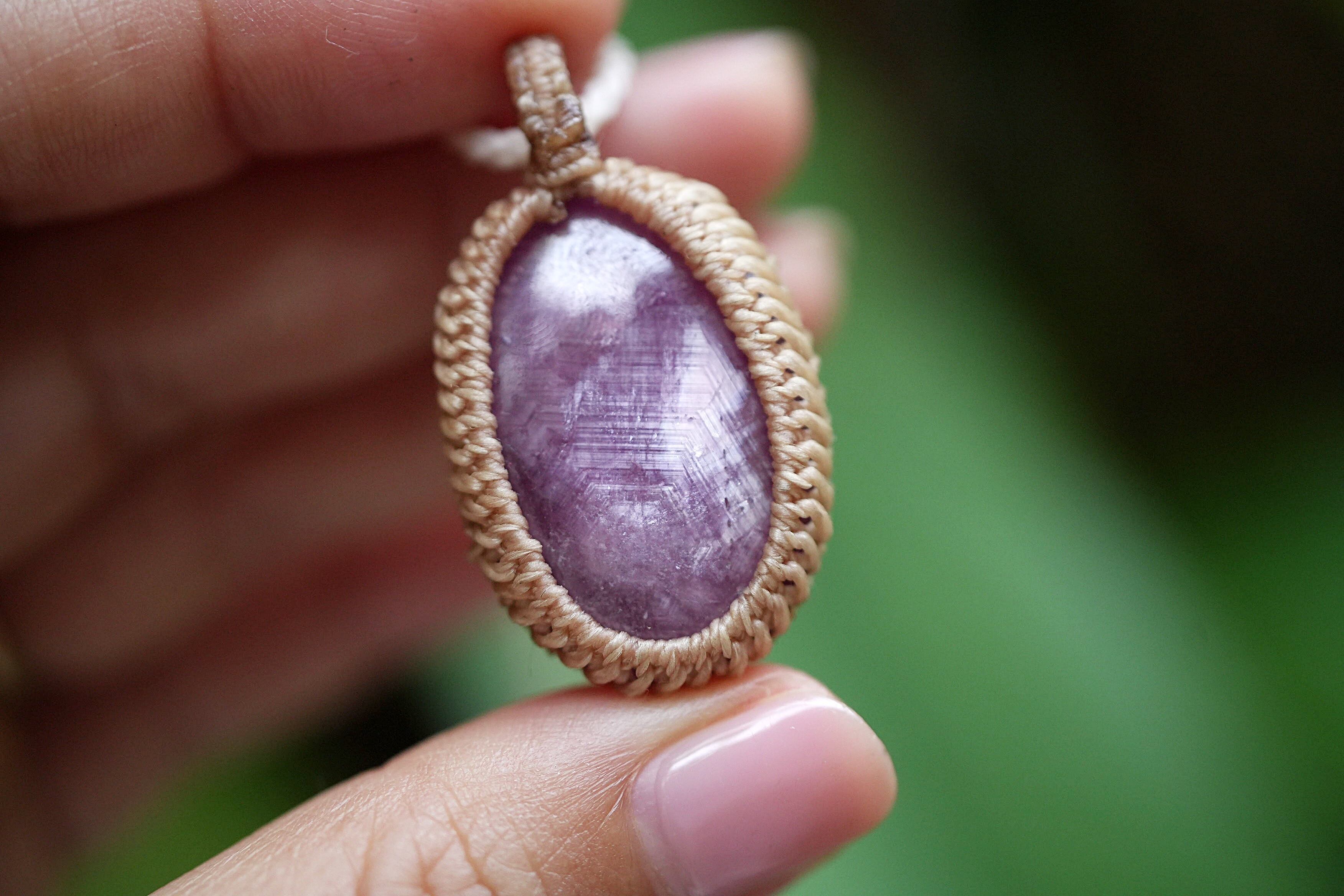 ◆このたびはナチュラルホワイト、キャラメル色の蝋引き糸を使用しマクラメ編み装飾を施しました。