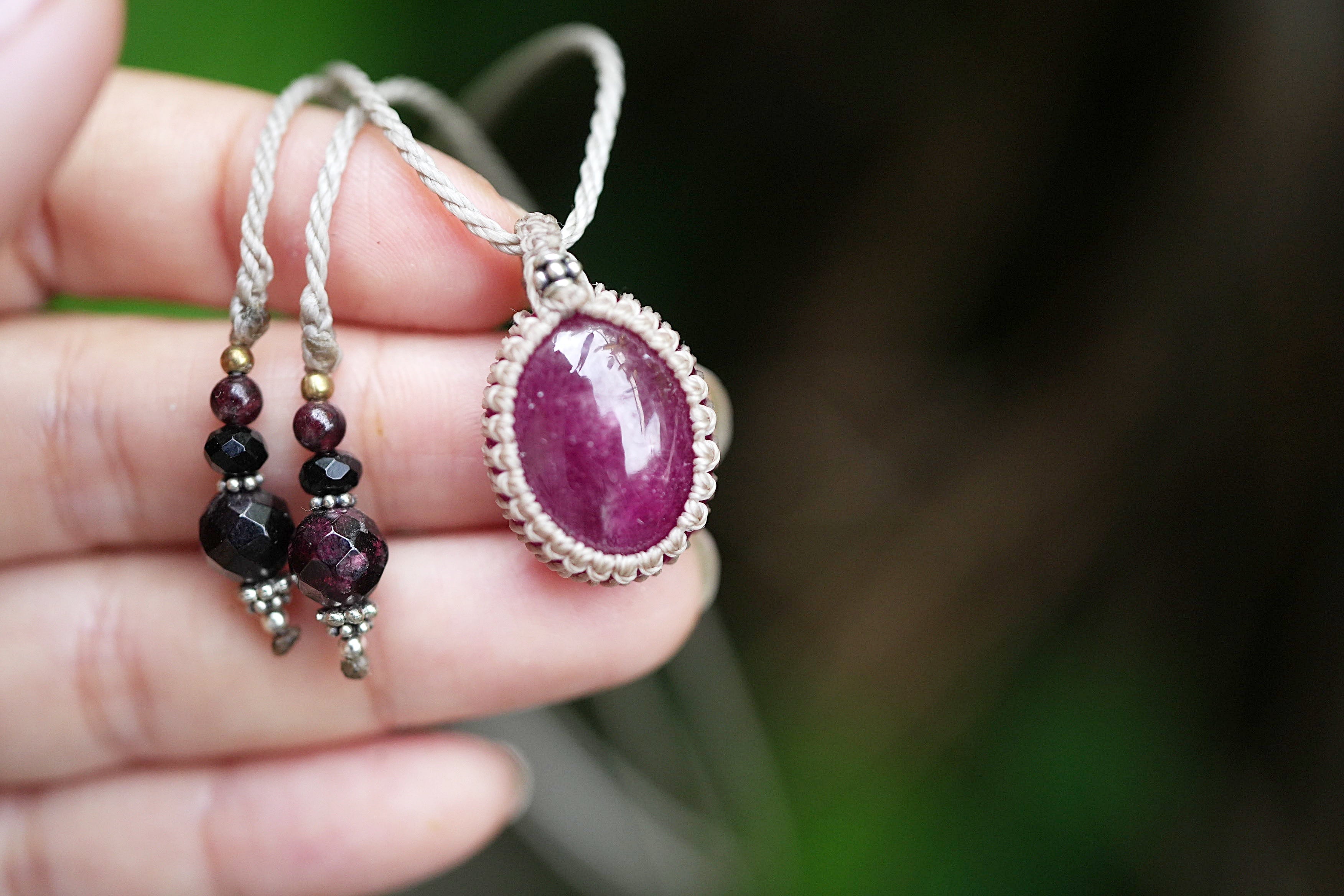 赤キャンディに流星★ルビーマクラメネックレス 1607
