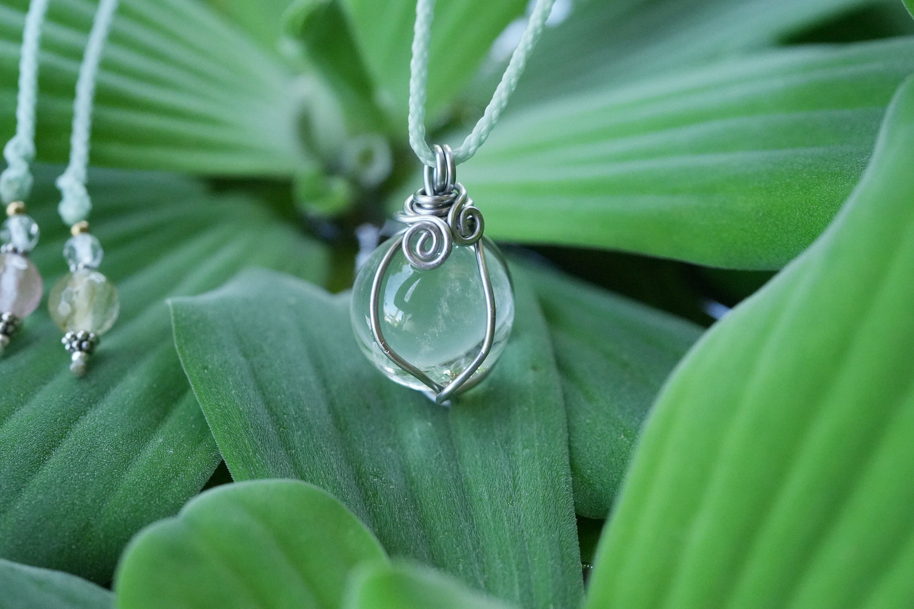 割れやすいクリスタルをワイヤーで巻き付けることは職人技。