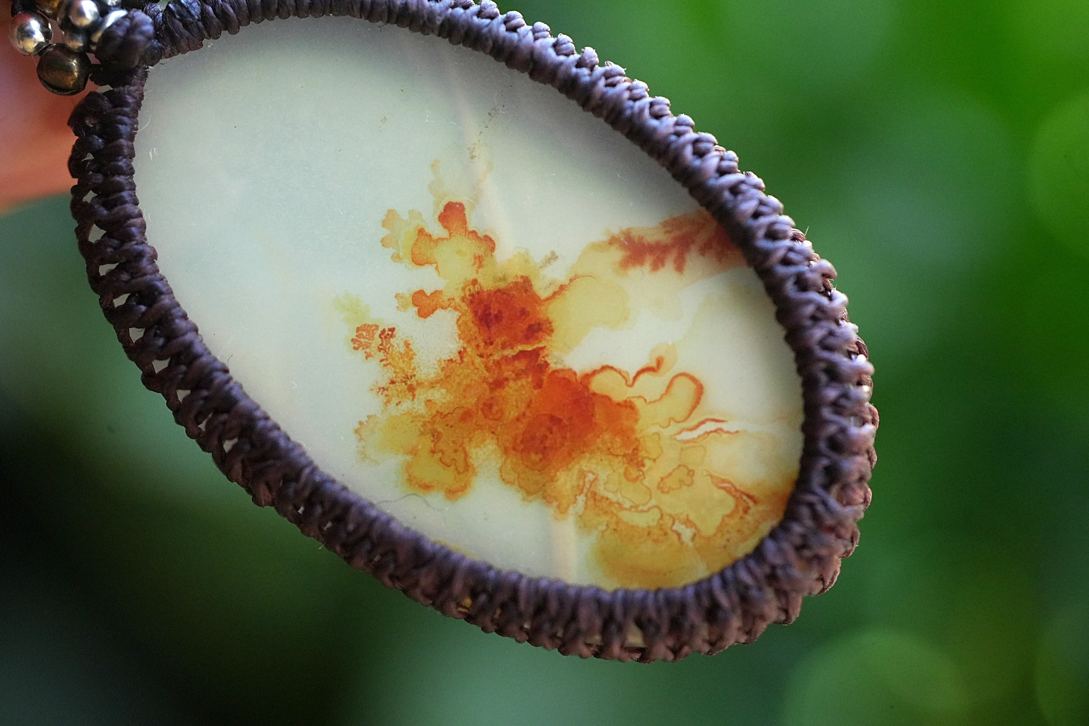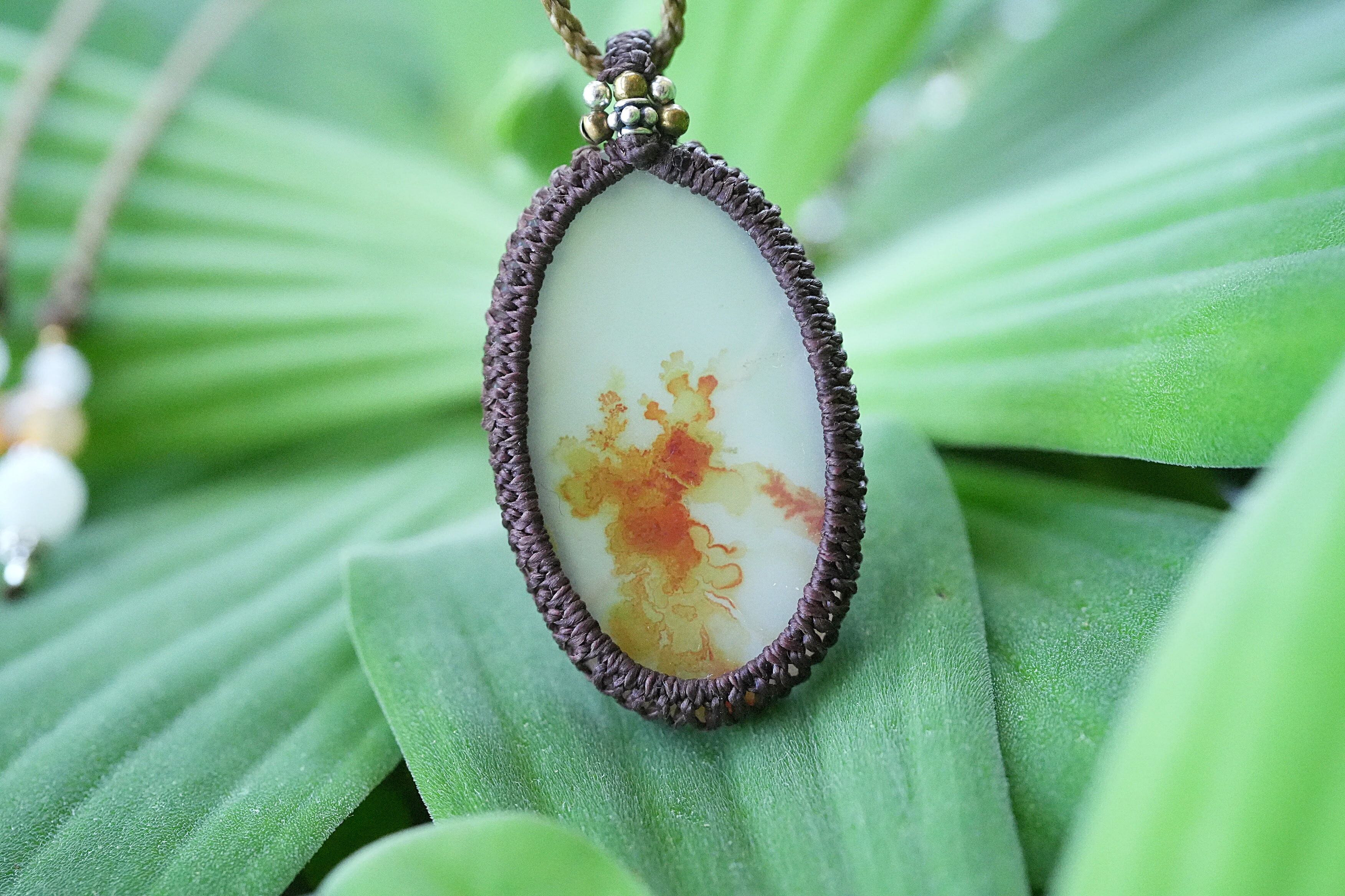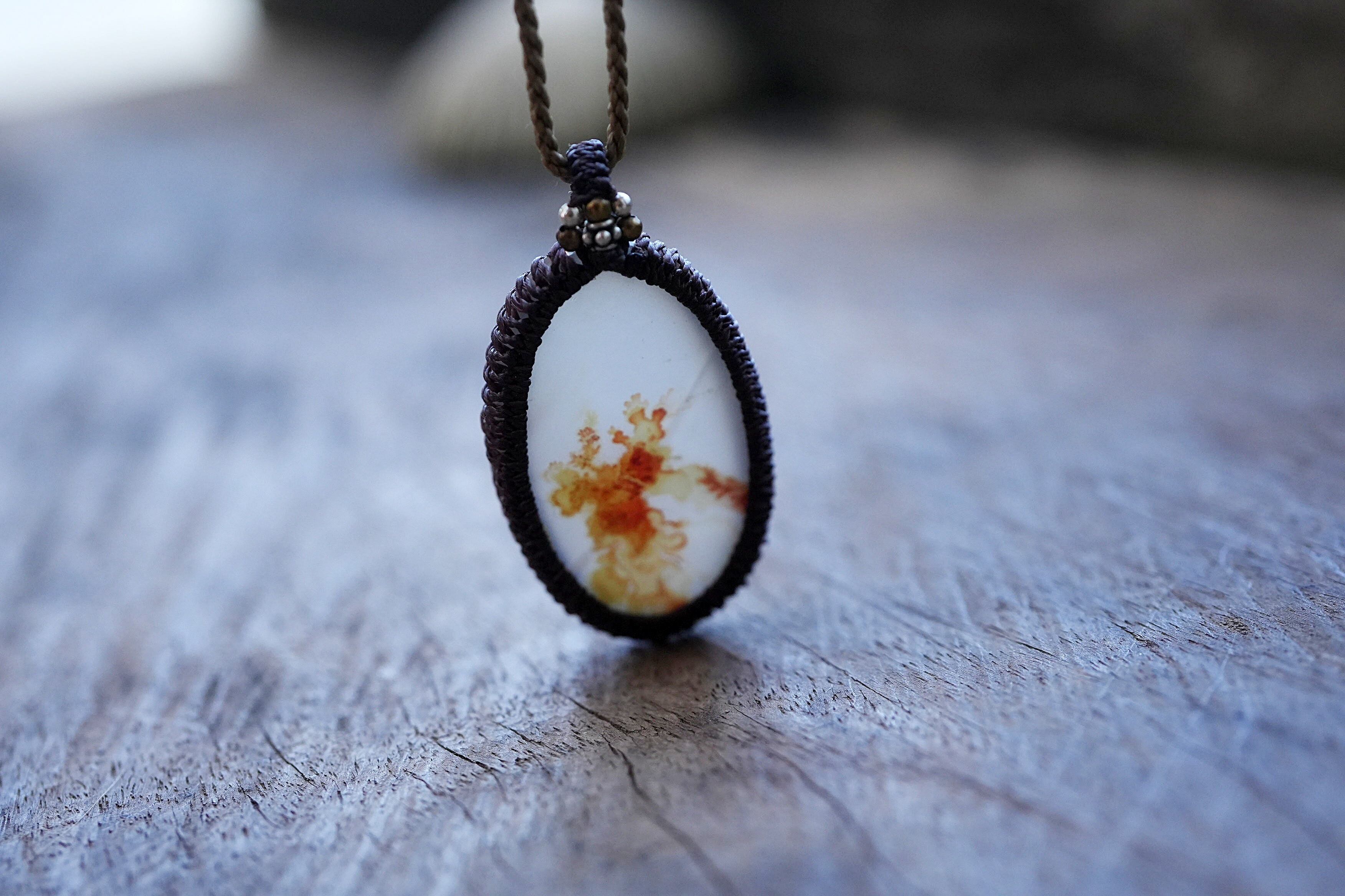 ゆらめく柿色模様★デントリティックアゲート マクラメネックレス1612