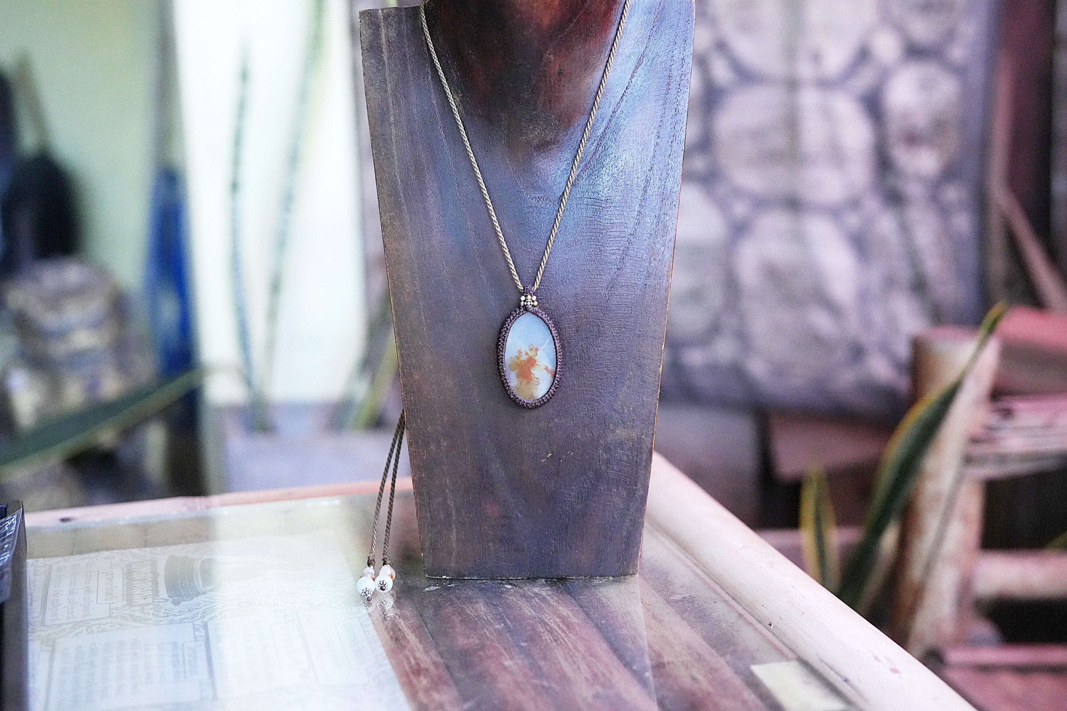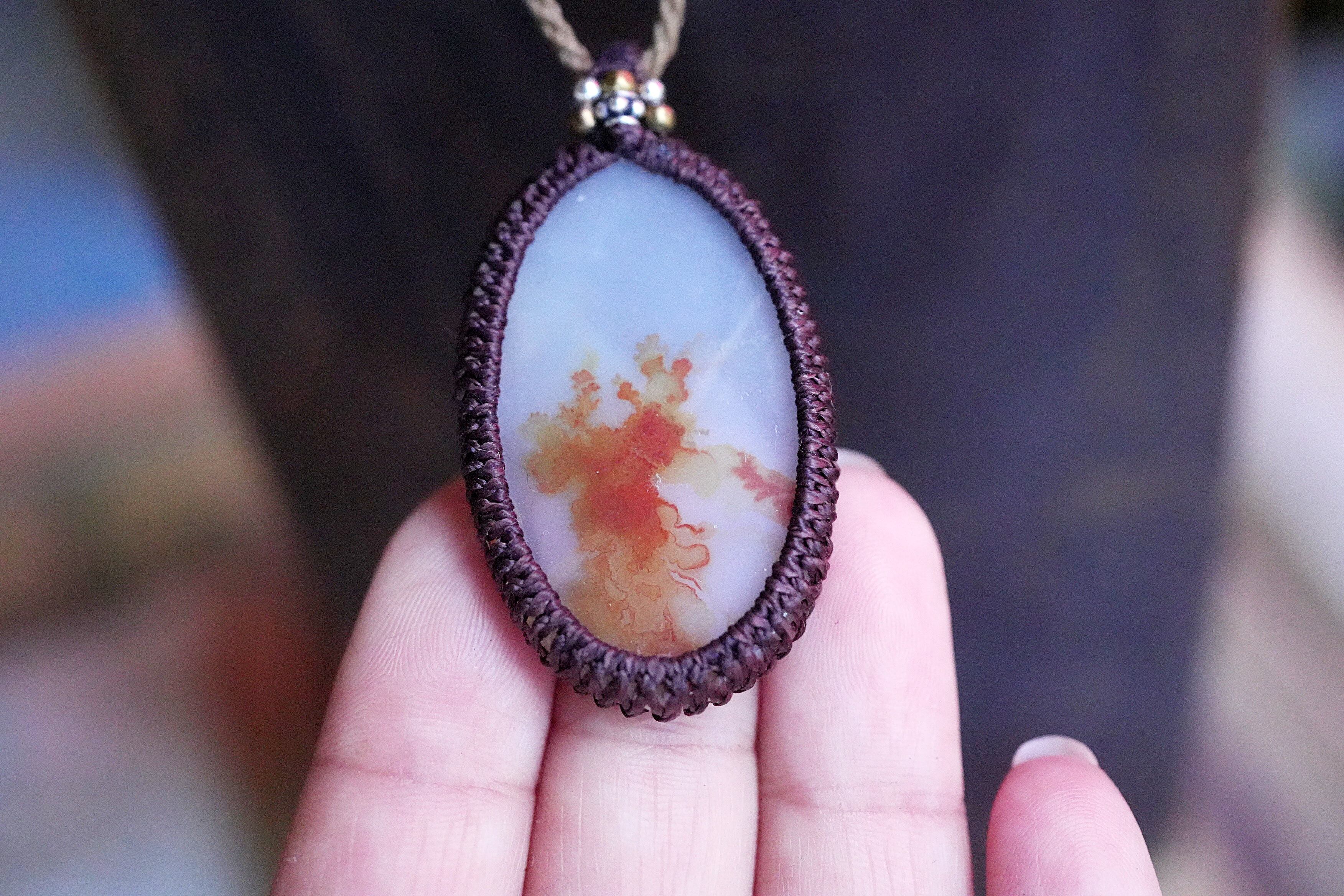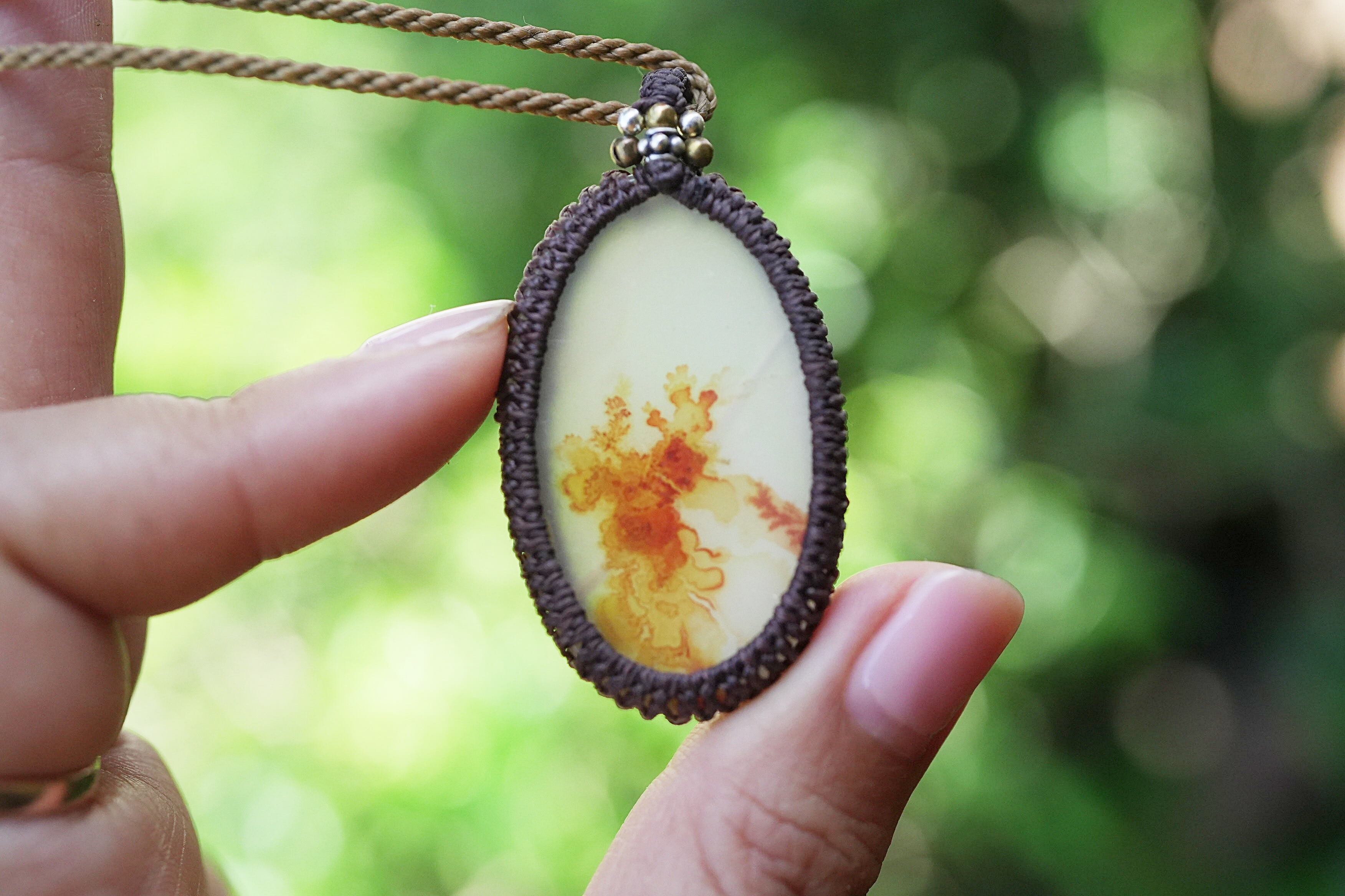 ゆらめく柿色模様★デントリティックアゲート マクラメネックレス1612