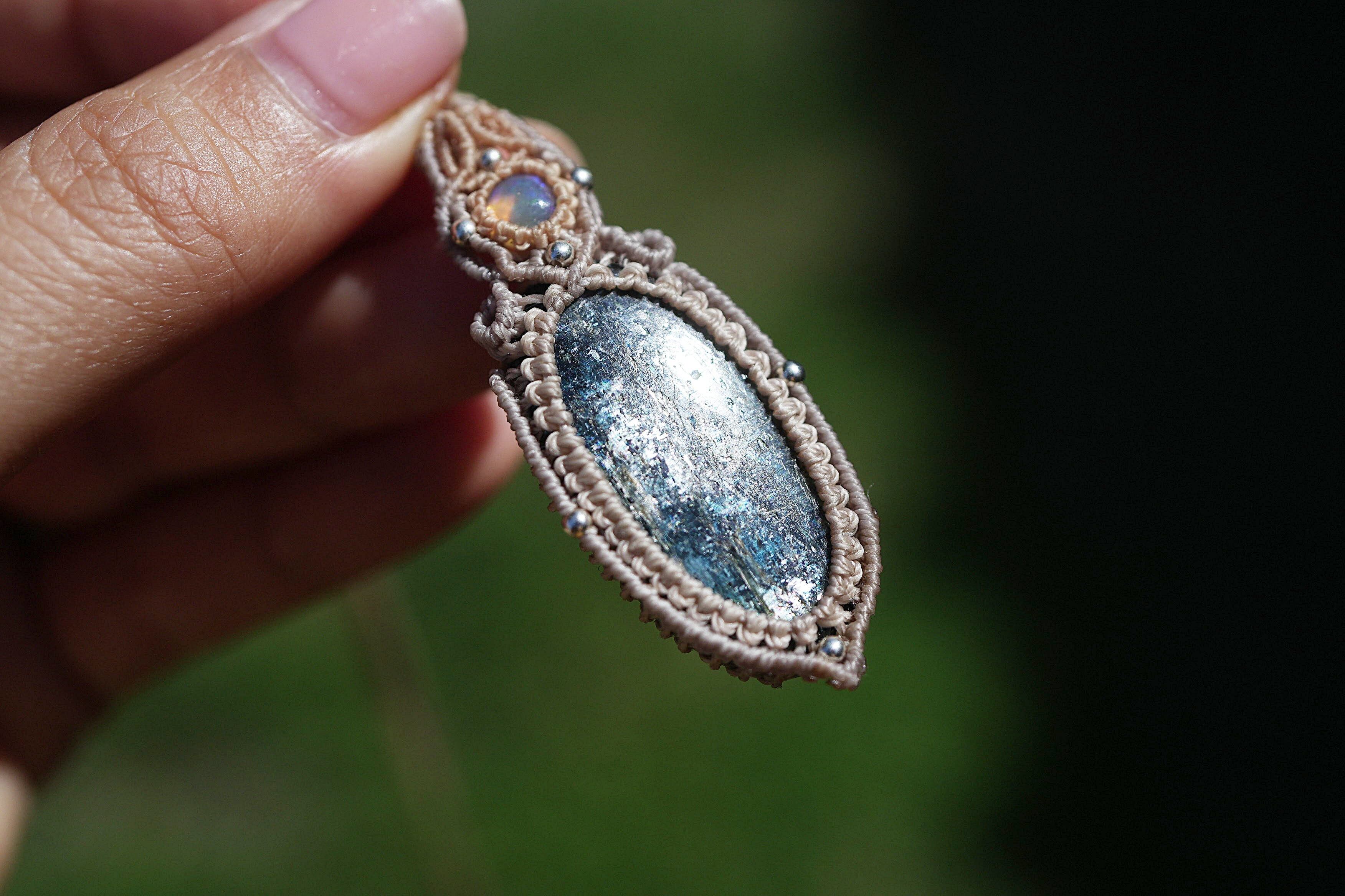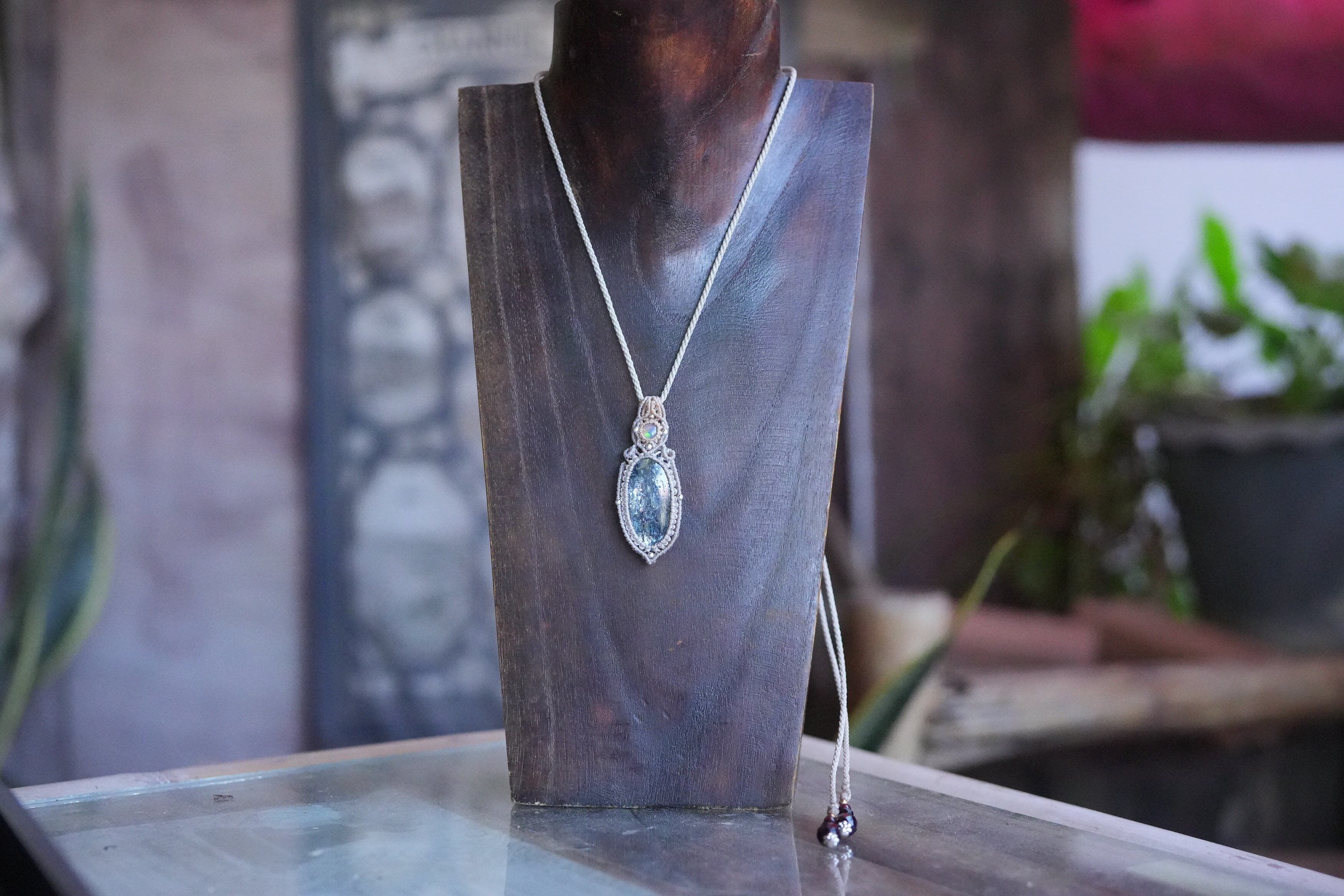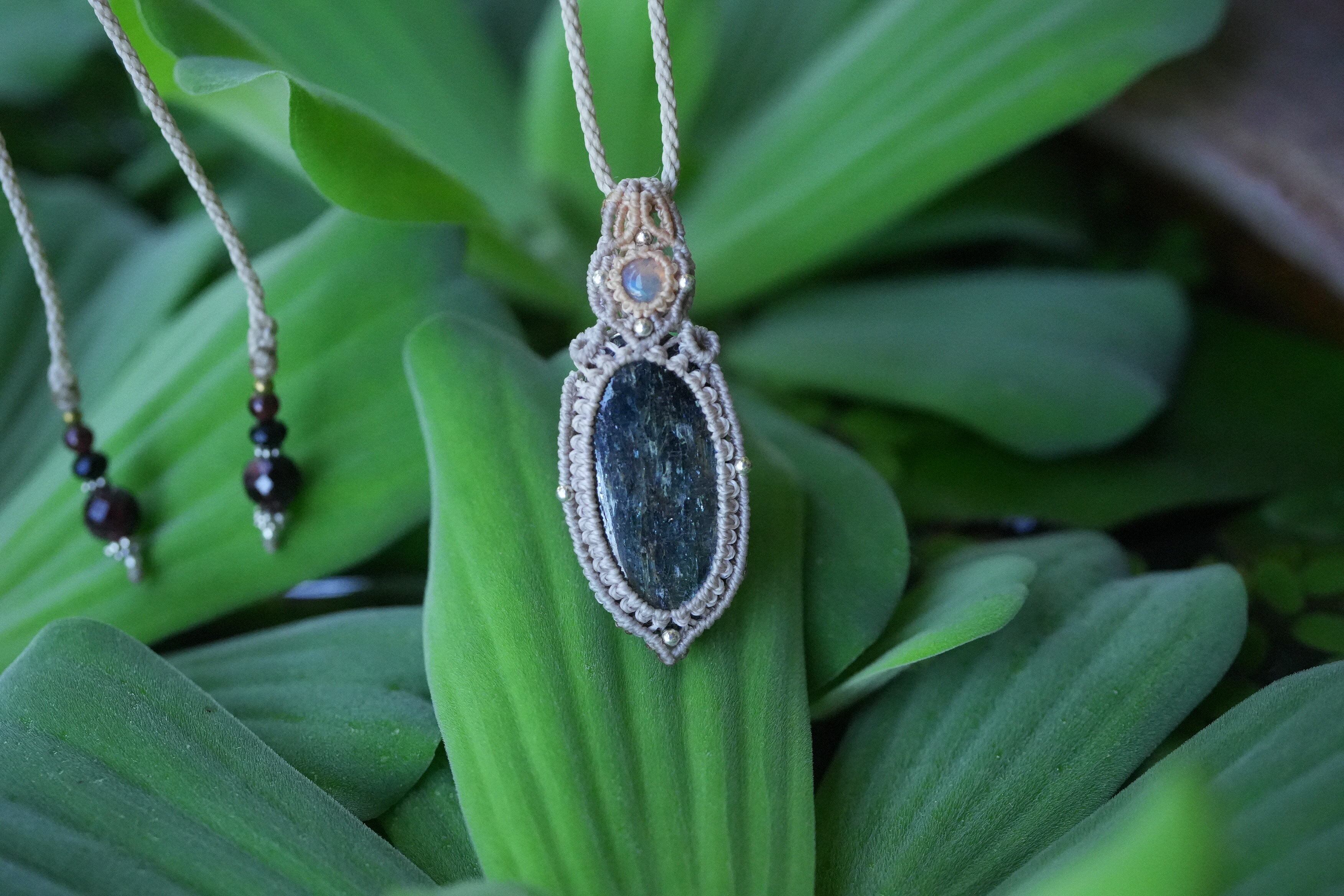 蒼い稲妻の遊色★moss kyanite マクラメネックレス1615