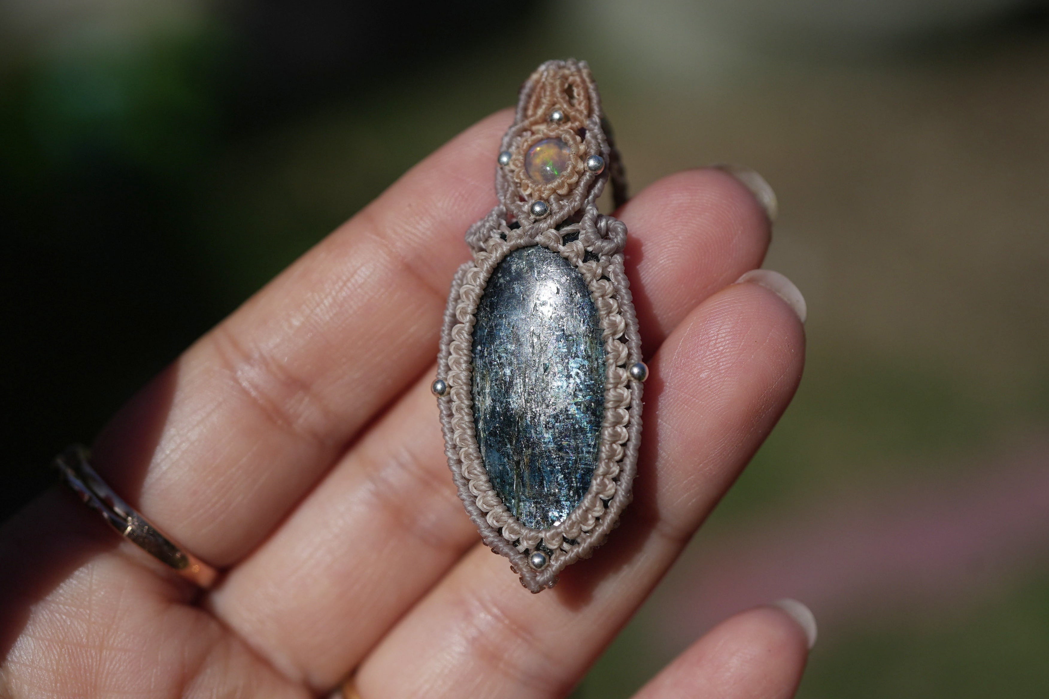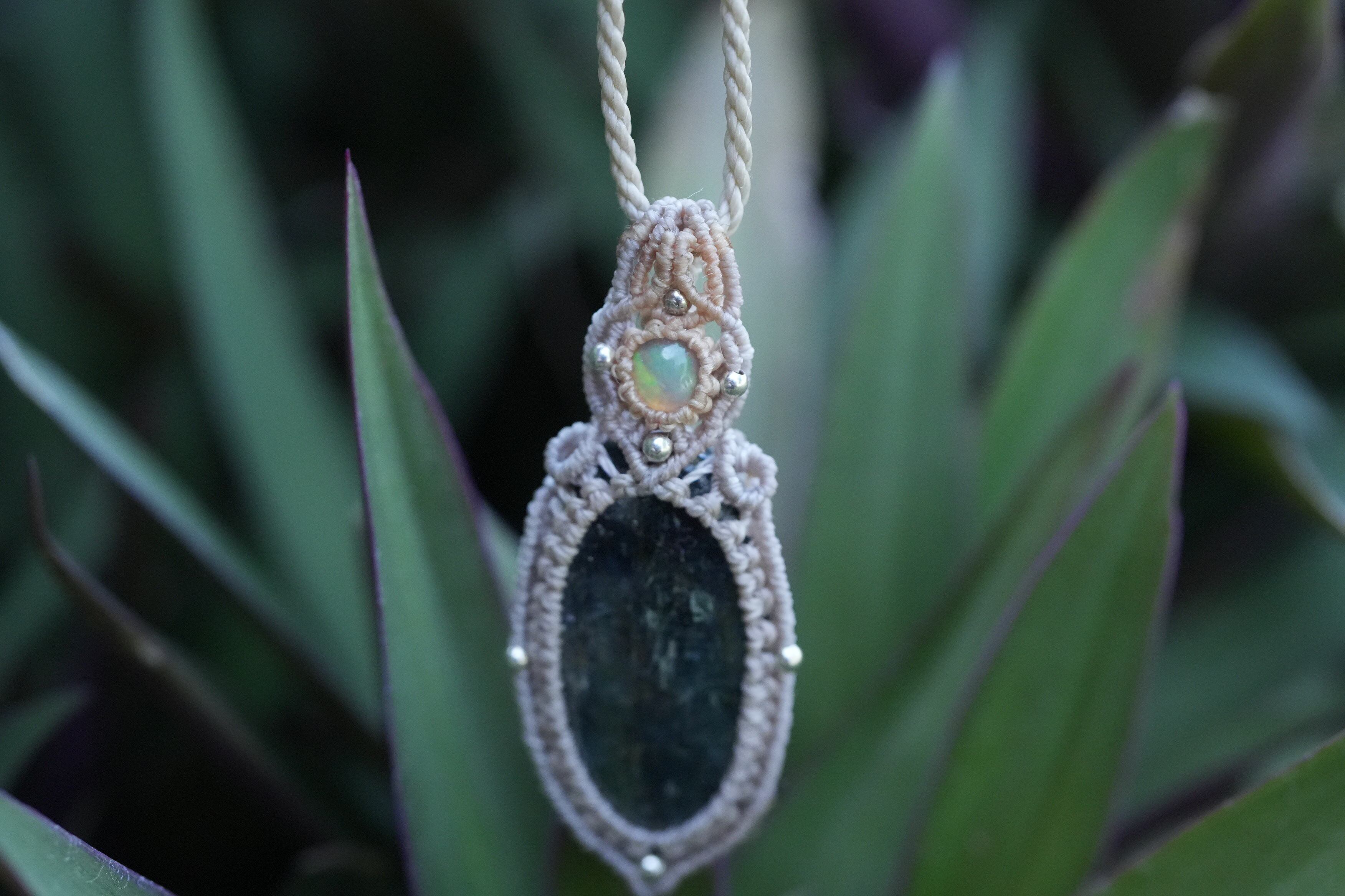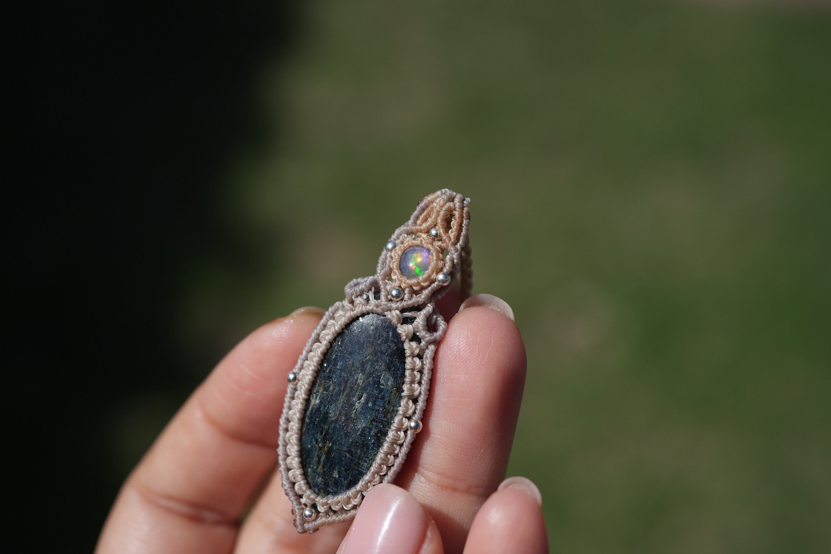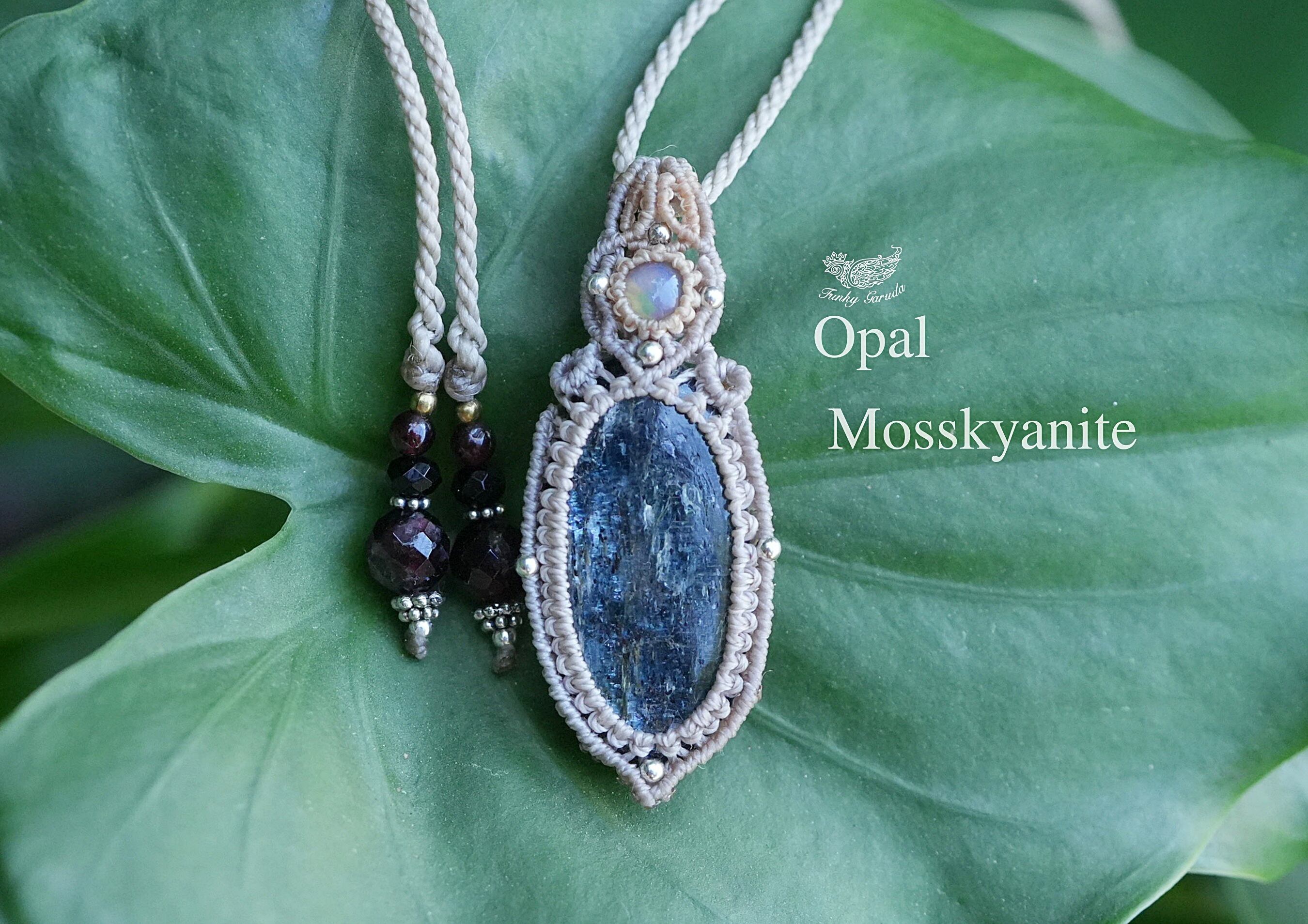 蒼い稲妻の遊色★moss kyanite マクラメネックレス1615