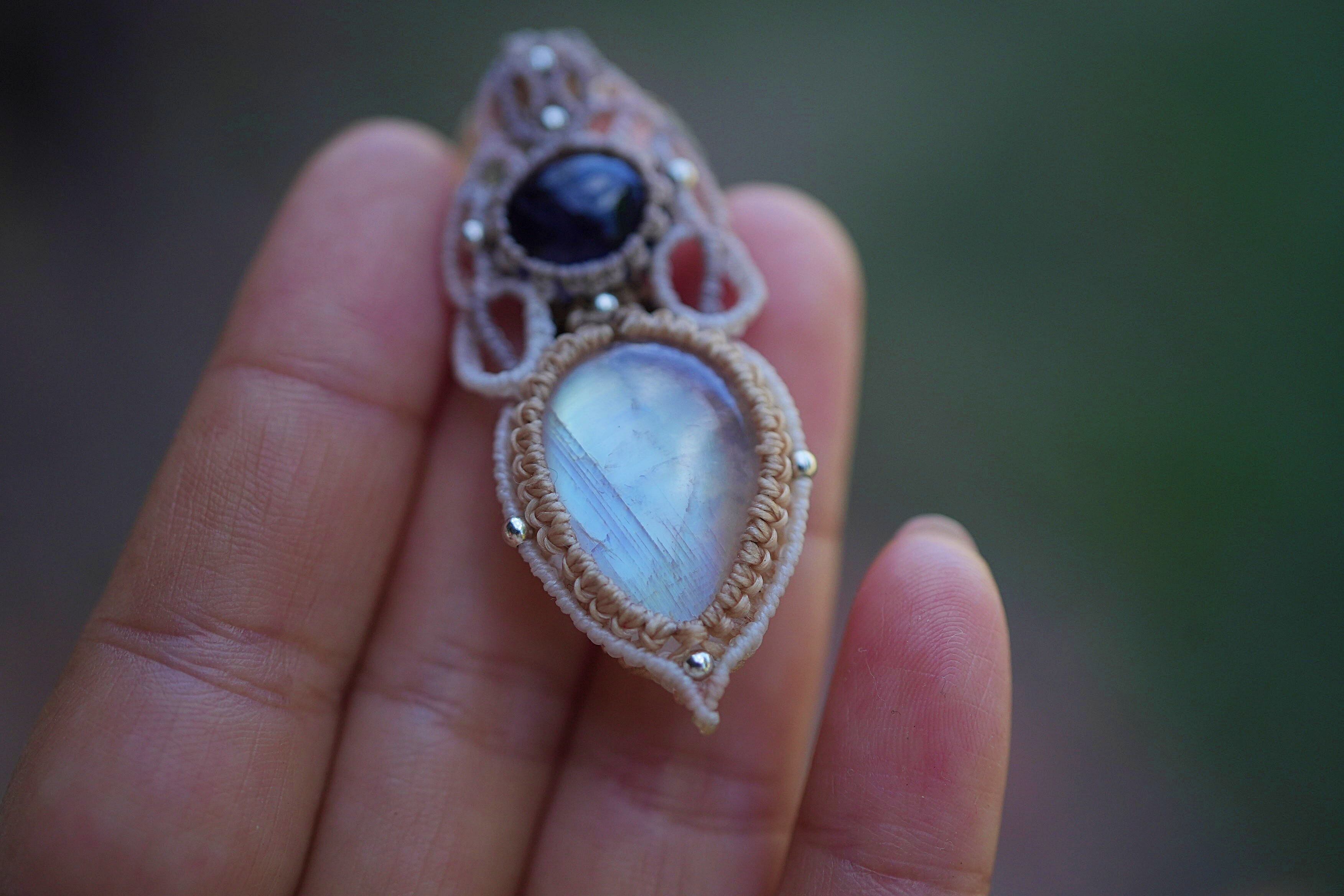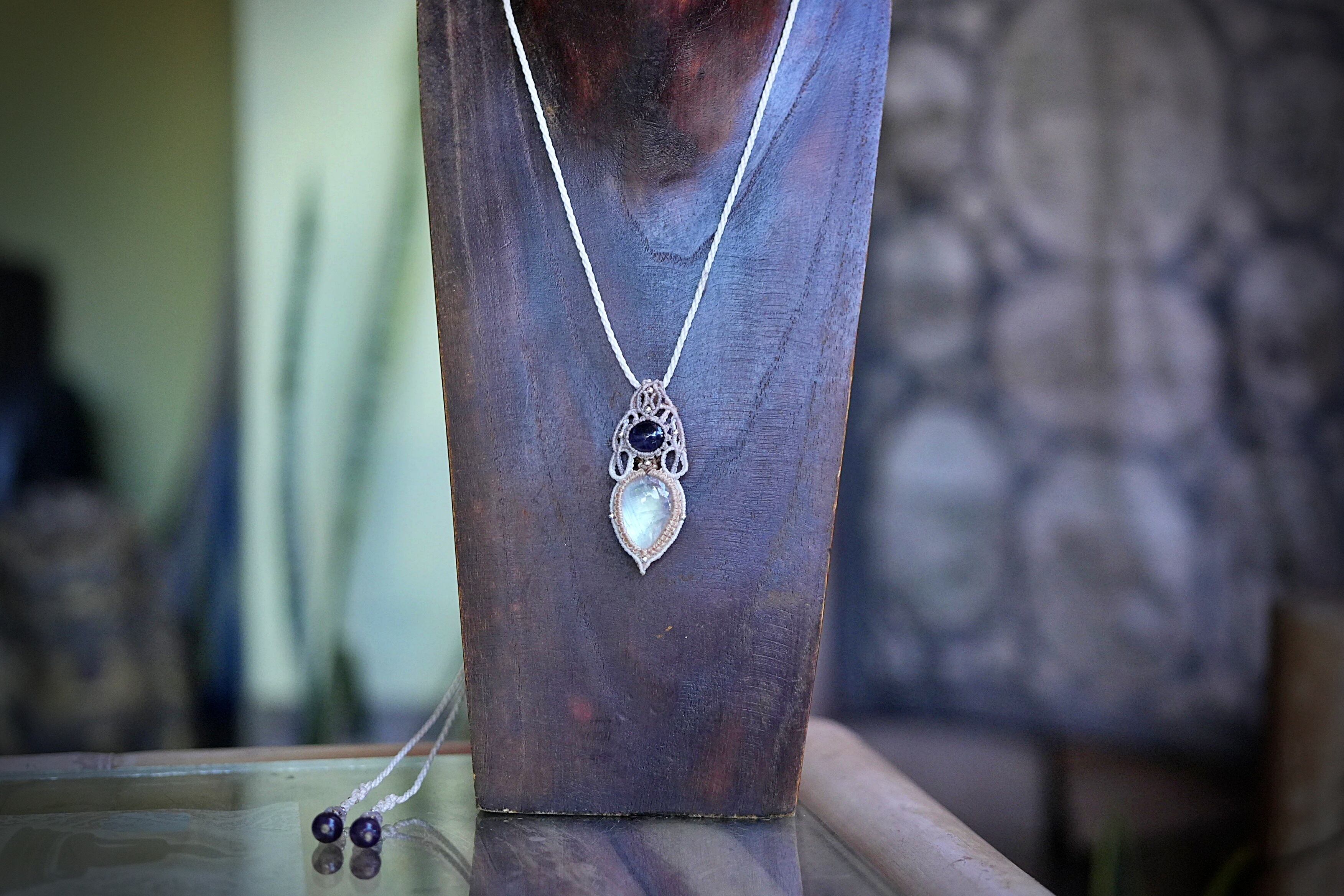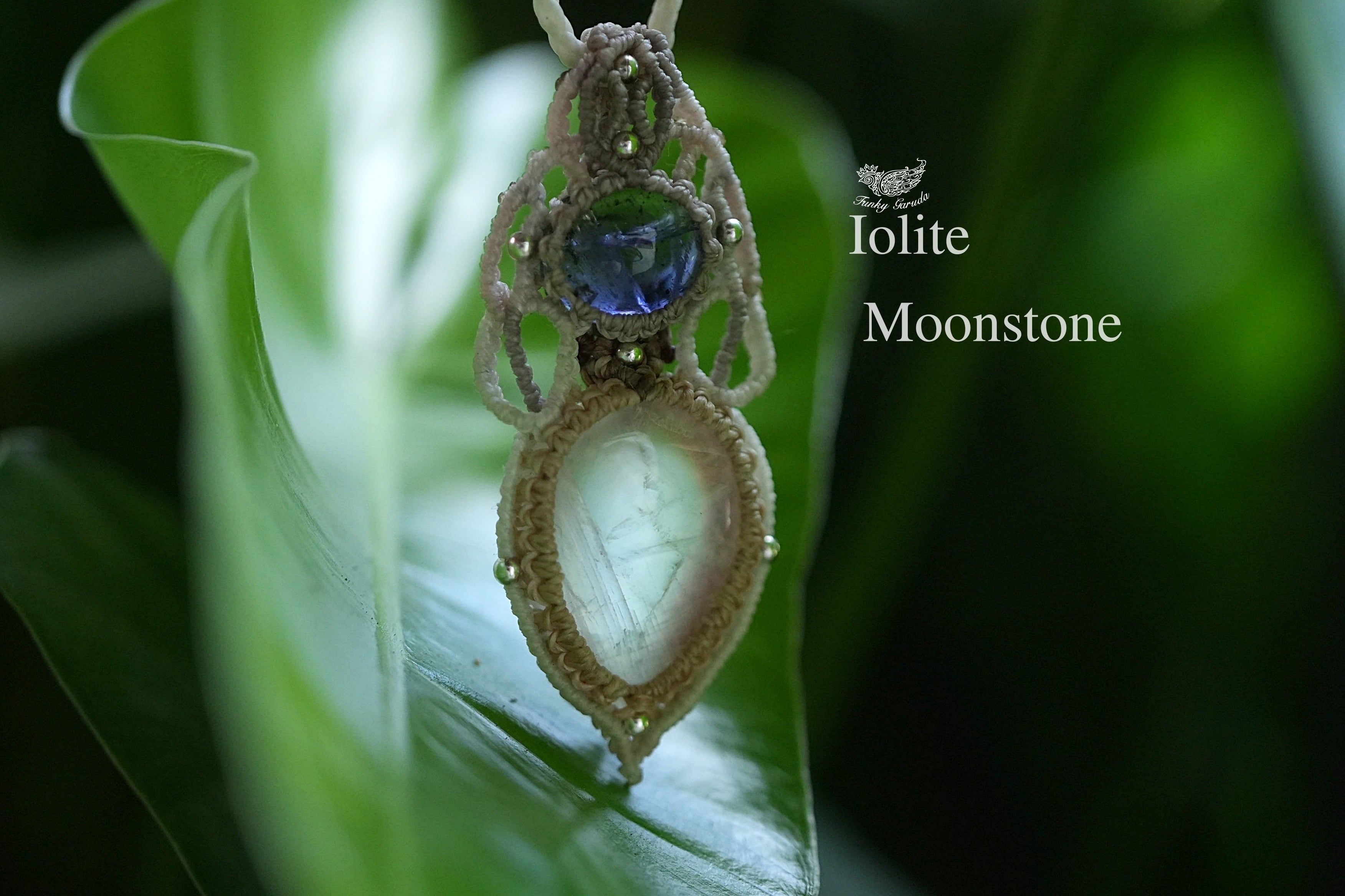 夜の闇と月★iolite moonstone★マクラメネックレス1624