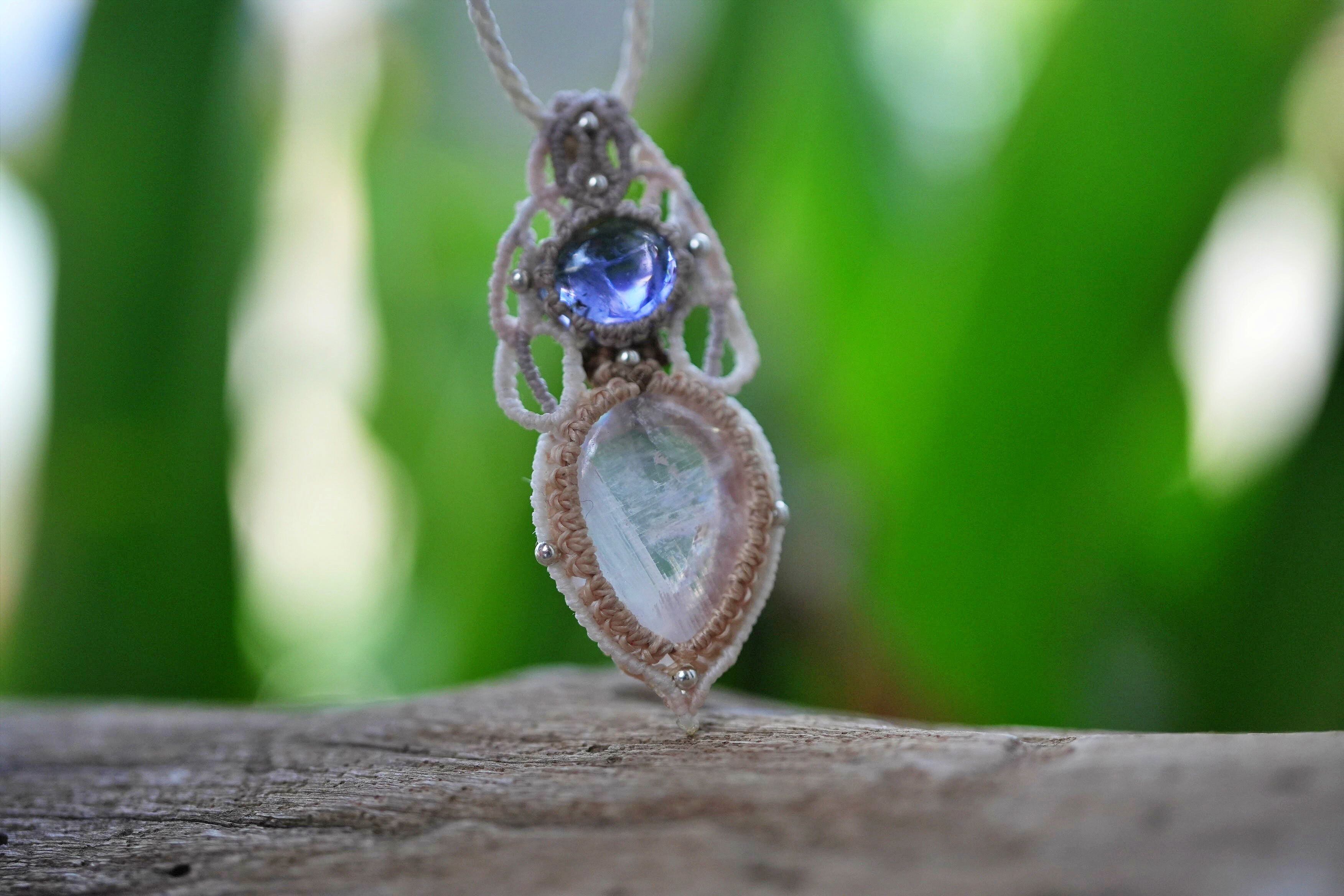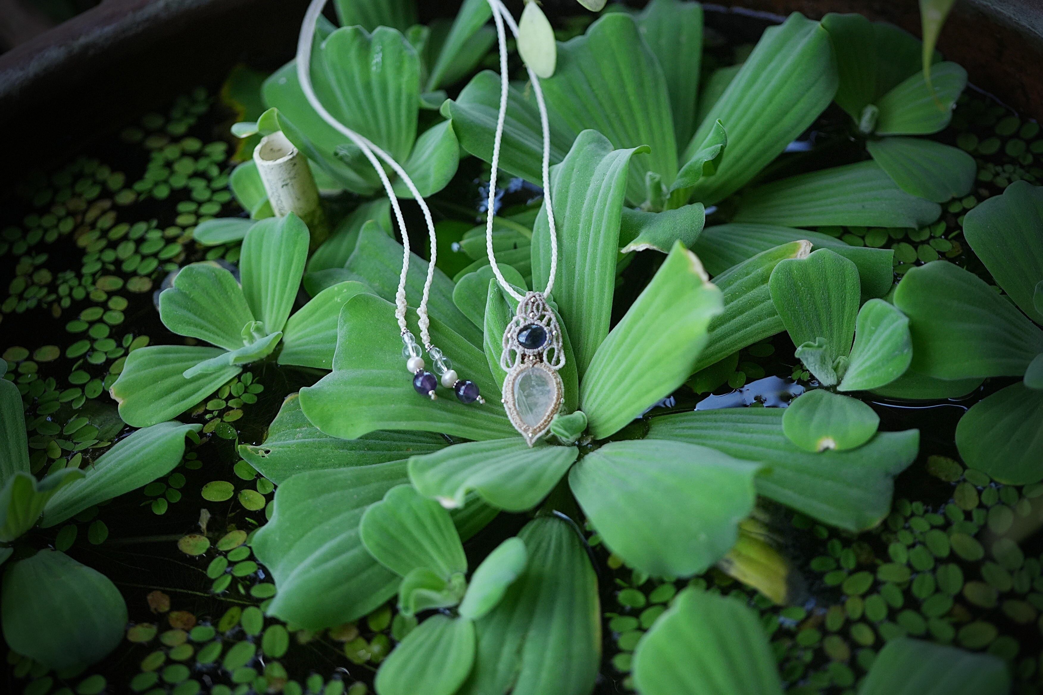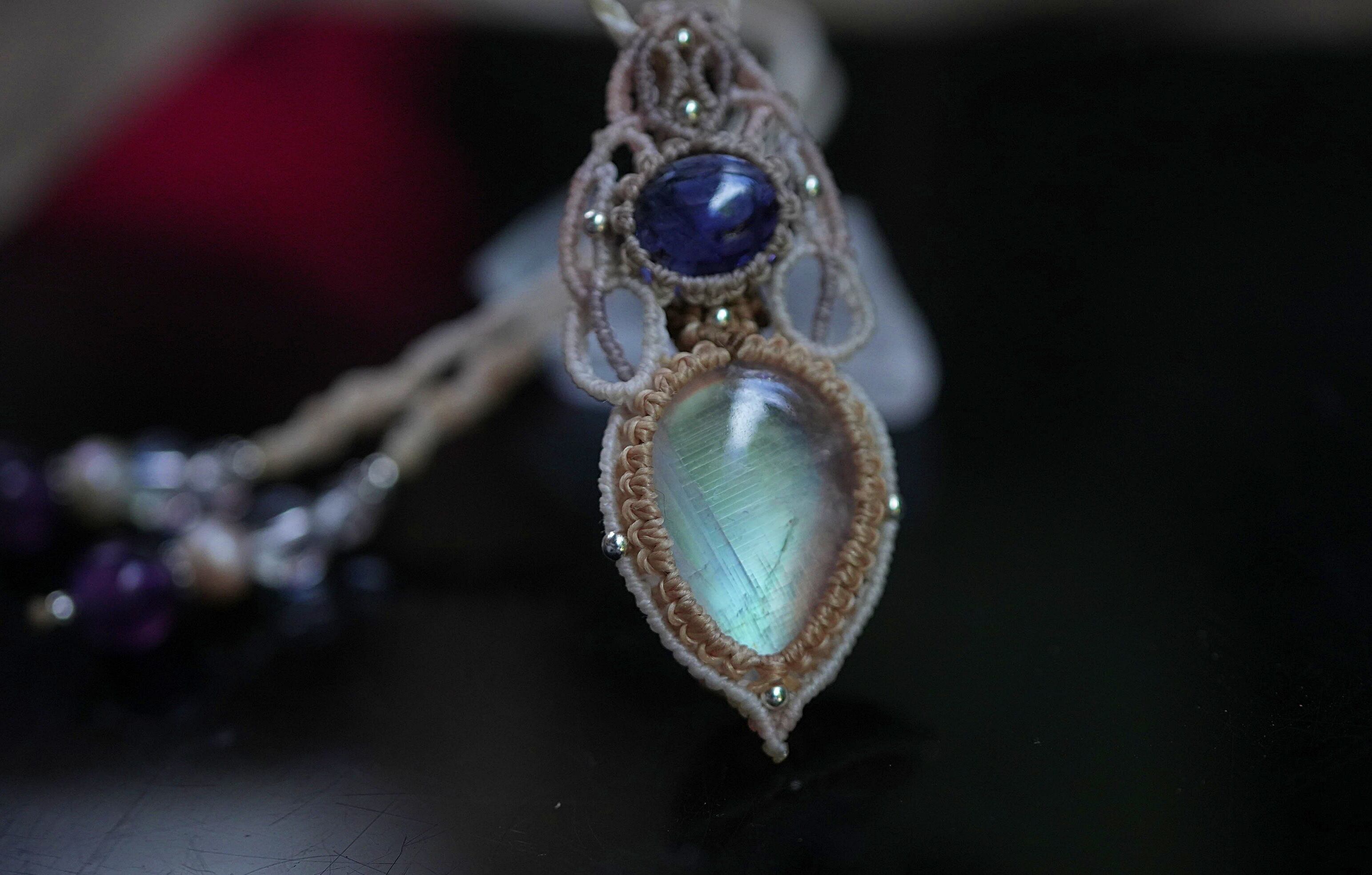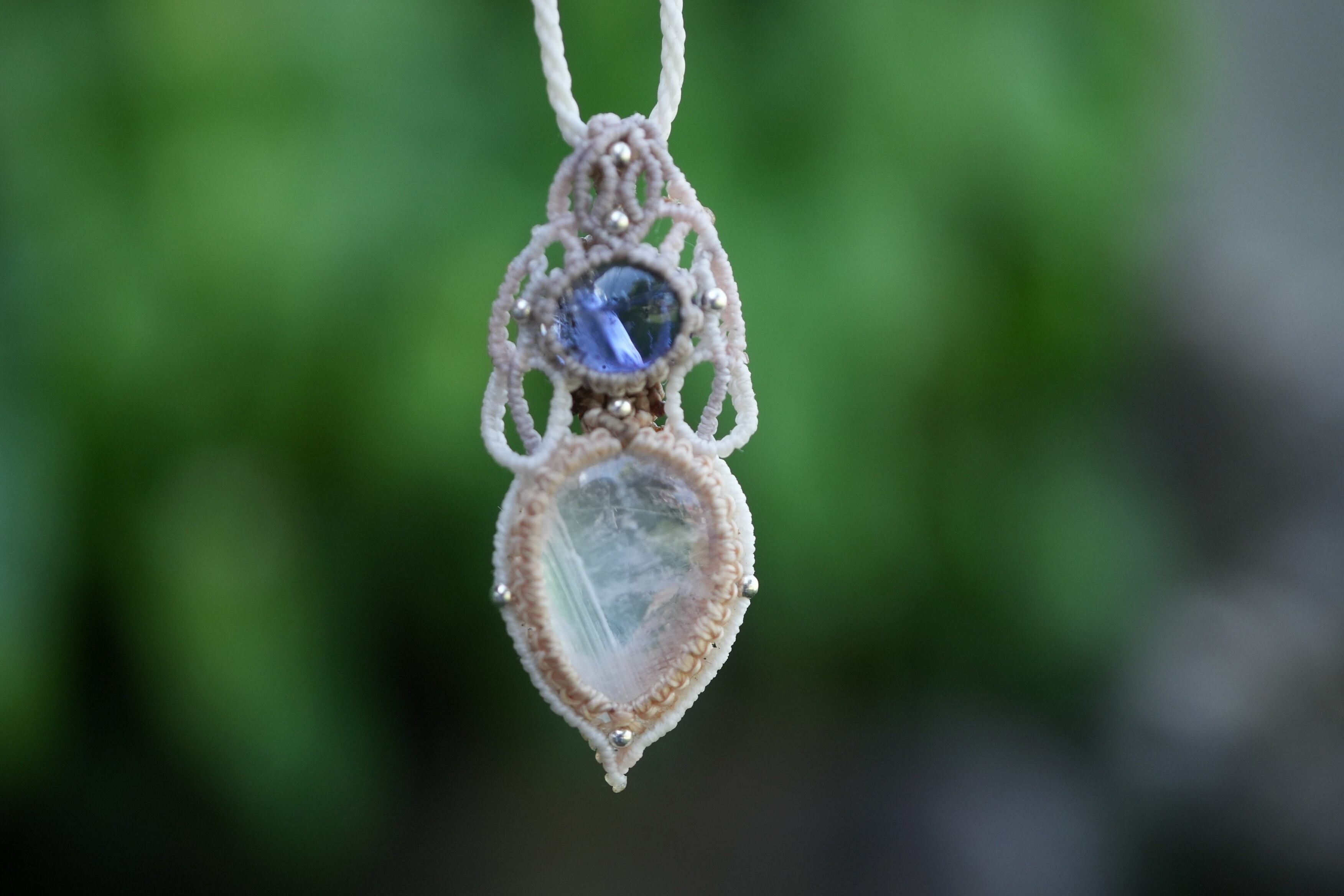 夜の闇と月★iolite moonstone★マクラメネックレス1624