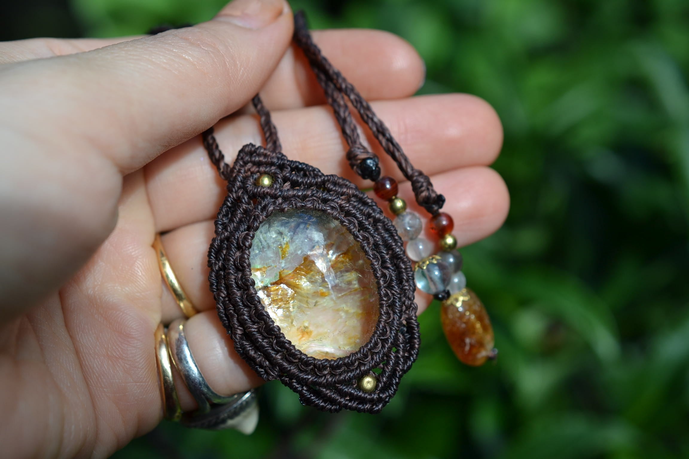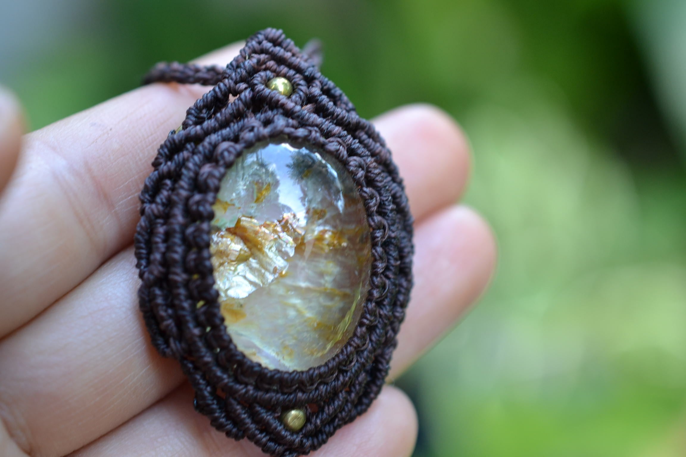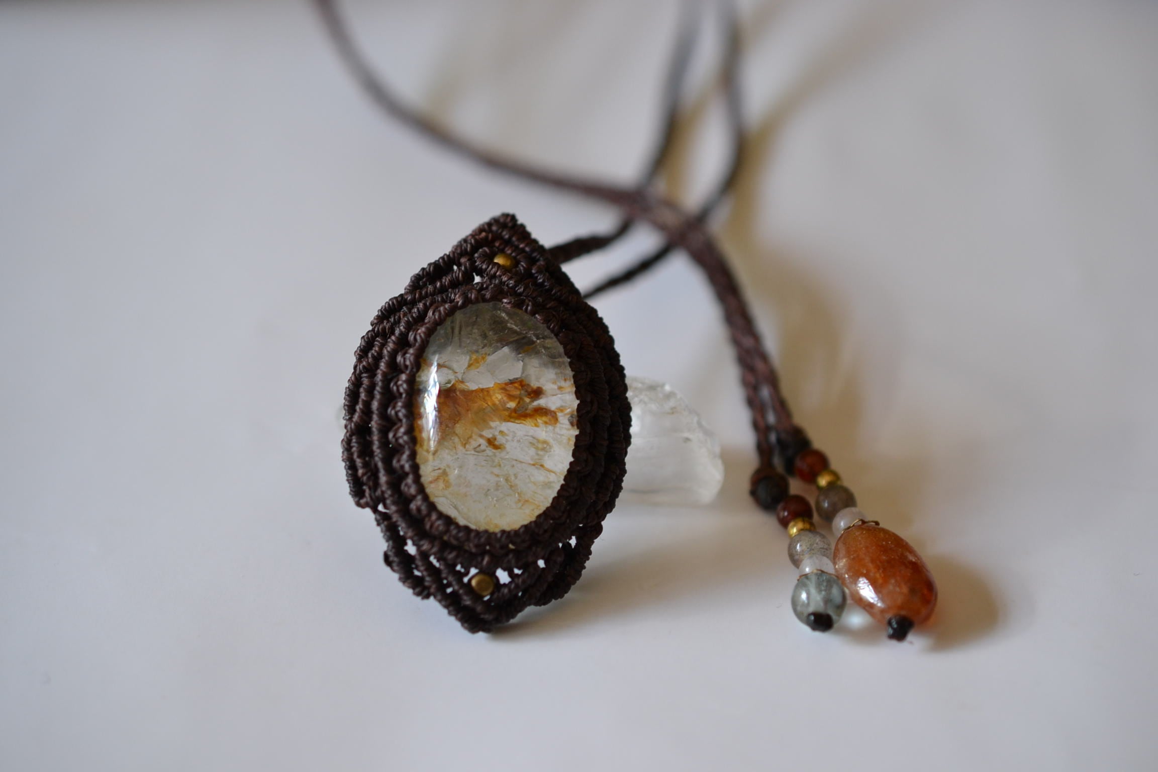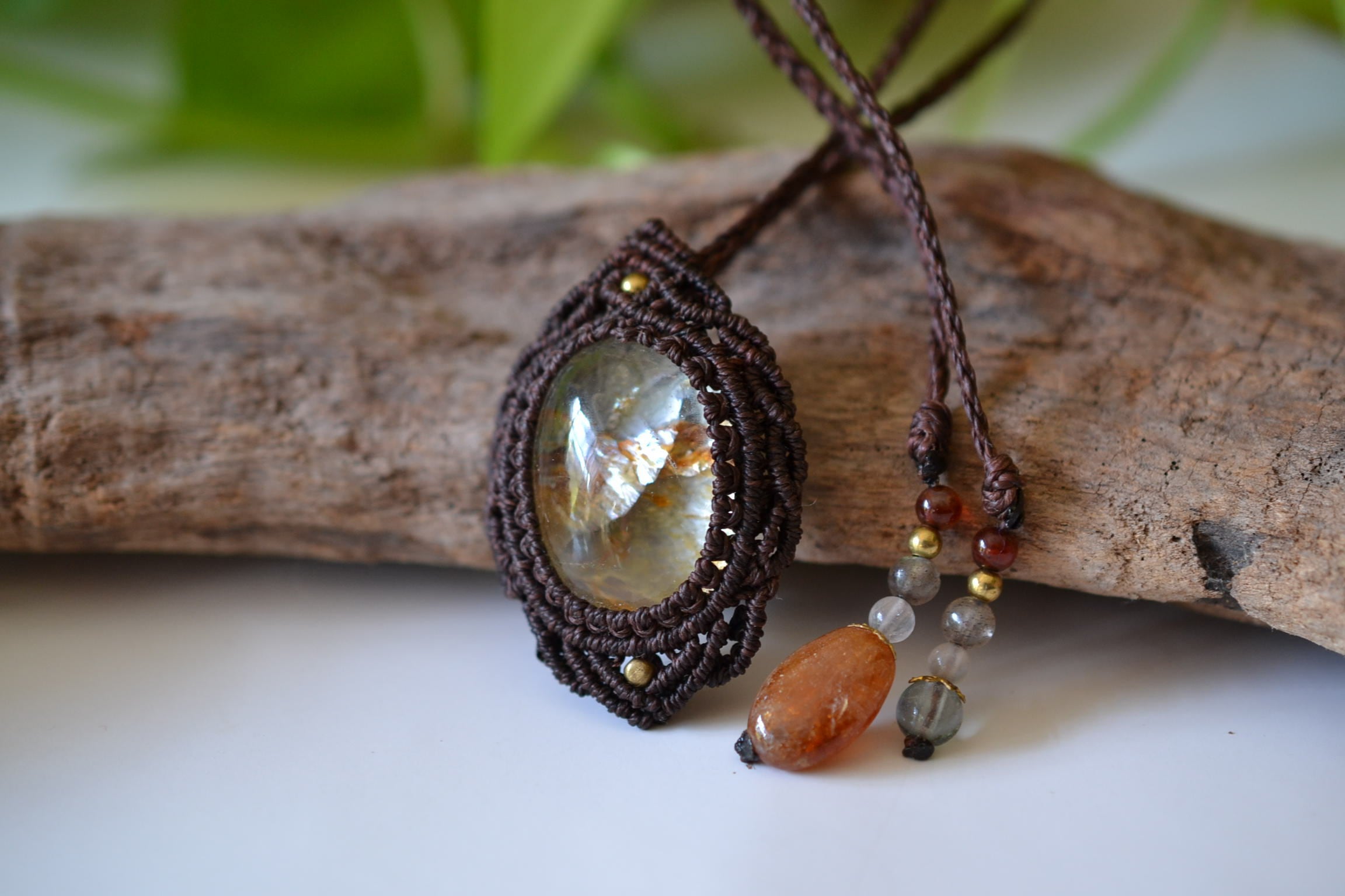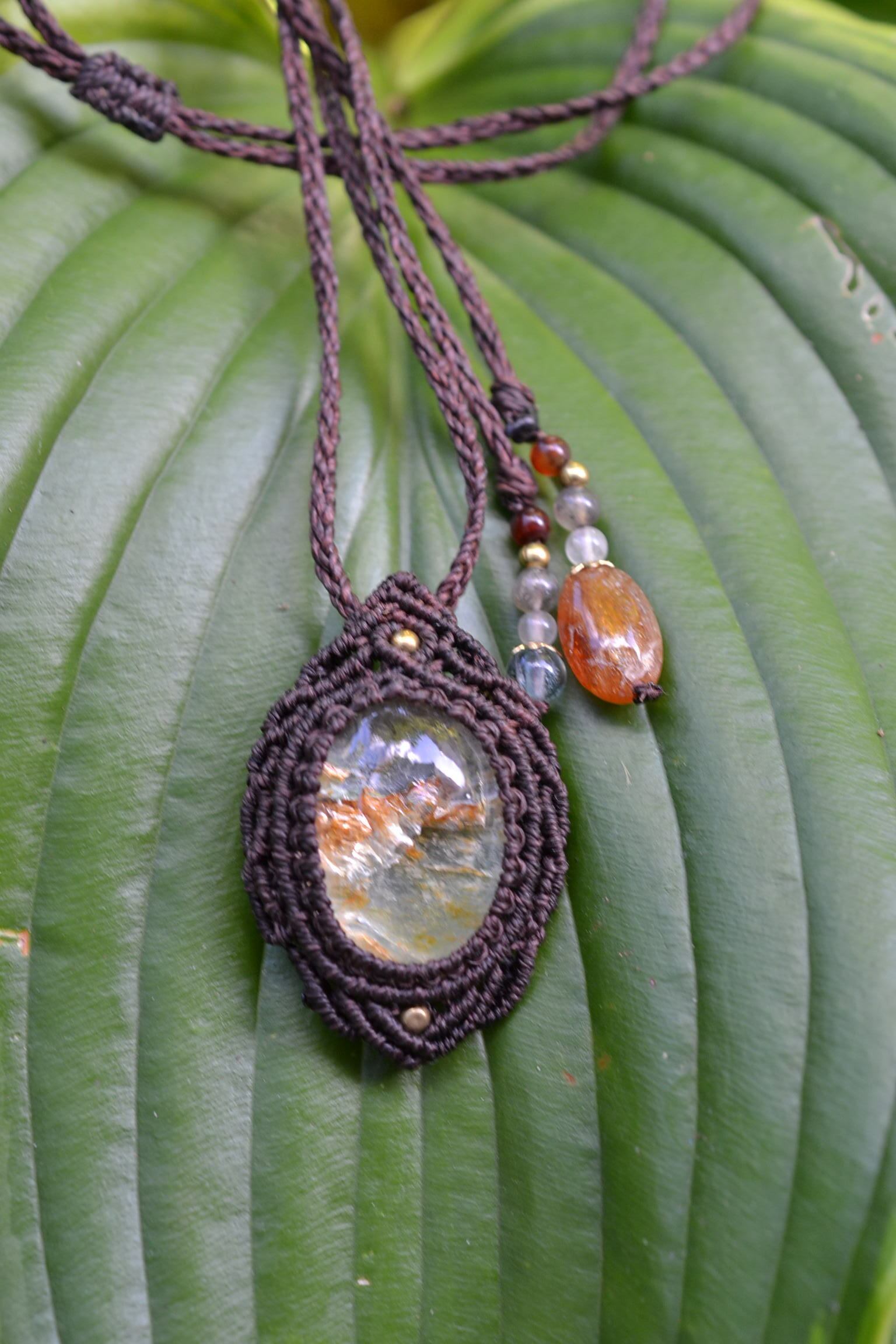 輝く紋章★ライモナイト ガーデンクォーツ マクラメペンダントgarm074