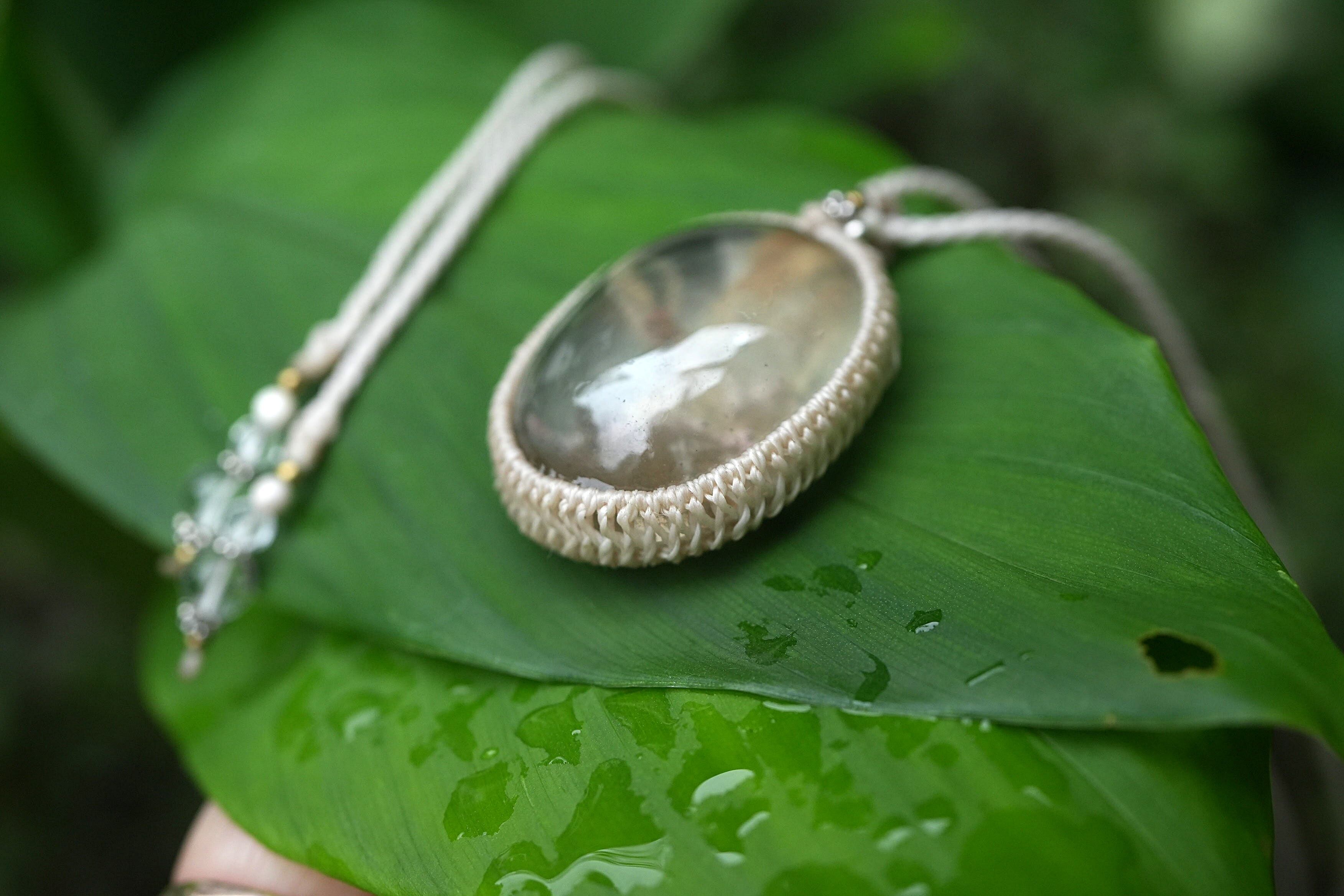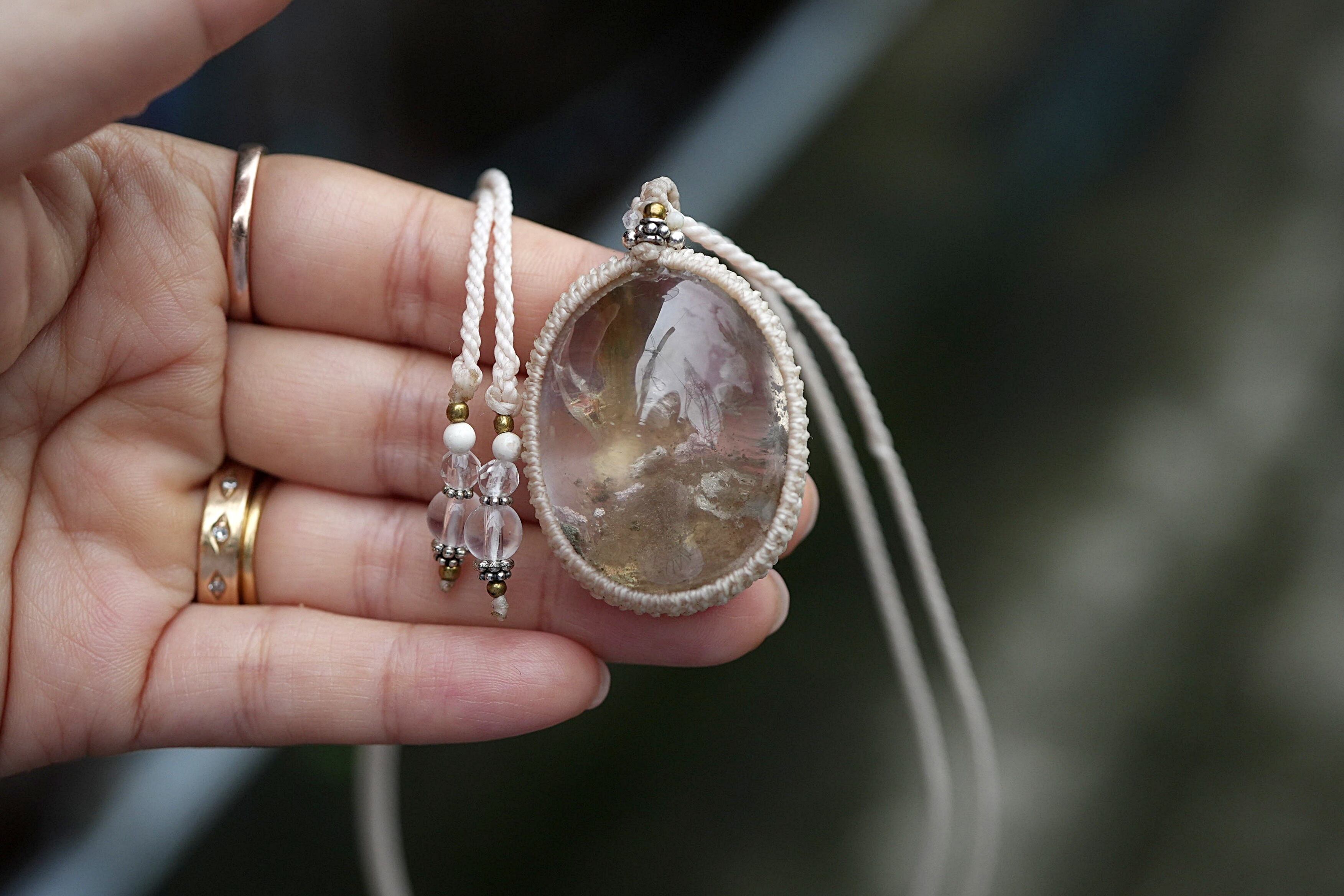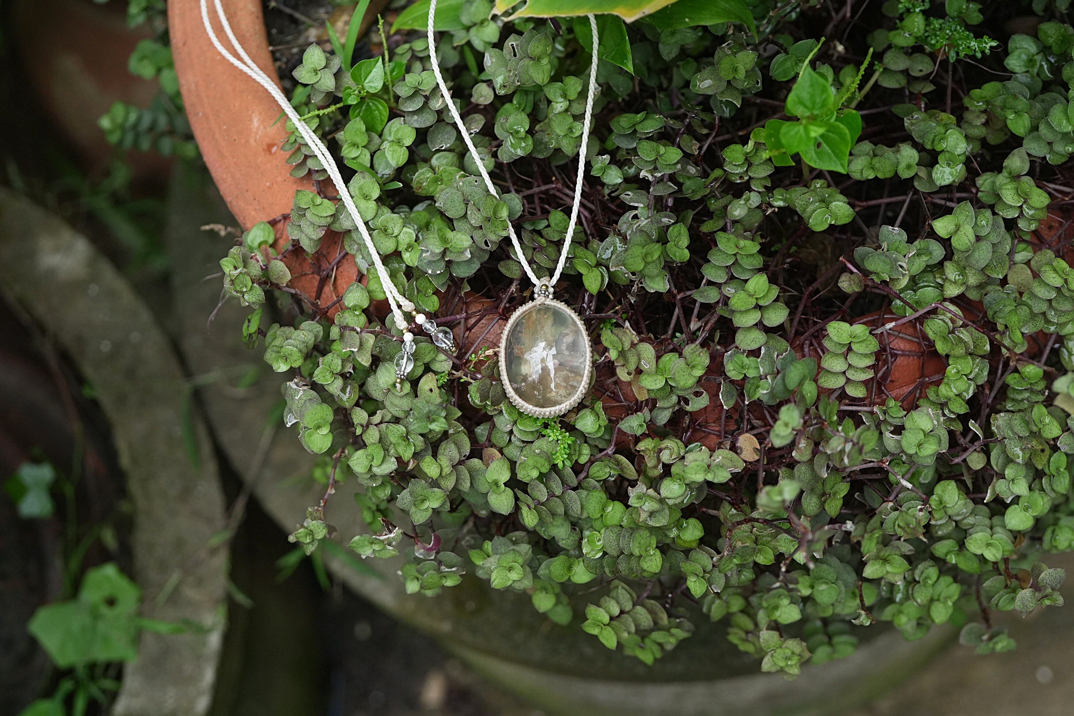 中粒★不思議な立体★ガーデンクォーツ マクラメネックレス1642