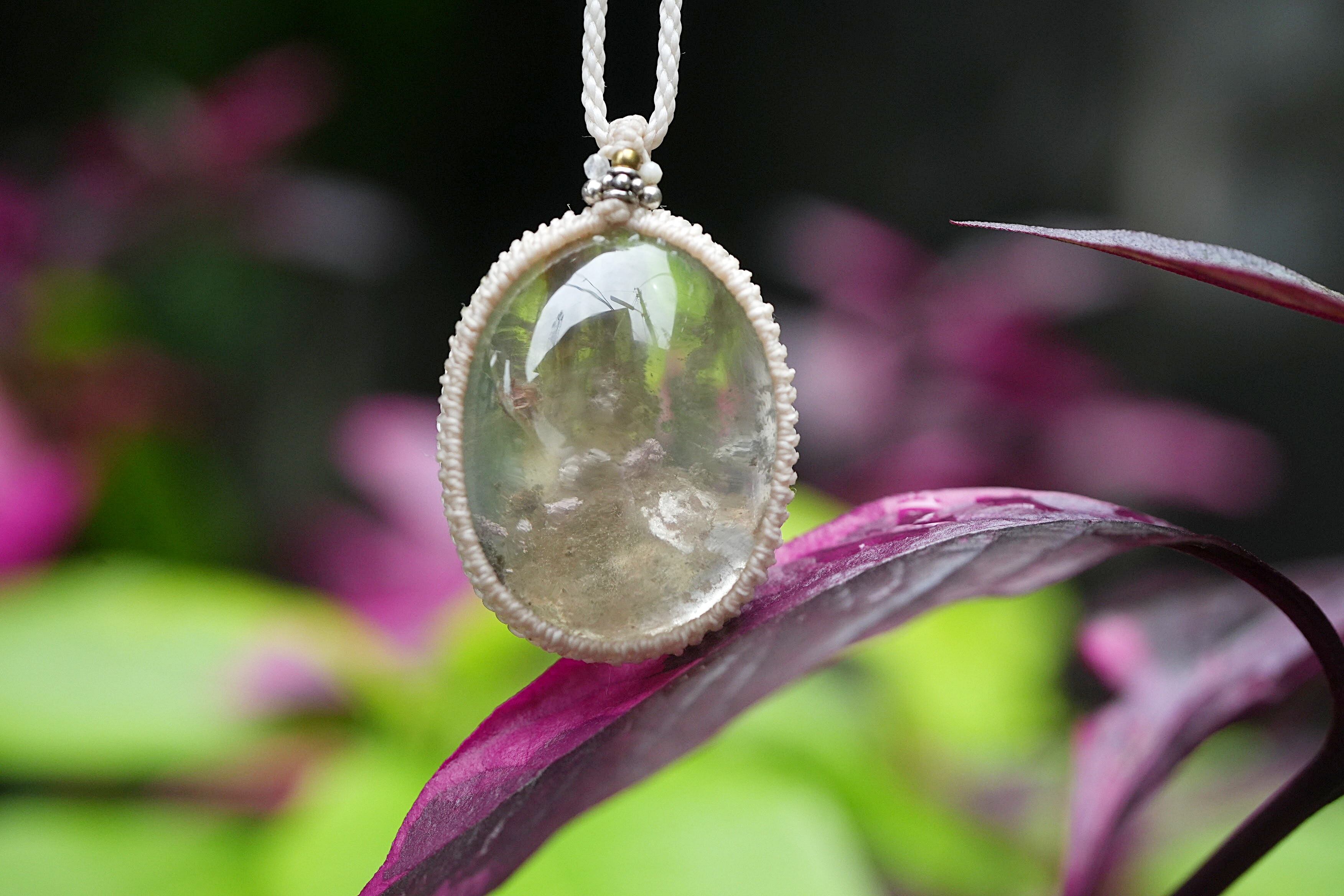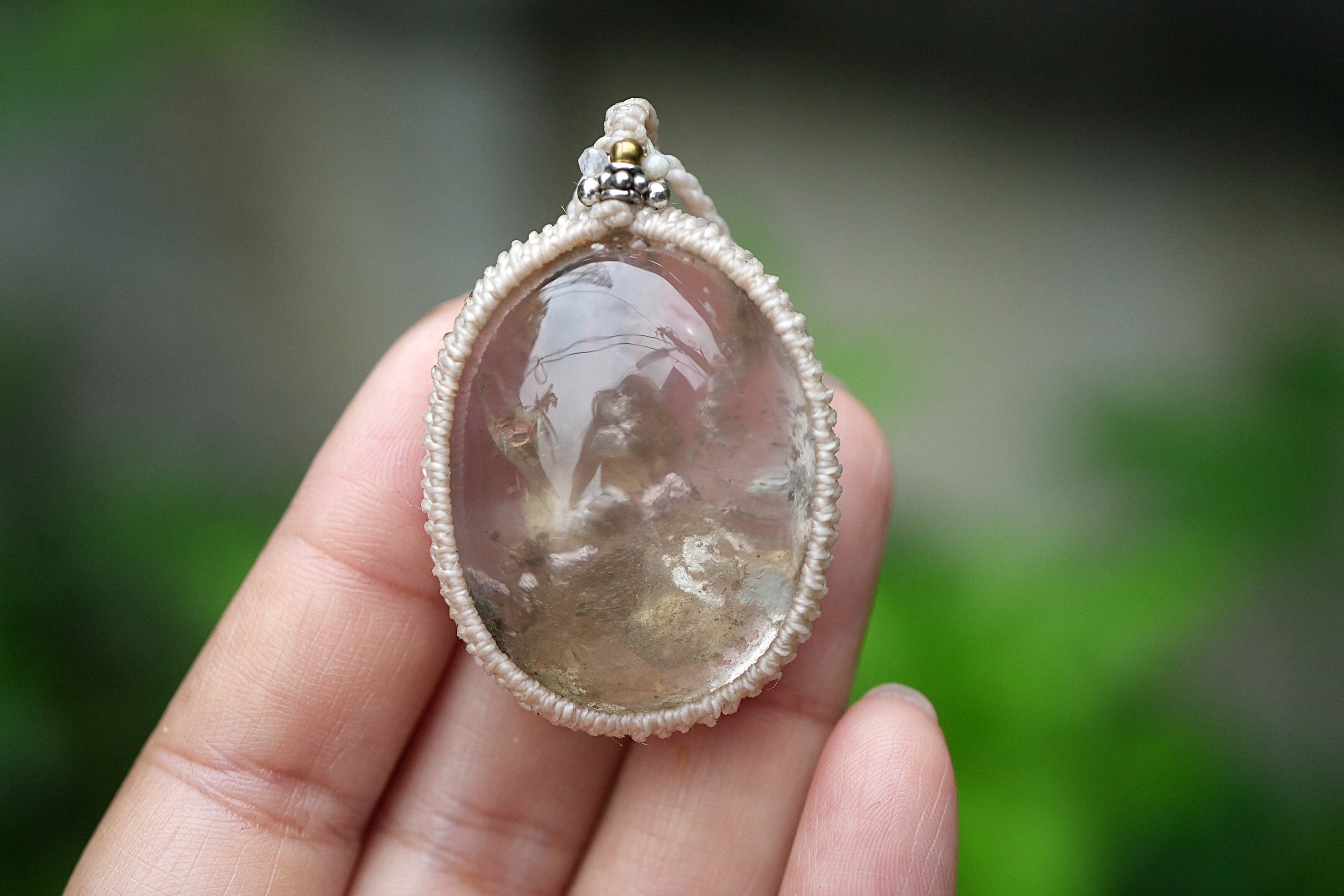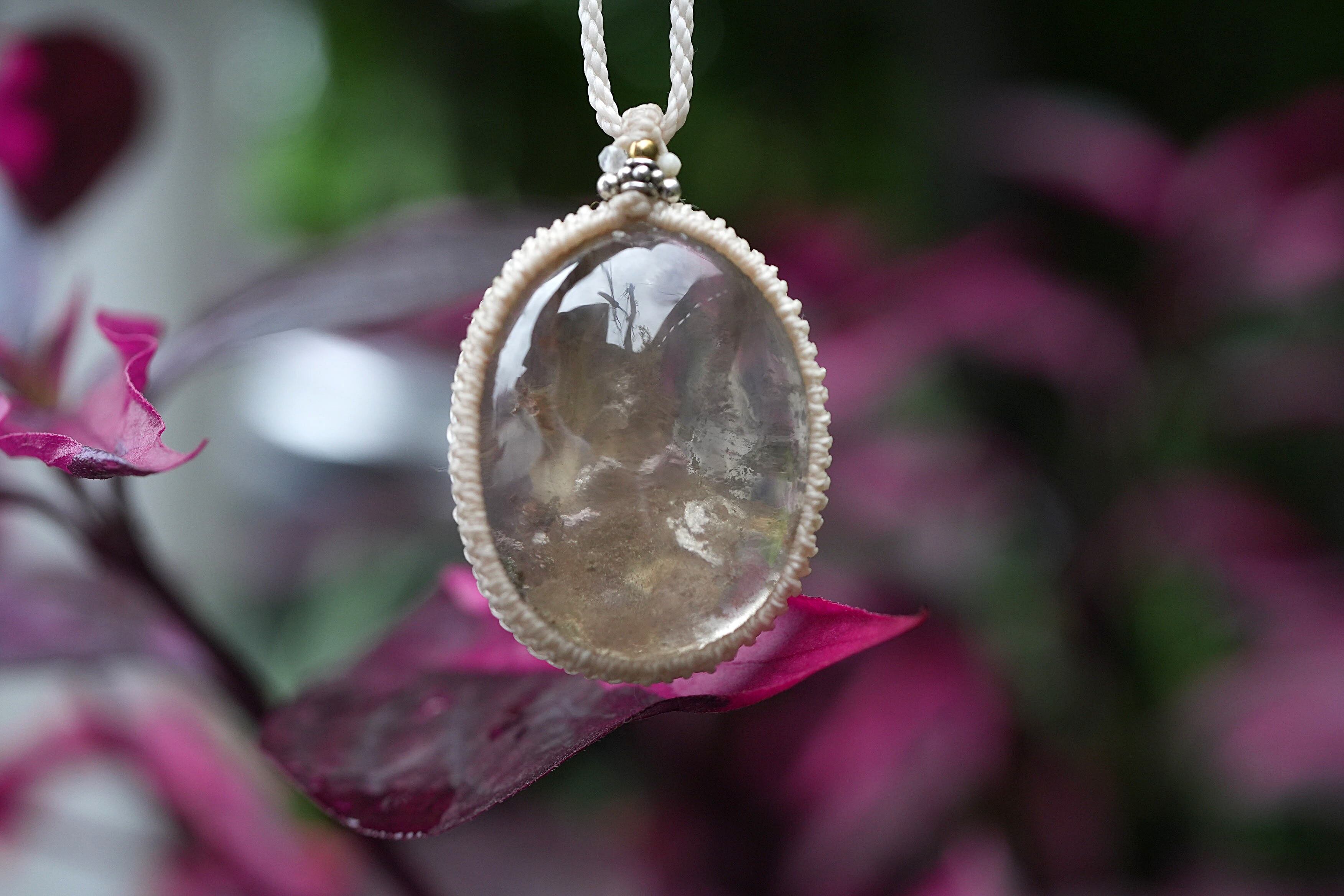 中粒★不思議な立体★ガーデンクォーツ マクラメネックレス1642