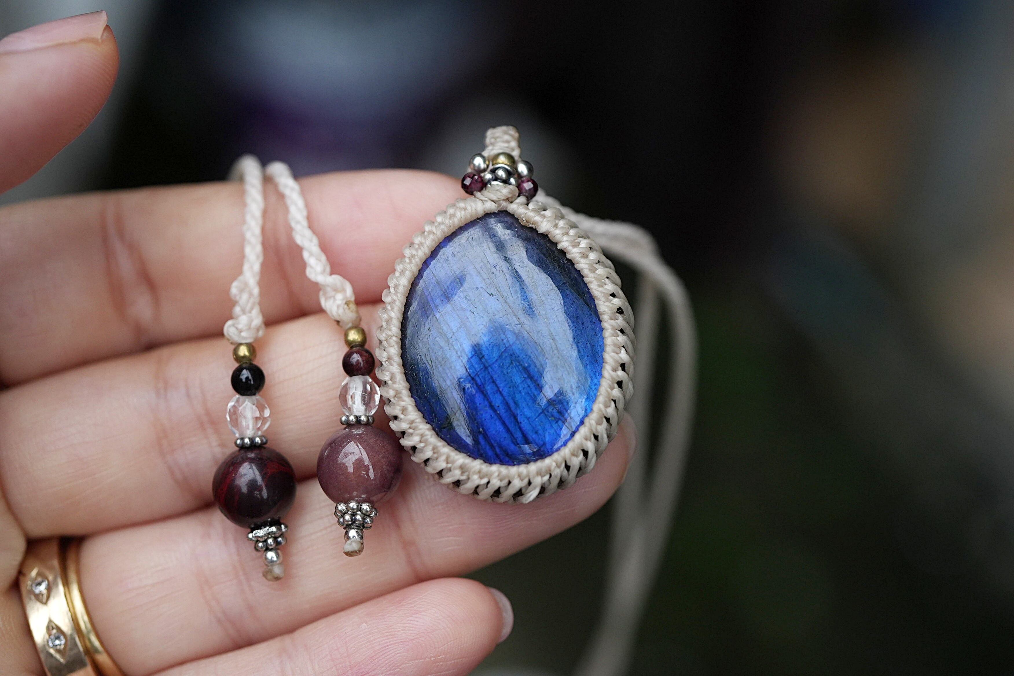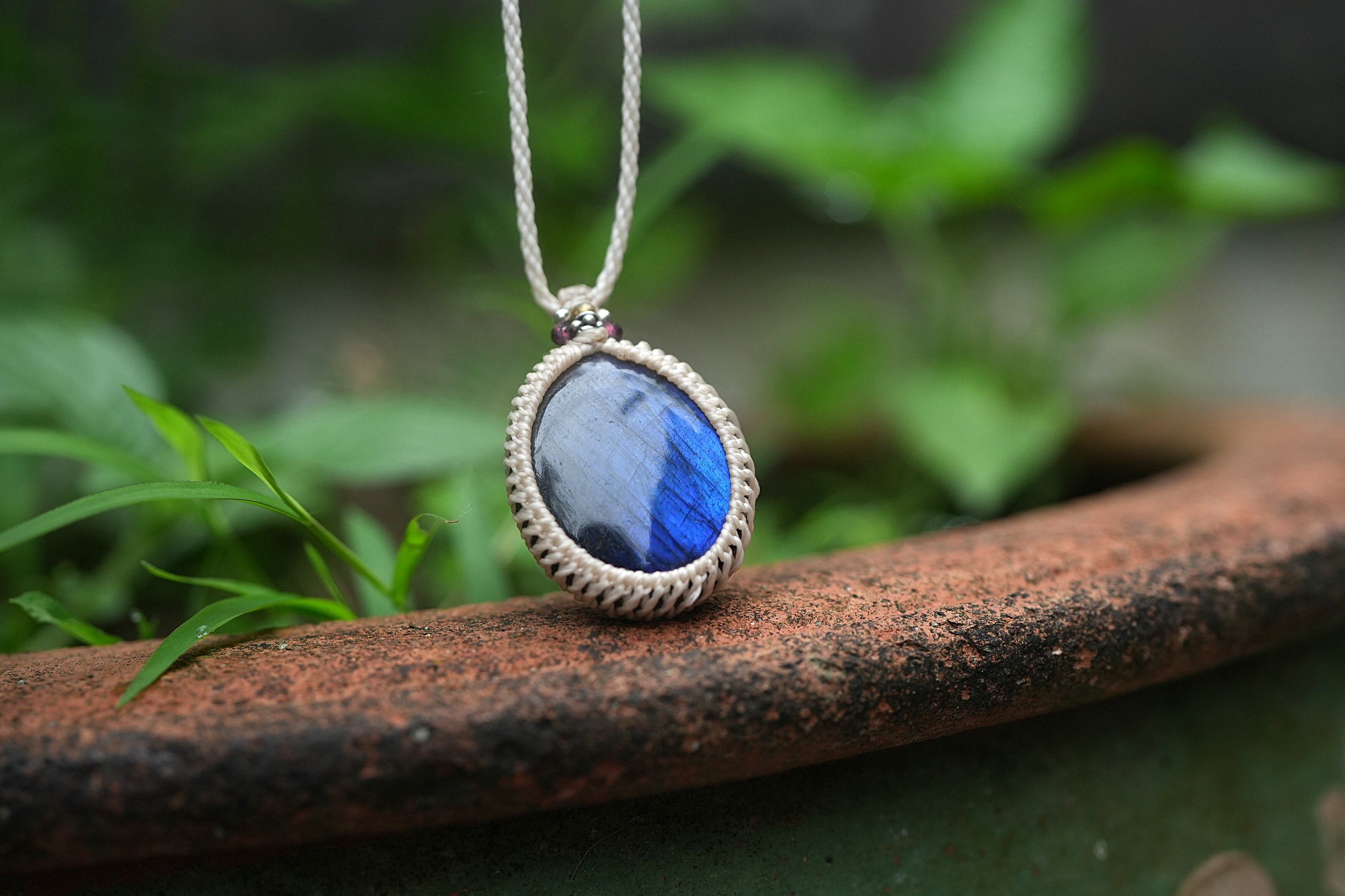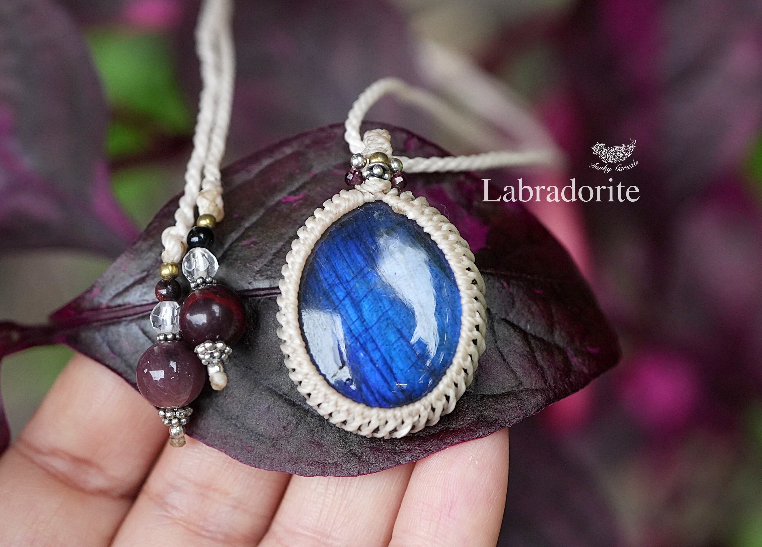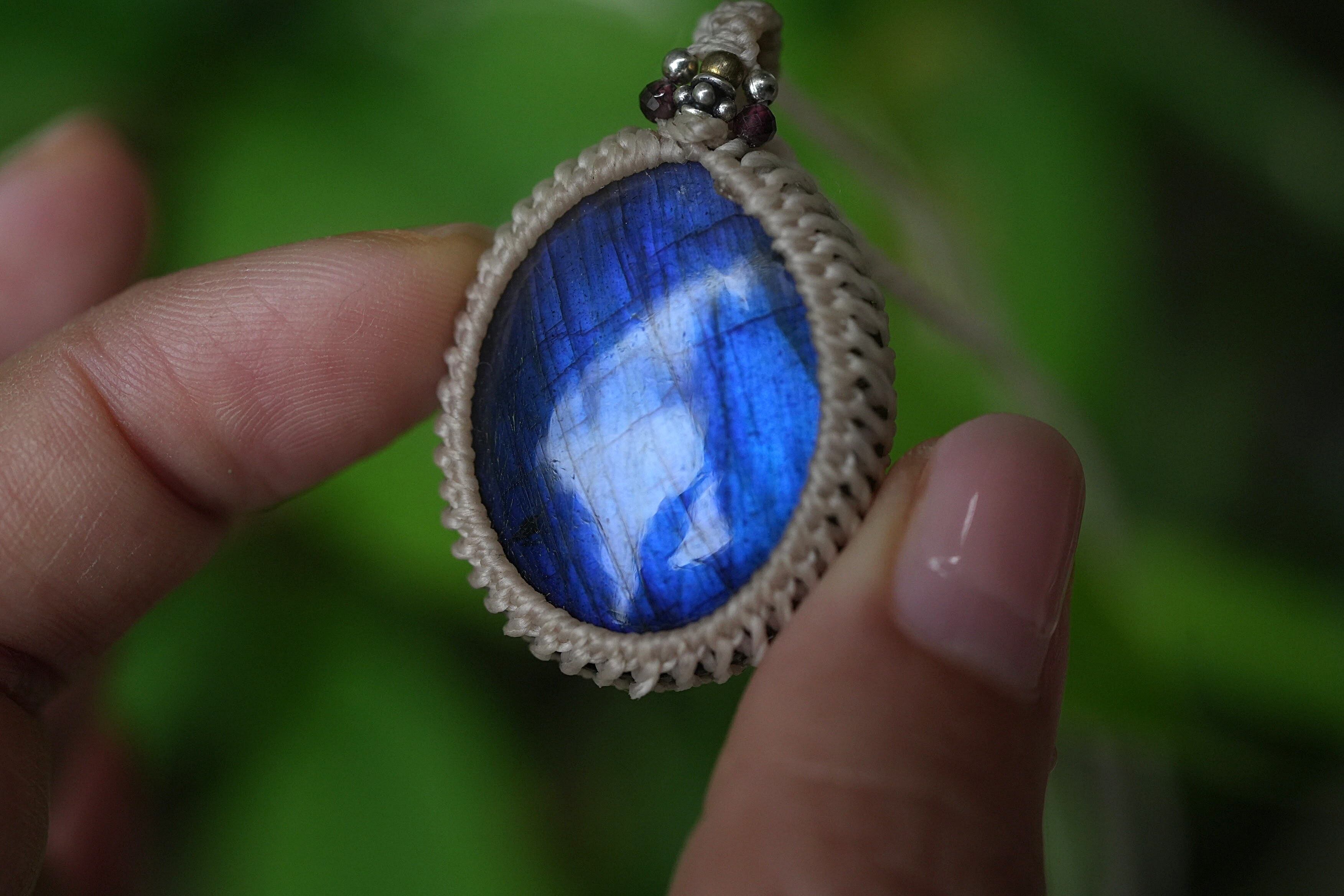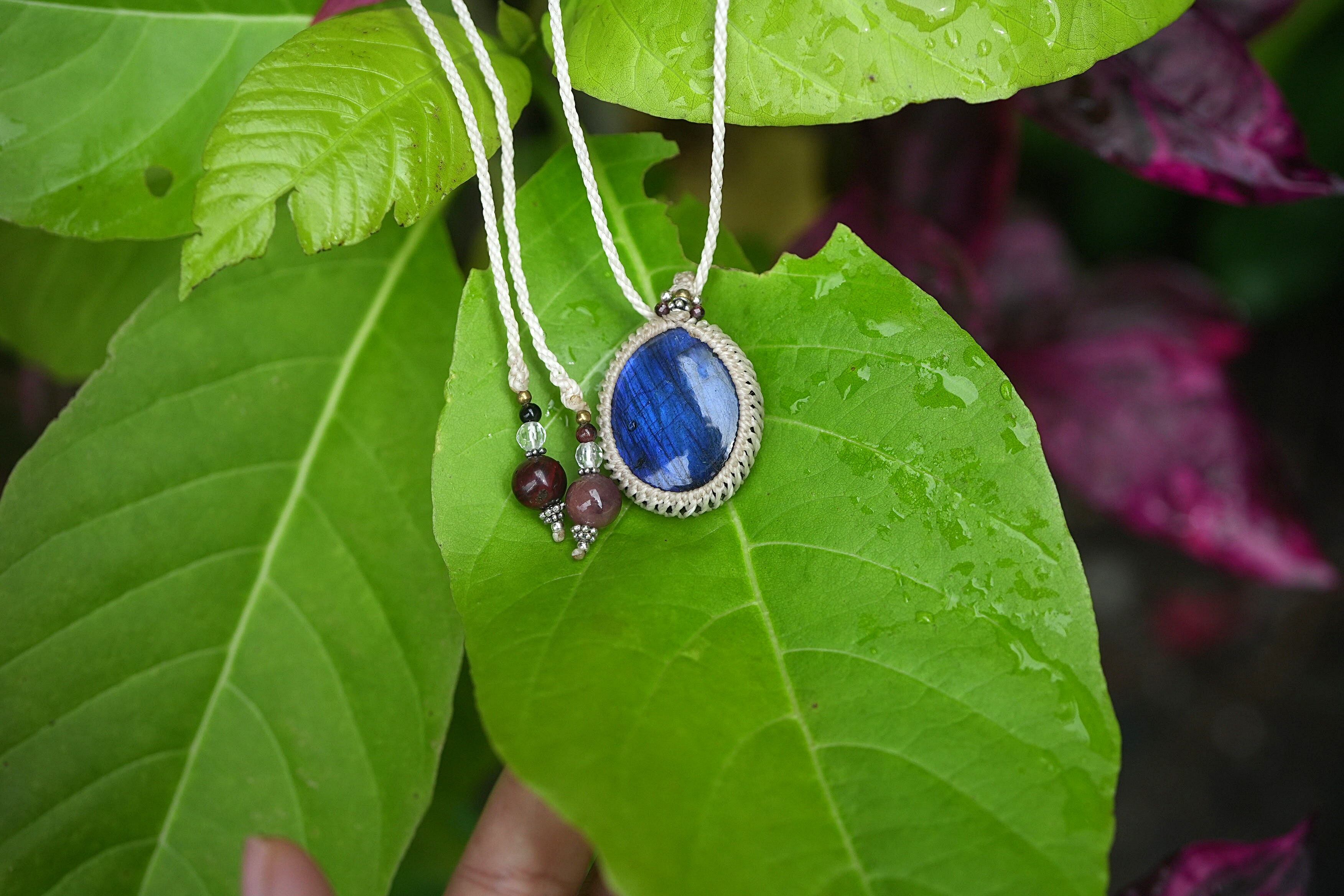 蒼さ抜群★ラブラドライト マクラメネックレス1643