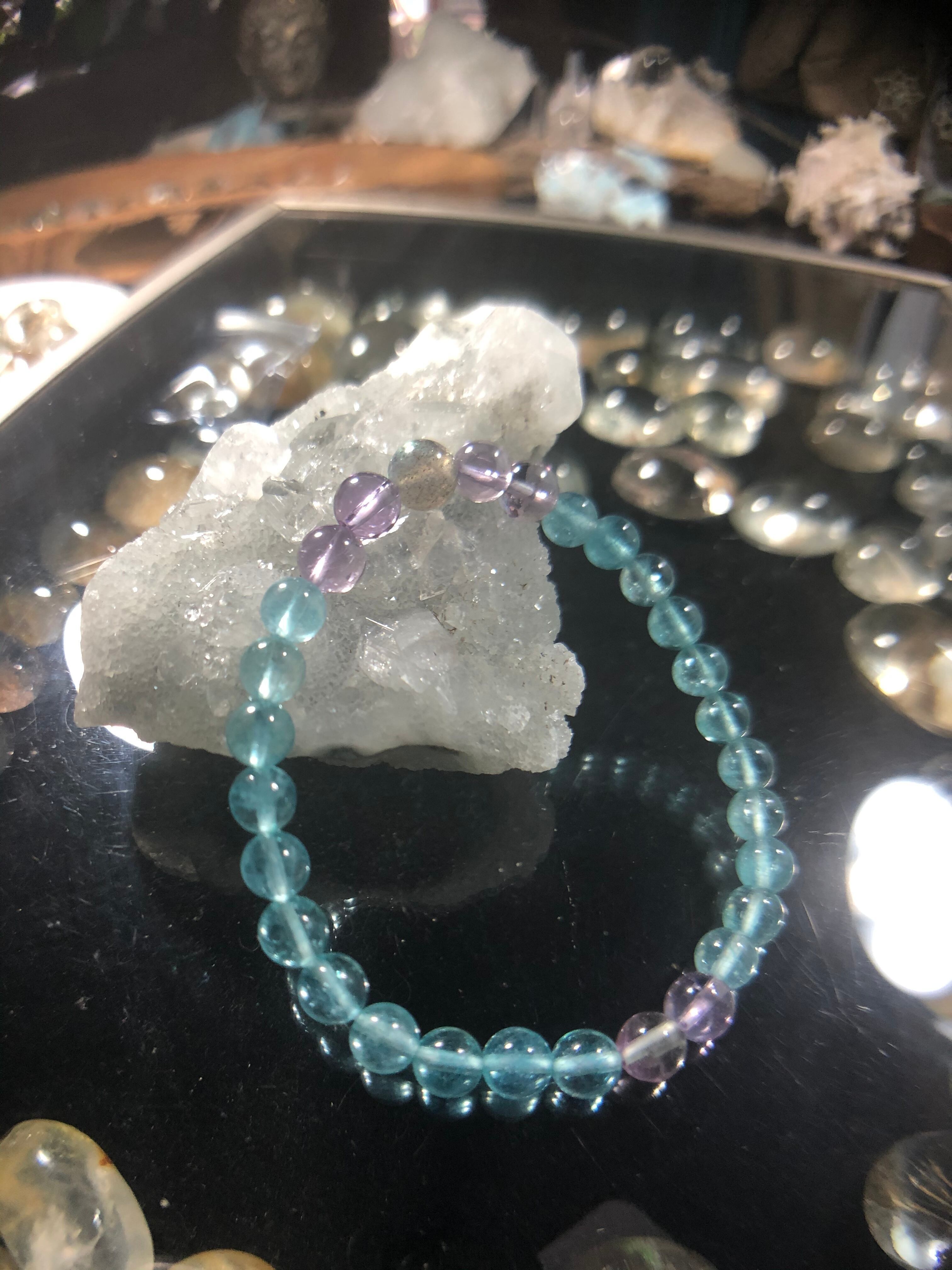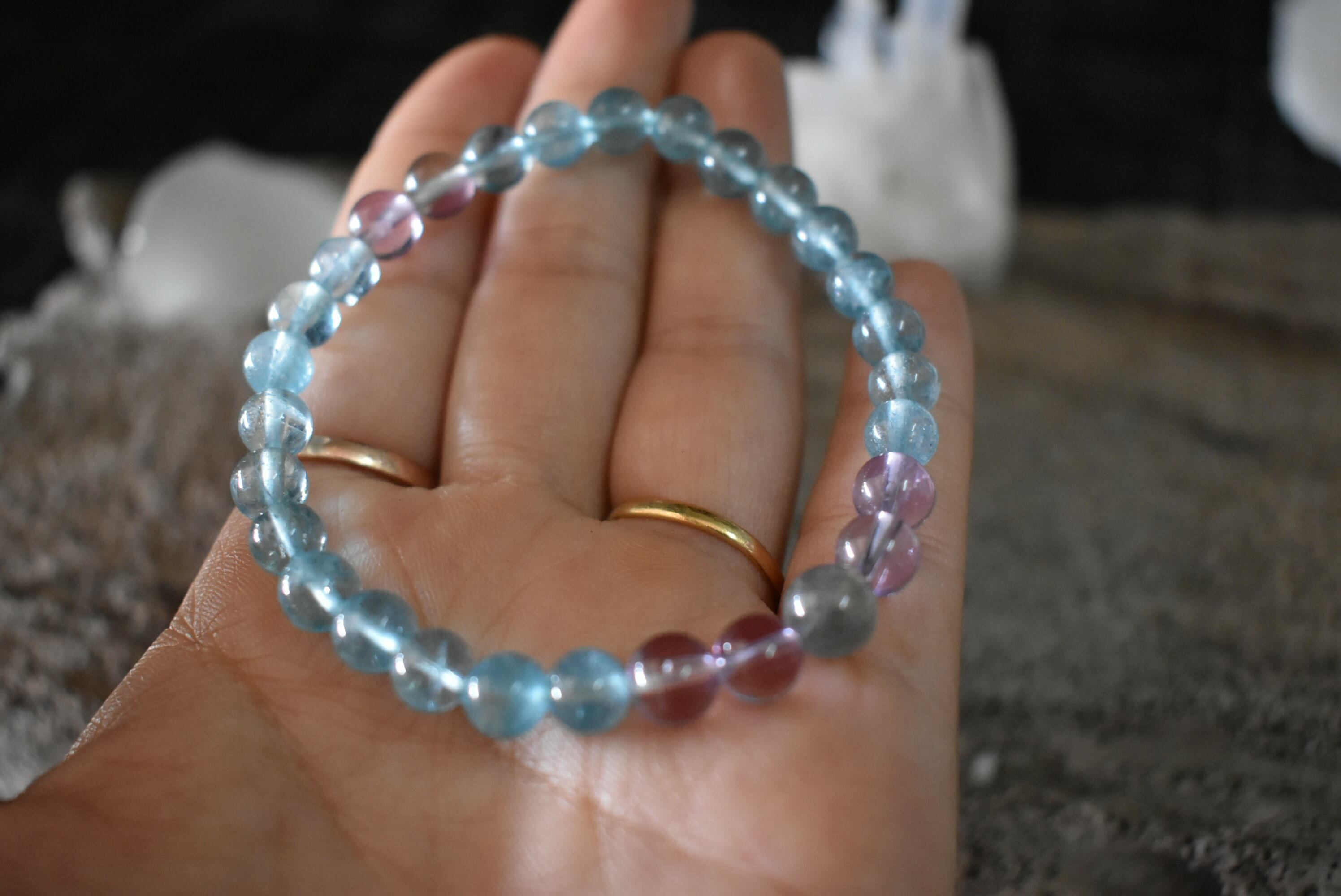 高品質★アクアマリンとアメジストMIXブレスレット aqb001
