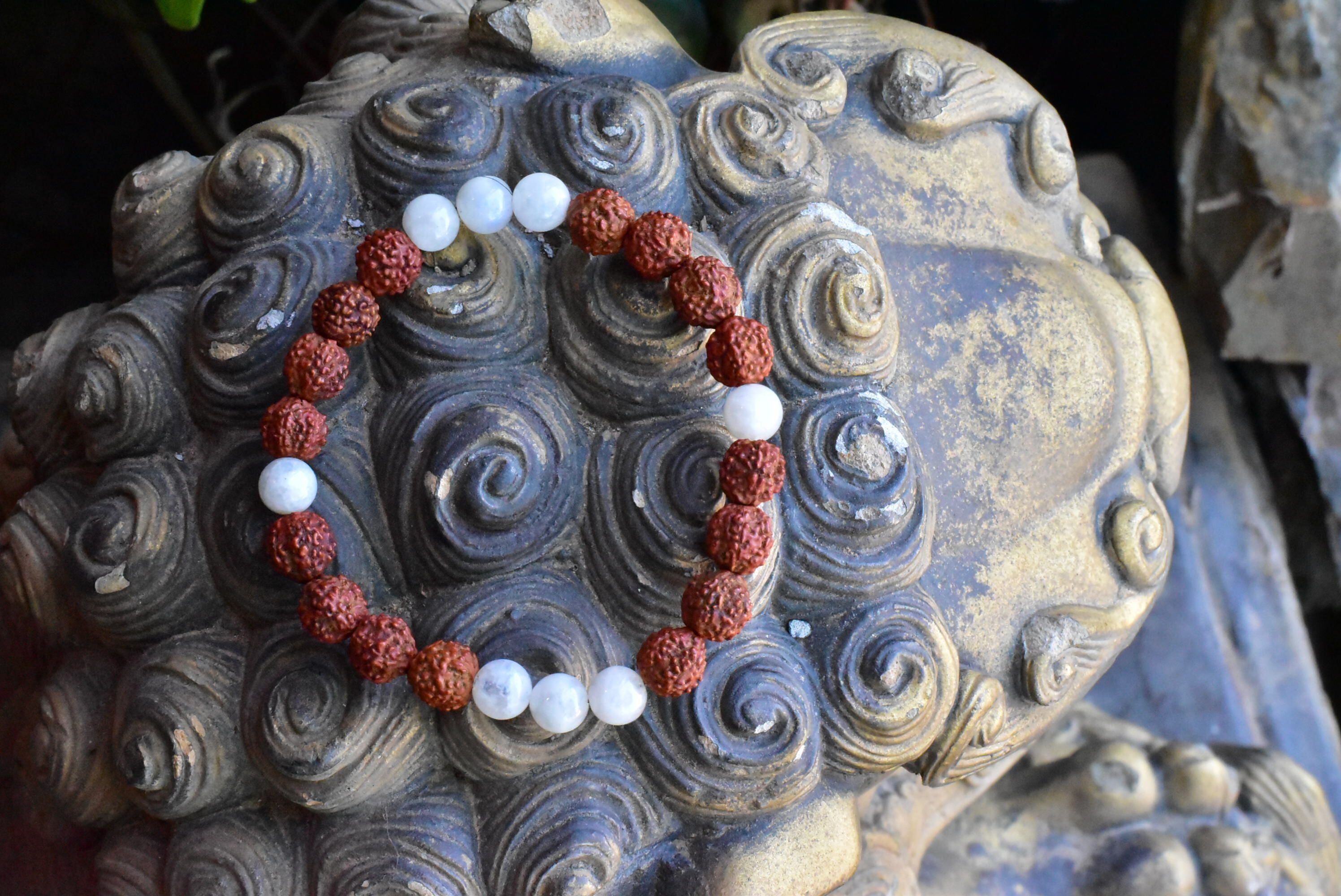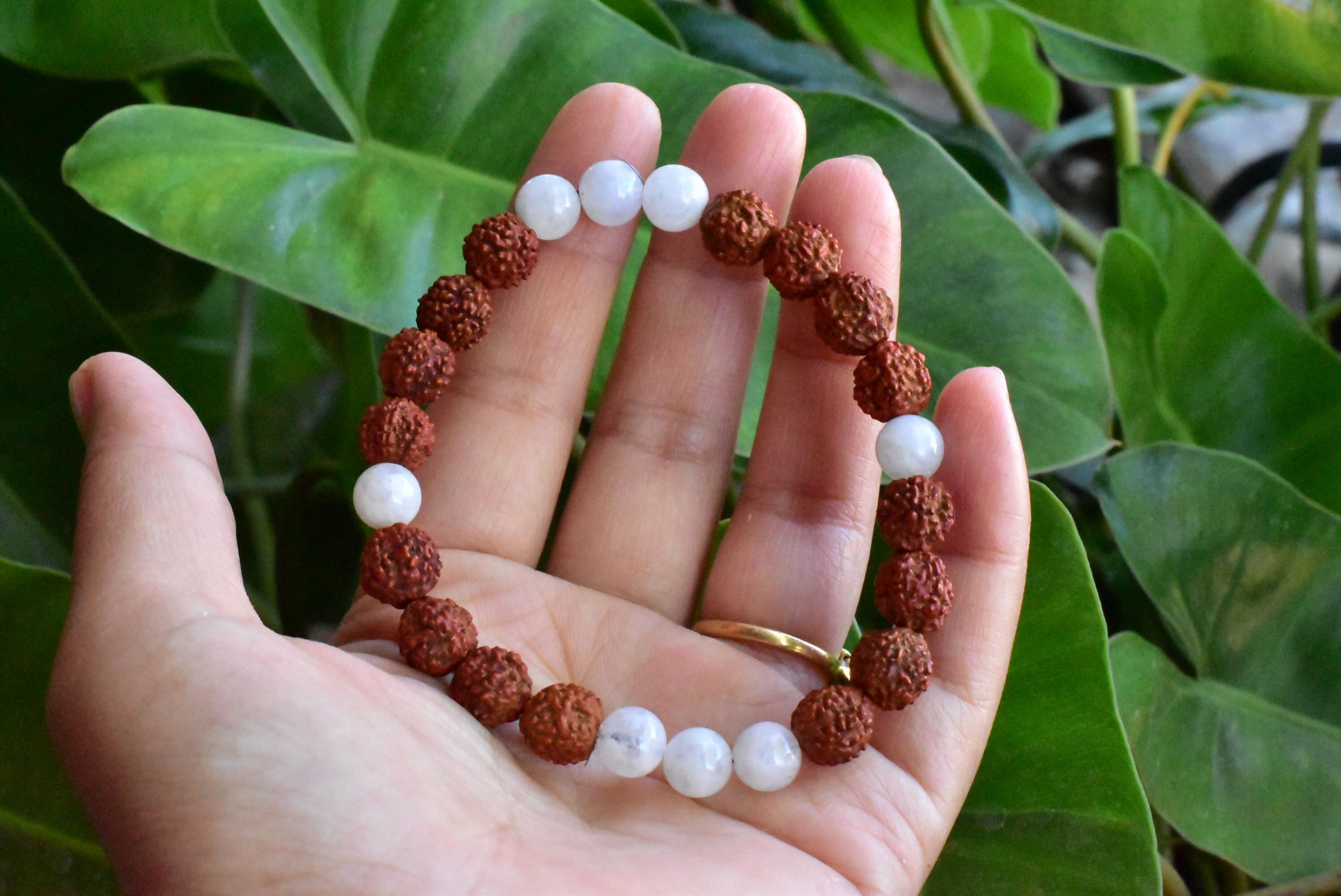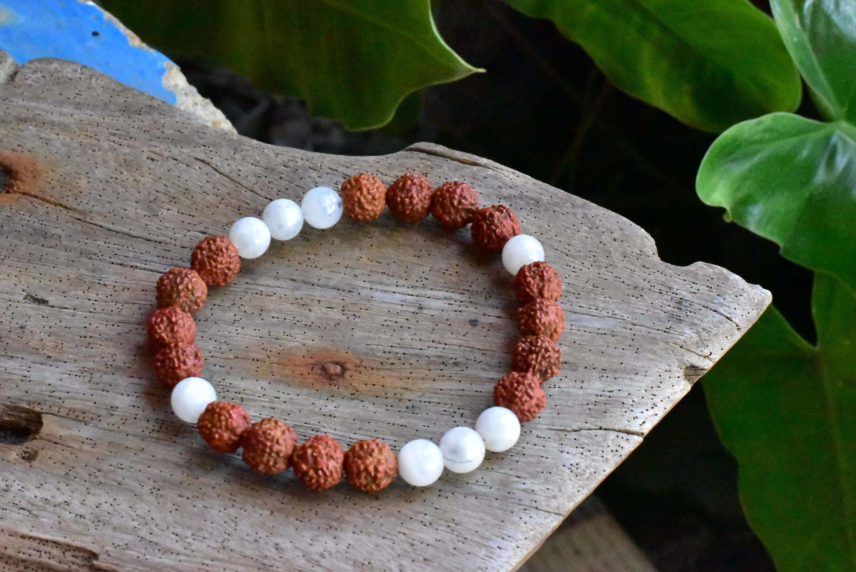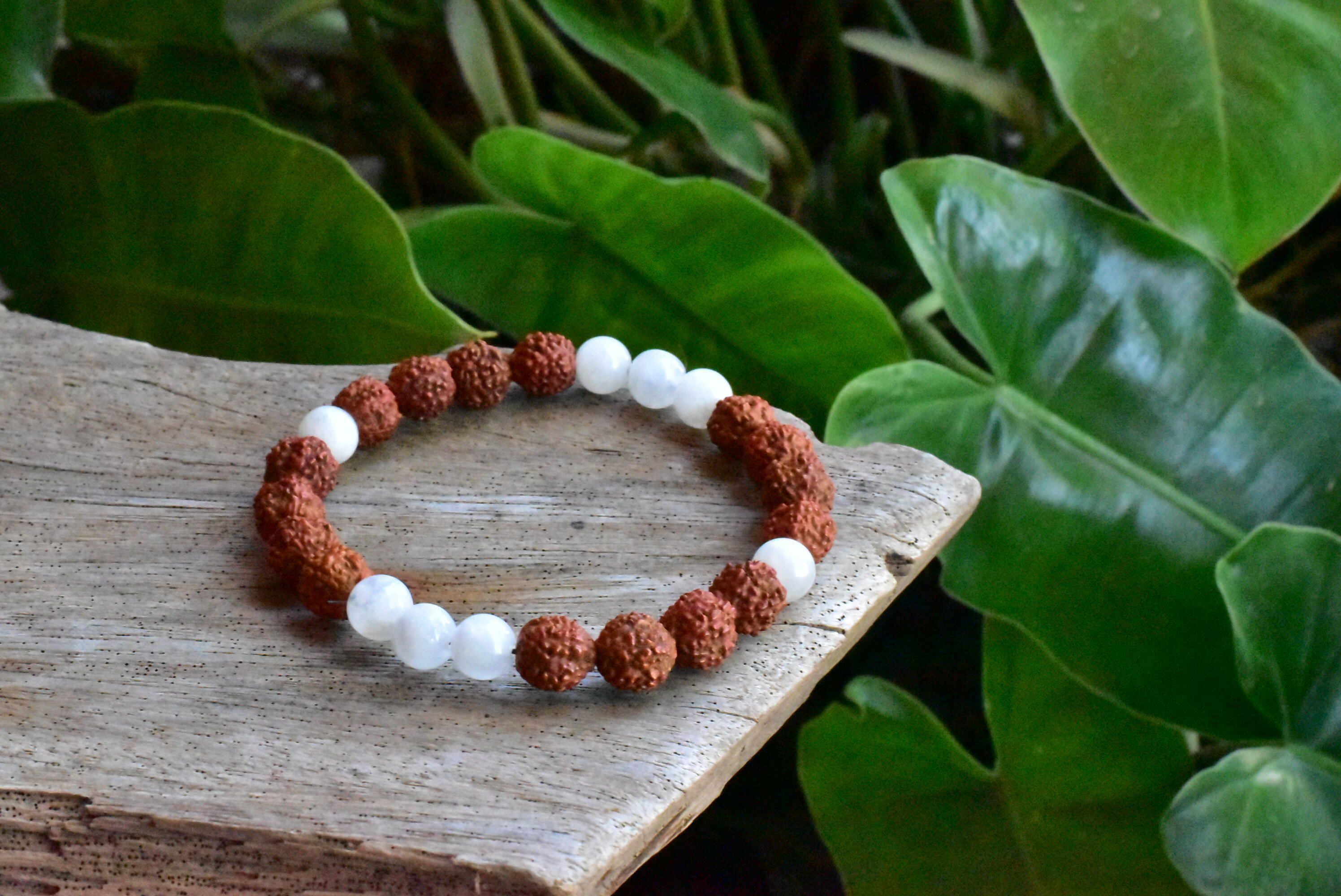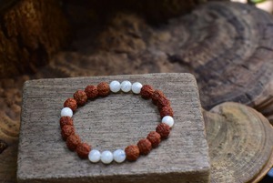 ルドラクシャ★中粒★菩提樹の実とムーンストーン ブレスレット rjb012