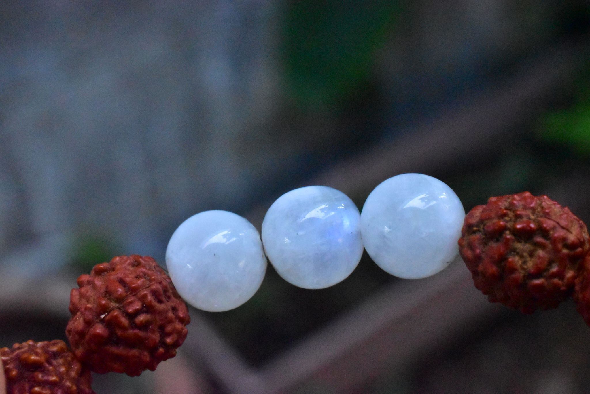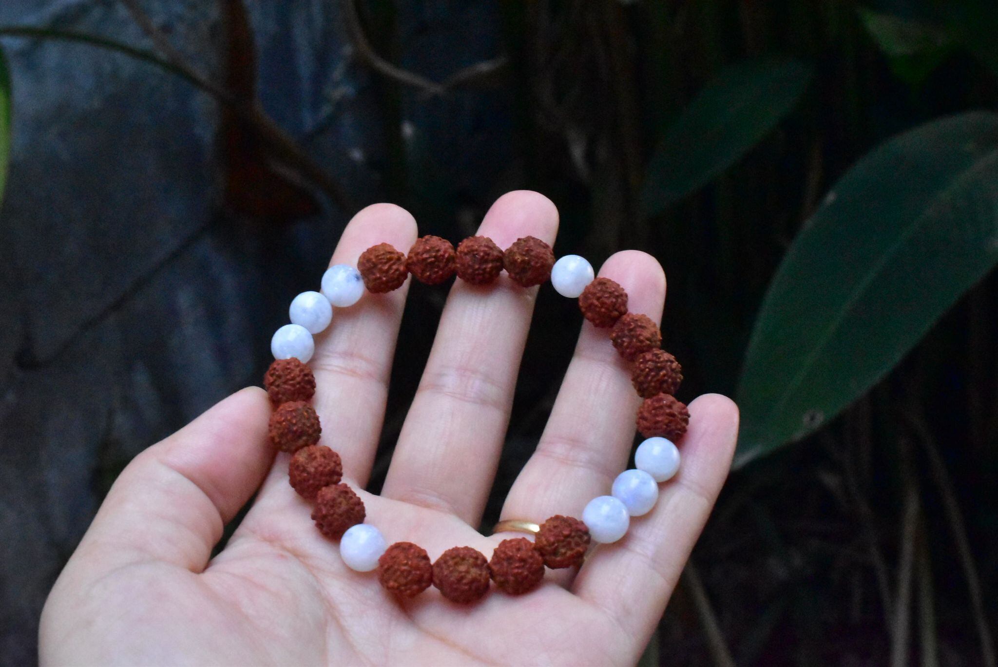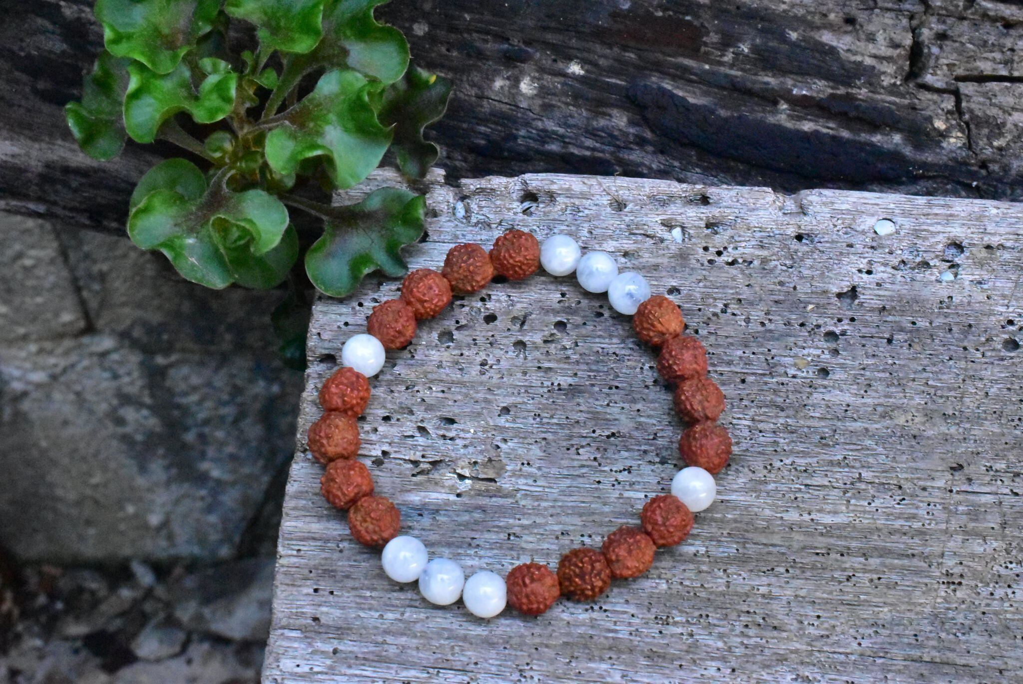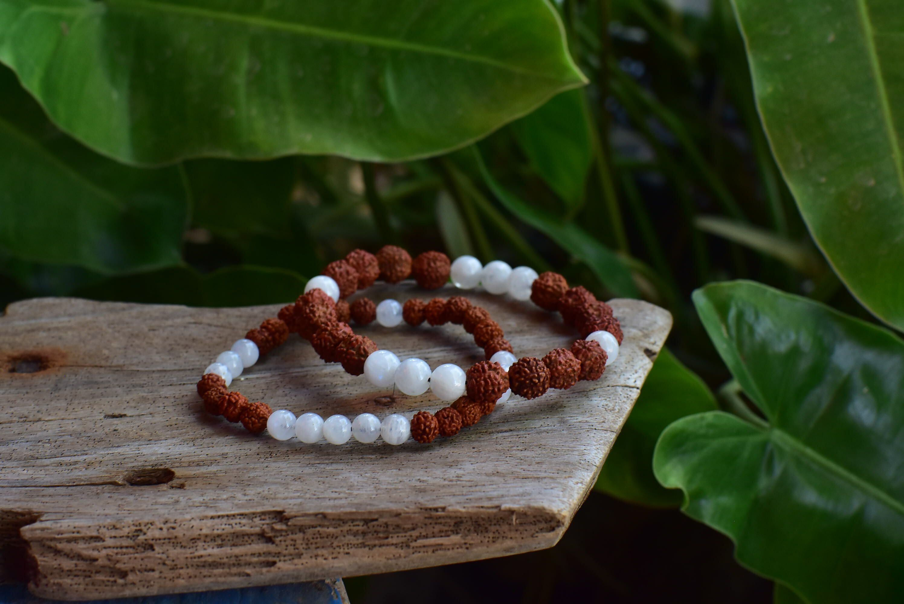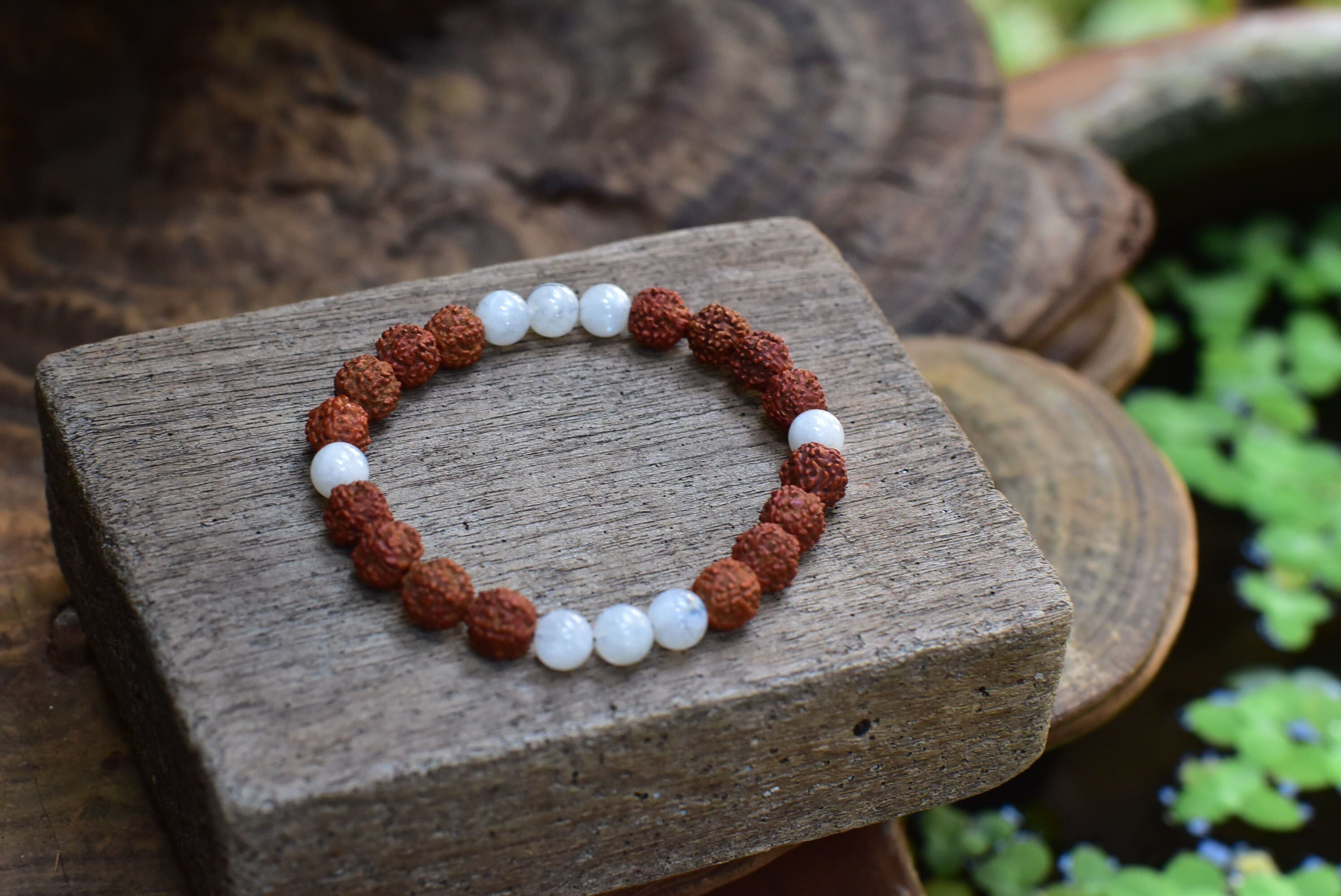 ルドラクシャ★中粒★菩提樹の実とムーンストーン ブレスレット rjb012