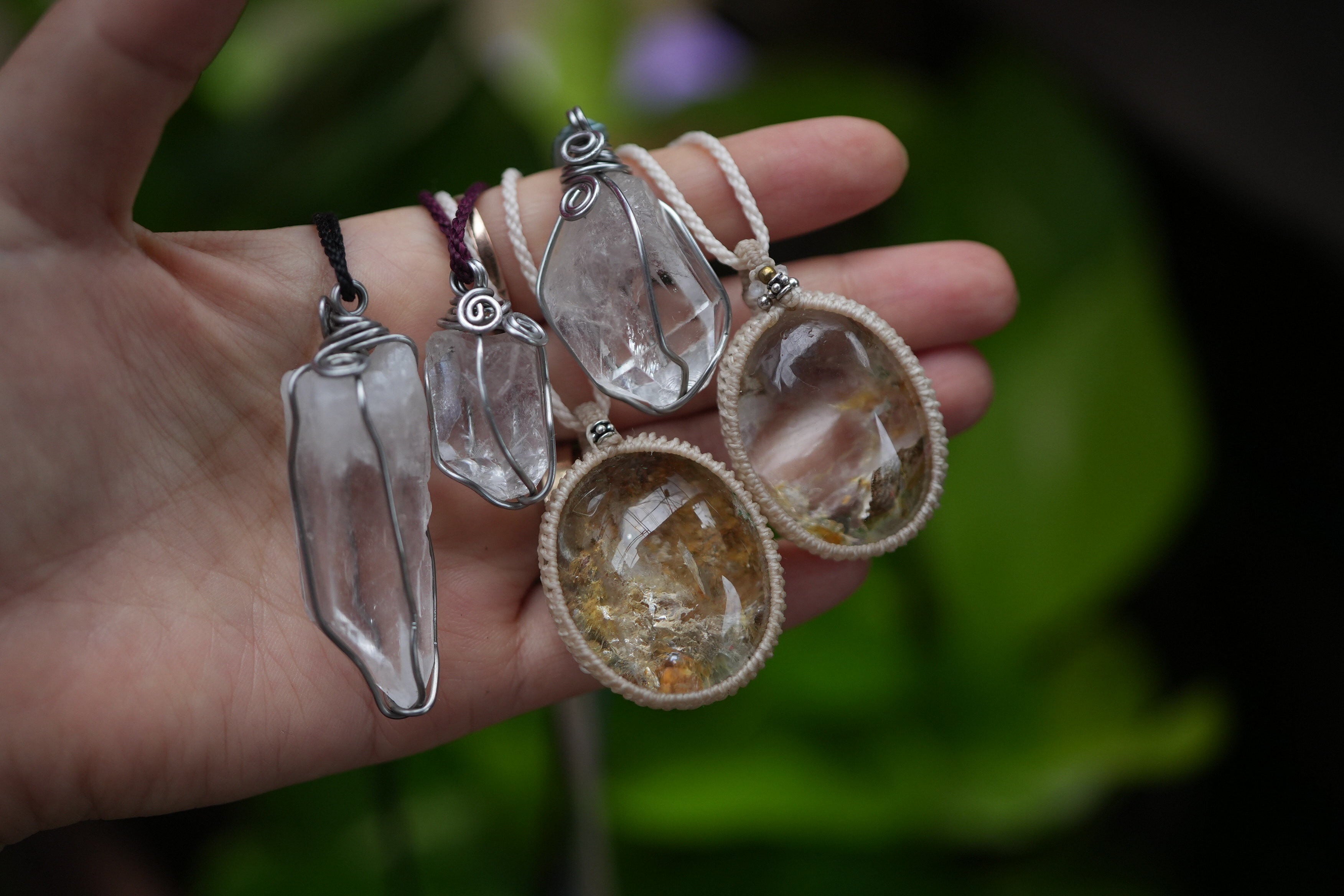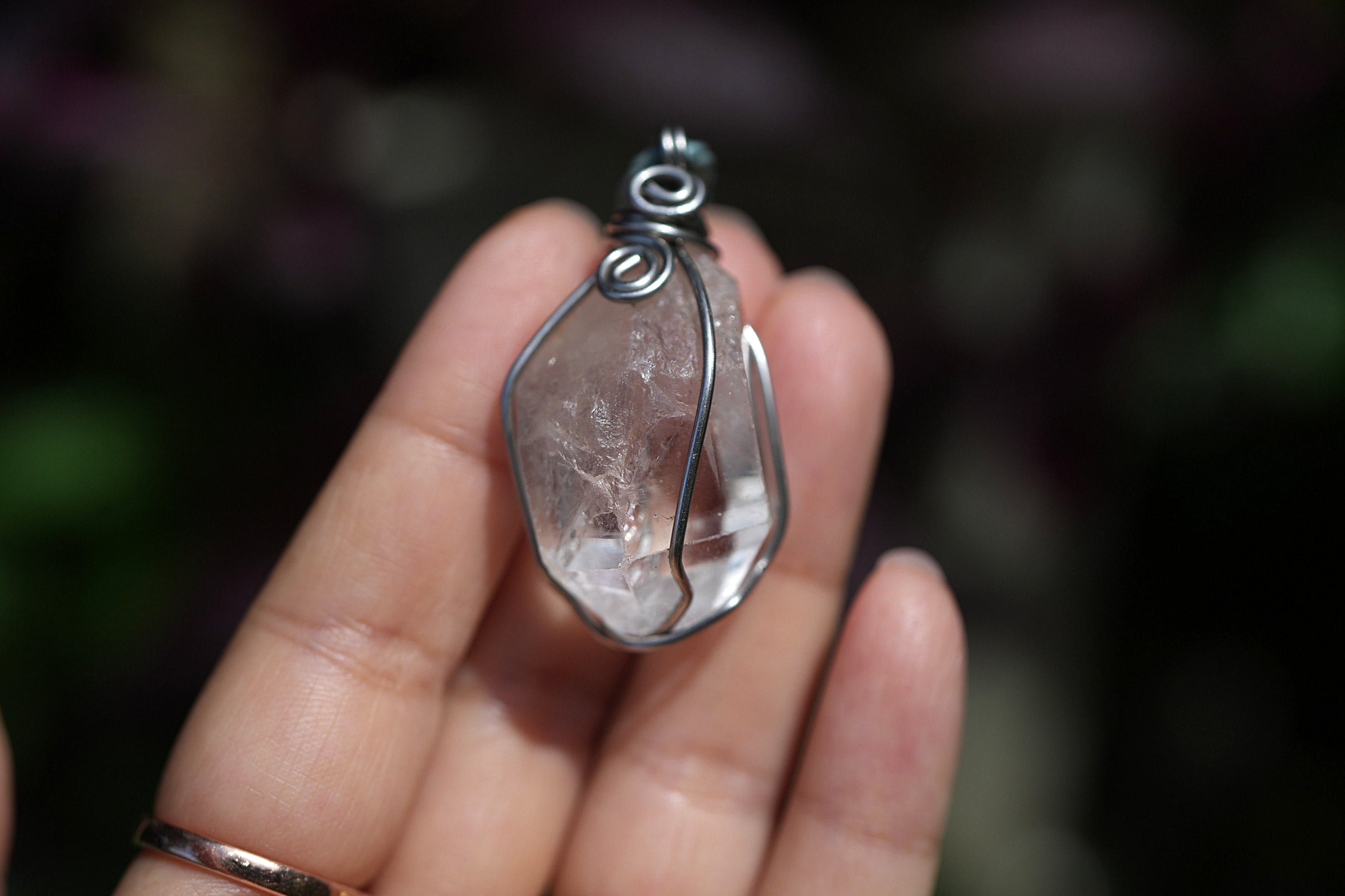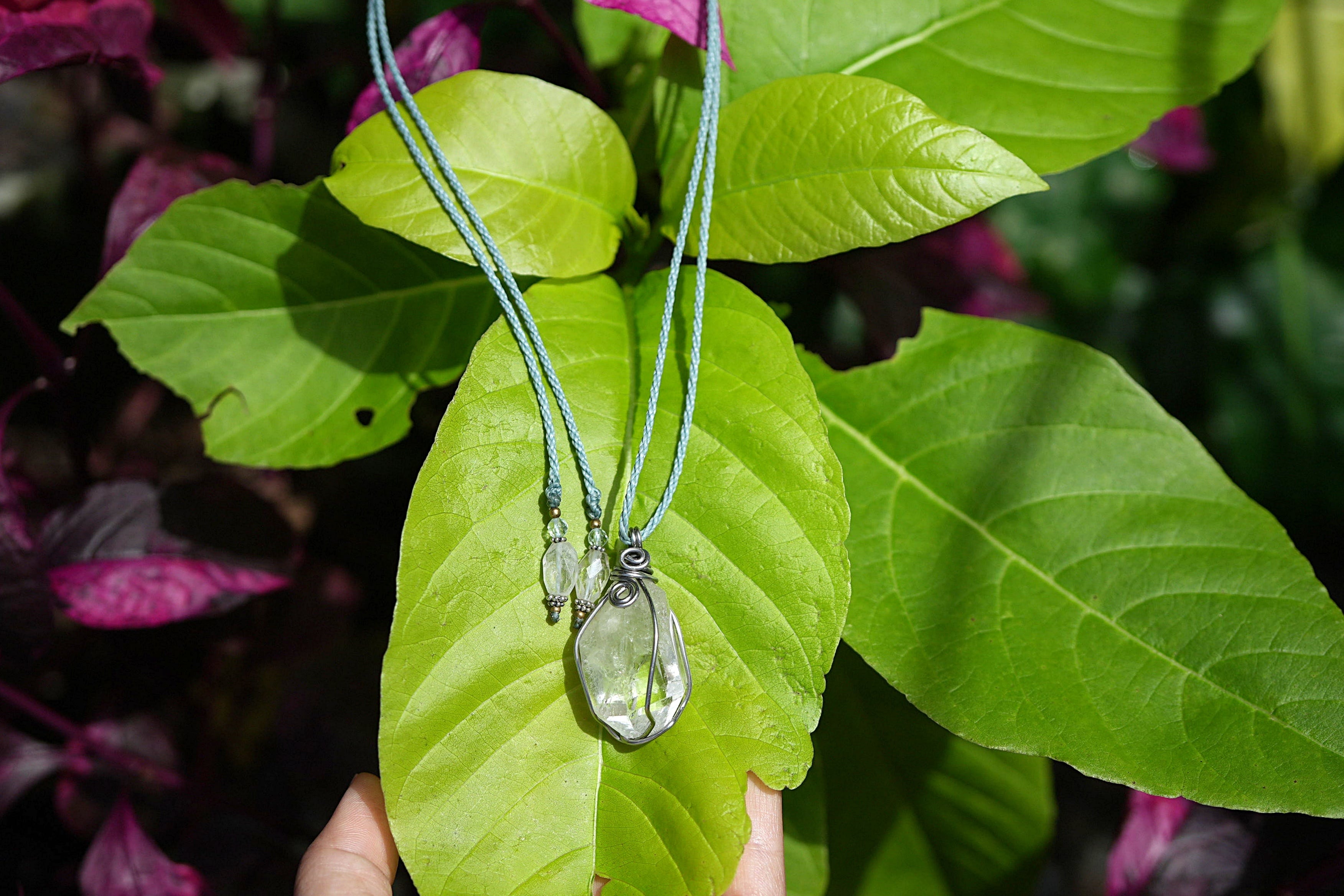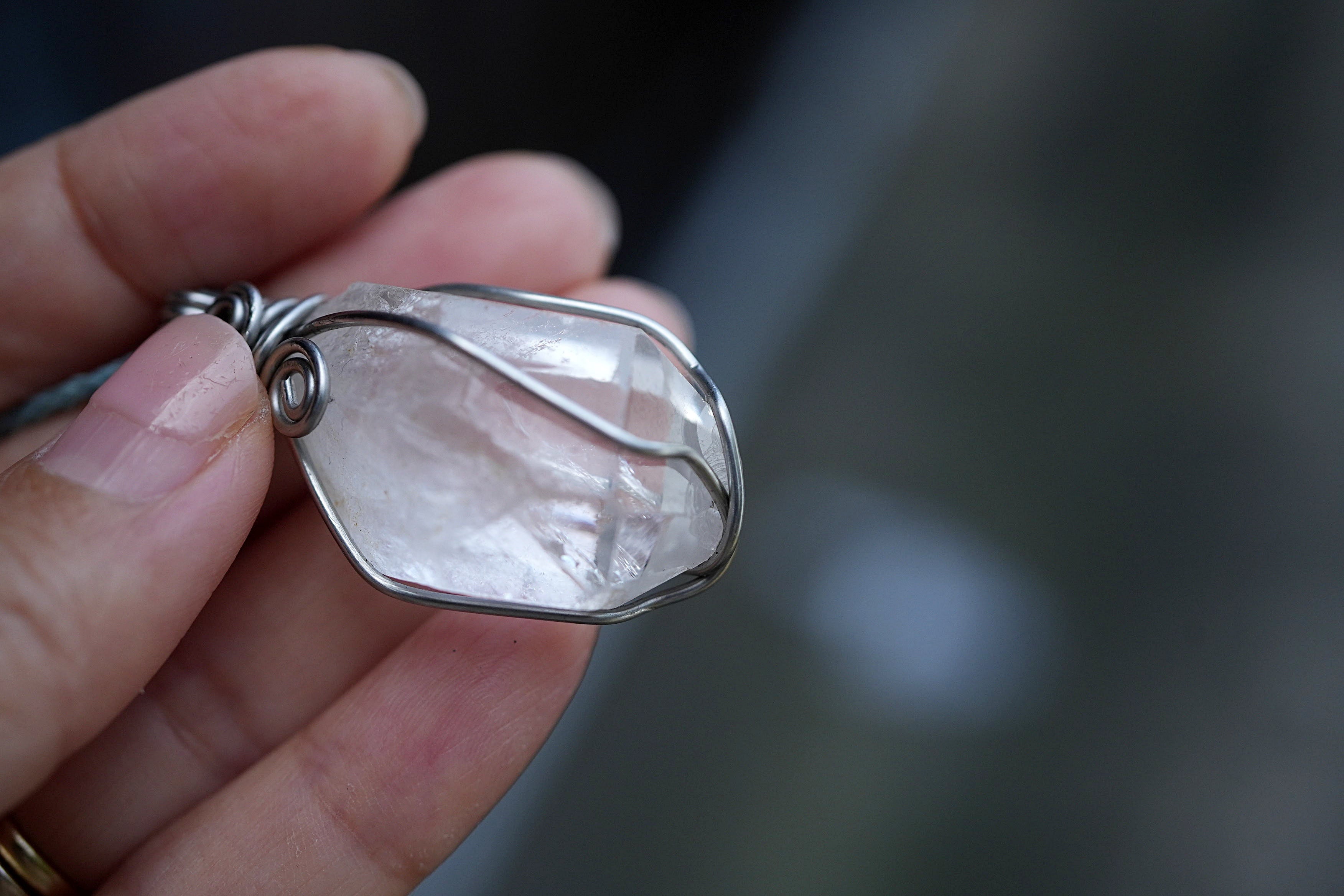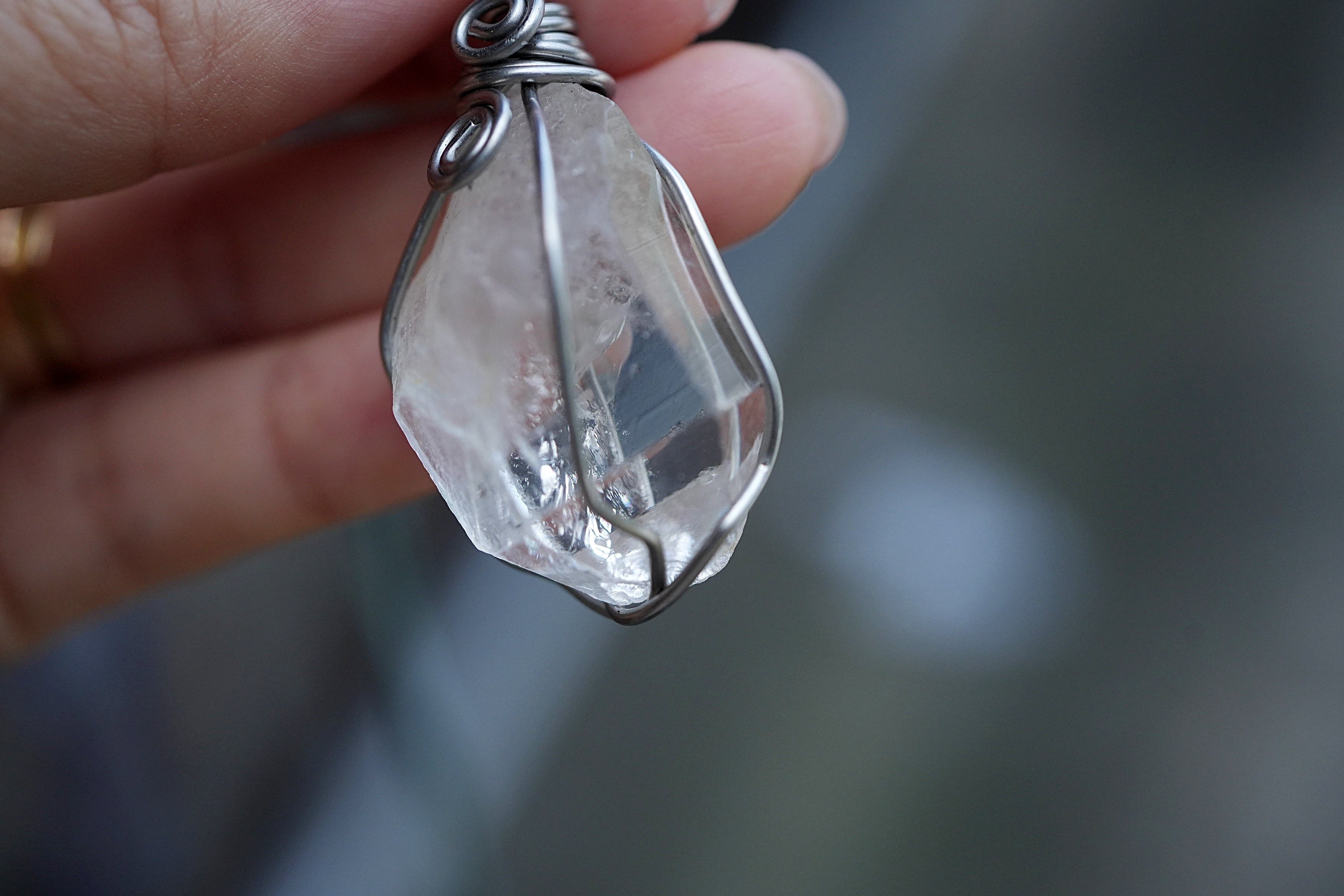 水晶原石を使用し、ワイヤーワークを施してペンダントトップに仕上げました。